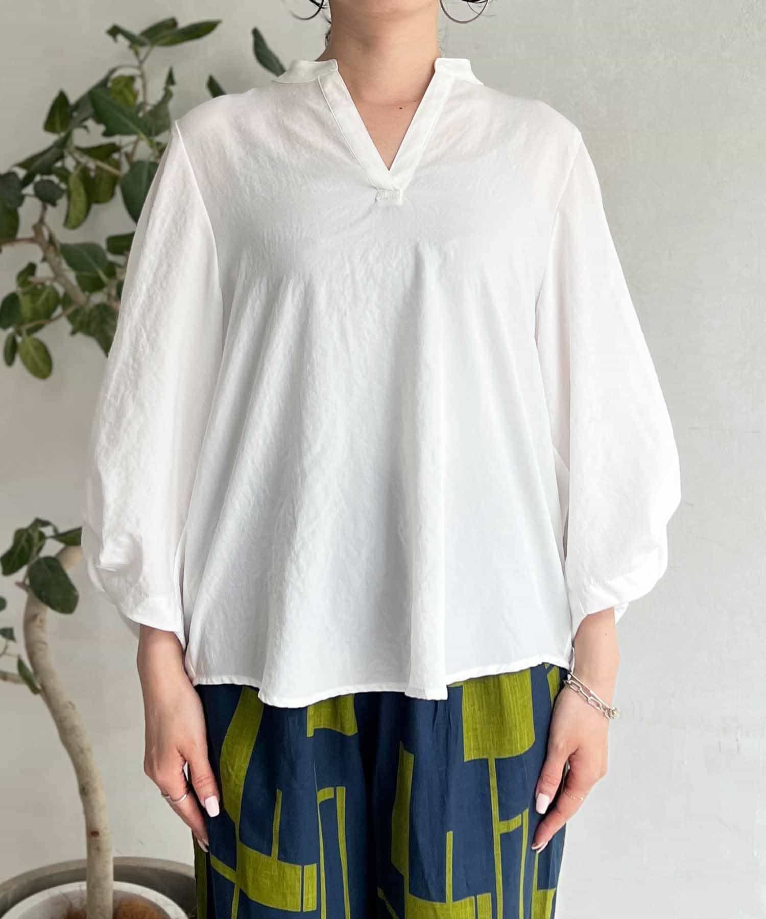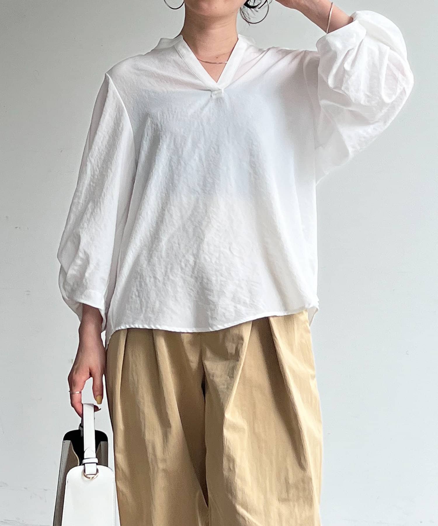 立体的なタックを施し、パフスリーブ仕立てが上品見え!