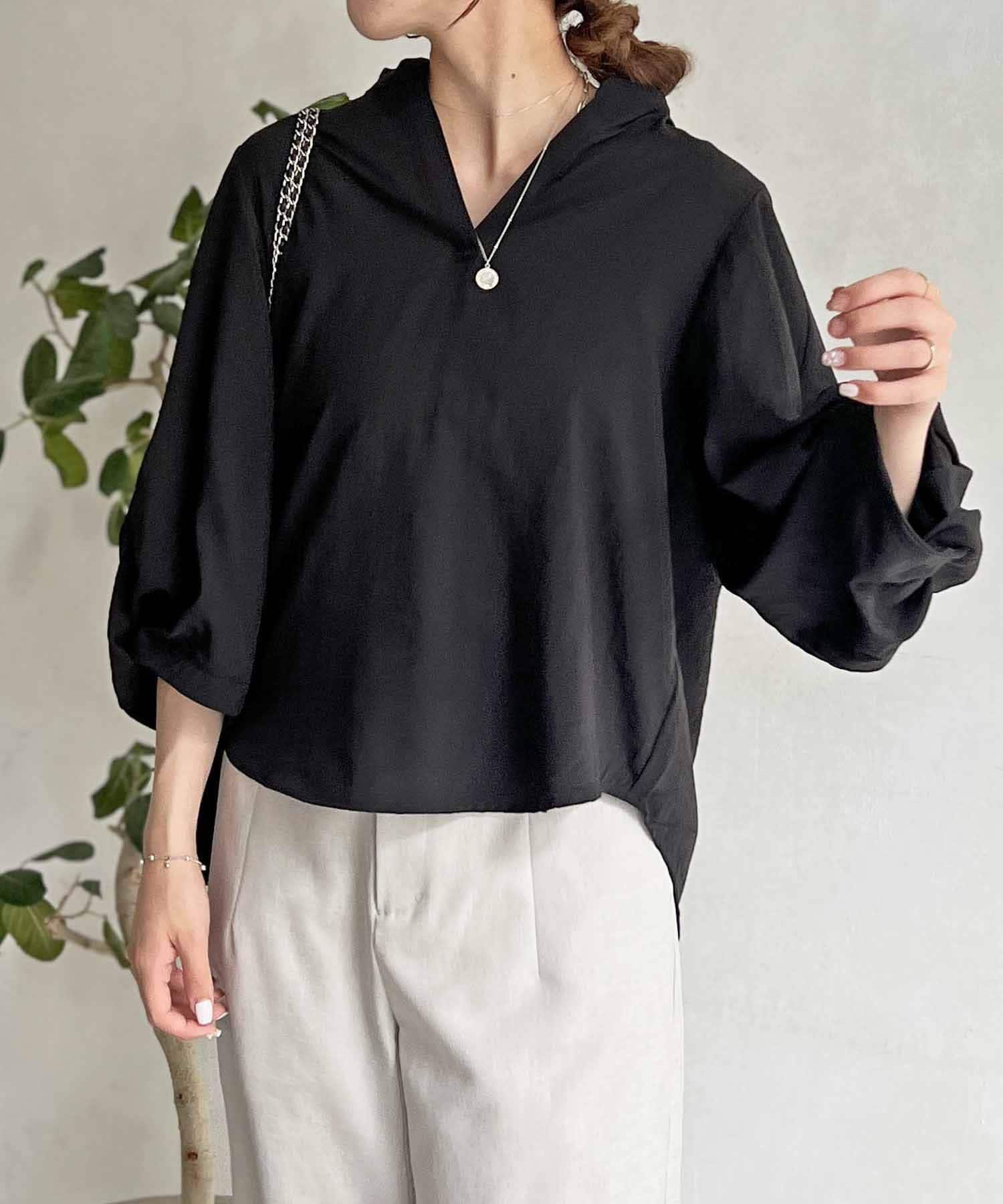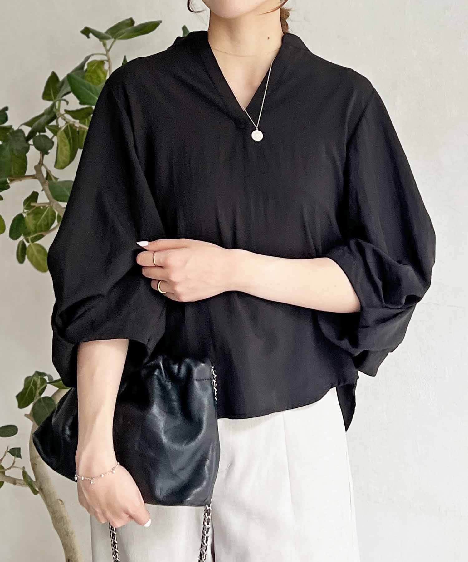 • Croisiere(クロジエール) 【シワになりにくい】袖ねじりパフブラウス