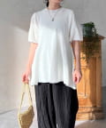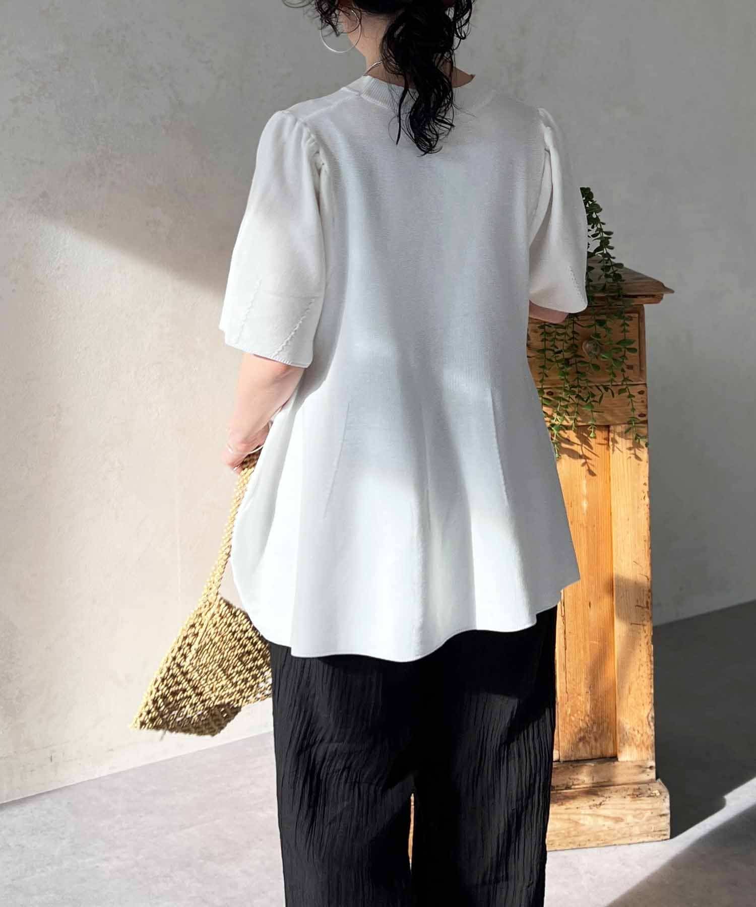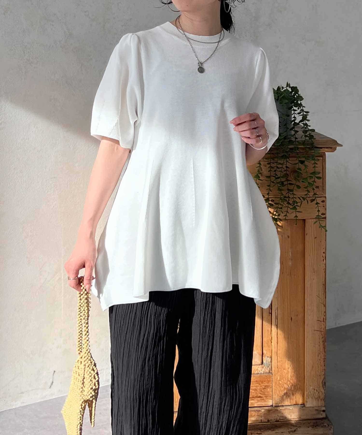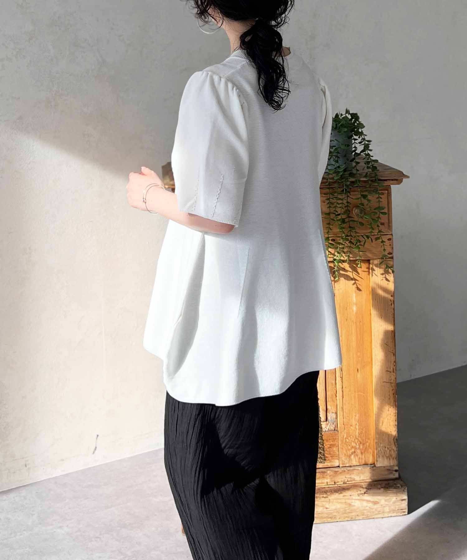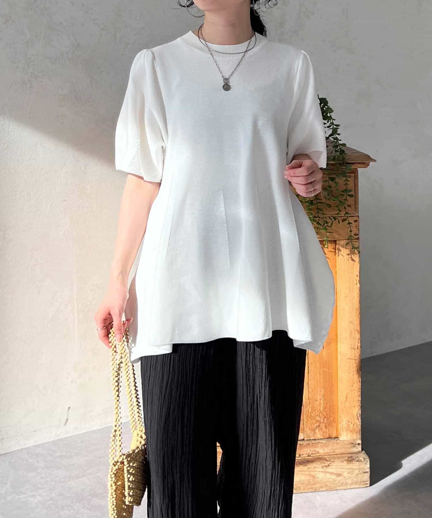 さらっとしたタッチで着心地も軽く、シンプルコーデにも映えるデザインニット。