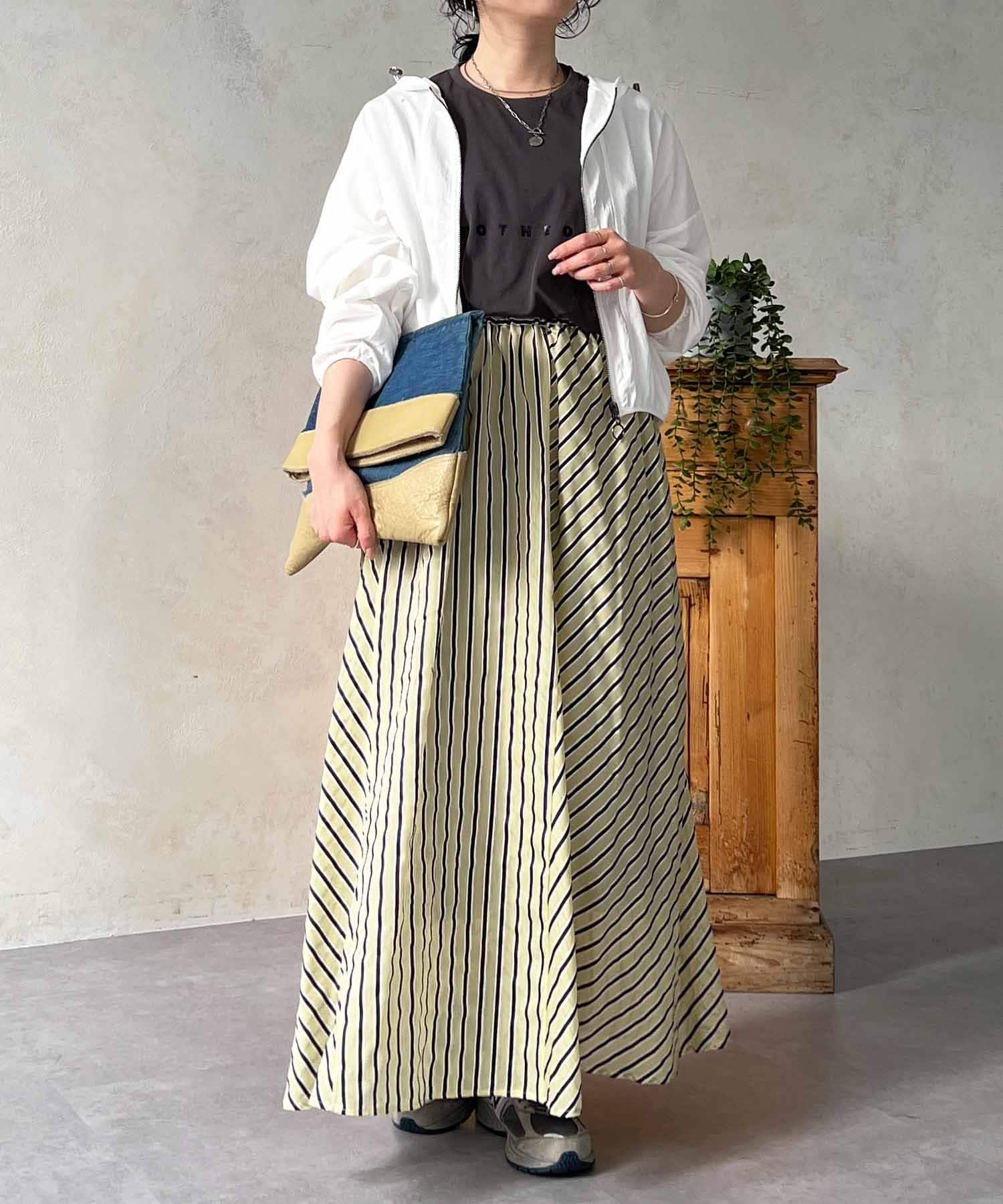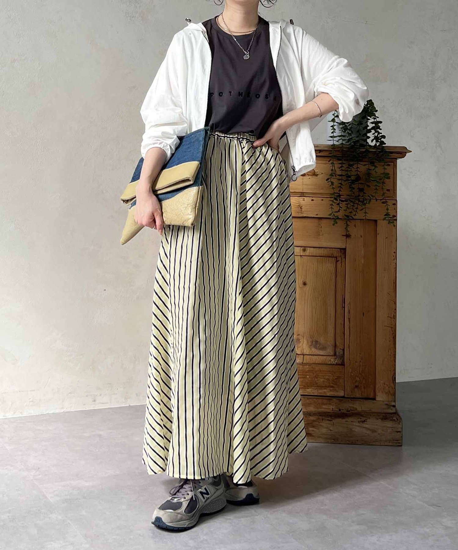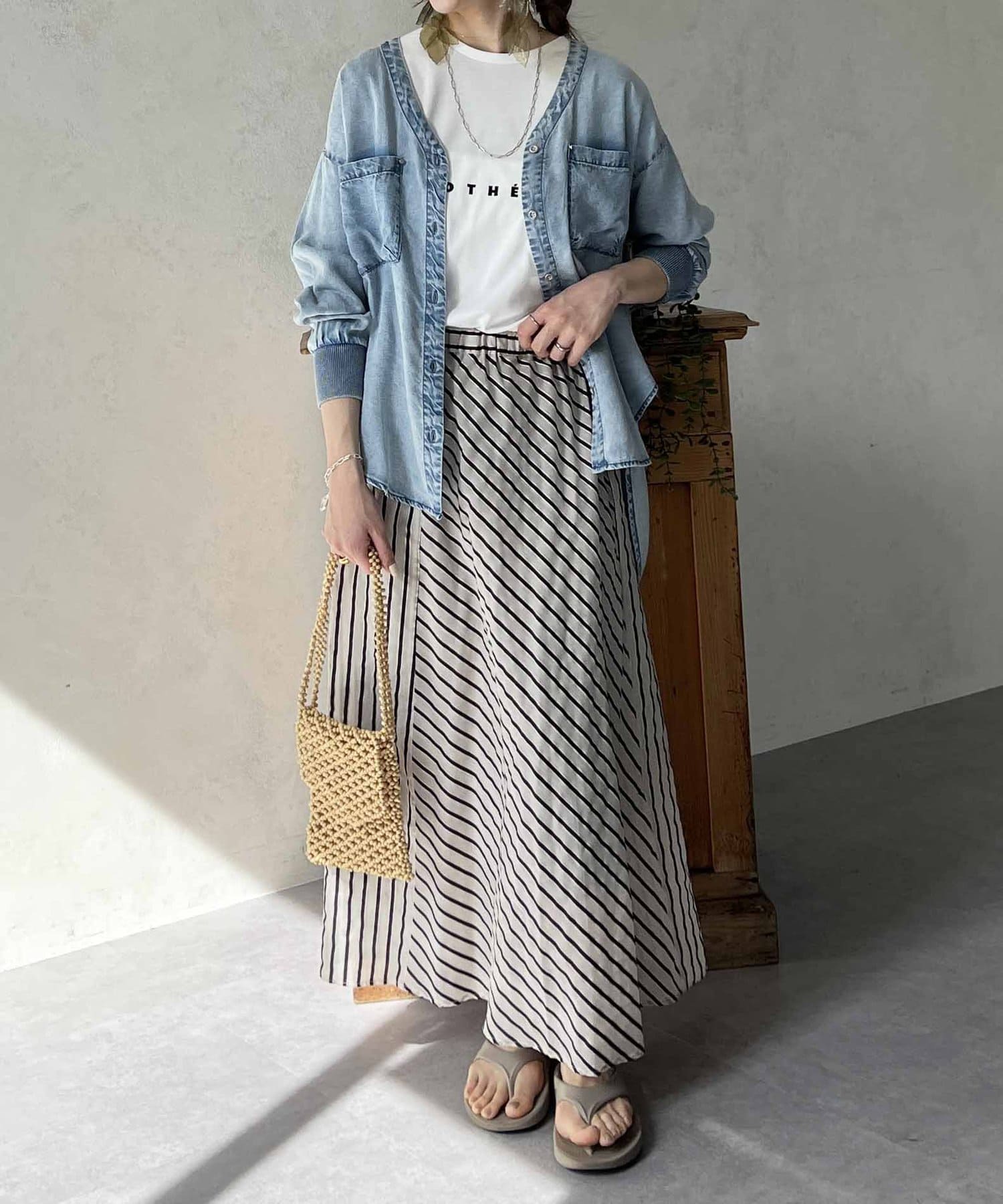 分量感のあるシルエットが魅力で、春夏コーデに映えるデザイン。