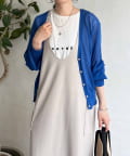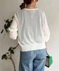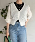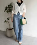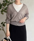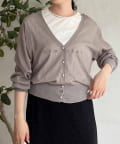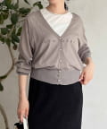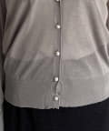 ベーシックなシルエットのカーディガンにちょこんと小粒のパールをポイント付けてアクセントに。