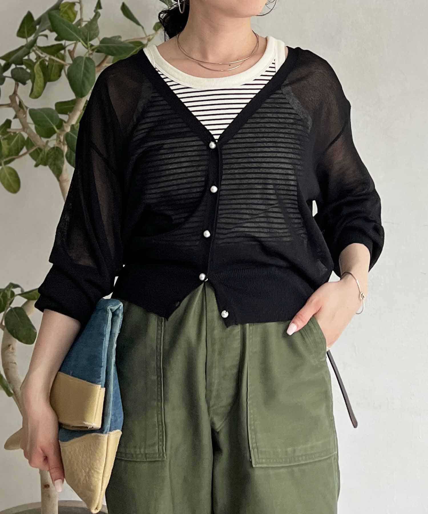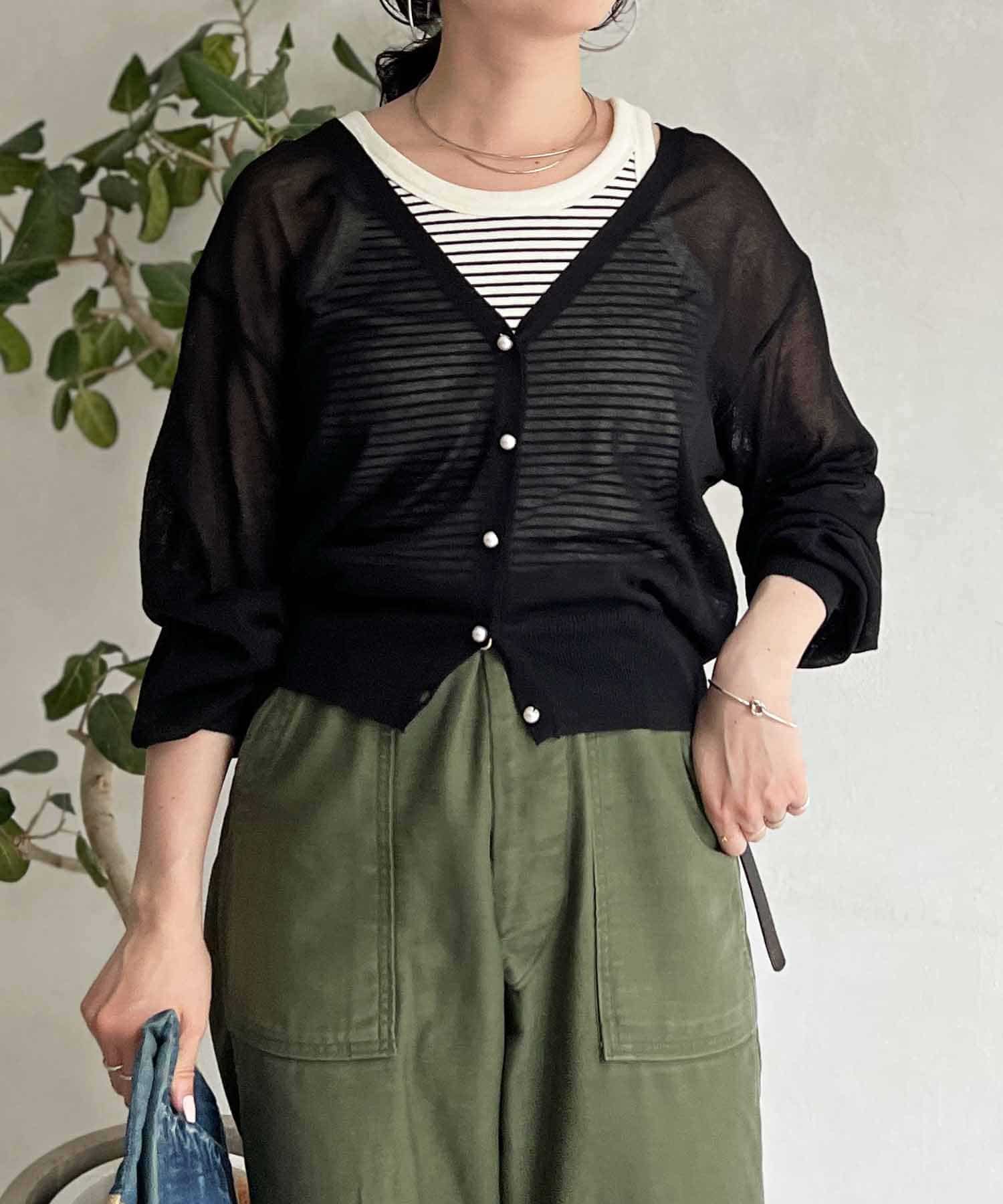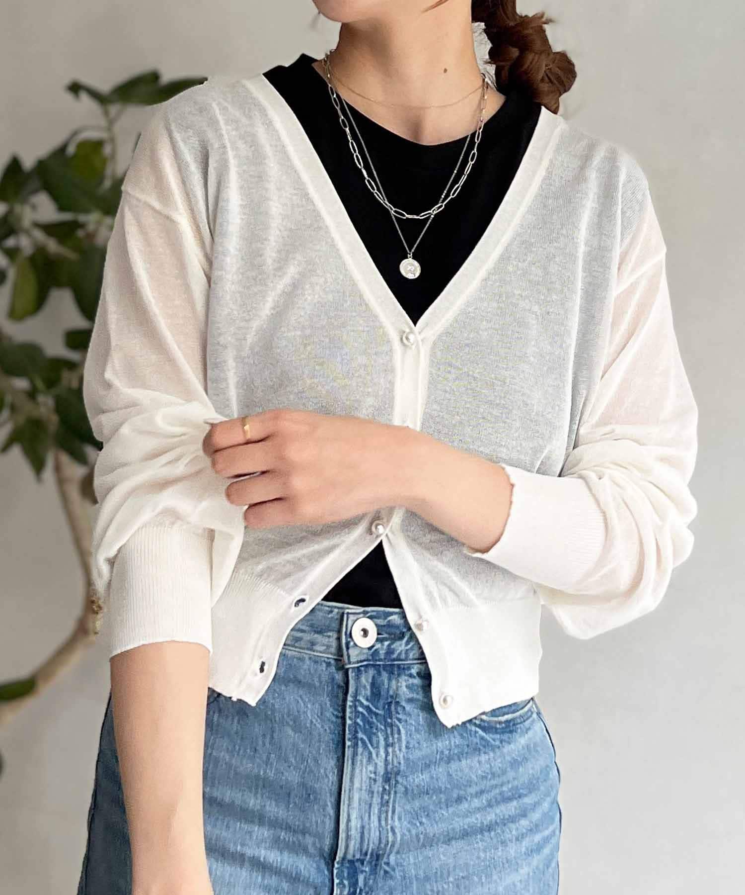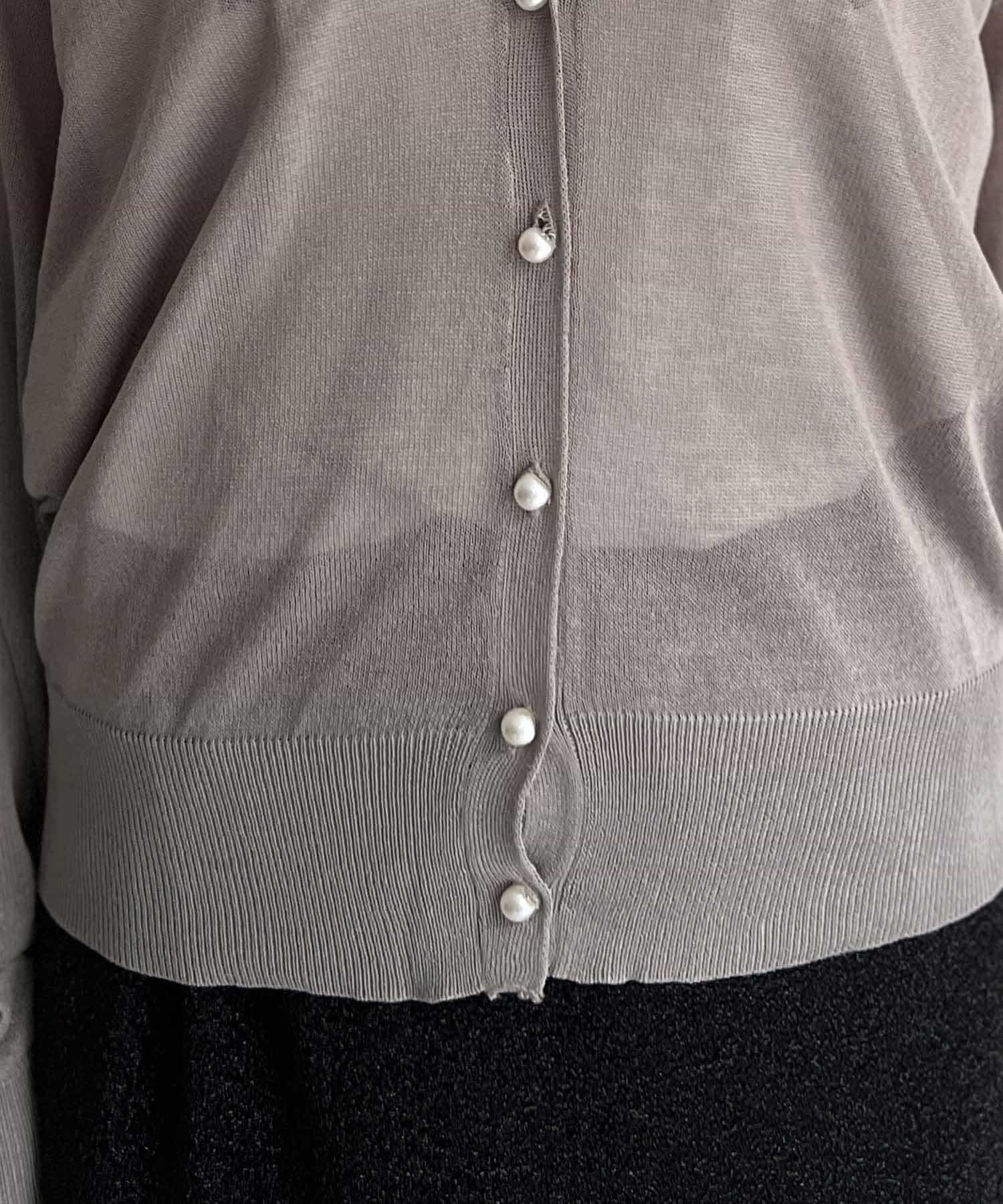 小粒のパールボタンがポイント!シアー感たっぷりのカーディガン