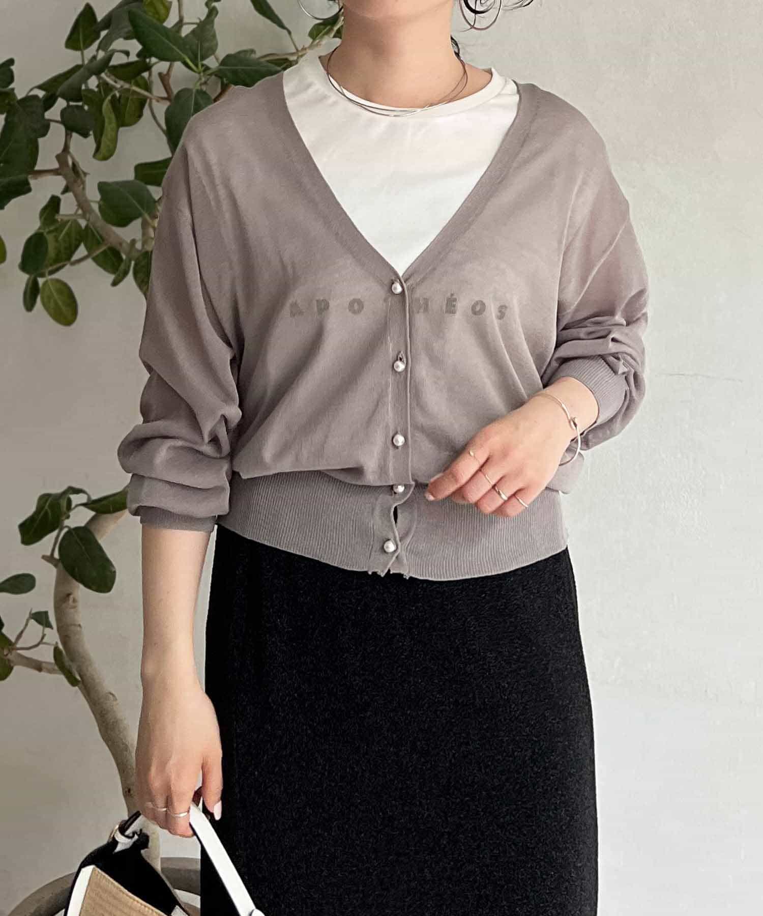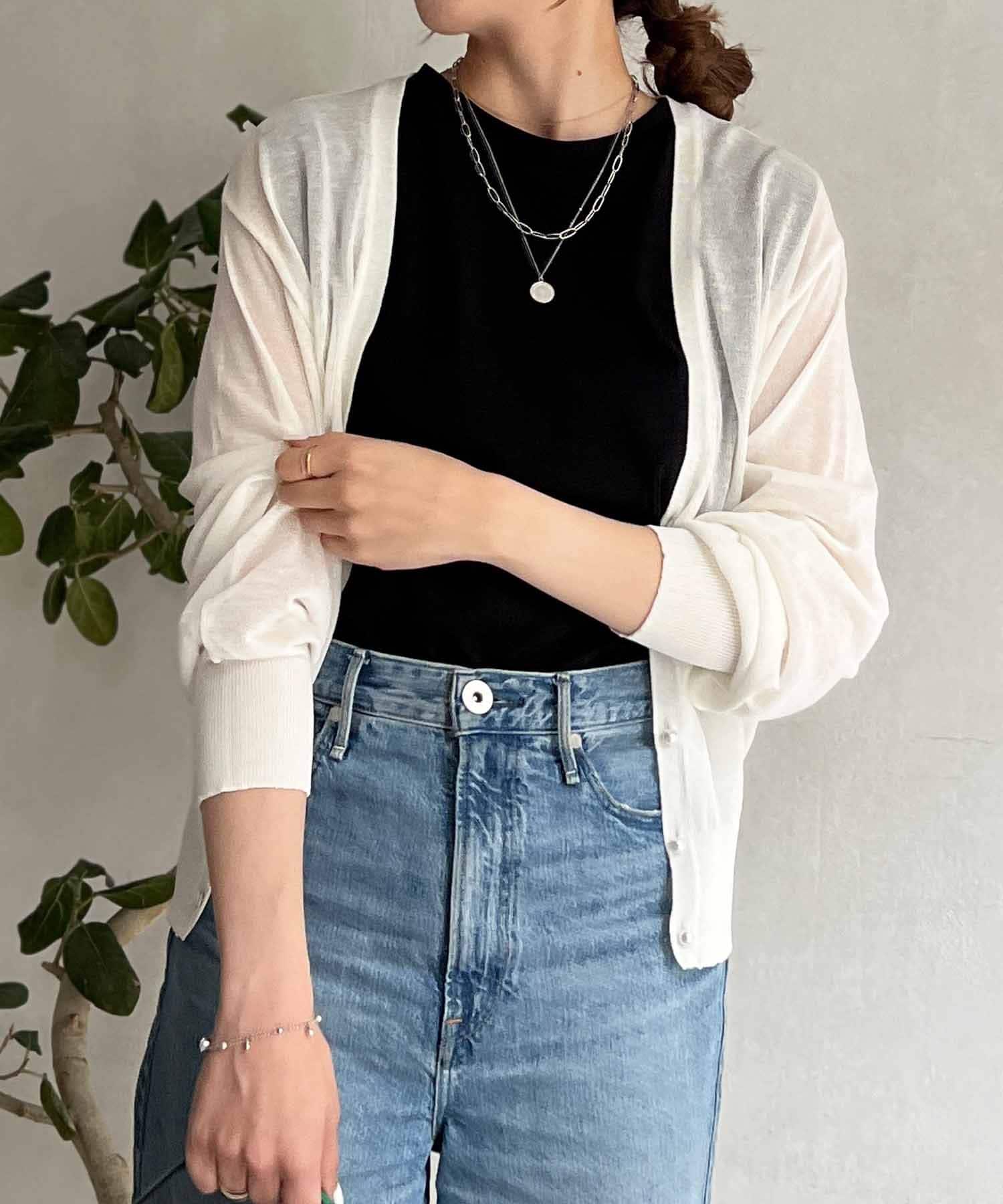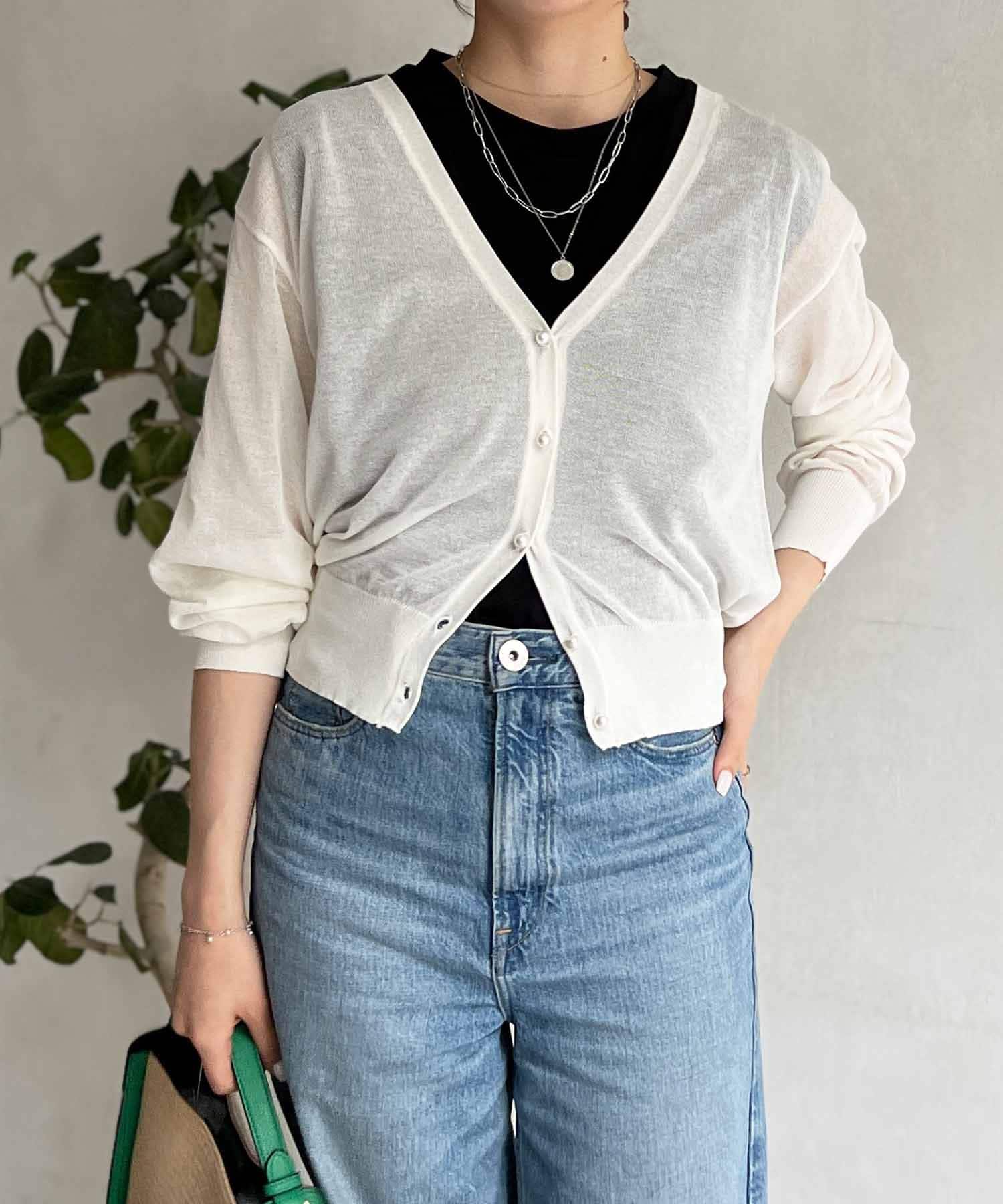 小粒のパールボタンがポイント!シアー感たっぷりのカーディガン