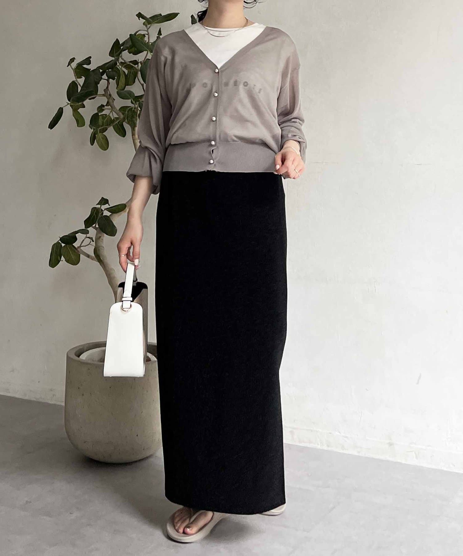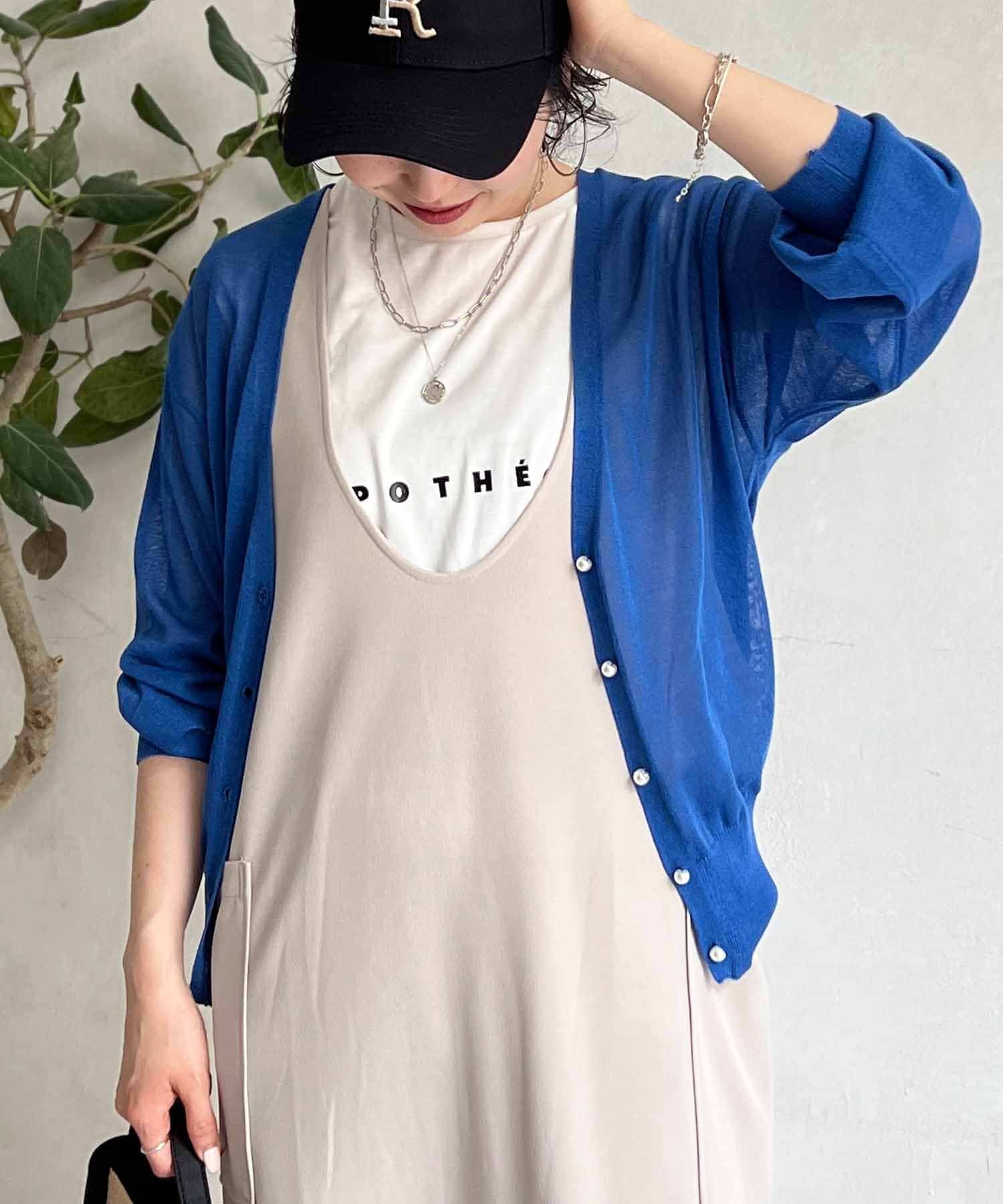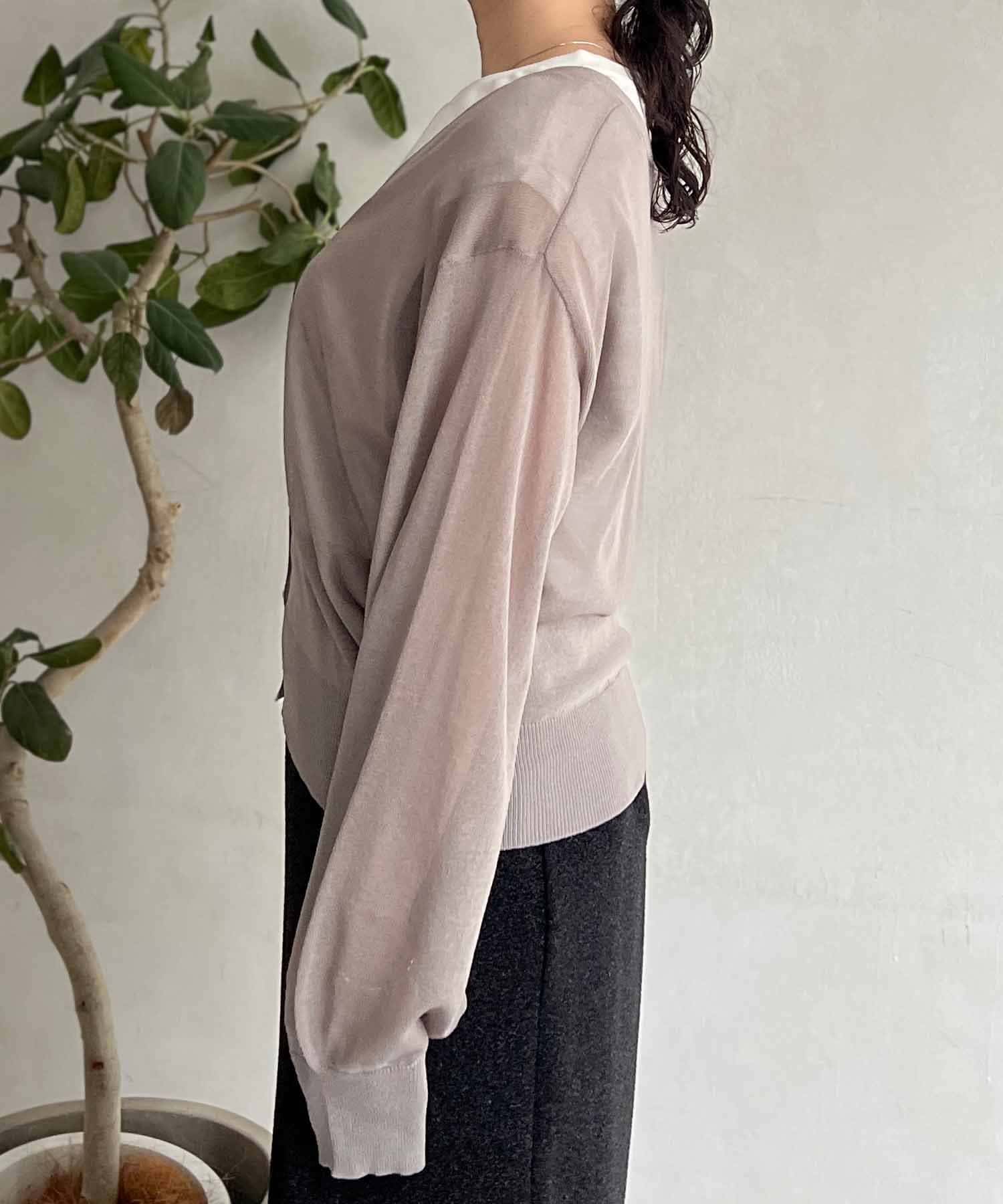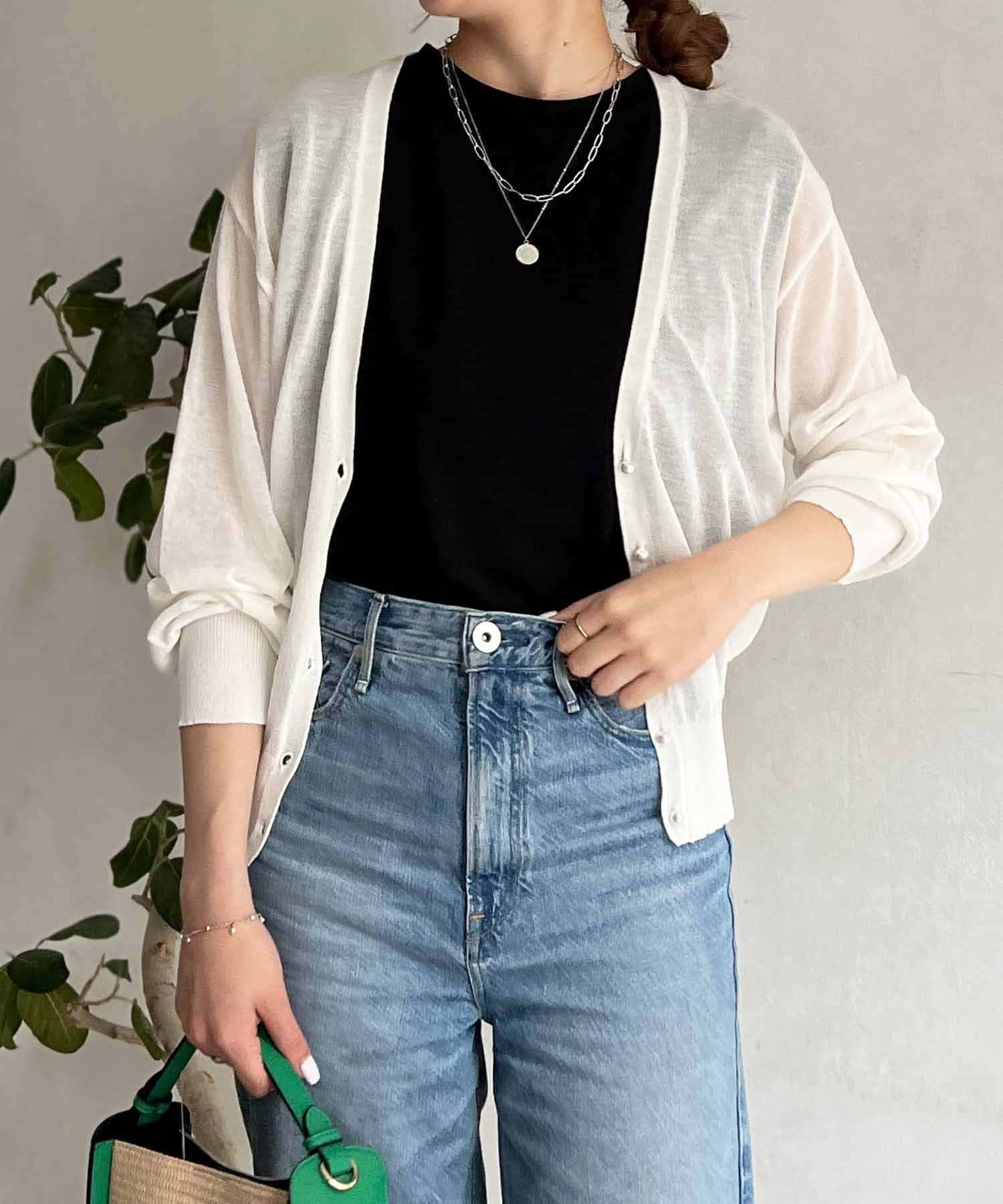 小粒のパールボタンがポイント!シアー感たっぷりのカーディガン