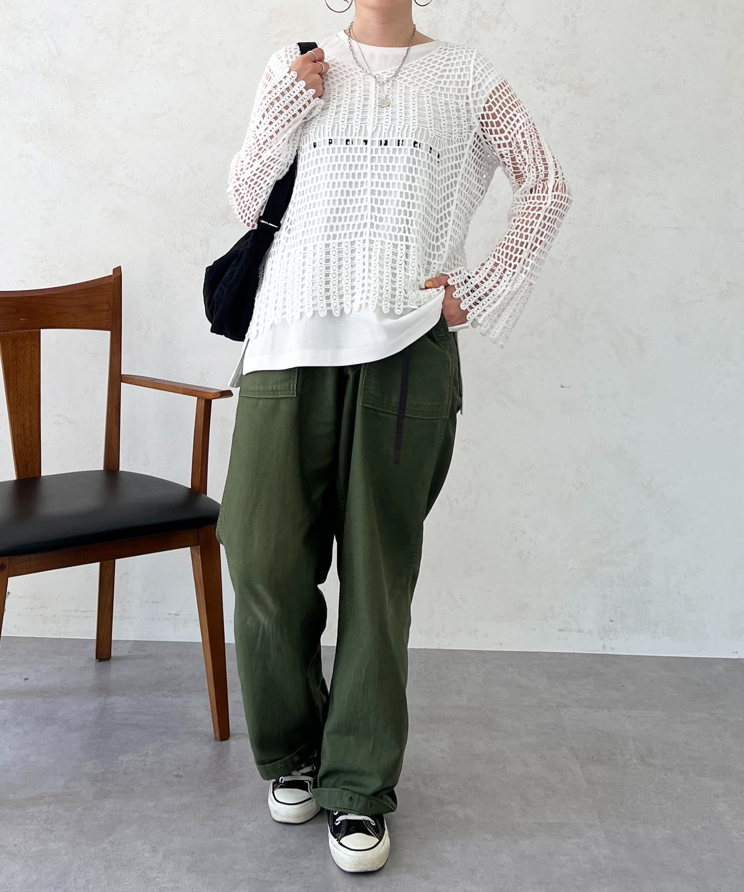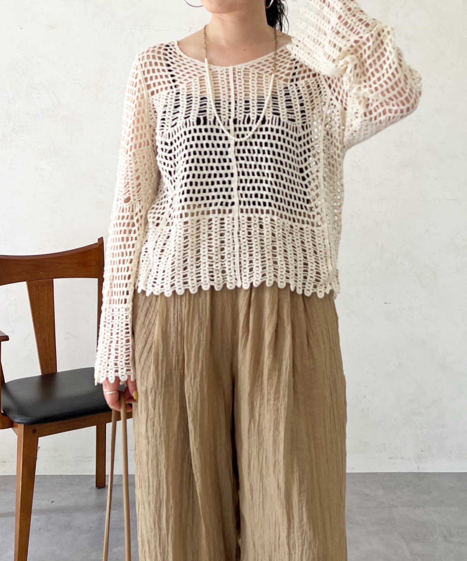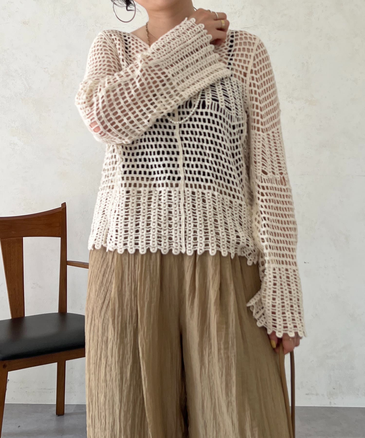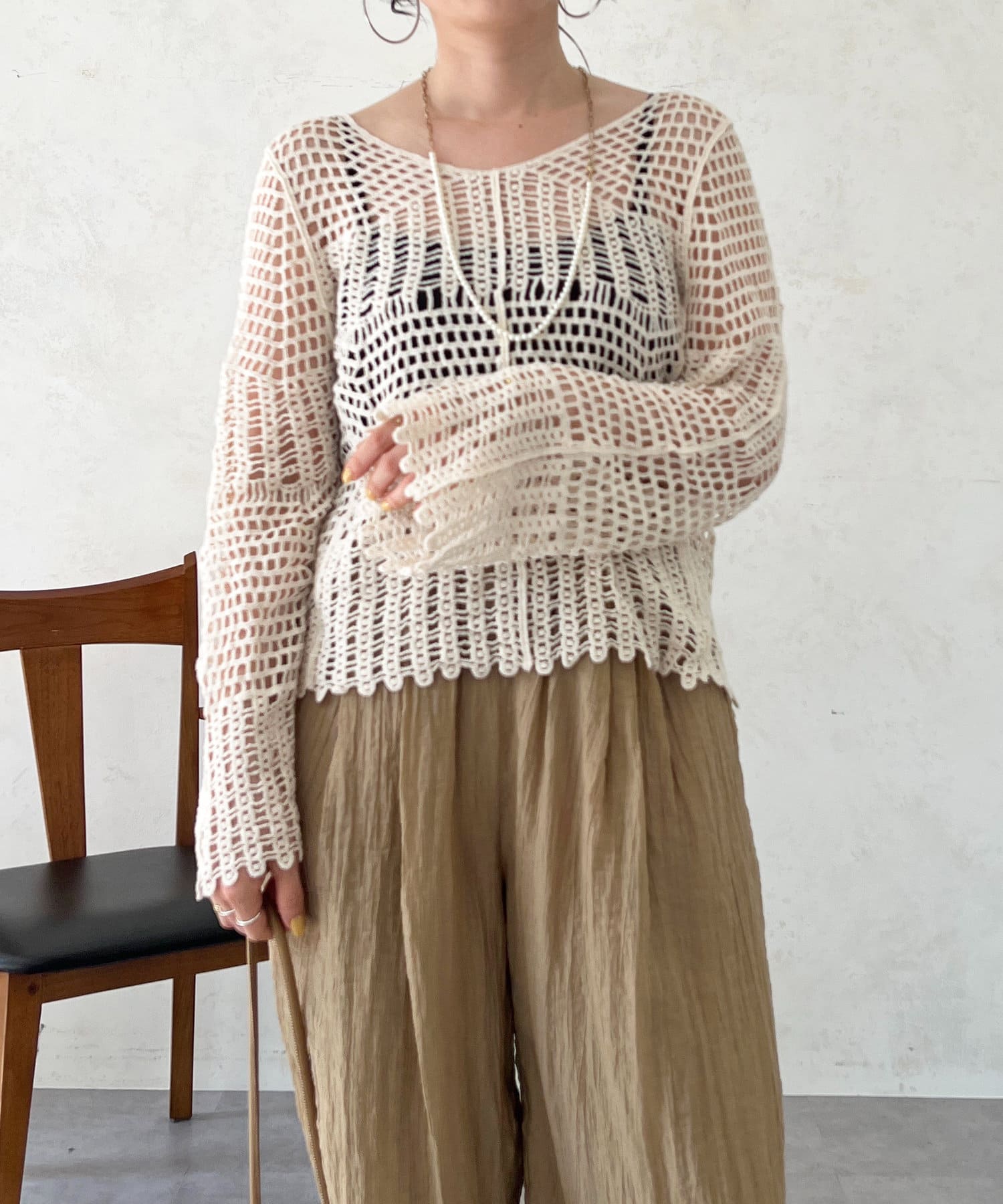 素肌感が出るので、インナーにロンTやノースリトップスを合わせるのがおすすめ!