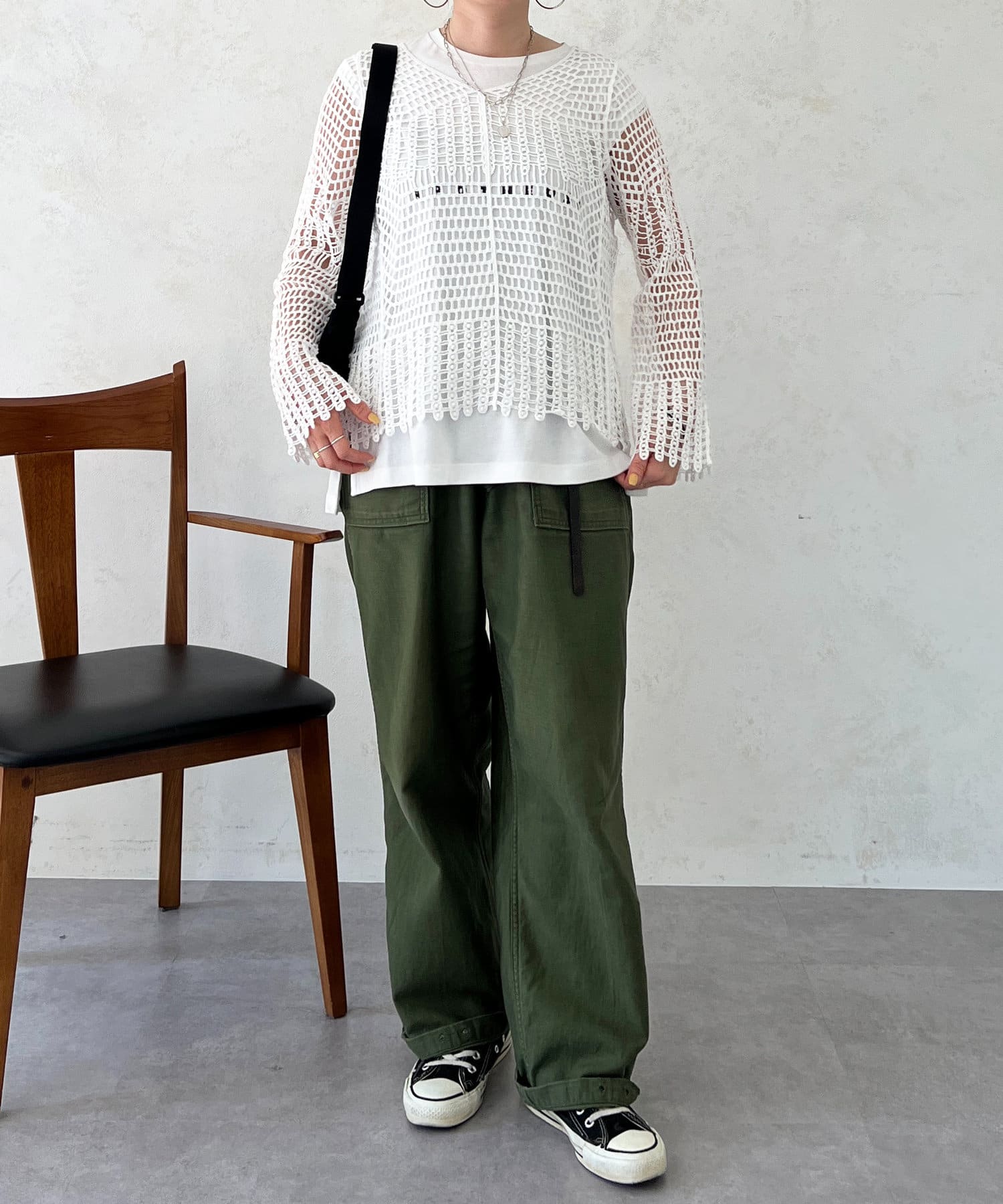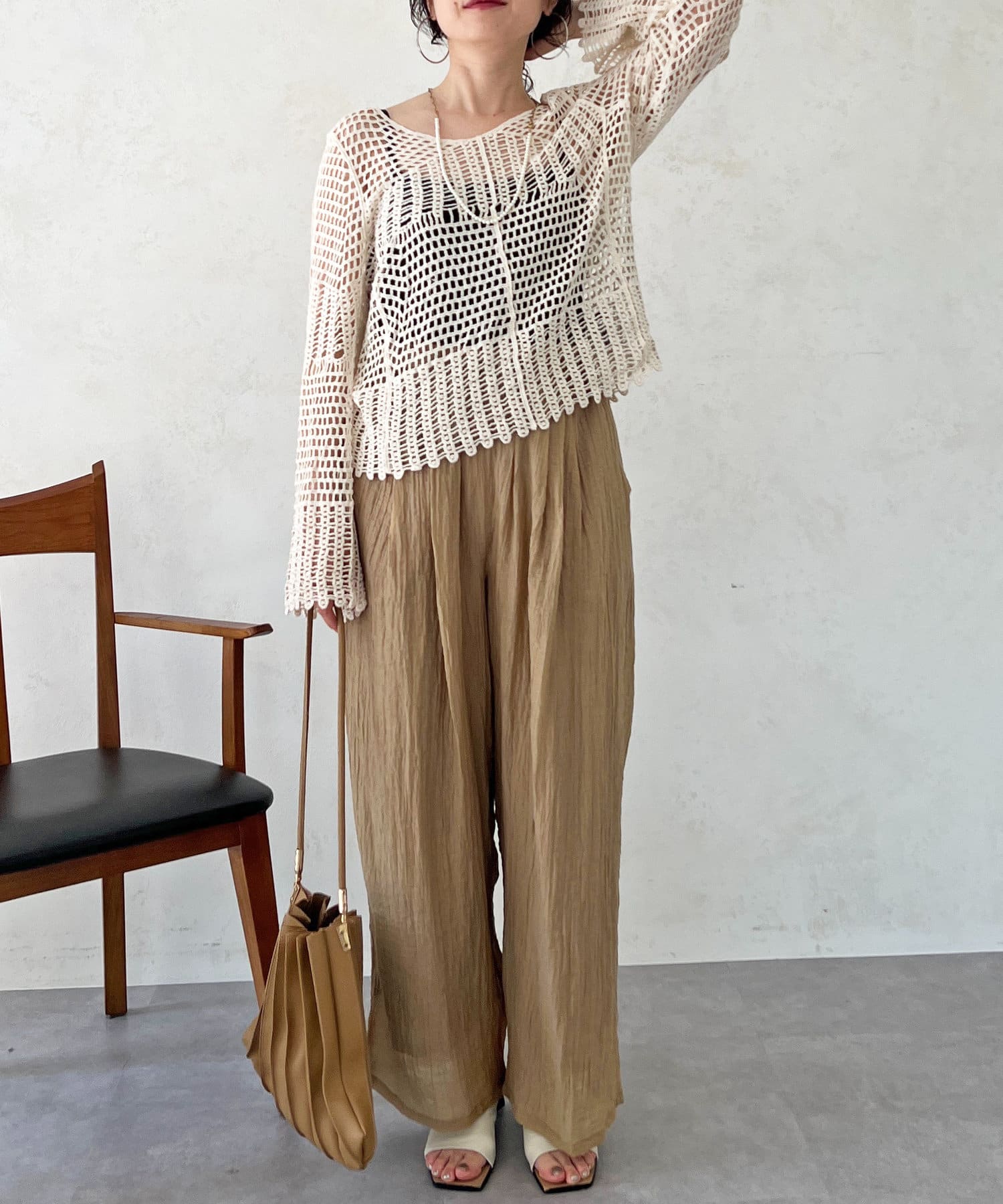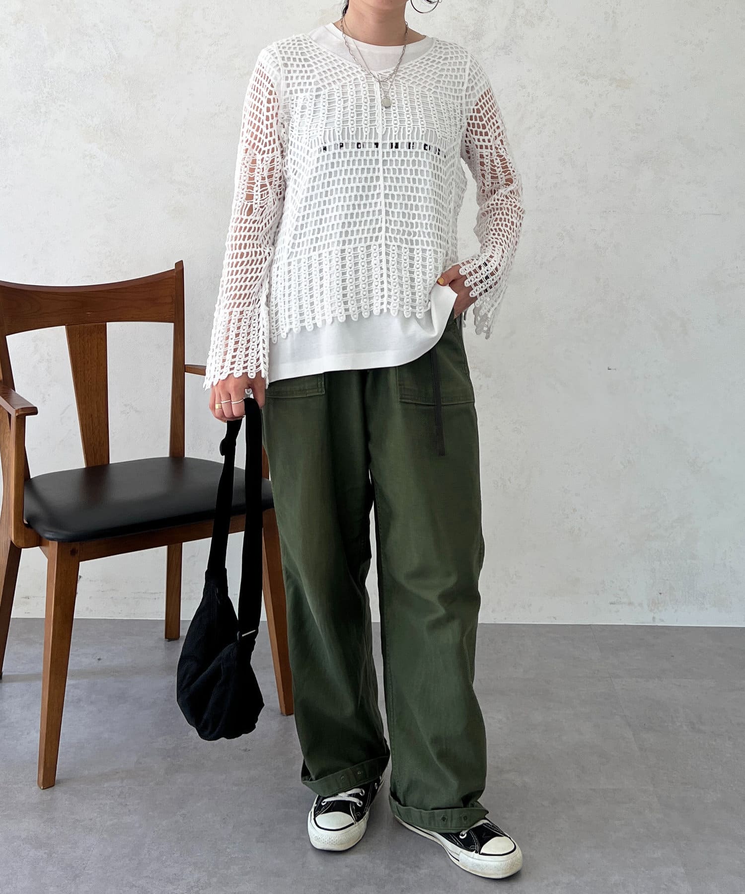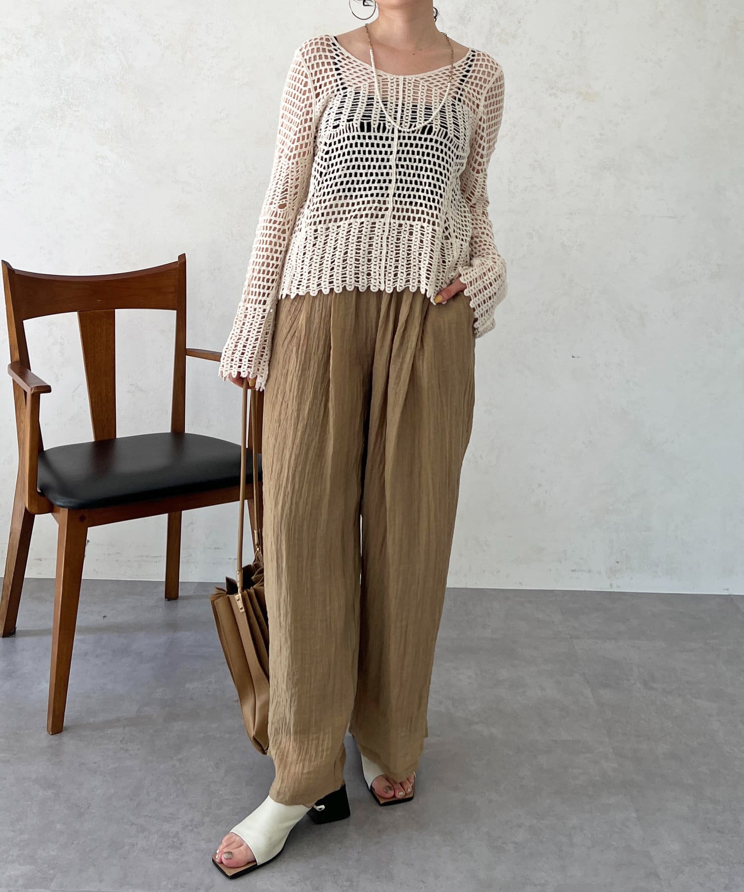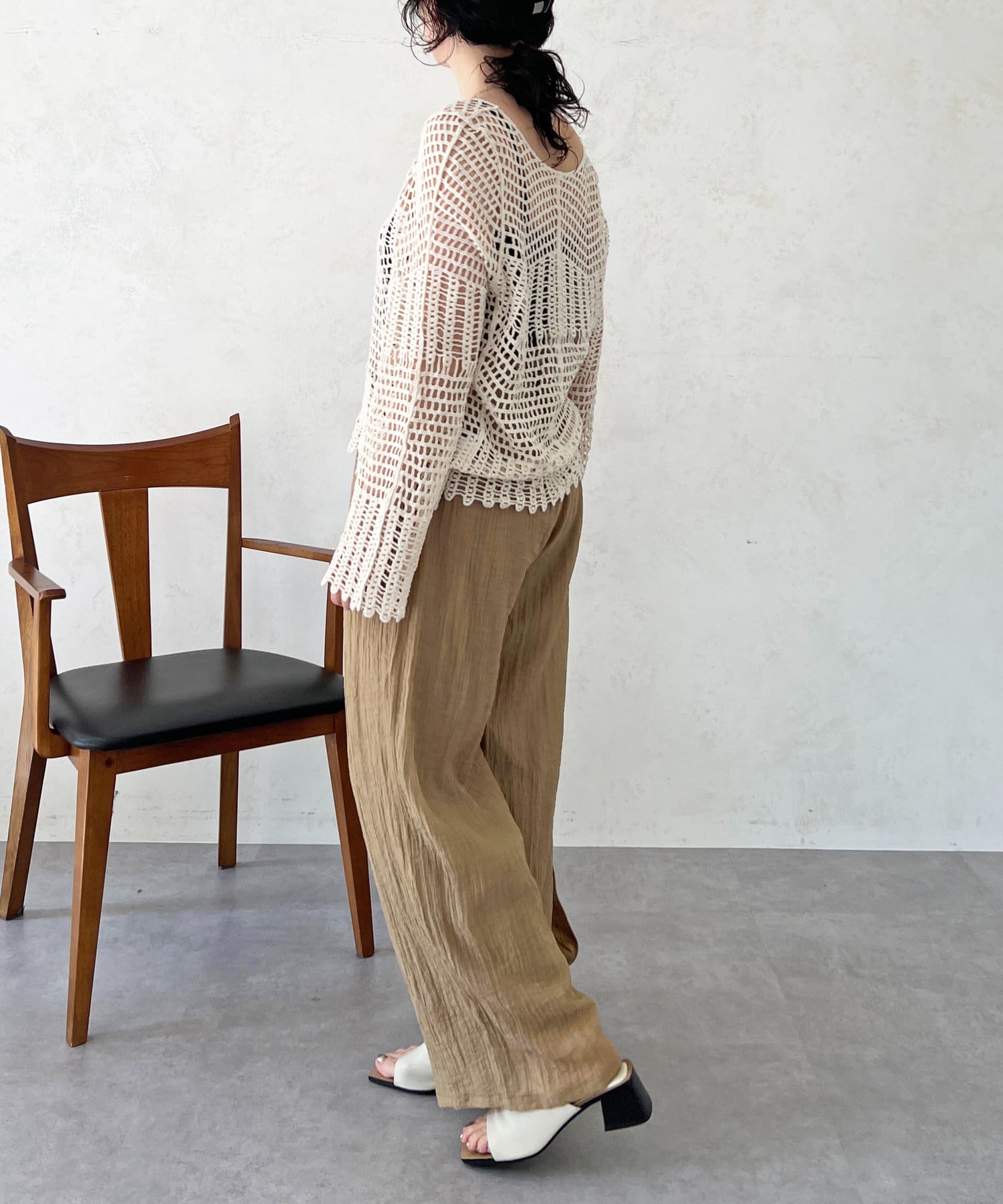 素肌感が出るので、インナーにロンTやノースリトップスを合わせるのがおすすめ!