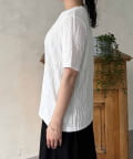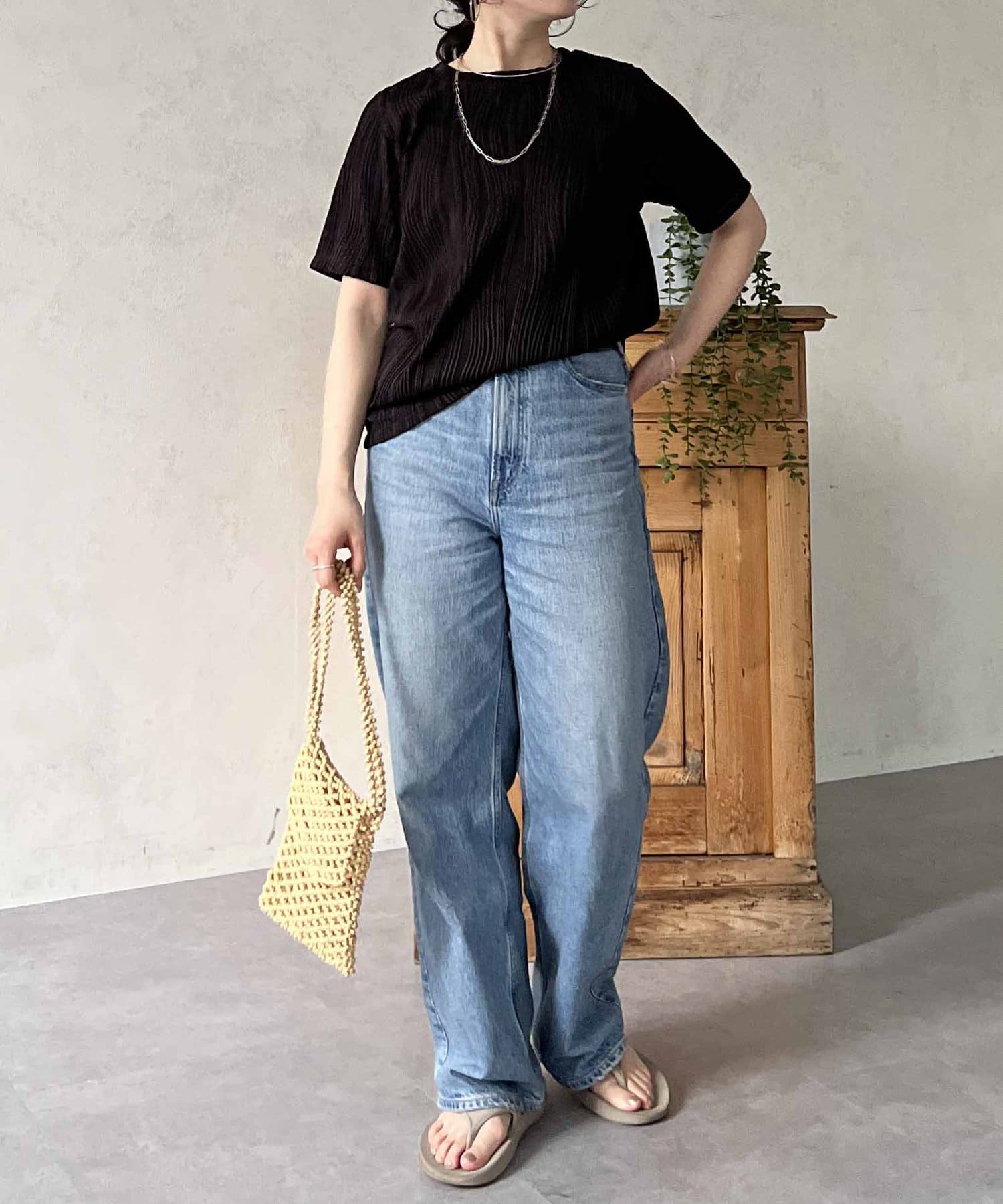 二の腕が隠れる5分袖丈で、上半身をすっきりと華奢に見せてくれます。