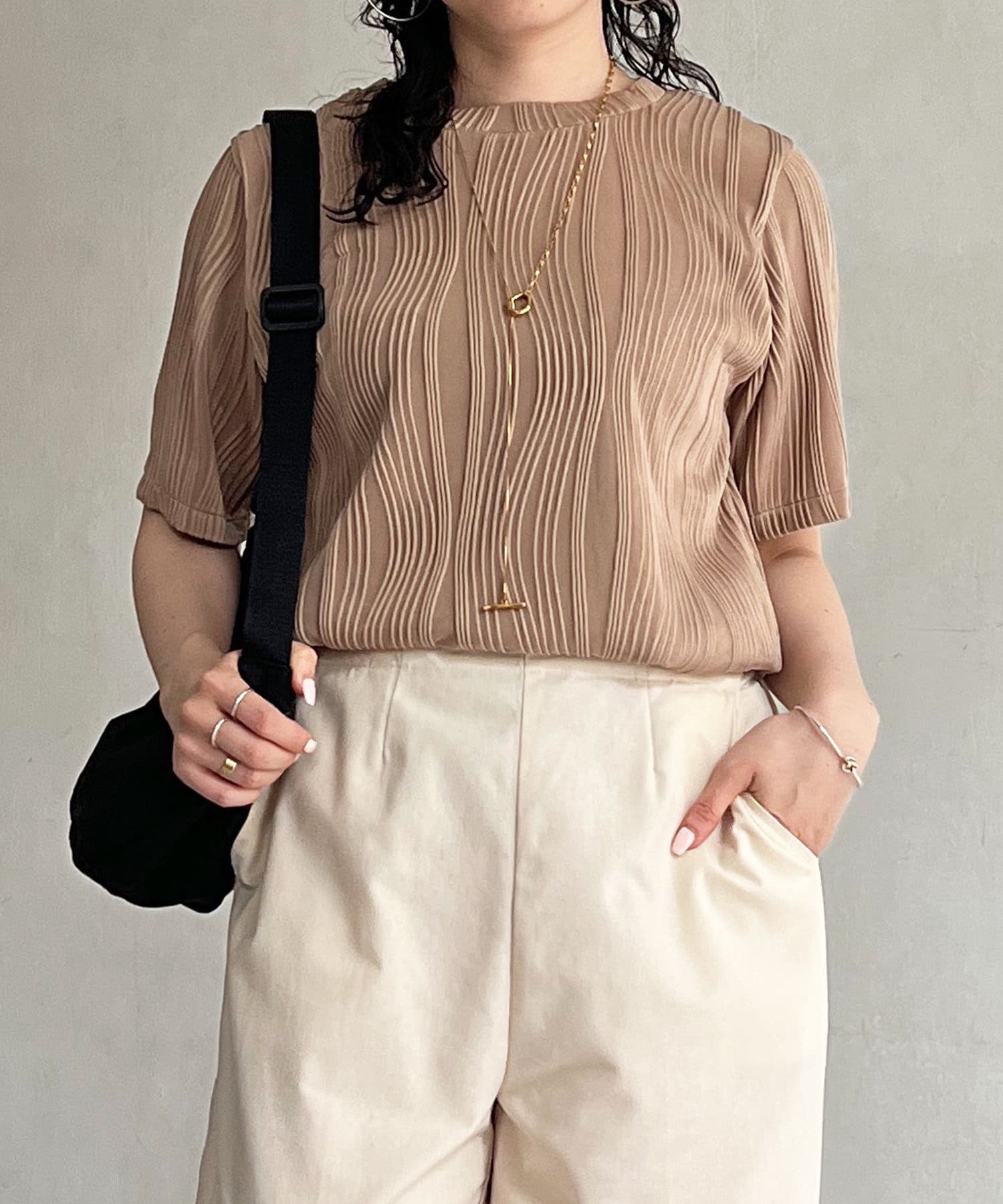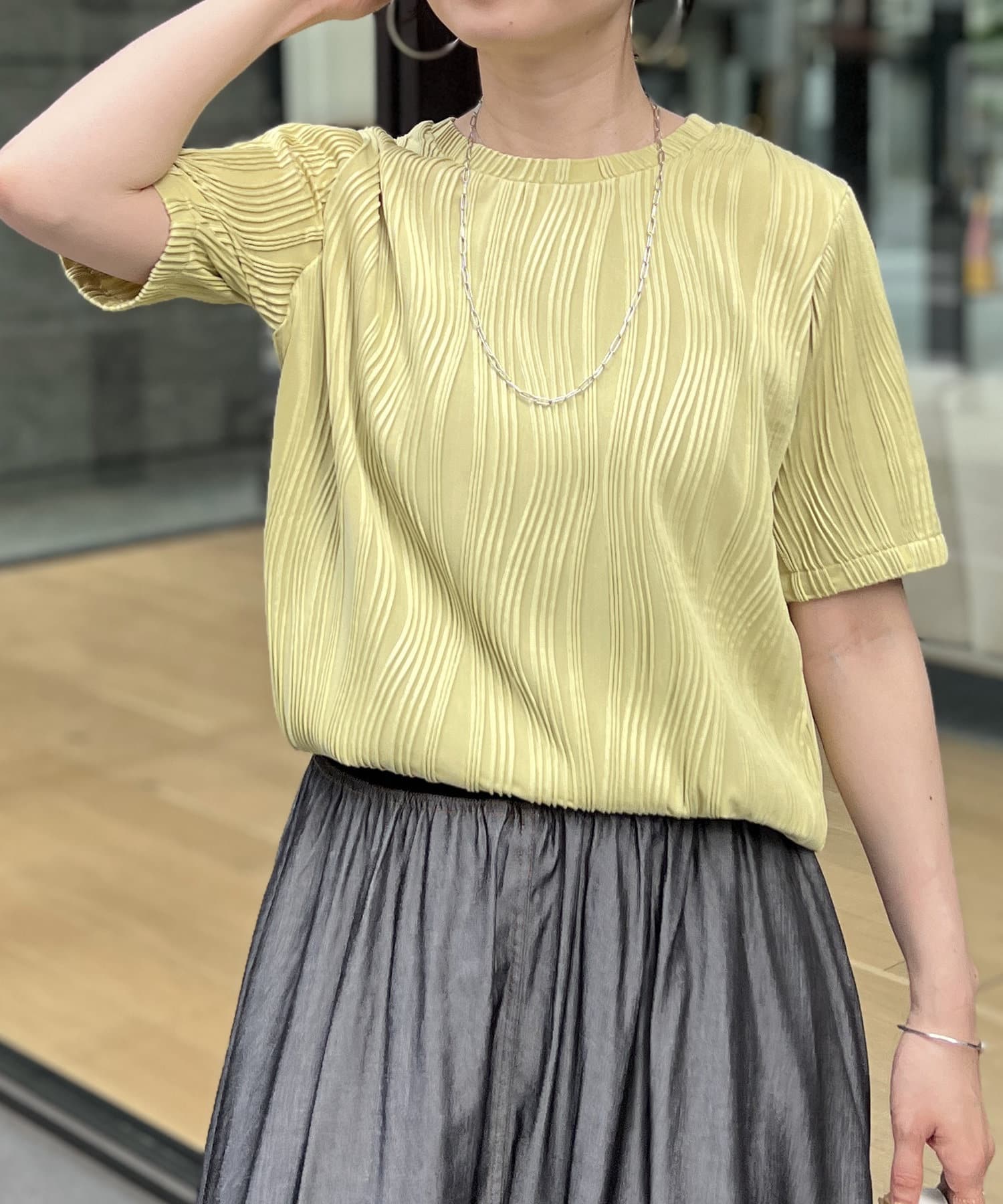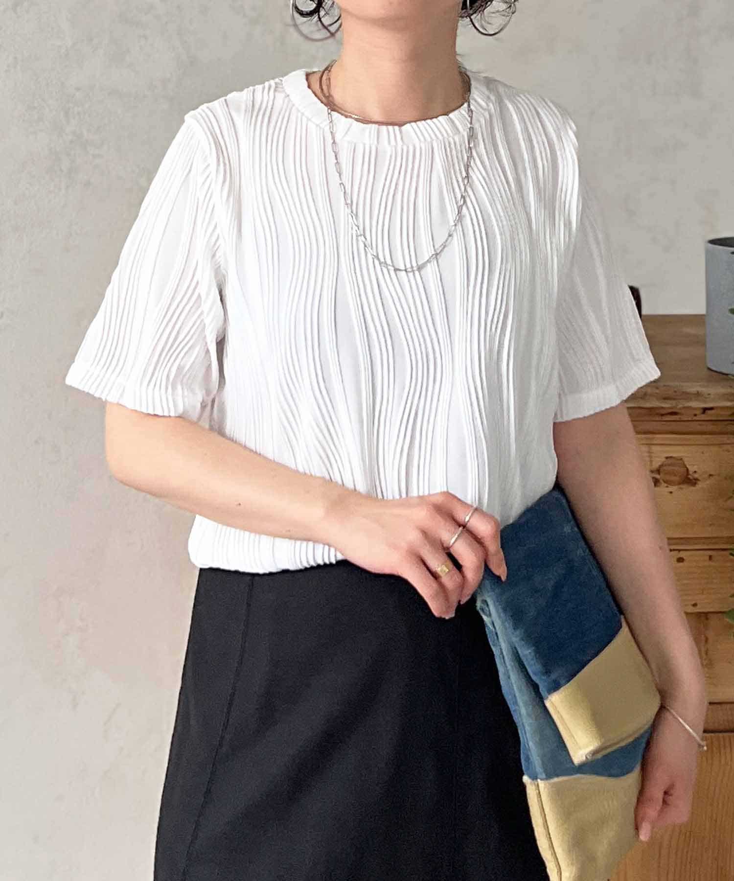 【マイナス3キロ見え!】ウェーブポンチカットソー