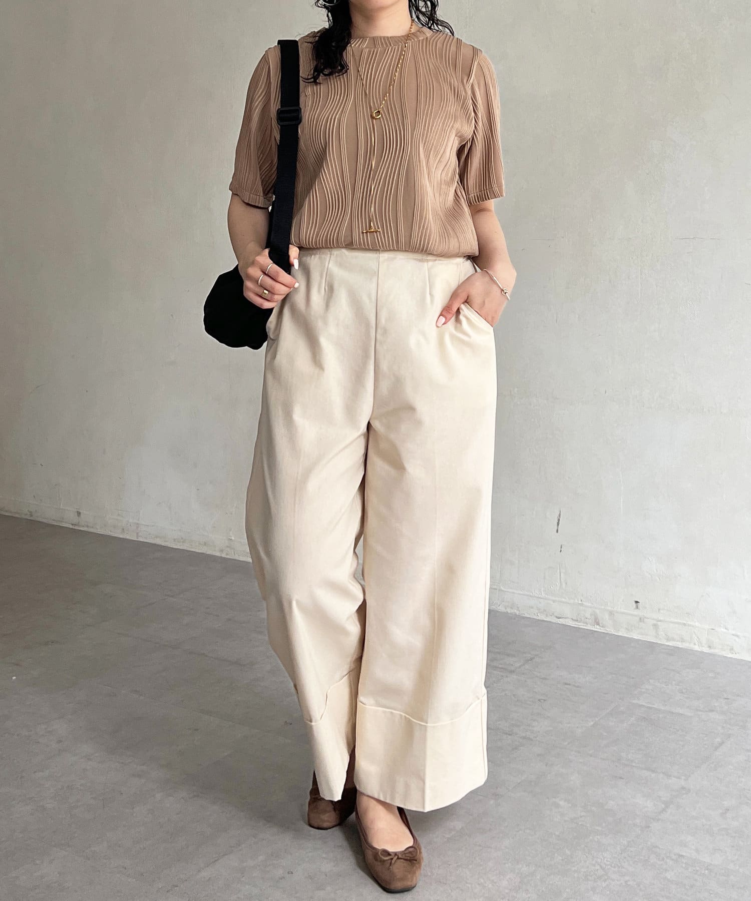 きれいめパンツやスカートに合わせて上品カジュアルに合わせるのがおすすめ。