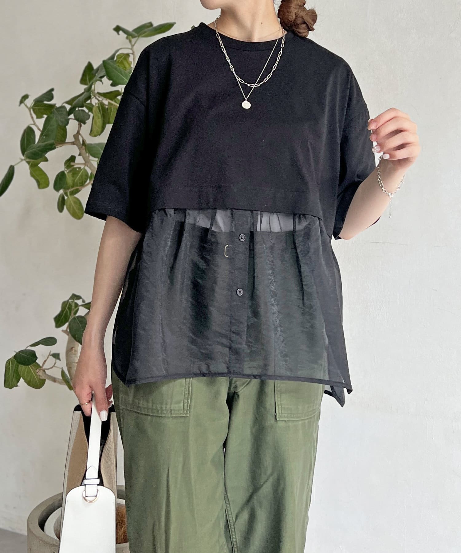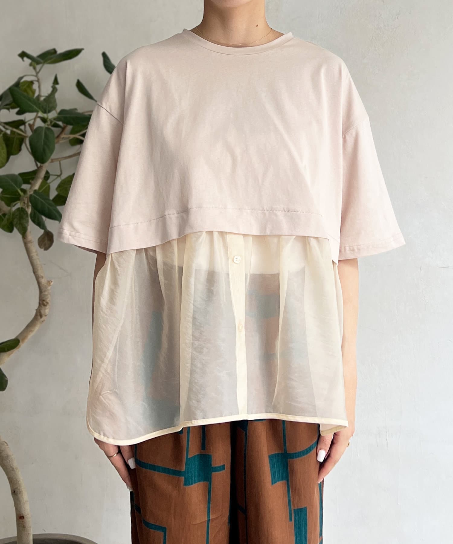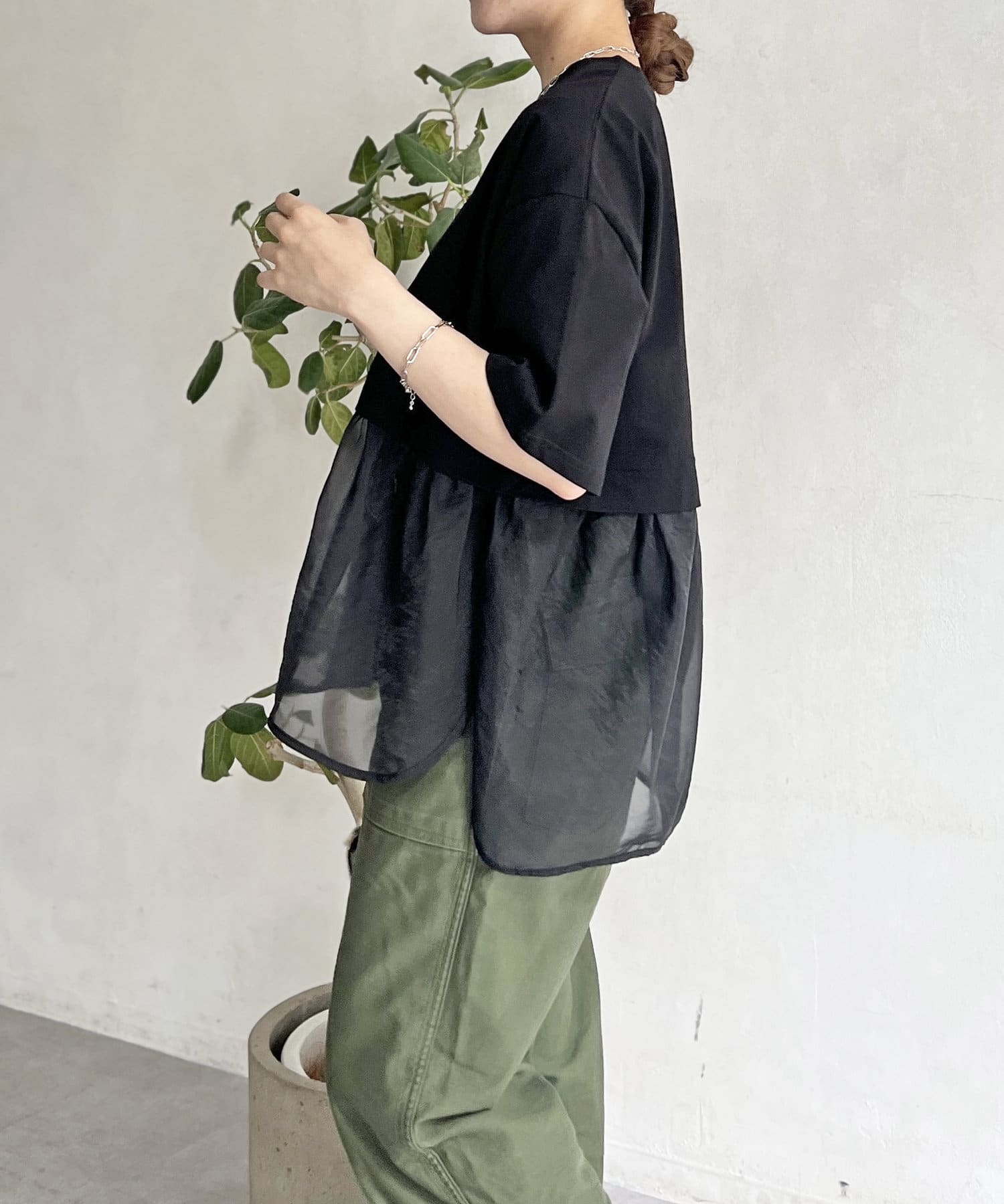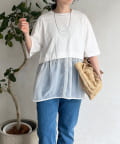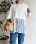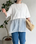 裾にシアー素材をドッキングしたデザインカットソー。