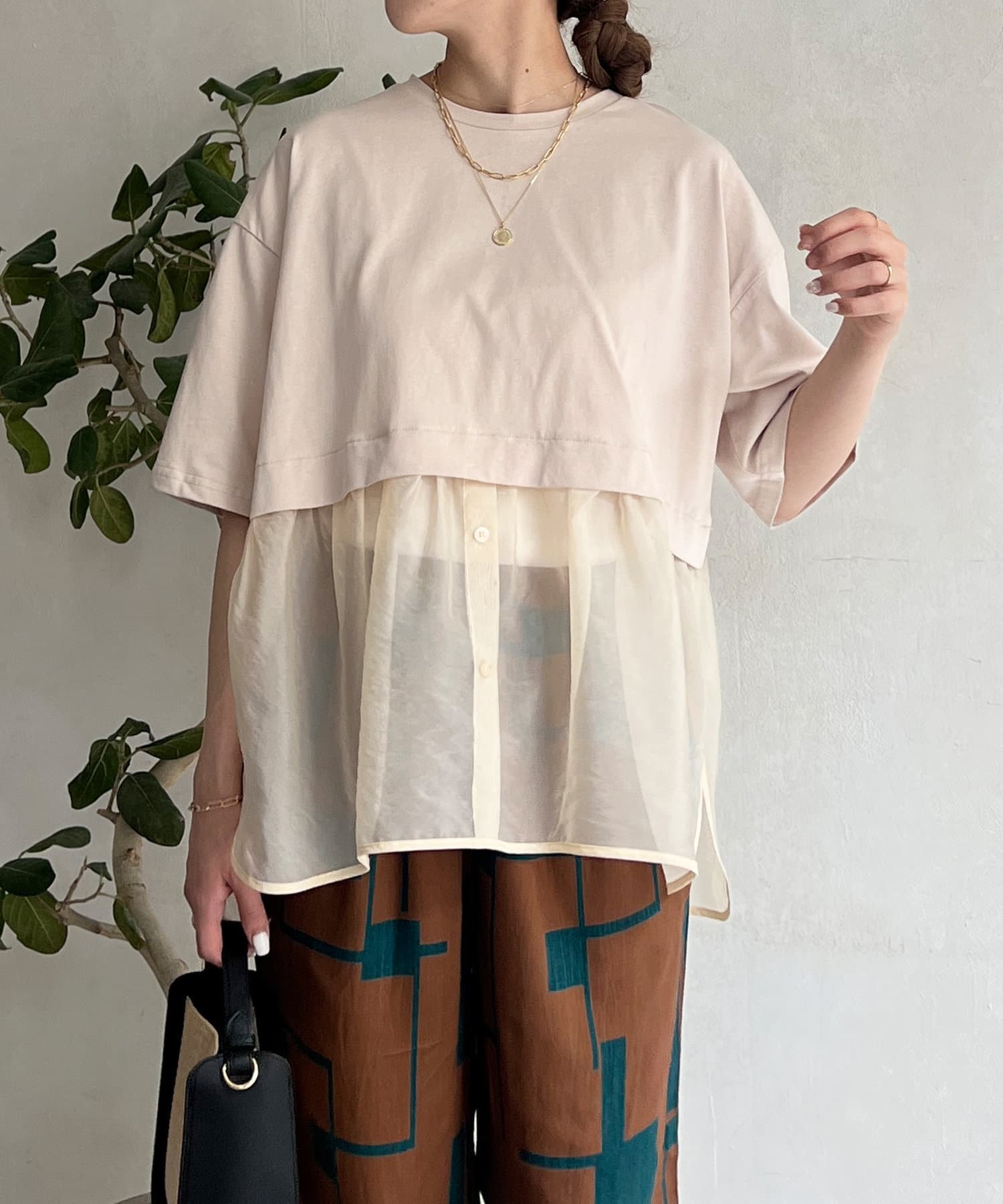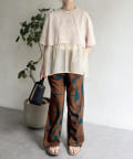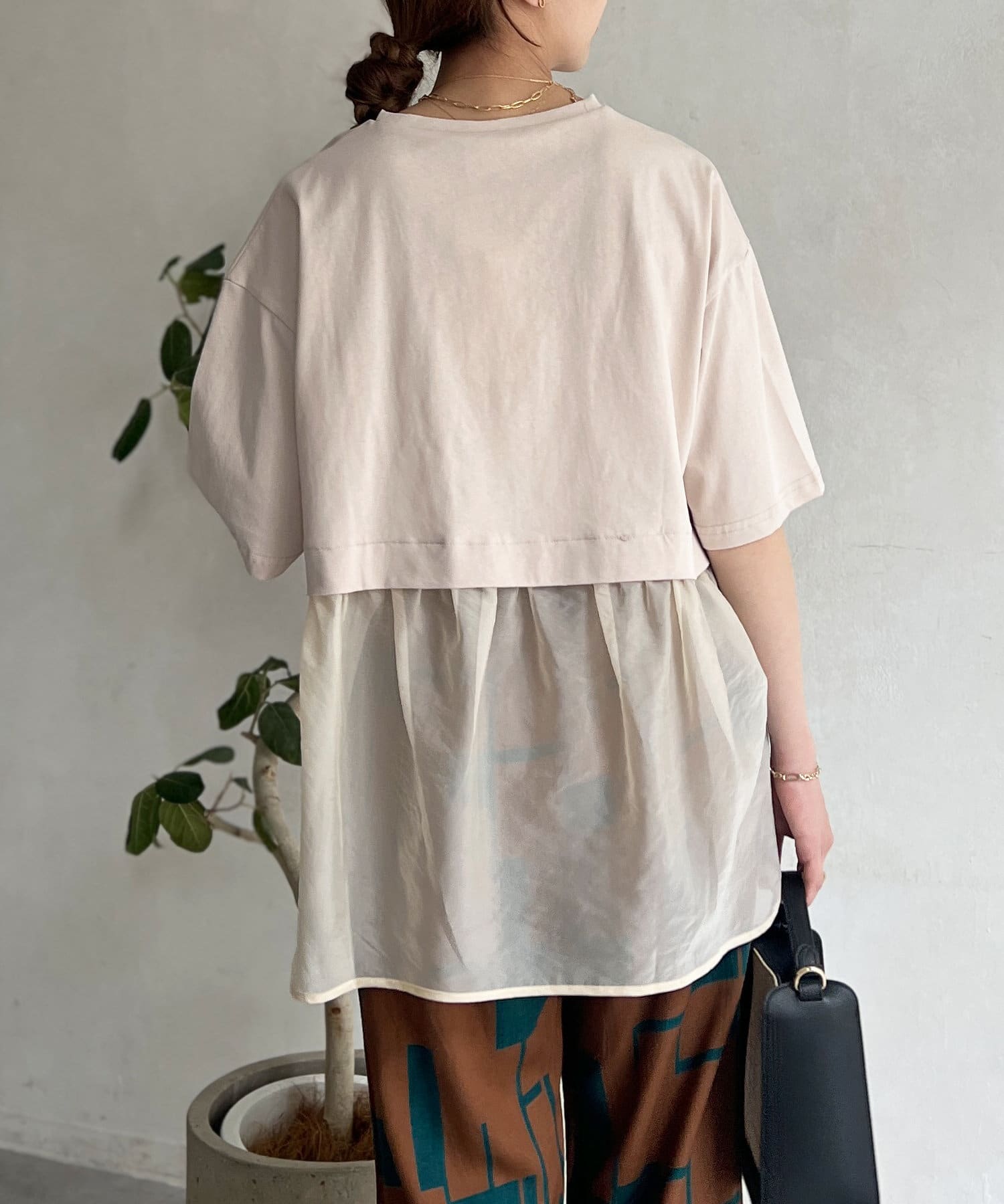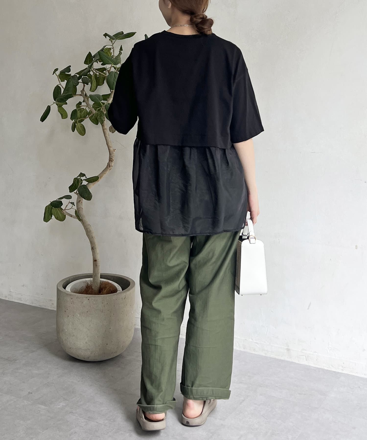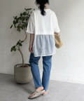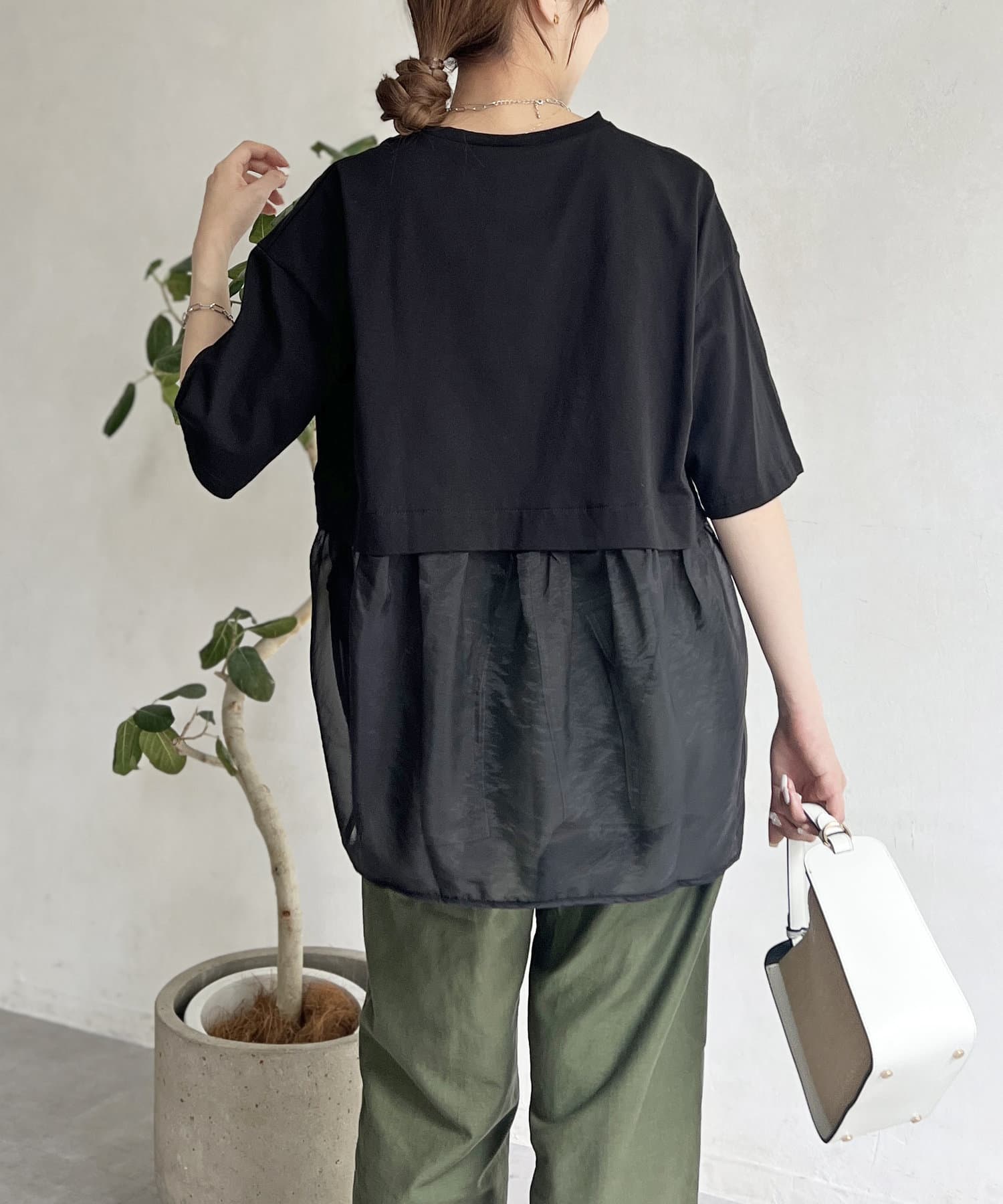 裾にシアー素材をドッキングしたデザインカットソー。
