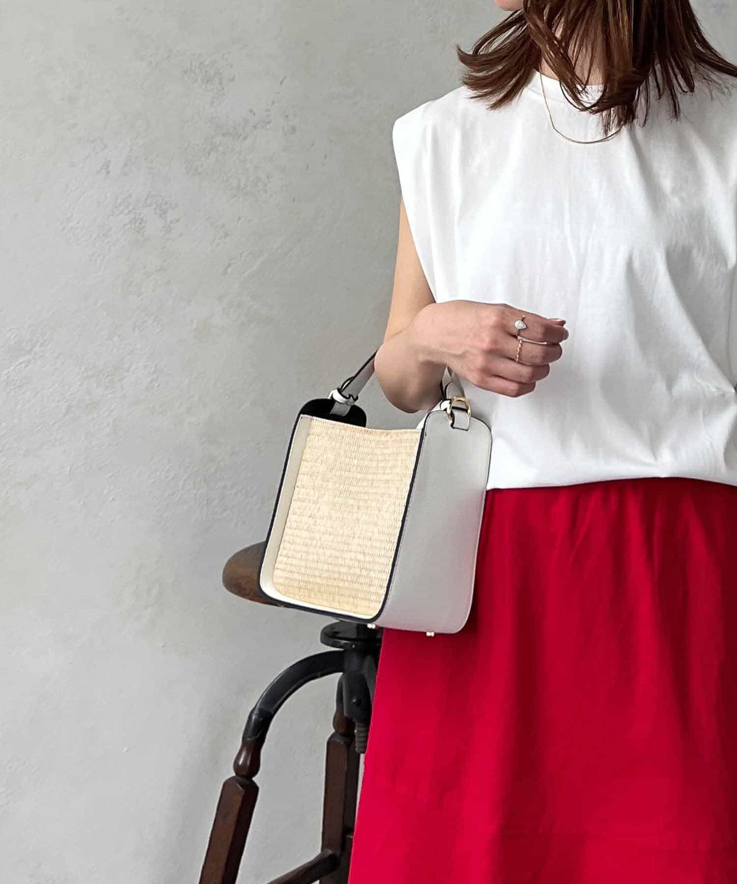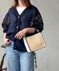 コーディネートのアクセントにもなるスクエア型はマチがしっかりあるので、見た目以上に容量もたっぷり入ります。
