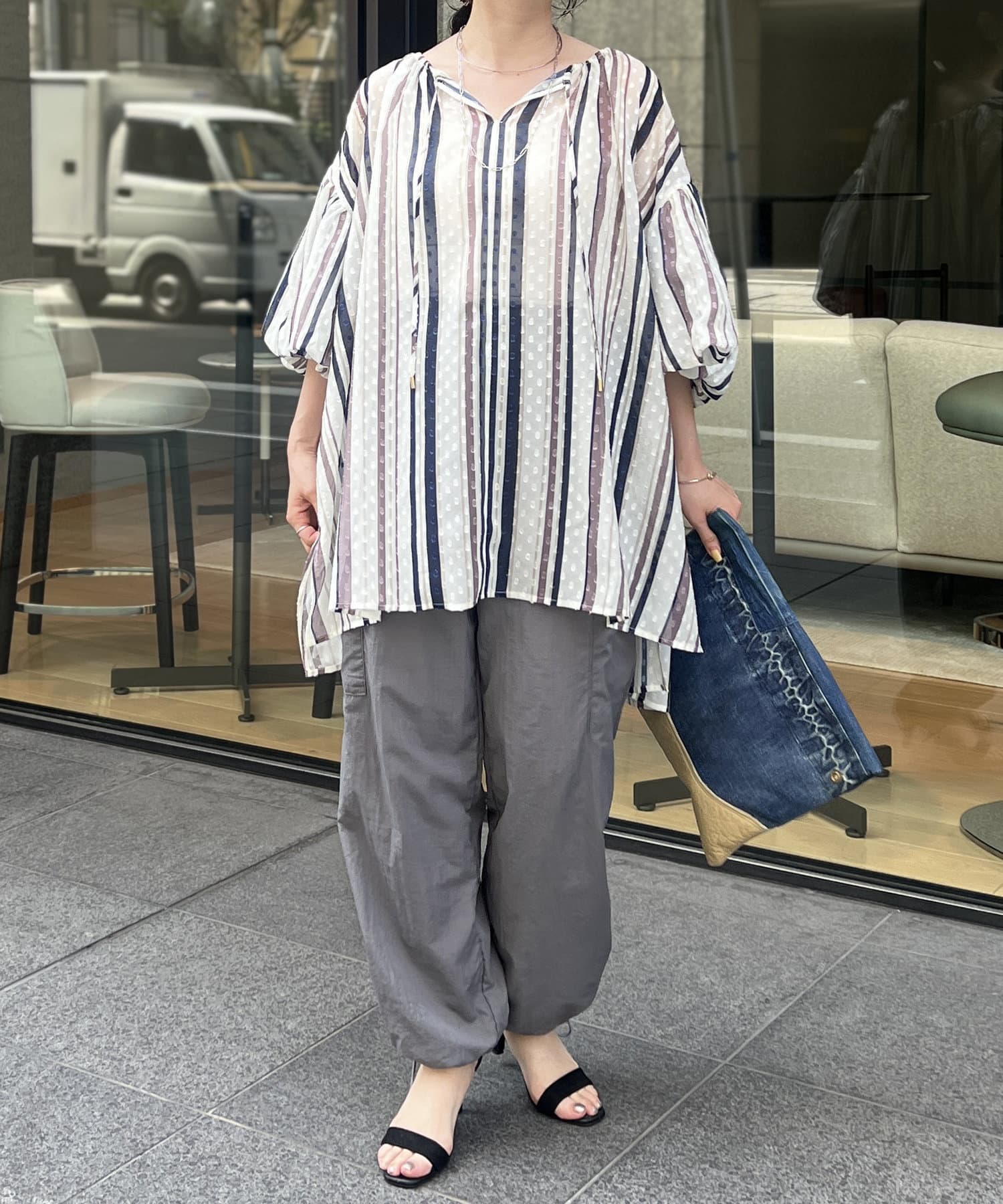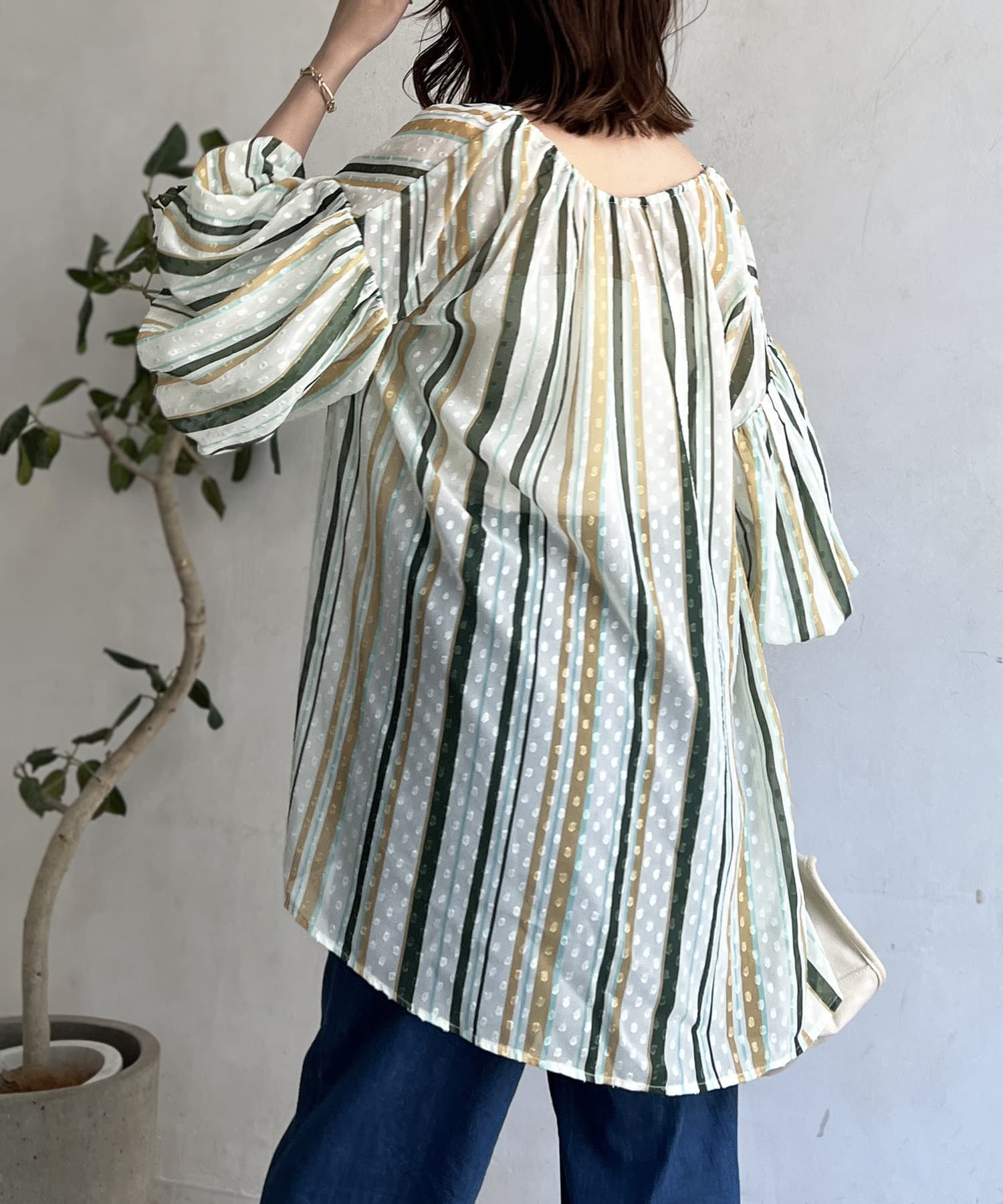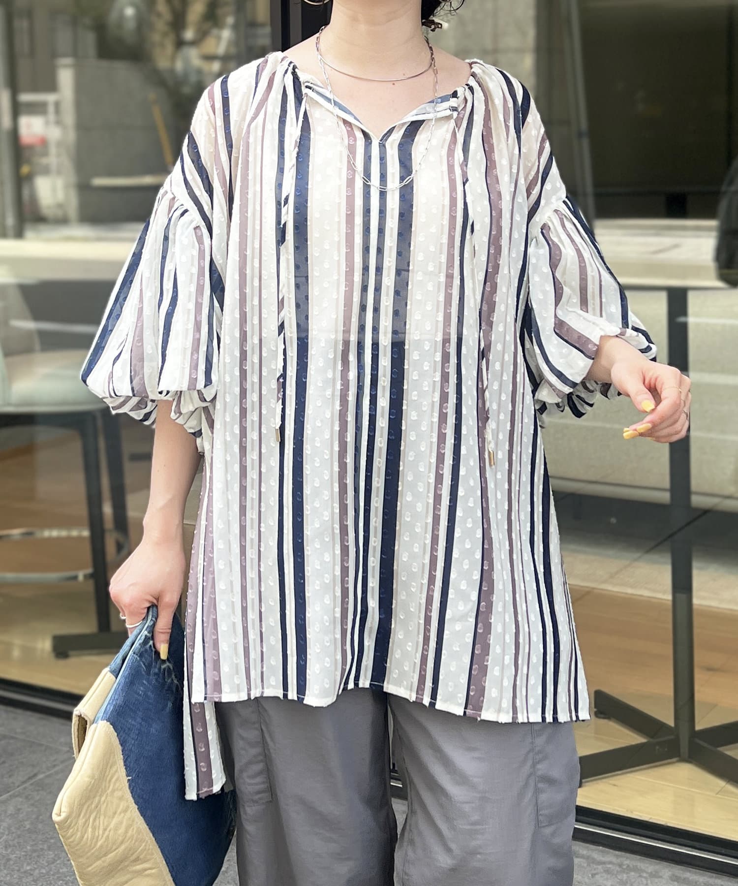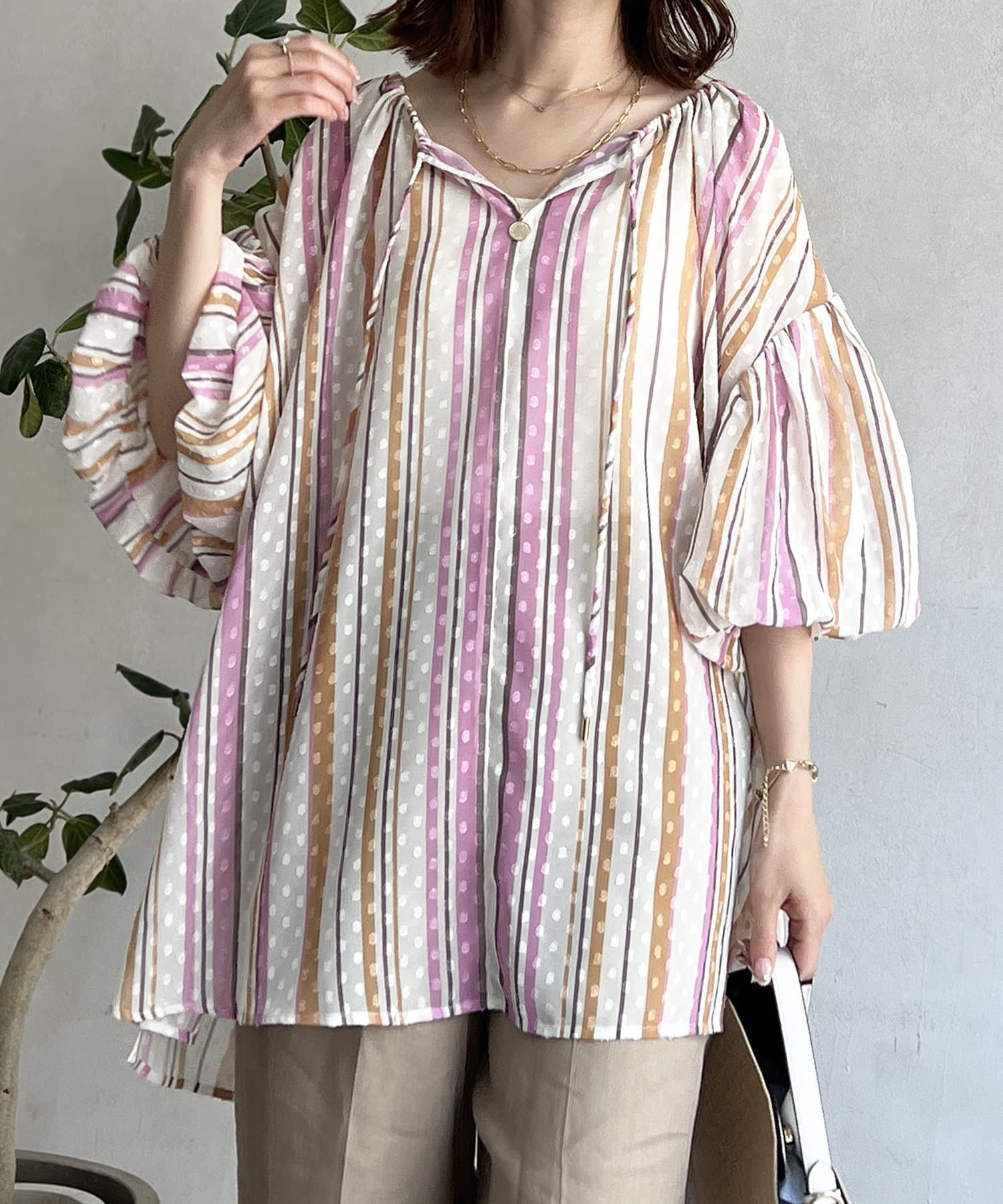 TOP > Croisiere > レディース > トップス > シャツ/ブラウス(プルオーバー) > マルチストライプバルーンスリーブブラウス