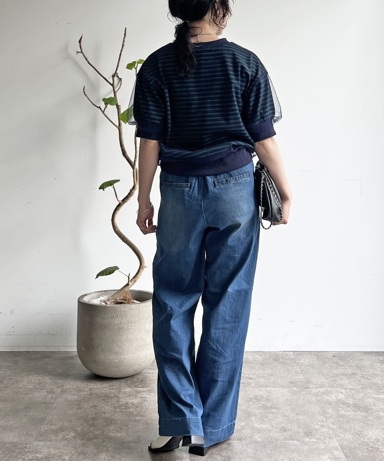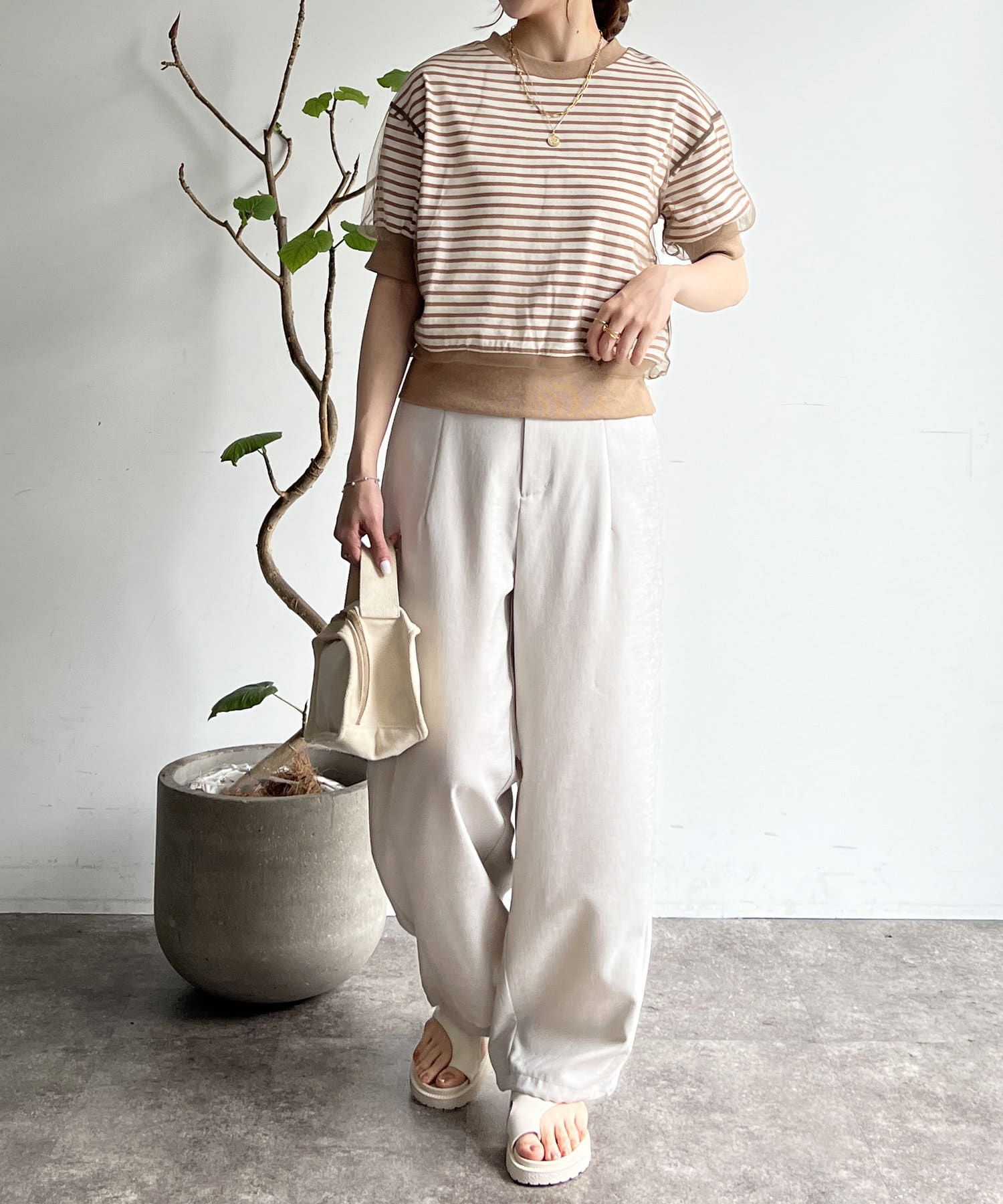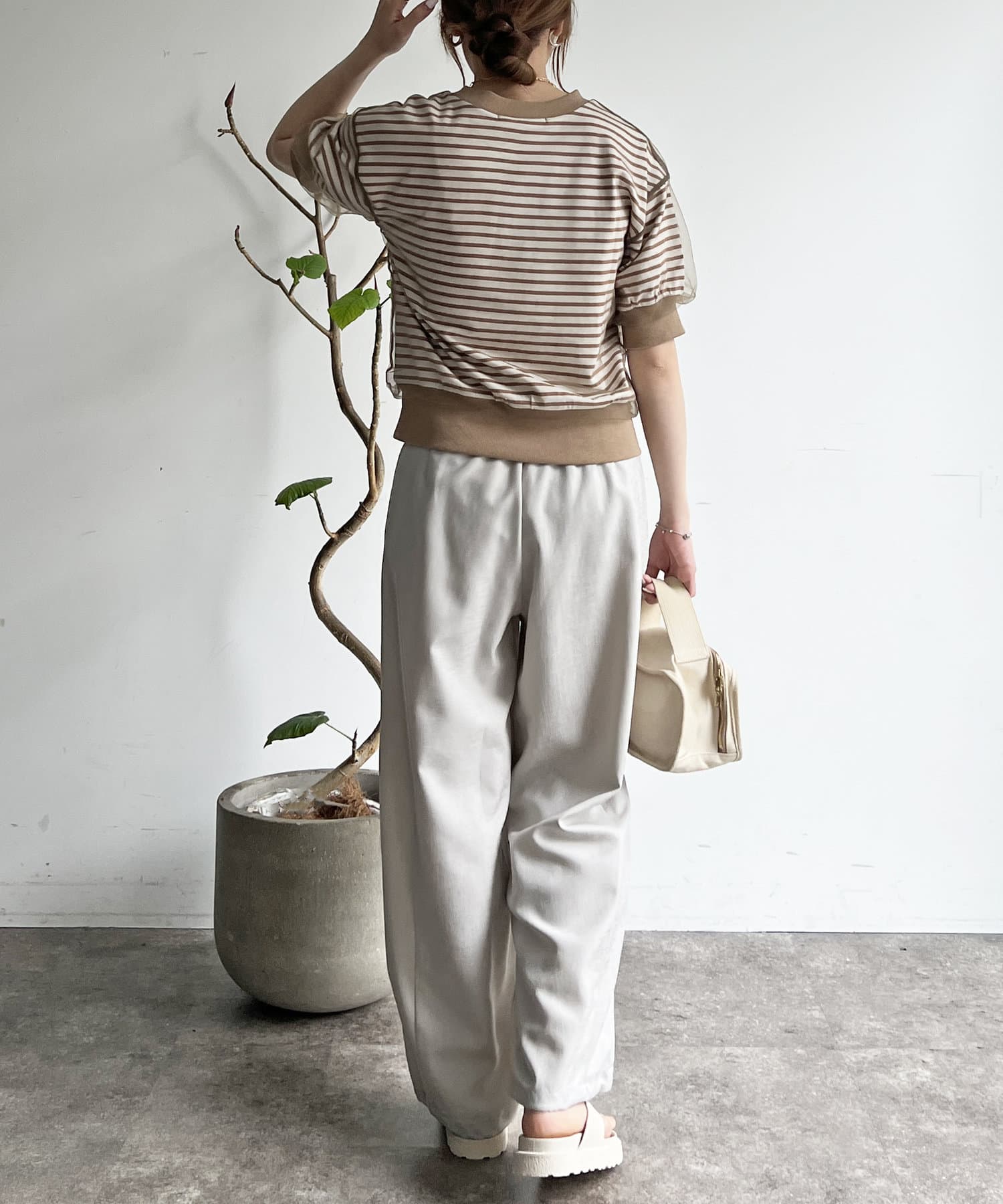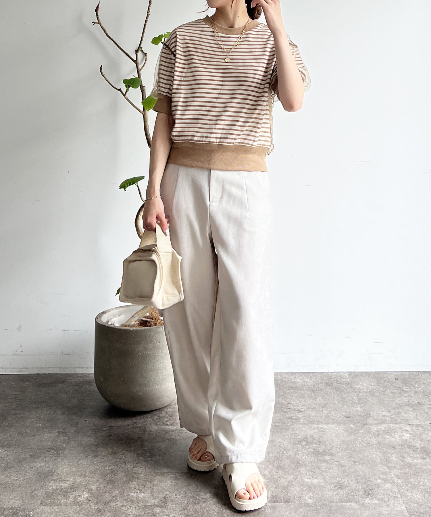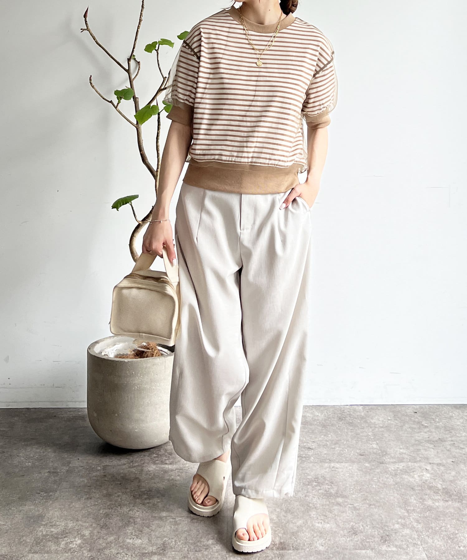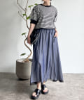 インしなくてもフィットする丈感なので、ワイドパンツやフレアスカートでラフに合わせるのがおすすめ!