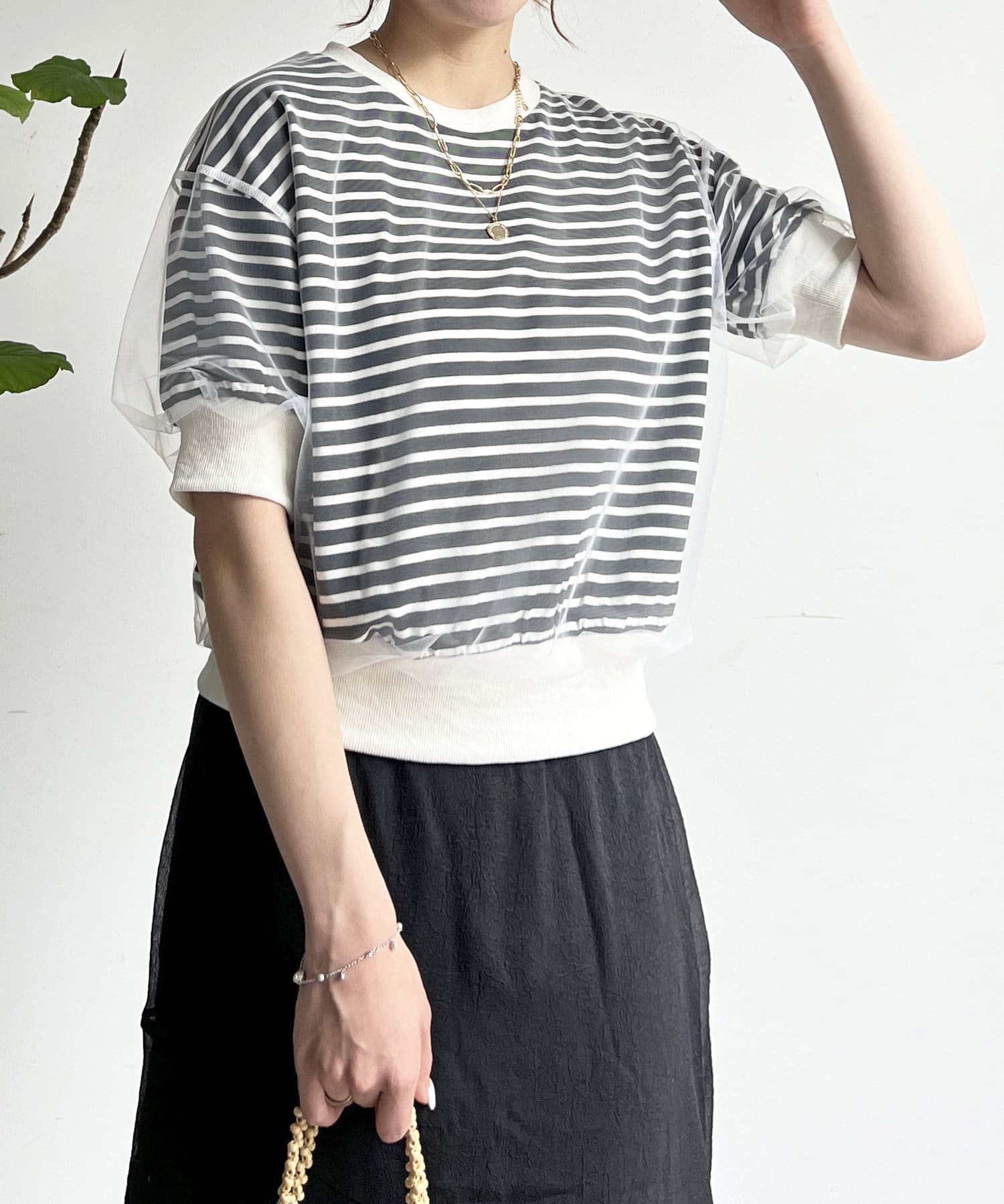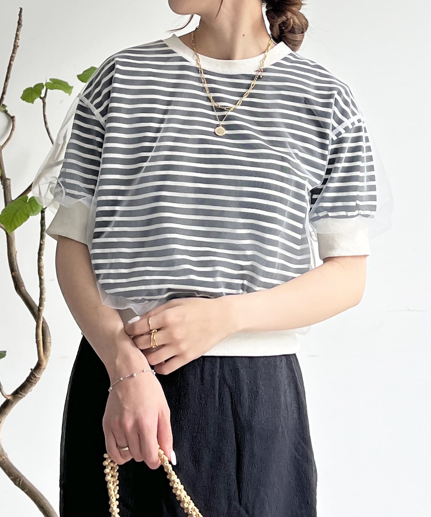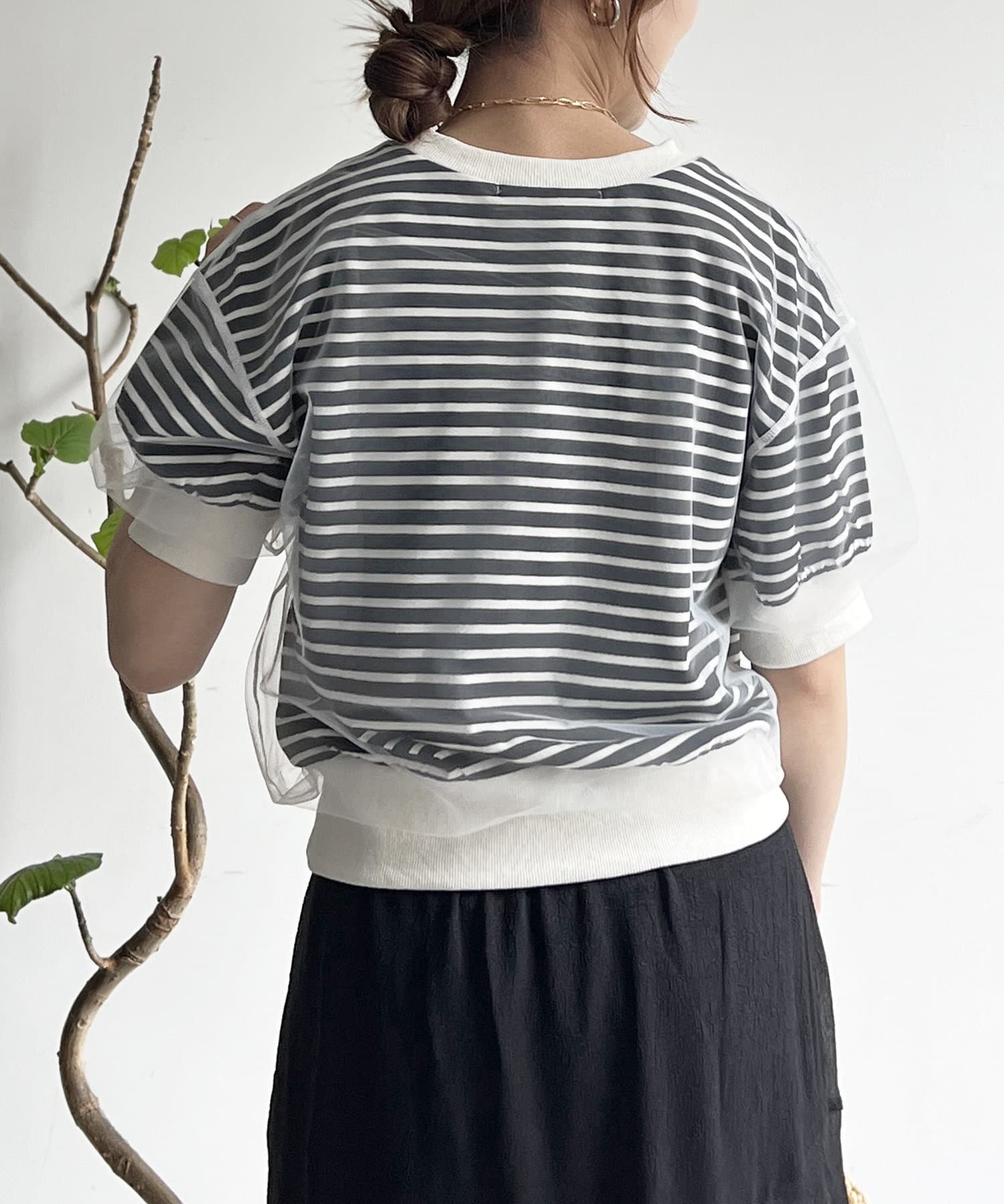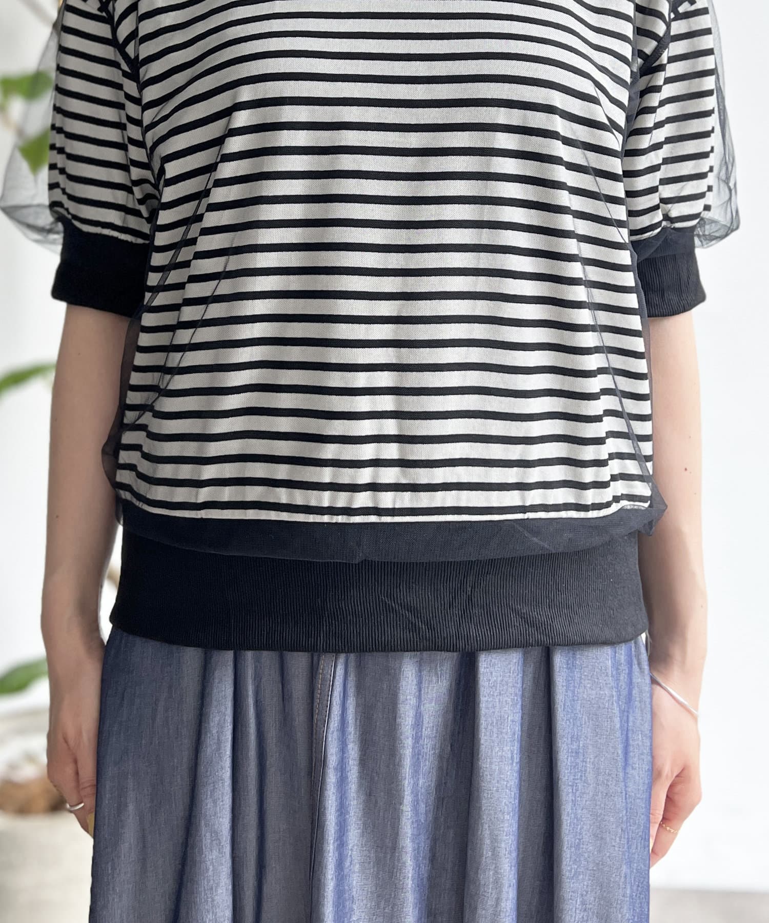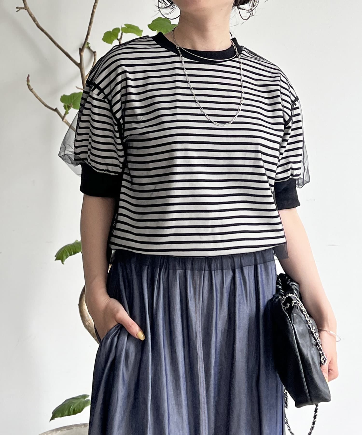 トレンドのチュール使いがアクセントになる大人ボーダートップス