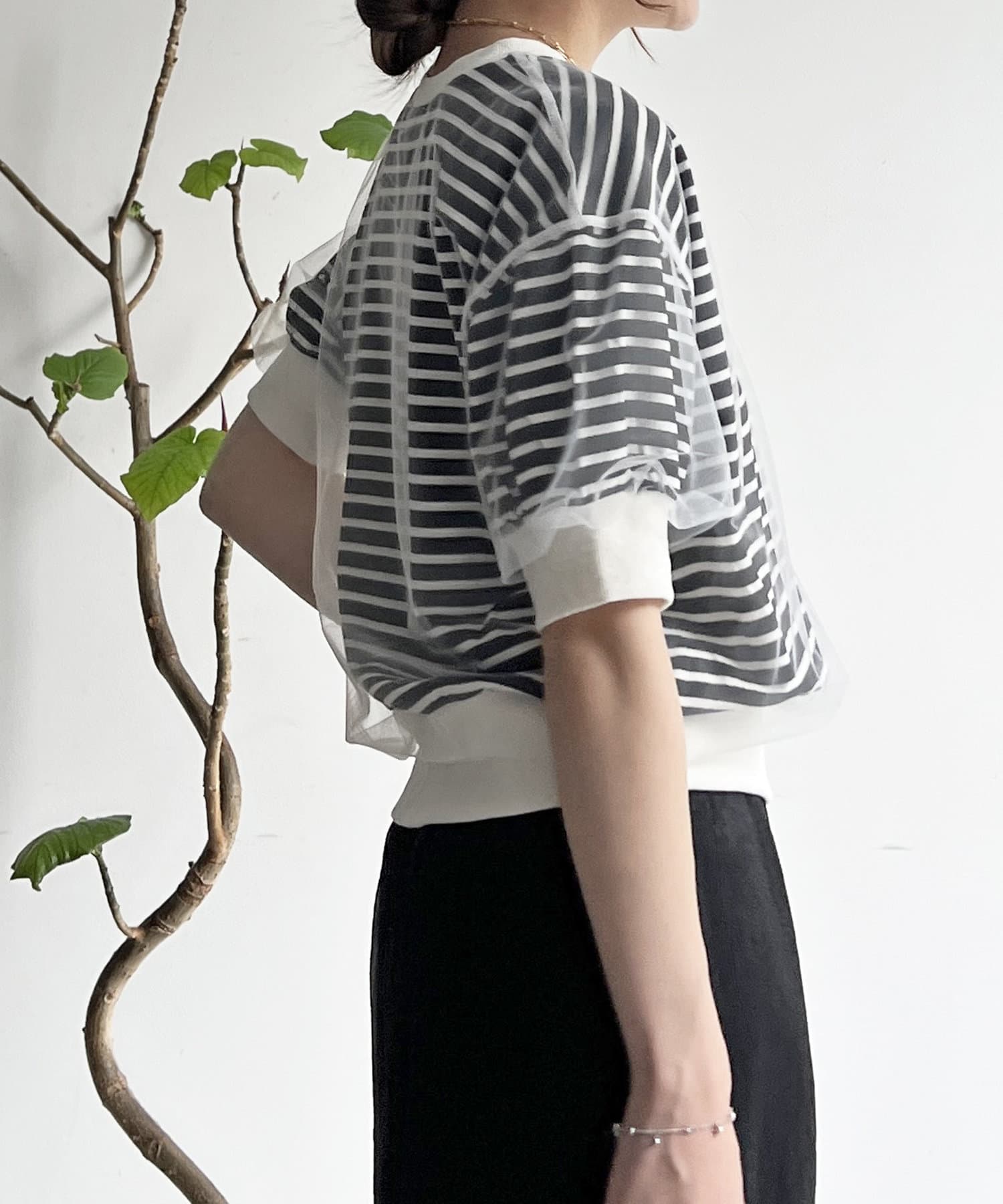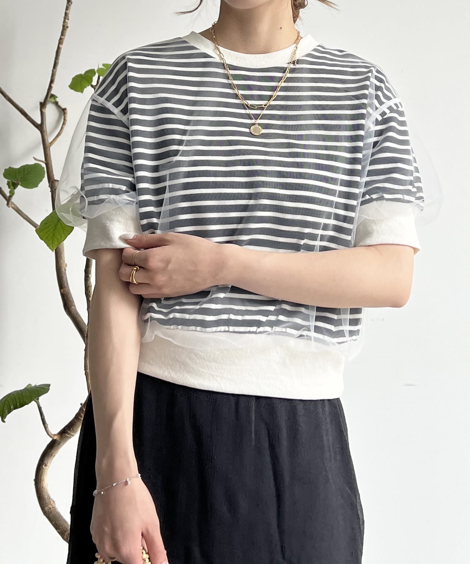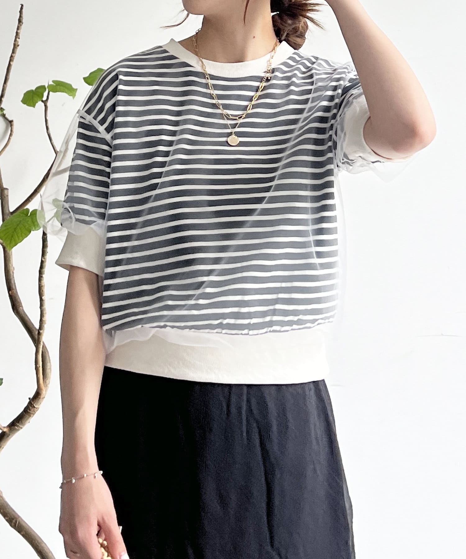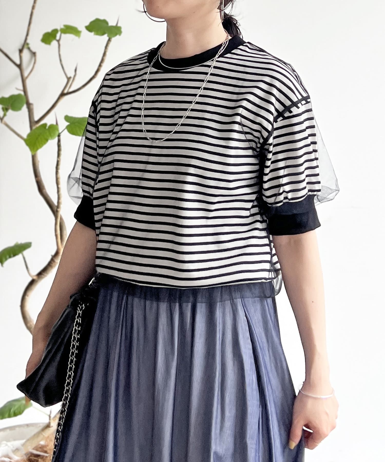トレンドのチュール使いがアクセントになる大人ボーダートップス