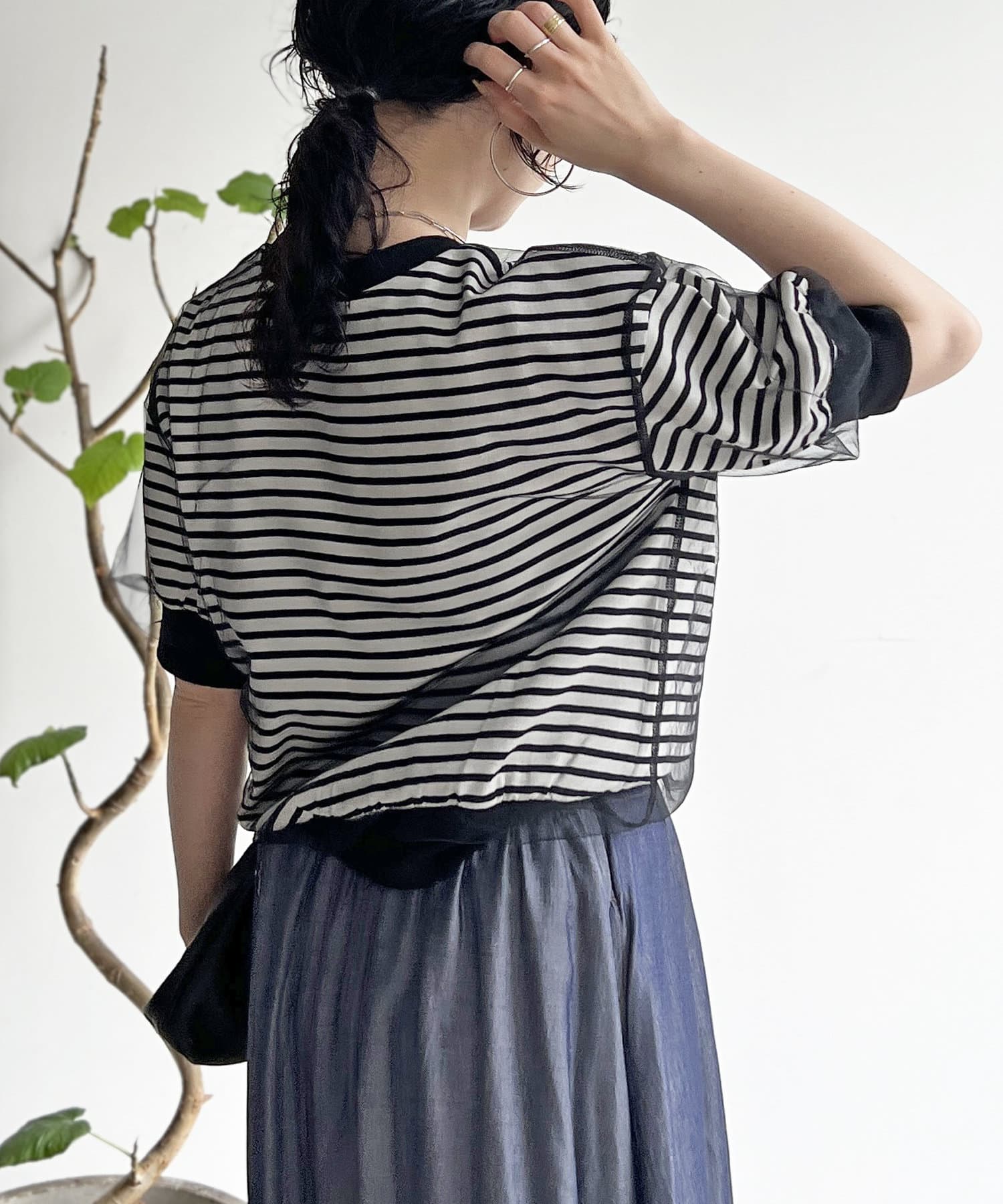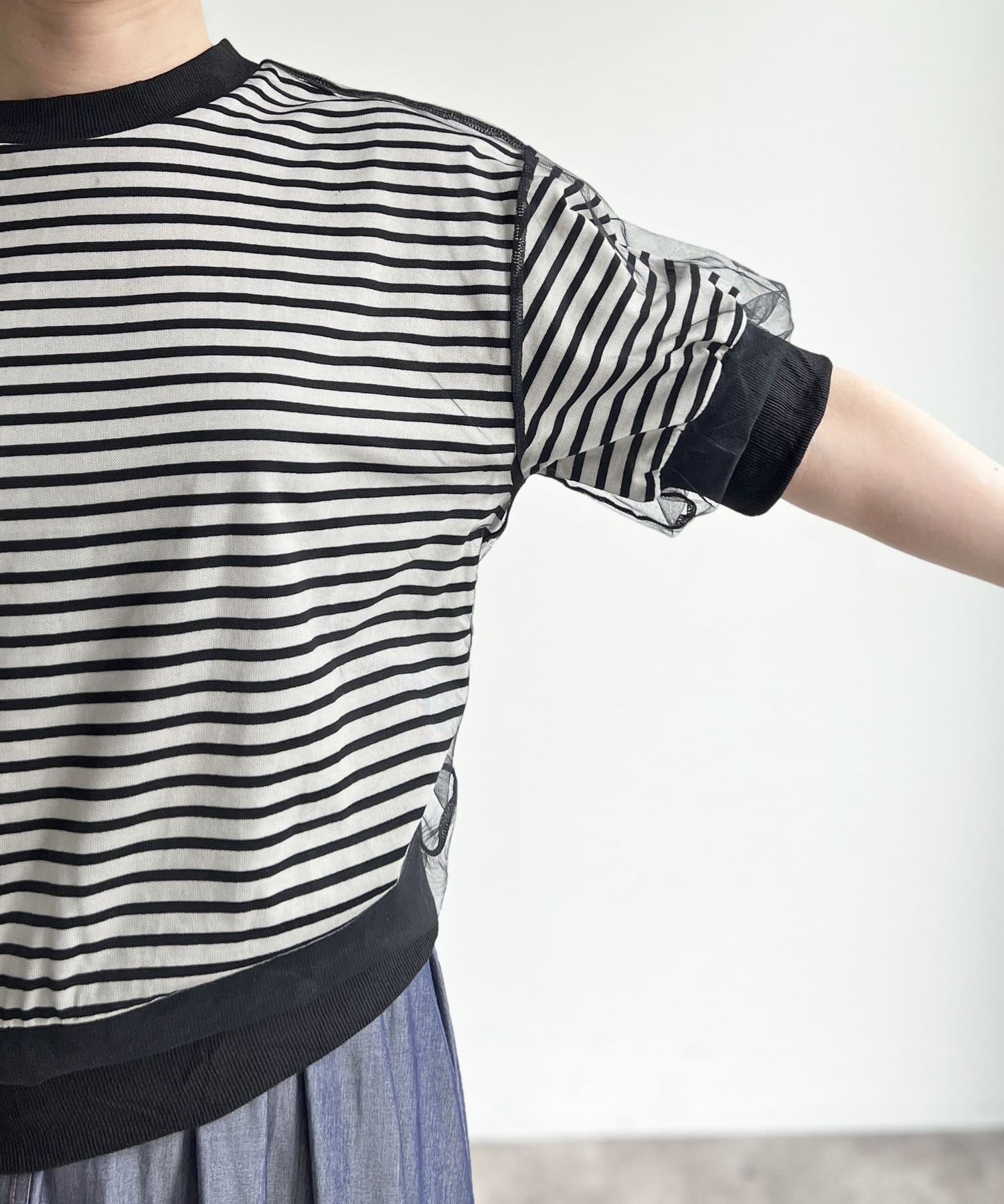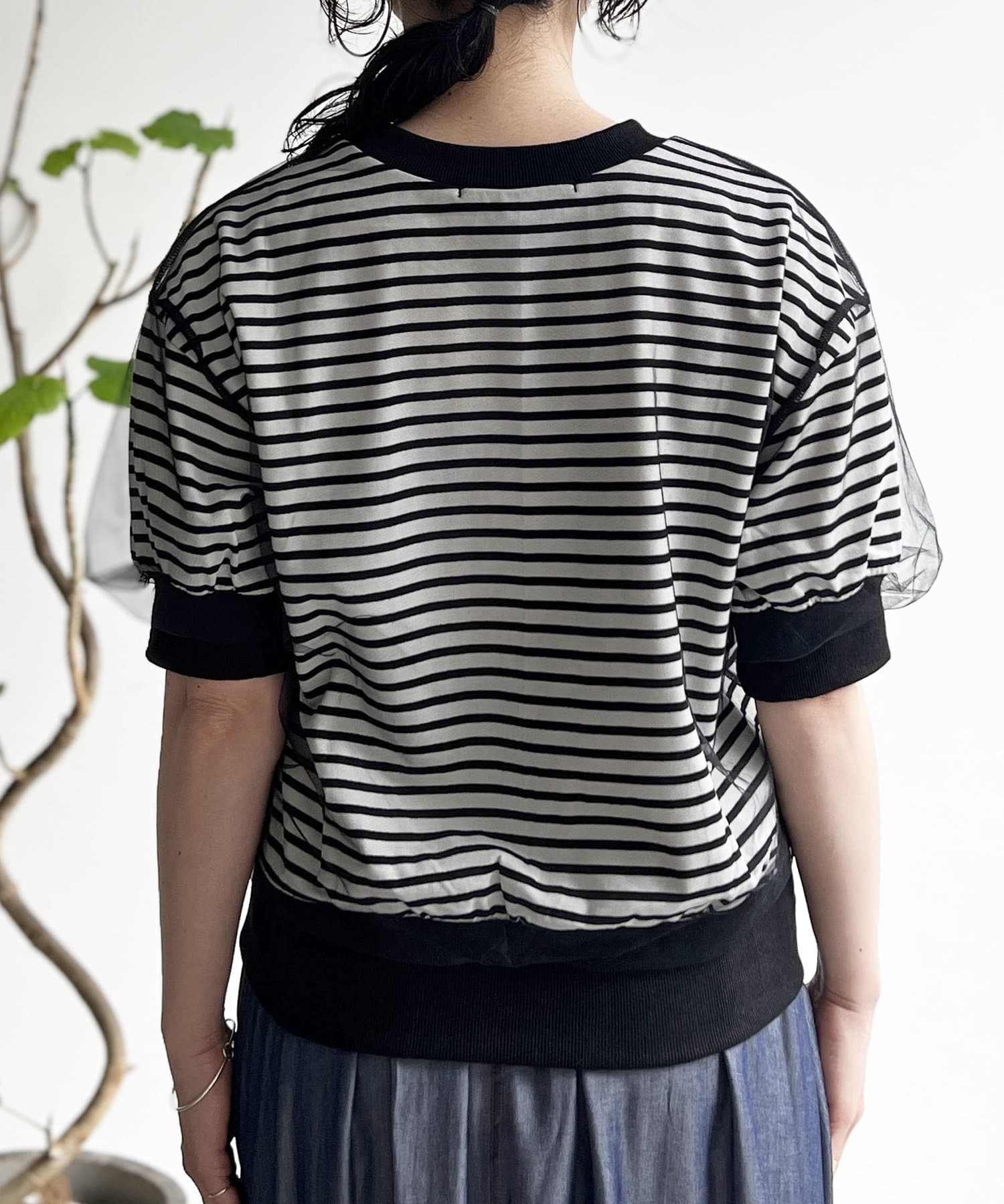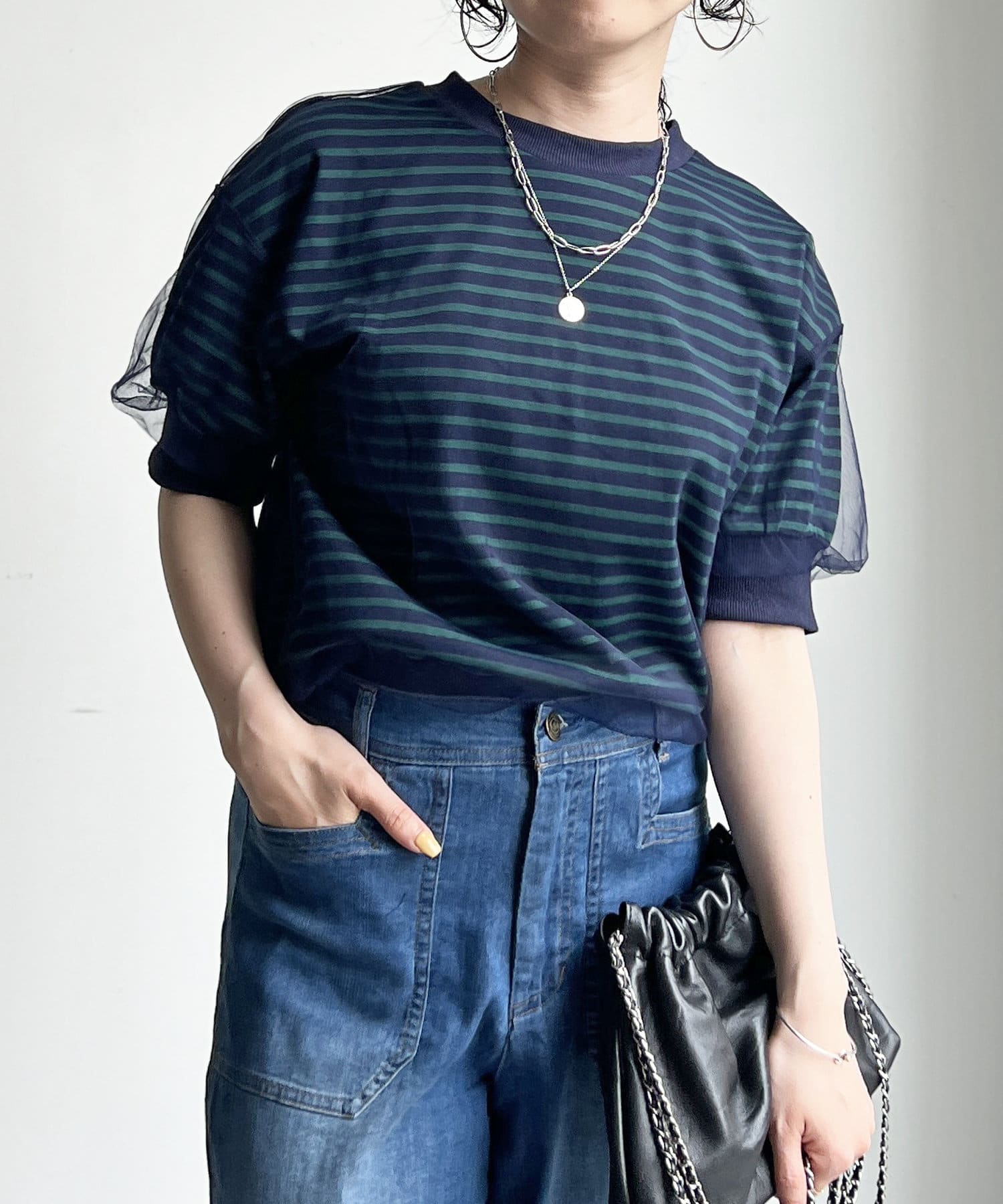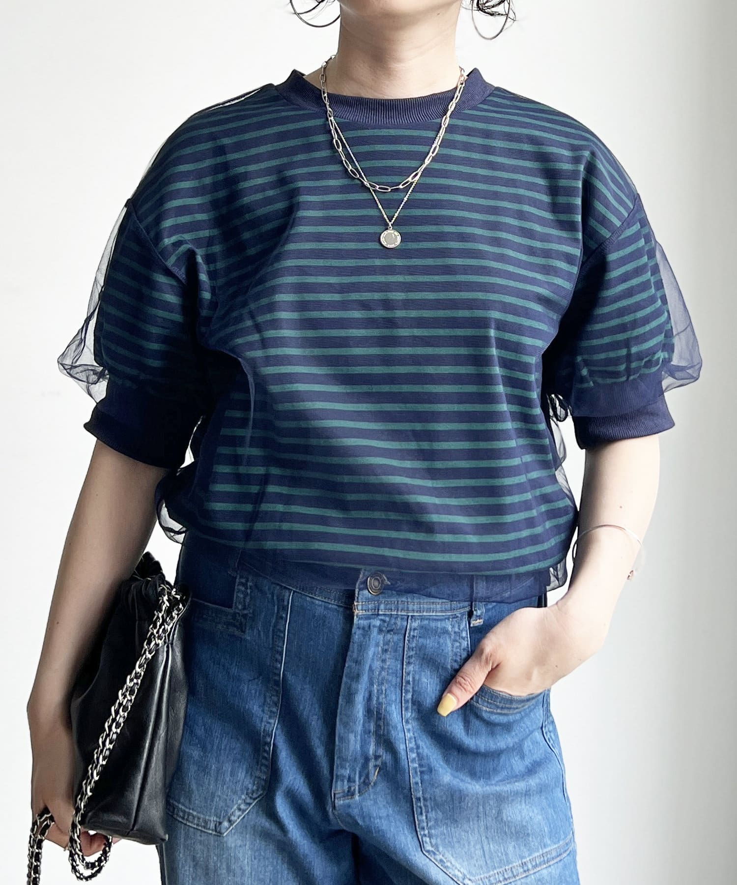 トレンドのチュール使いがアクセントになる大人ボーダートップス