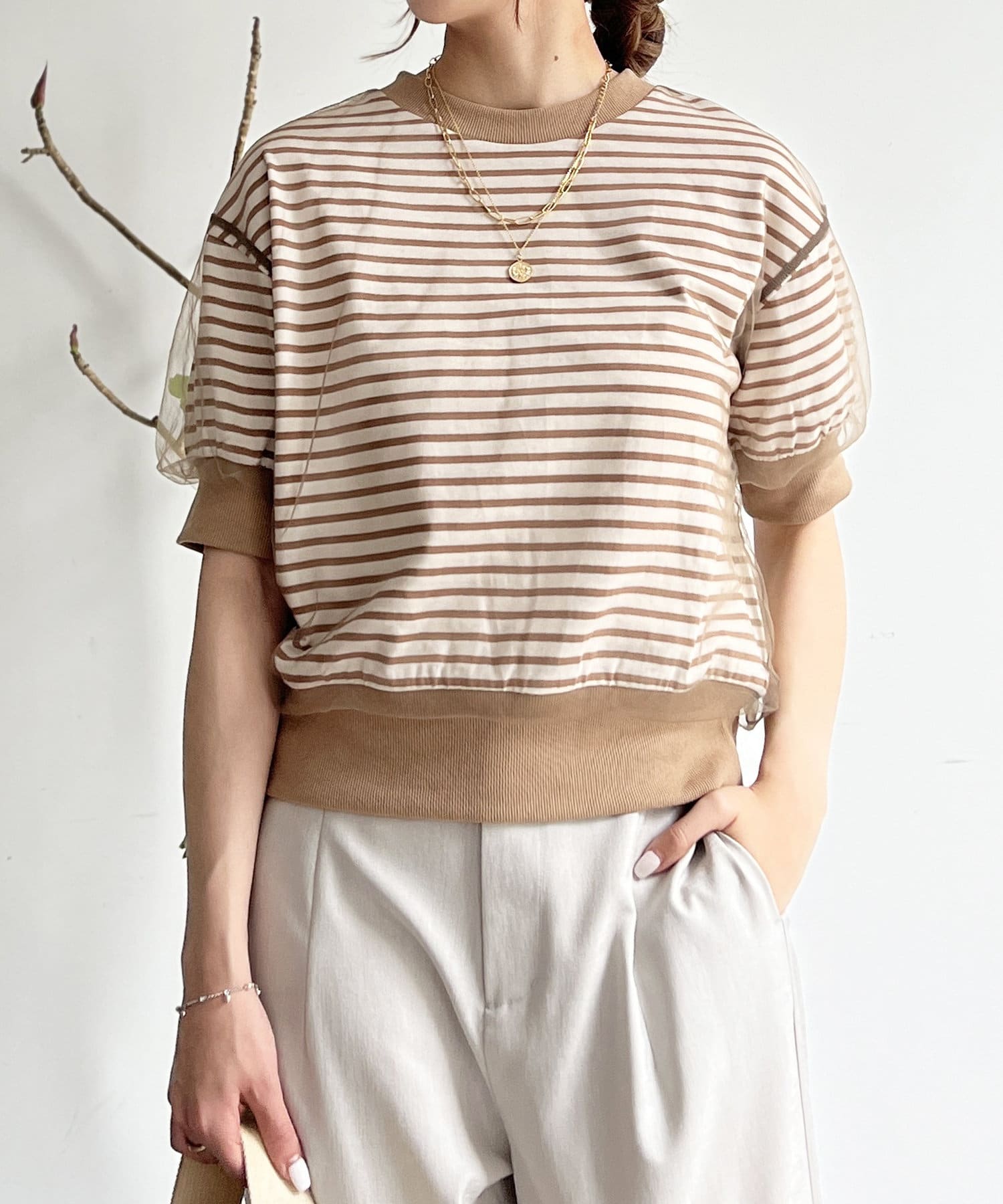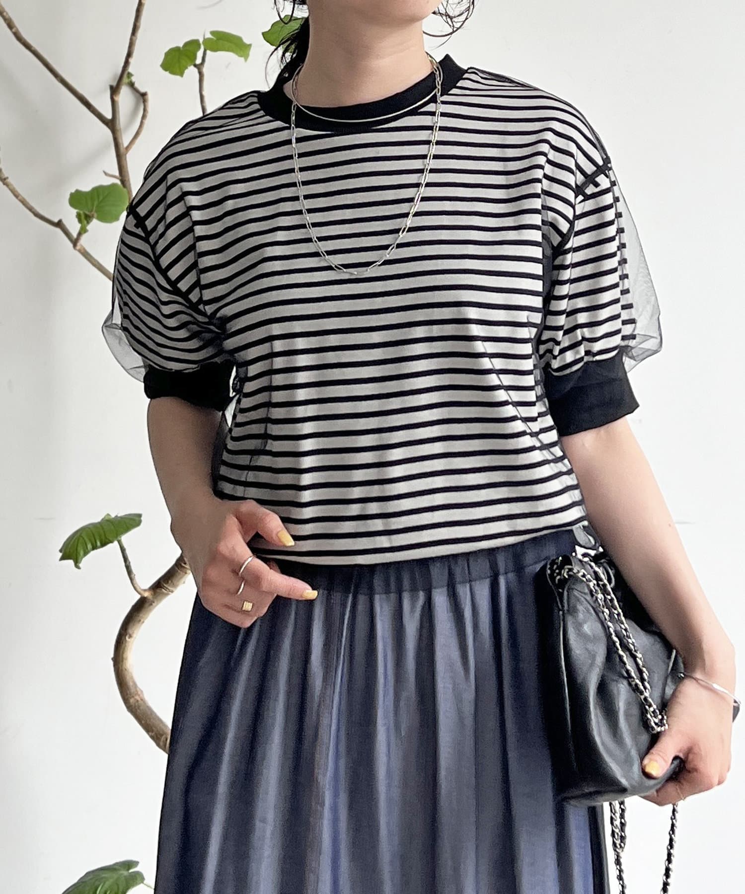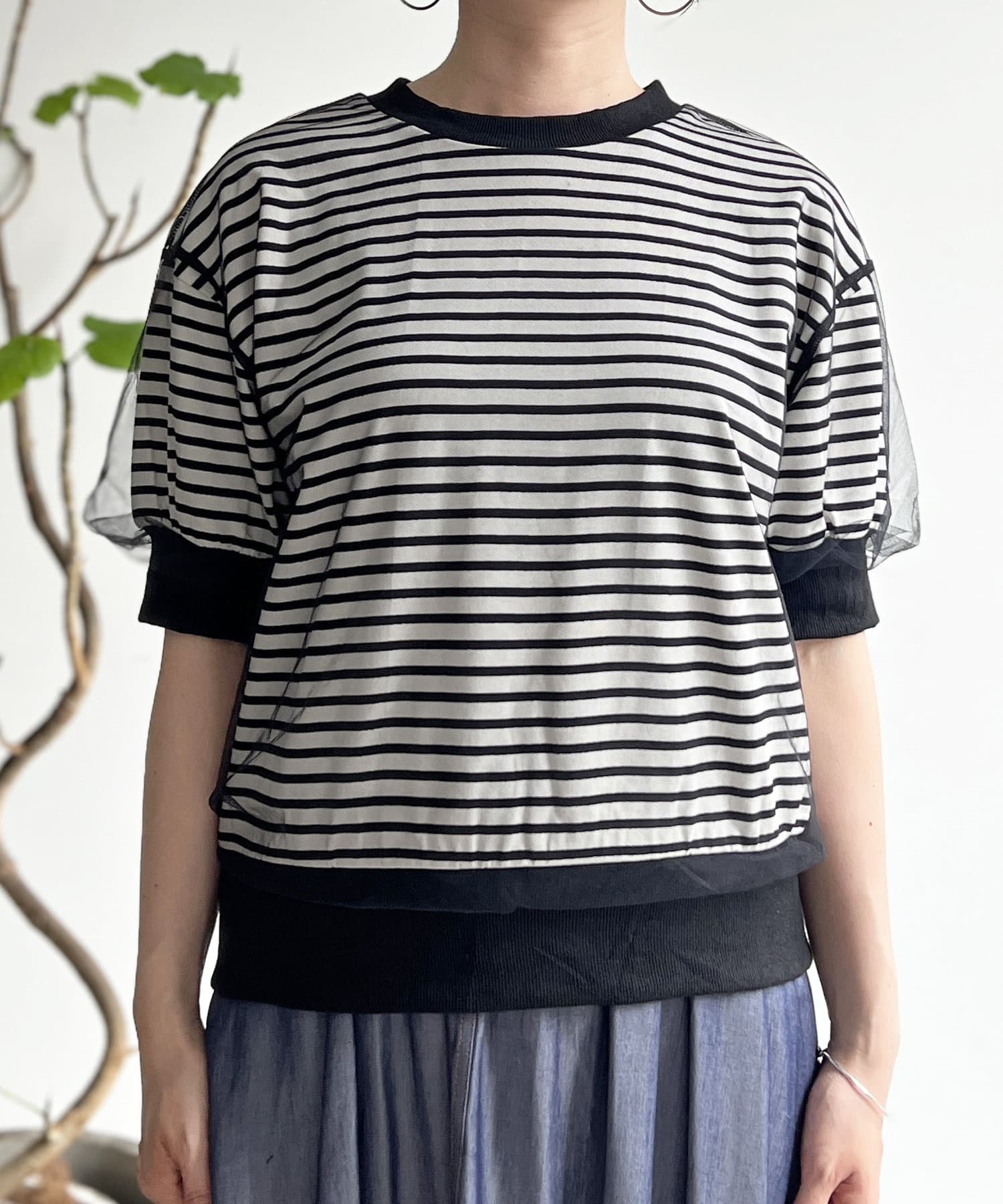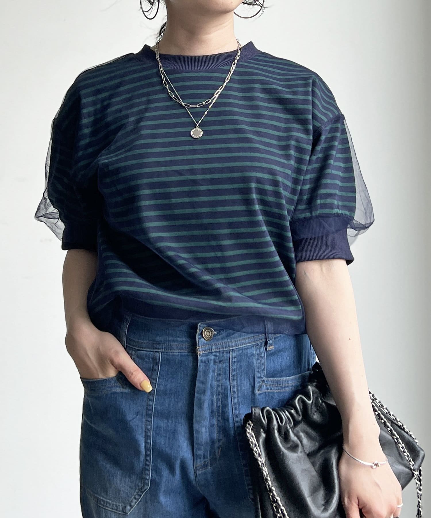 トレンドのチュール使いがアクセントになる大人ボーダートップス
