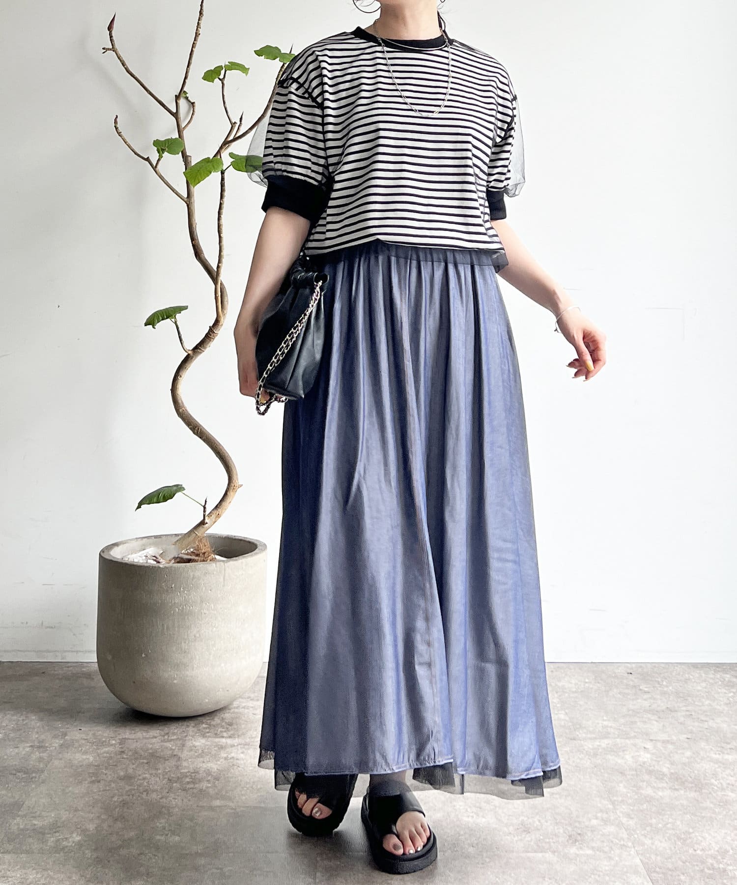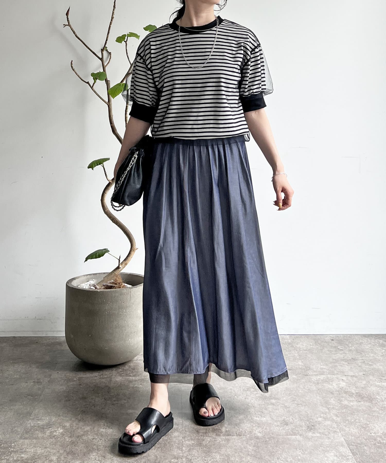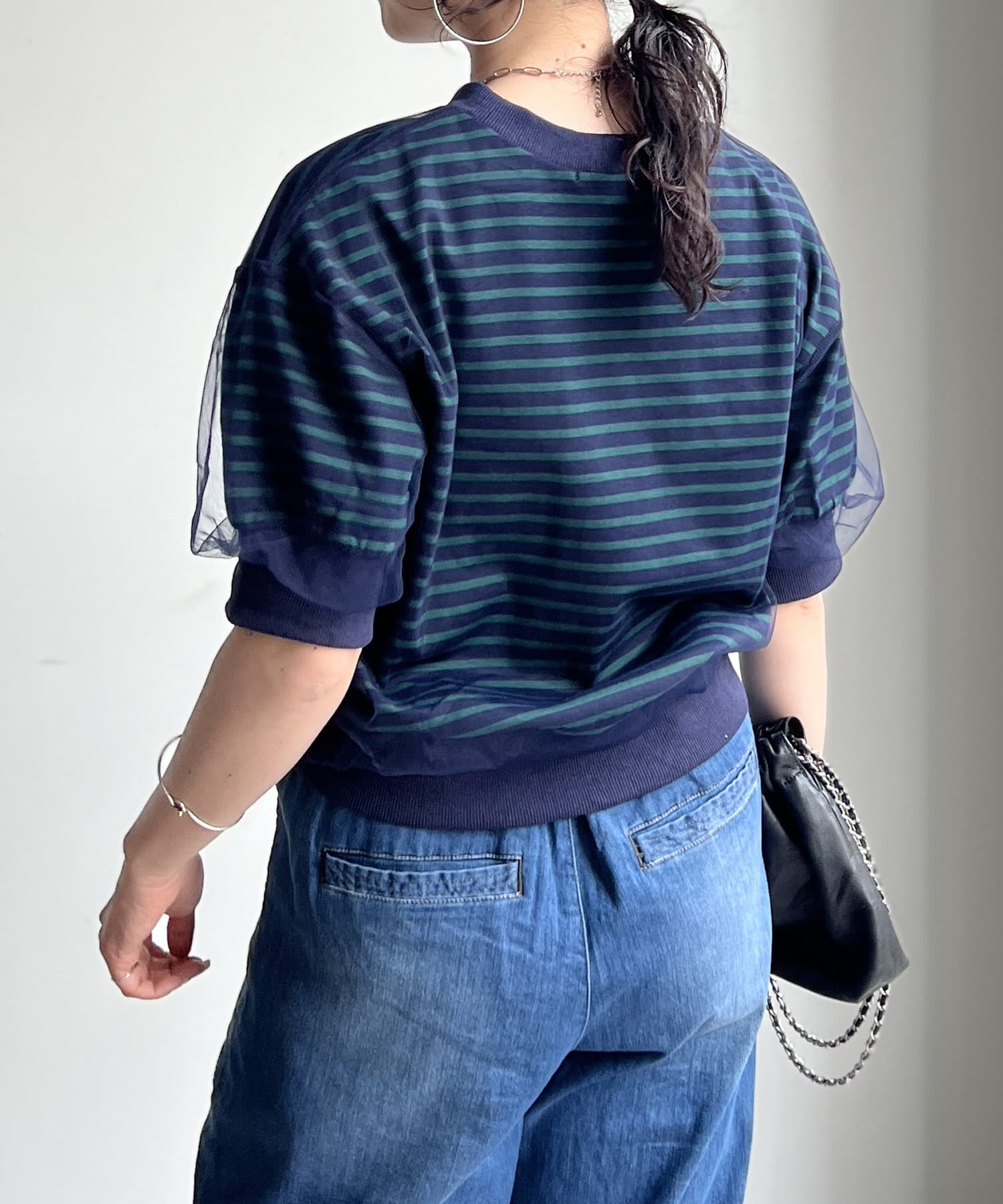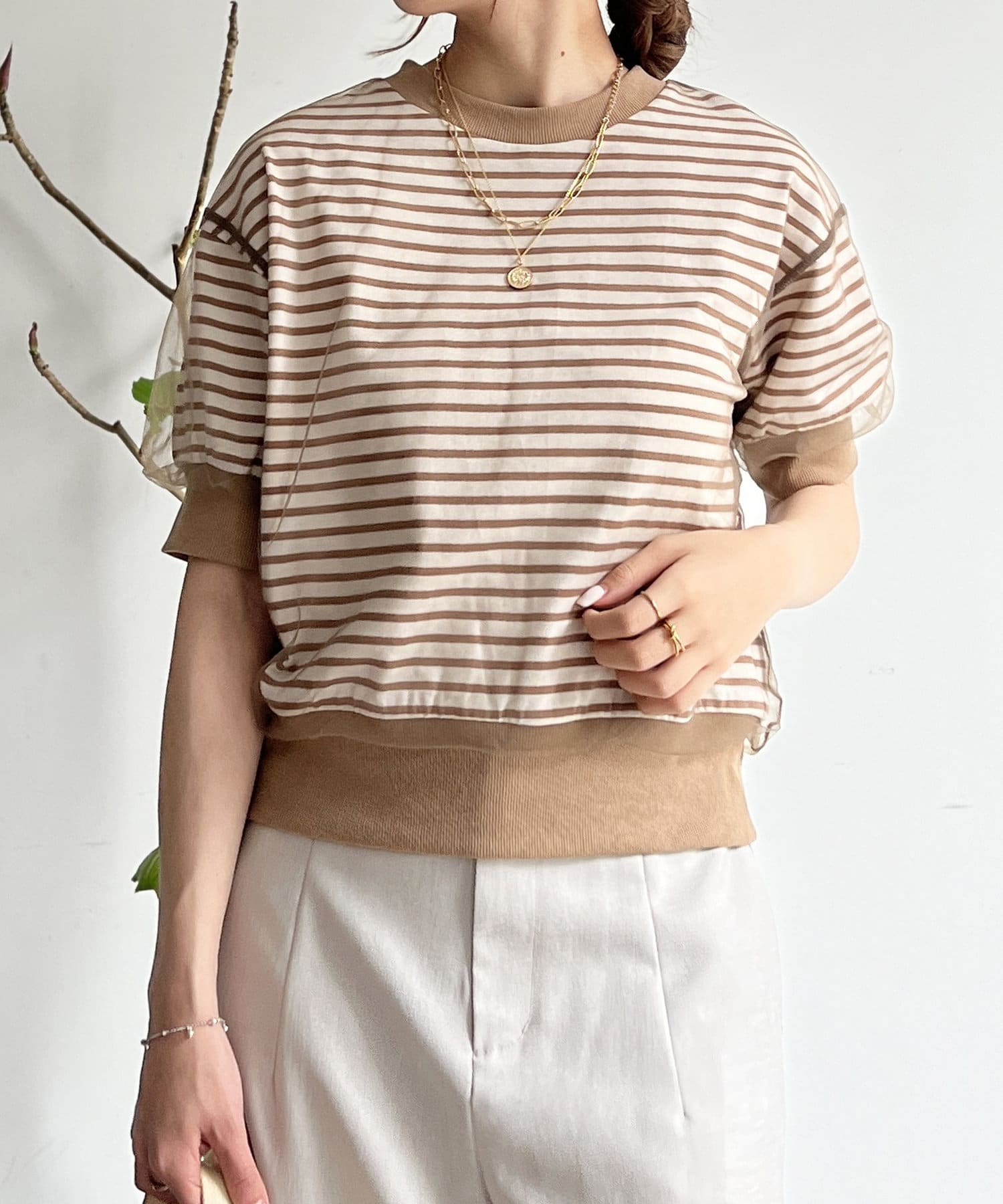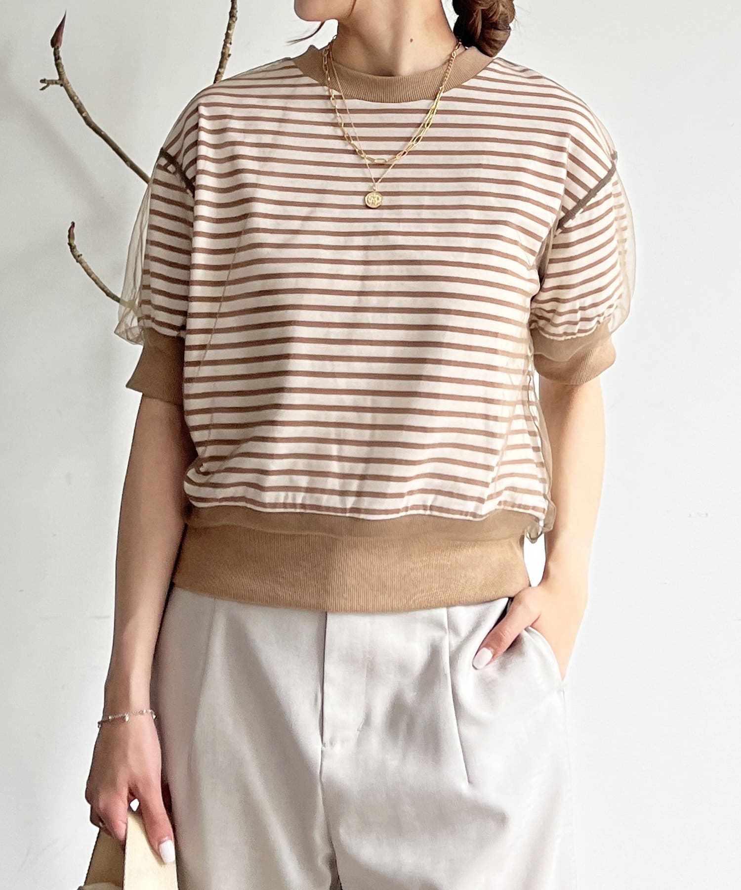 トレンドのチュール使いがアクセントになる大人ボーダートップス