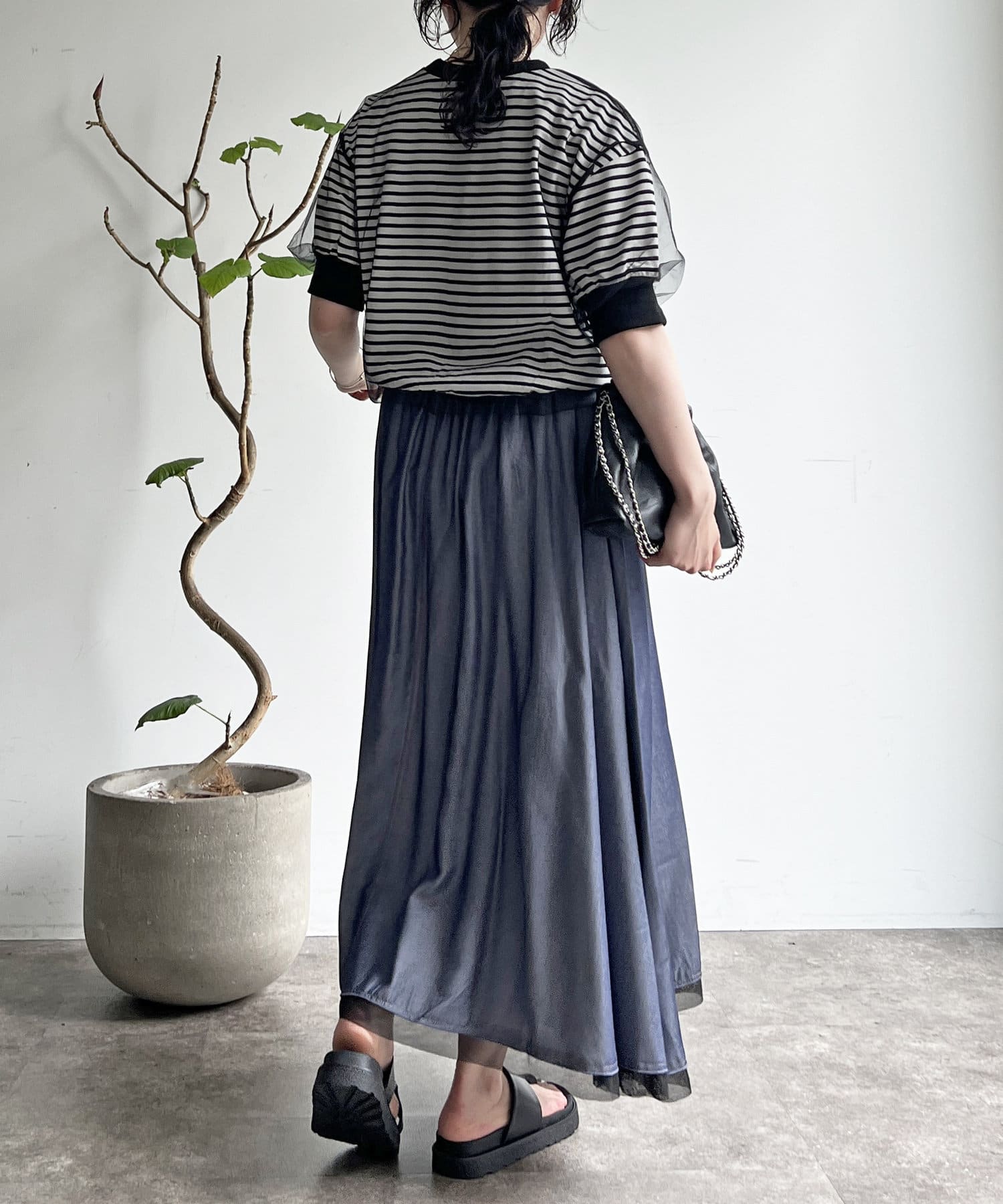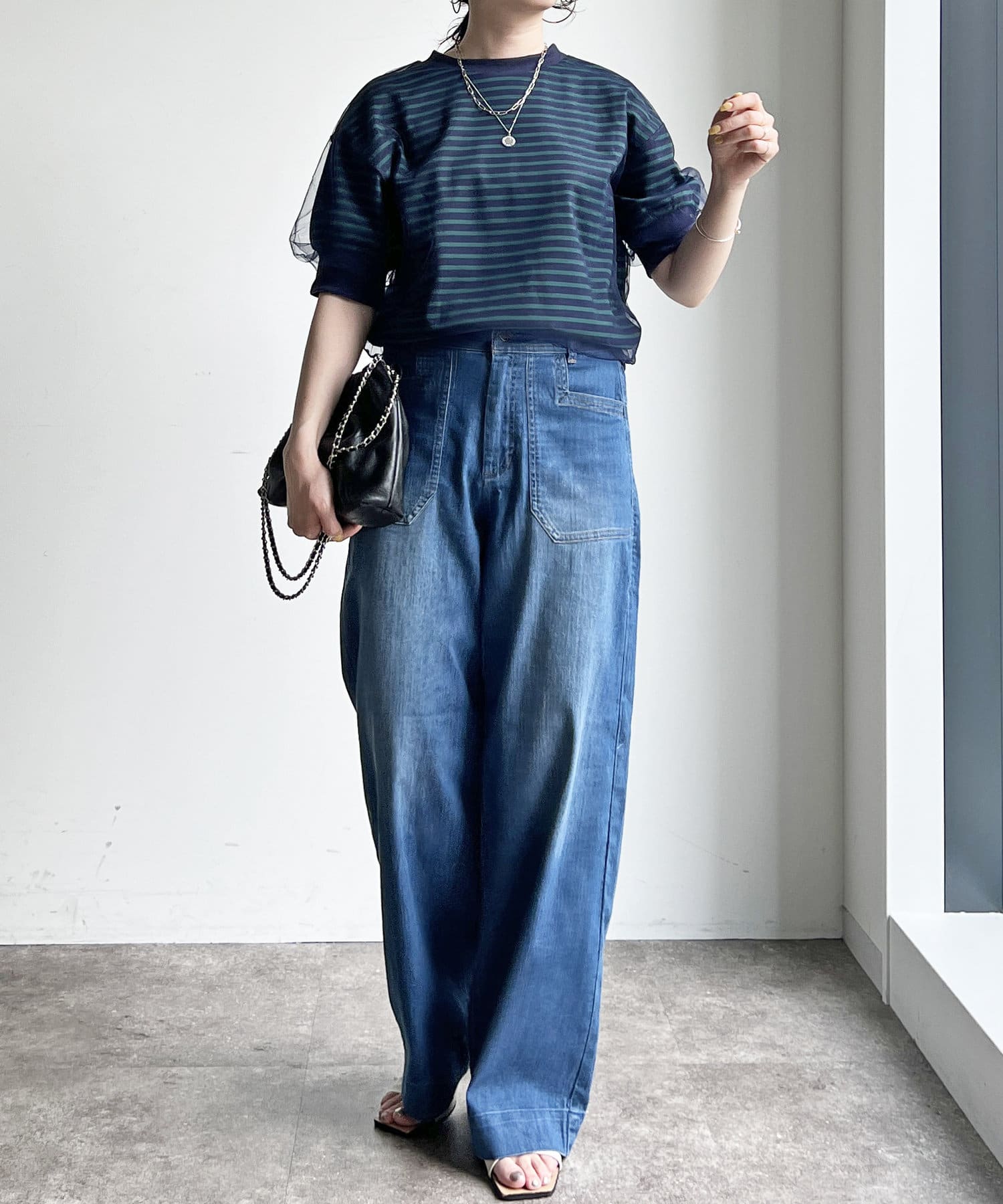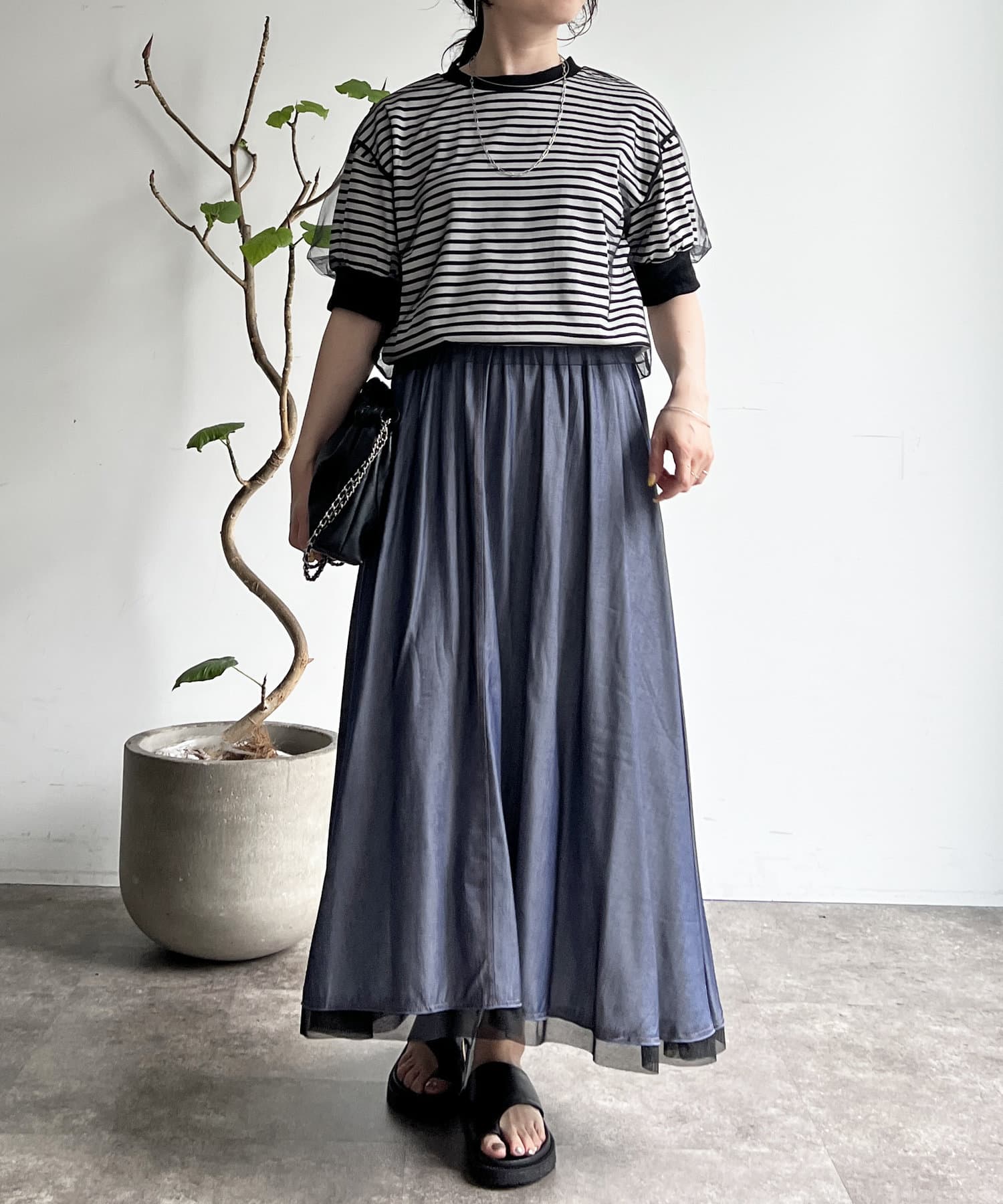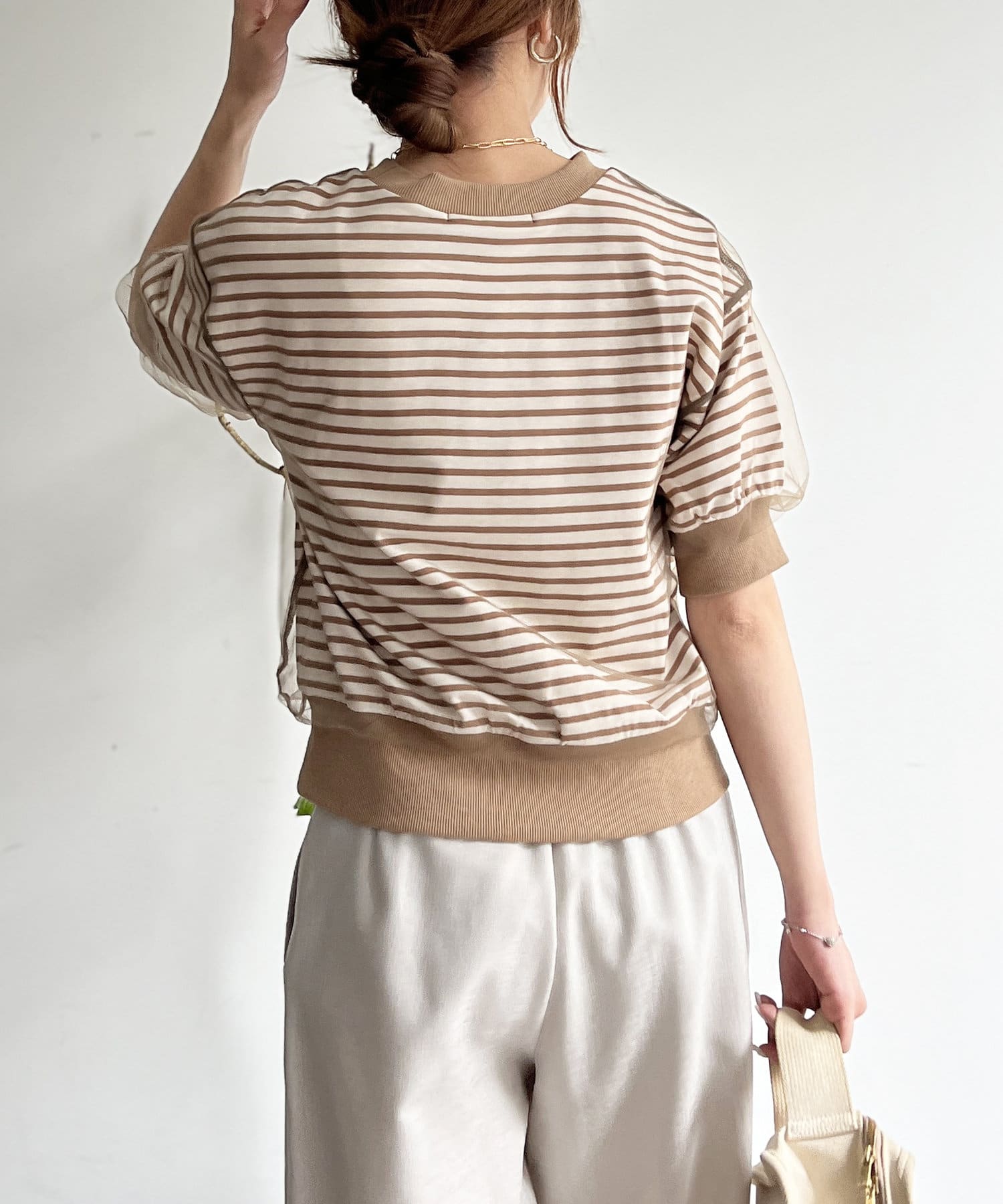 トレンドのチュール使いがアクセントになる大人ボーダートップス