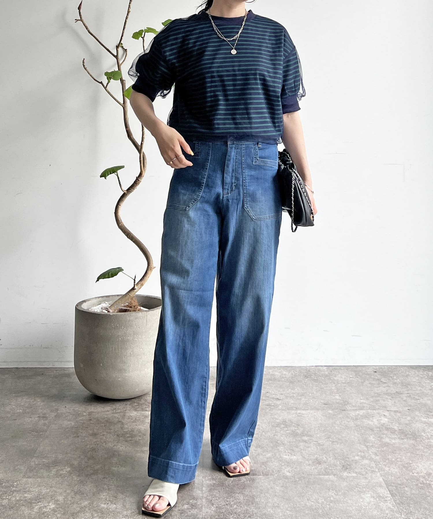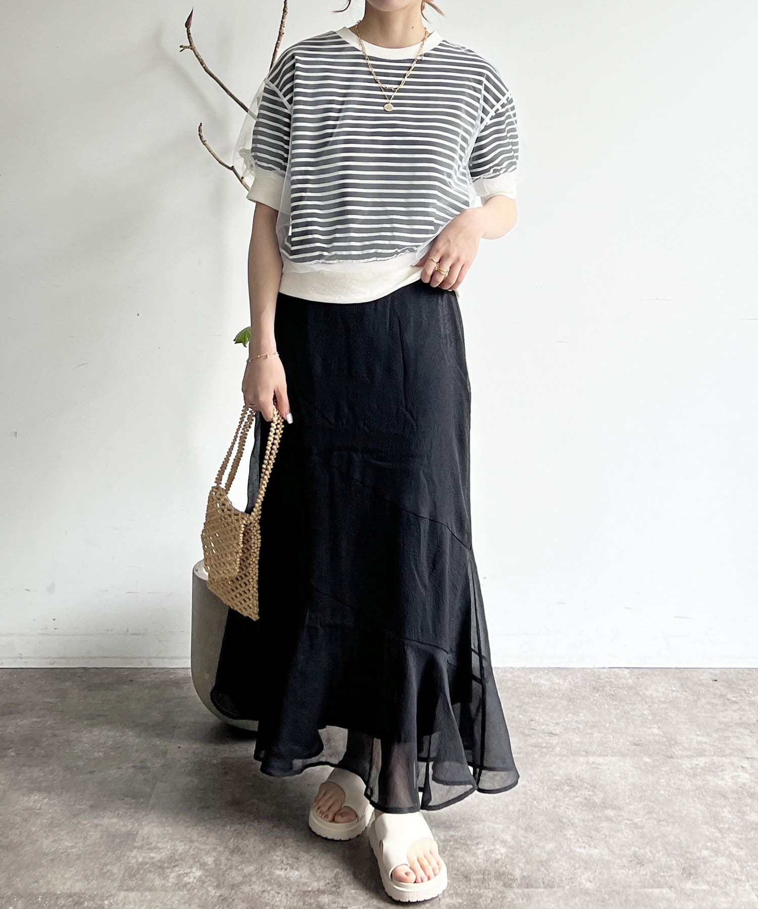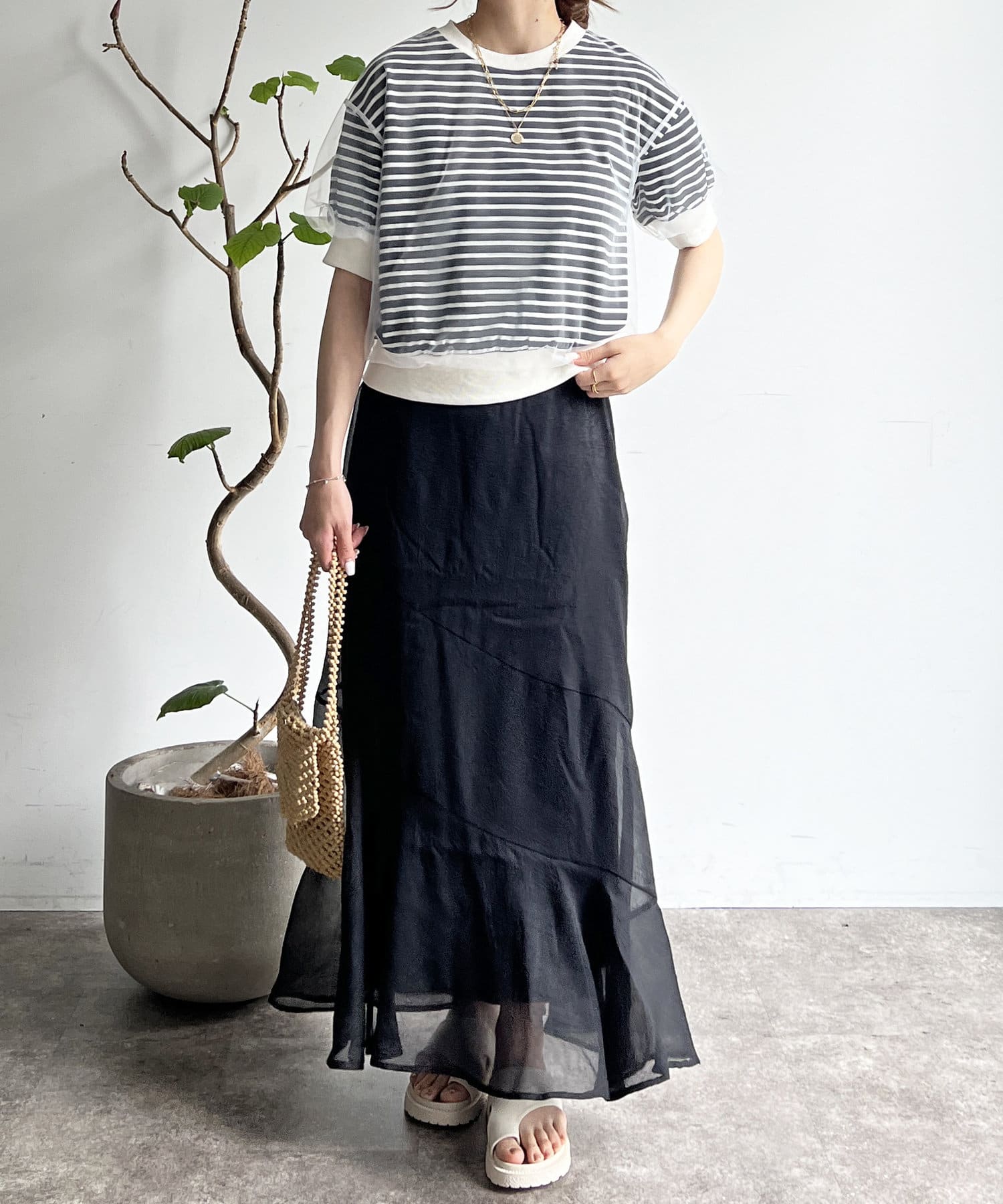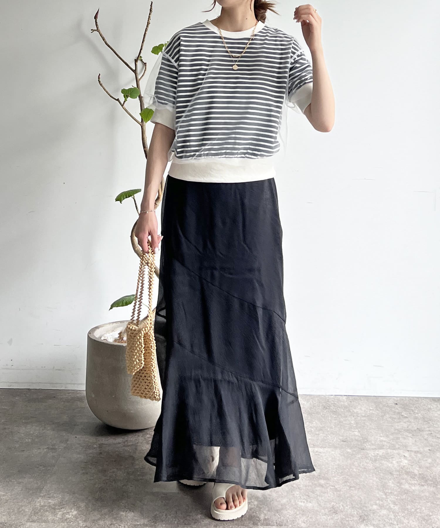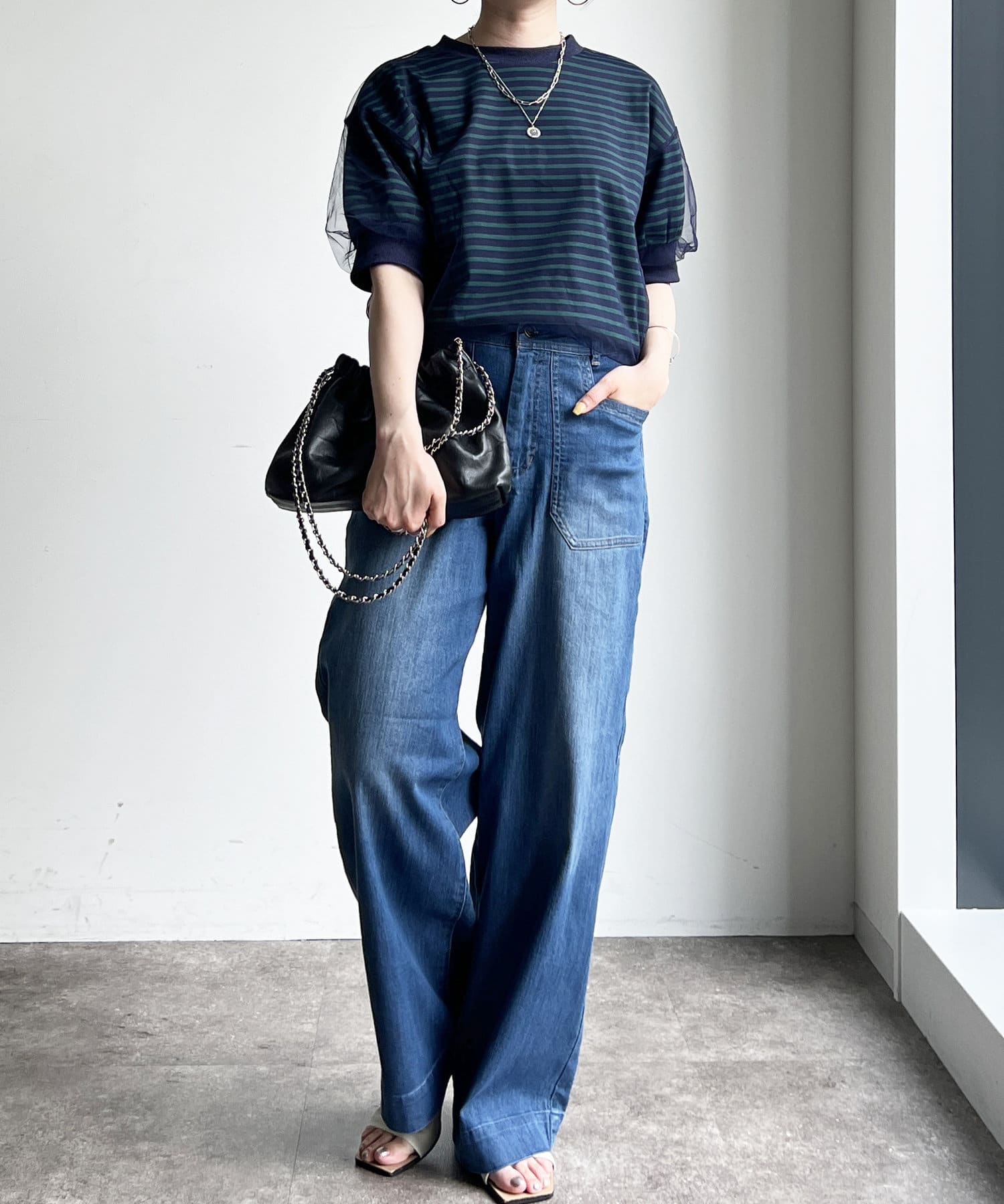 トレンドのチュール使いがアクセントになる大人ボーダートップス