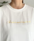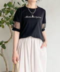メタリックなロゴにシアー素材のランタンスリーブが特徴的なデザインTシャツ。