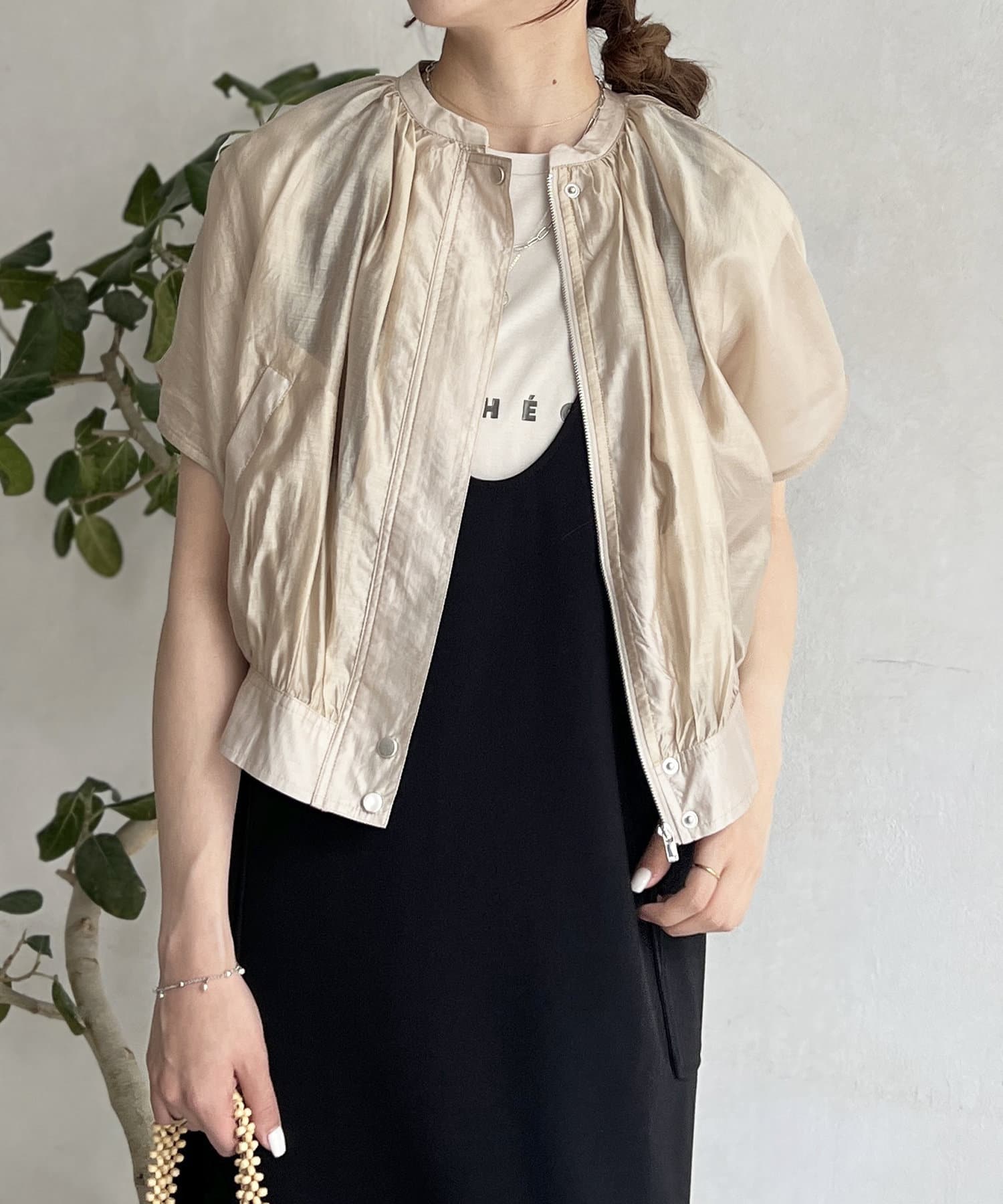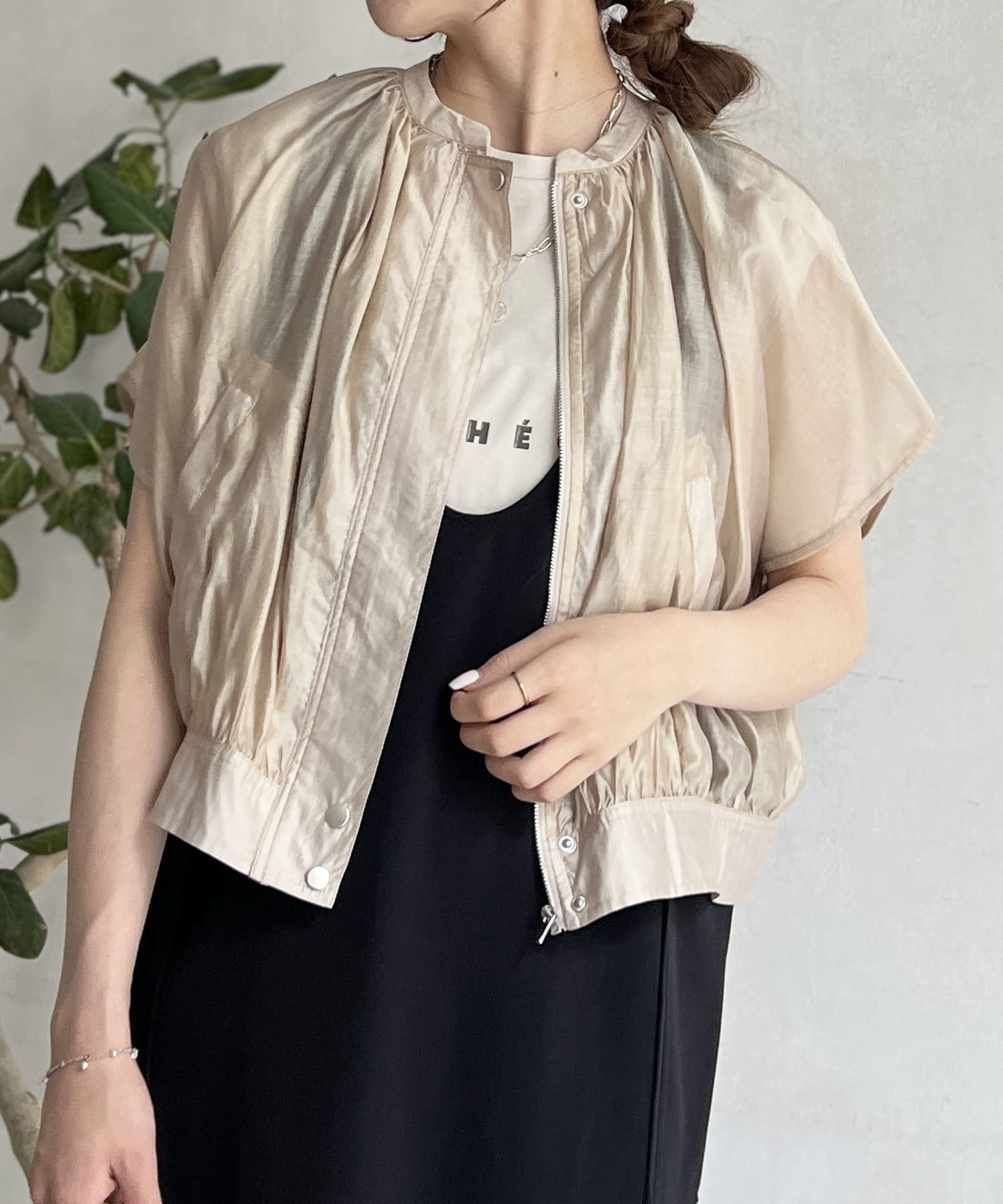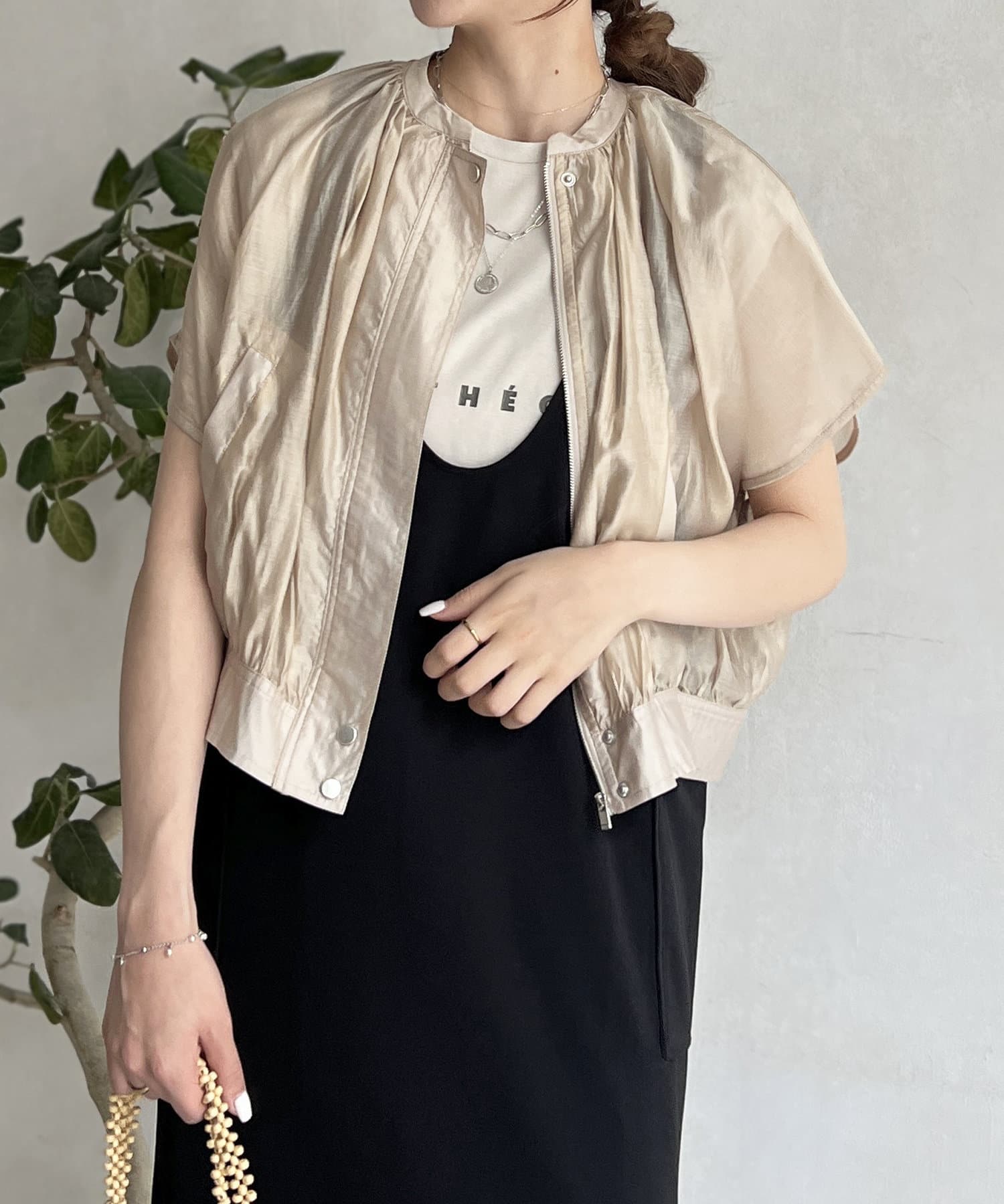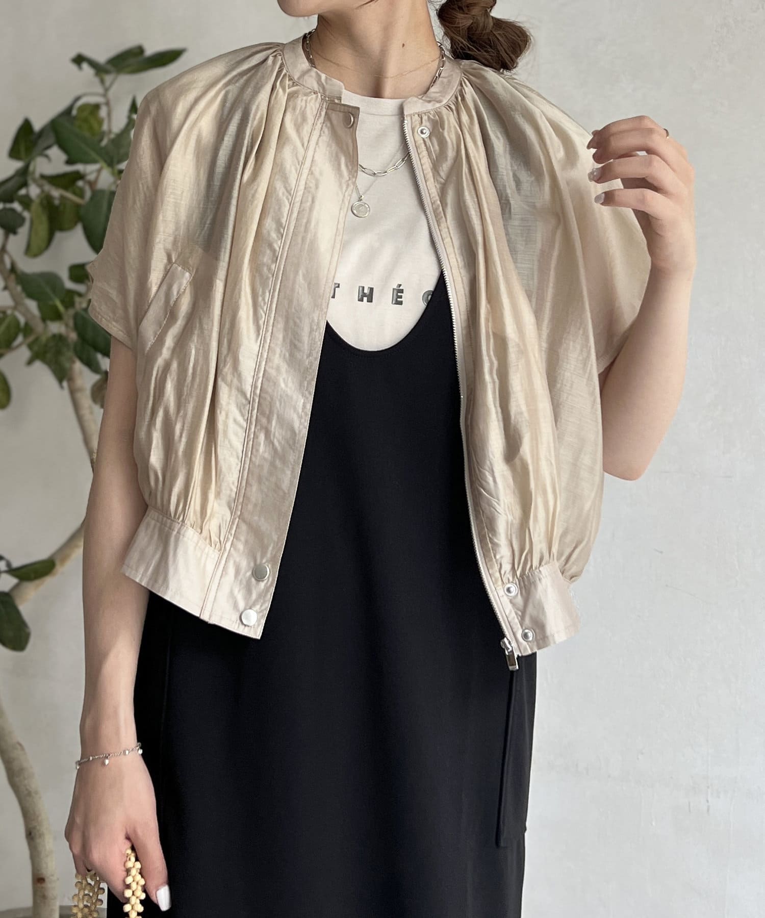 光沢感のあるシアー素材を使ったフレンチスリーブブルゾン