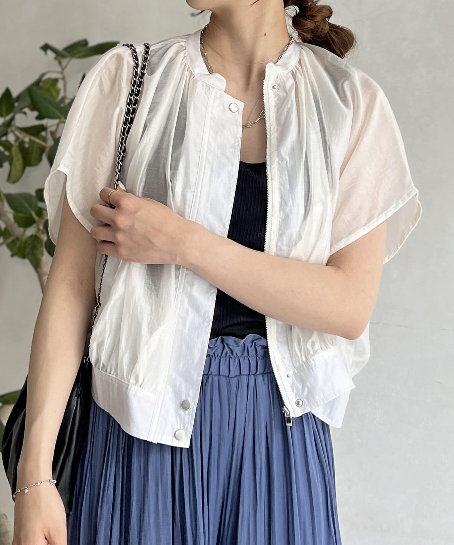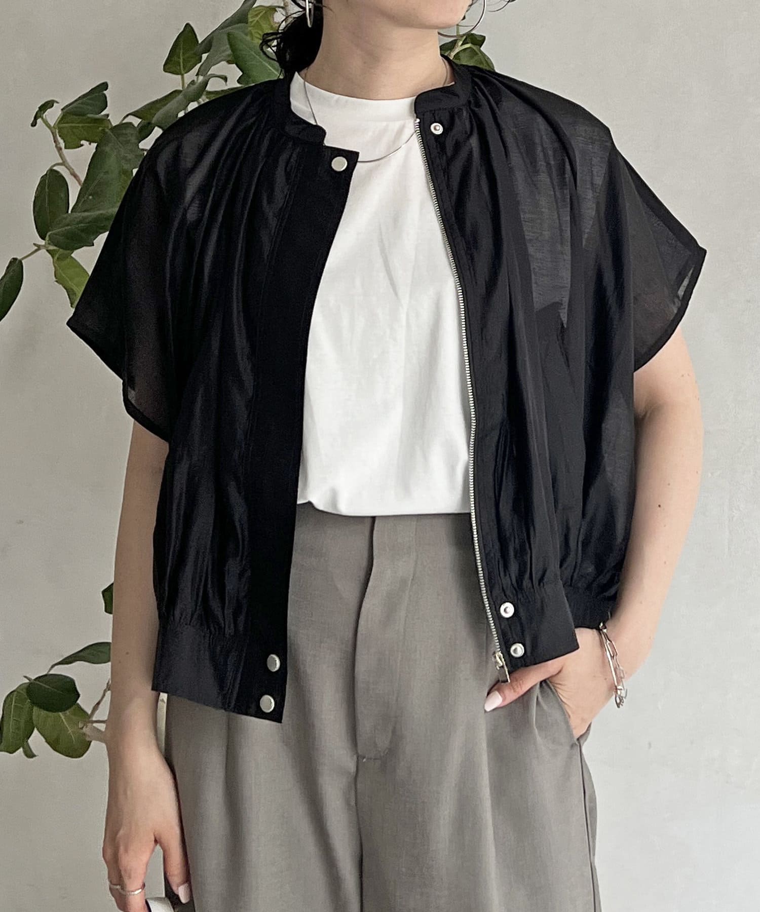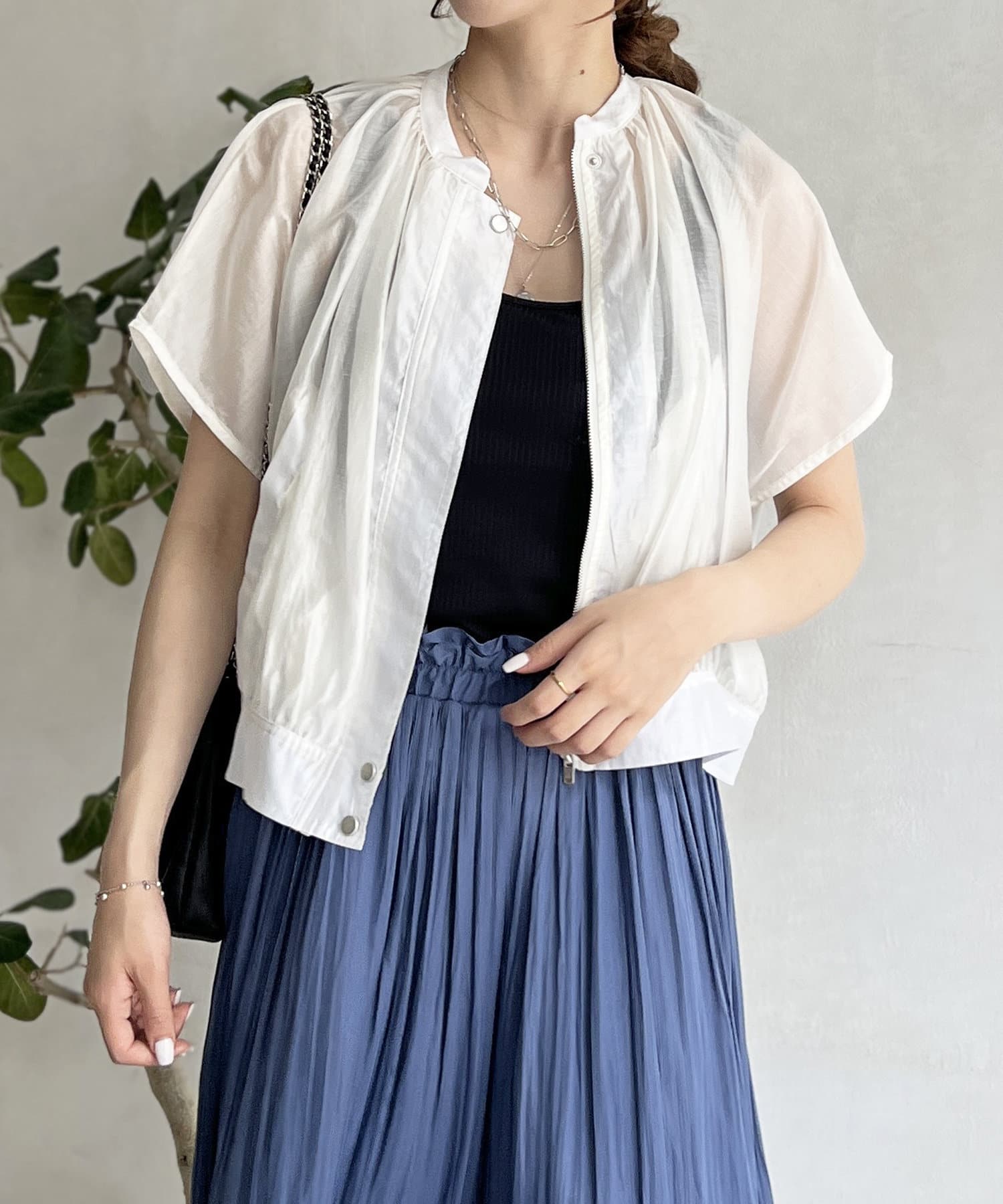 光沢感のあるシアー素材を使ったフレンチスリーブブルゾン