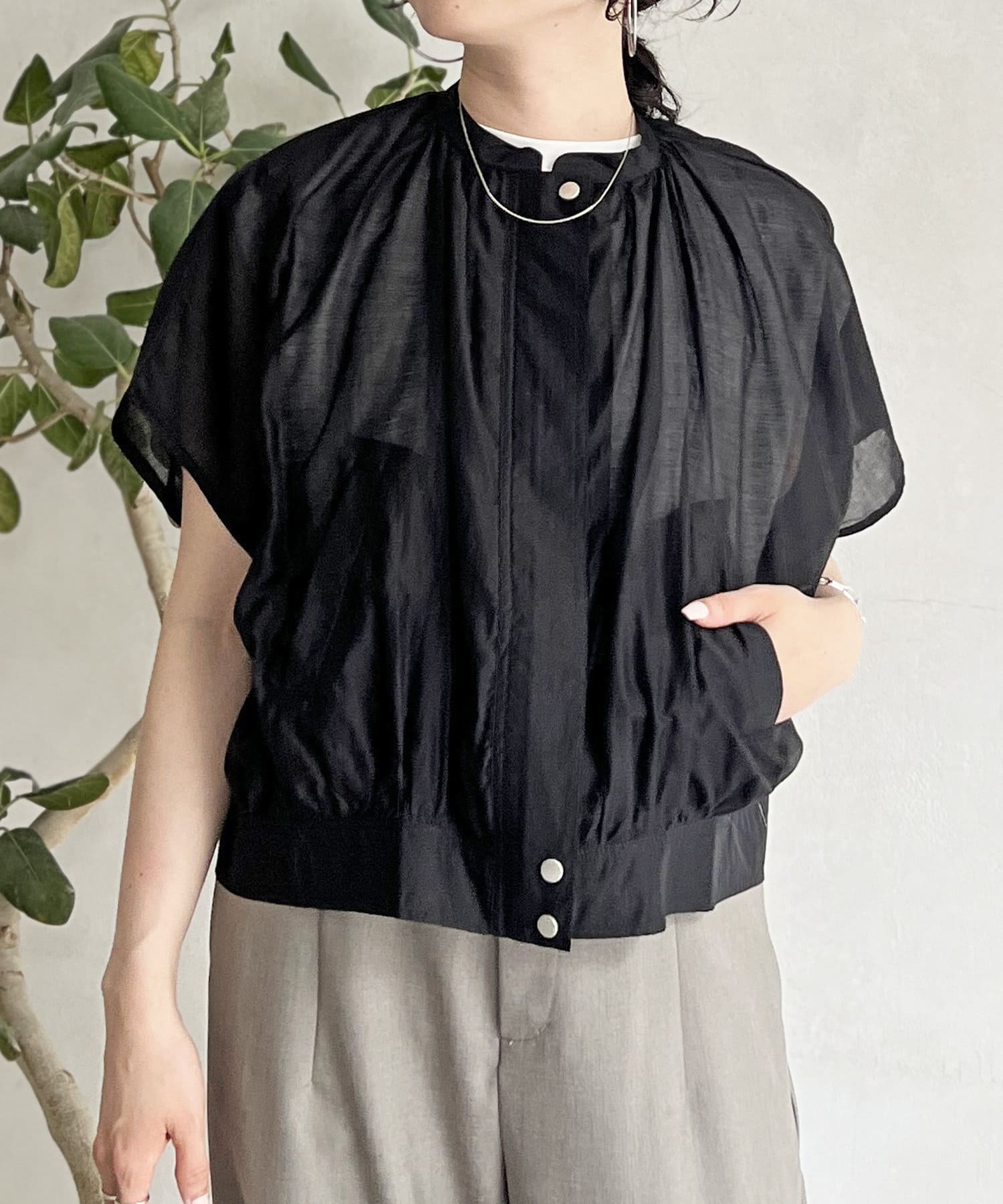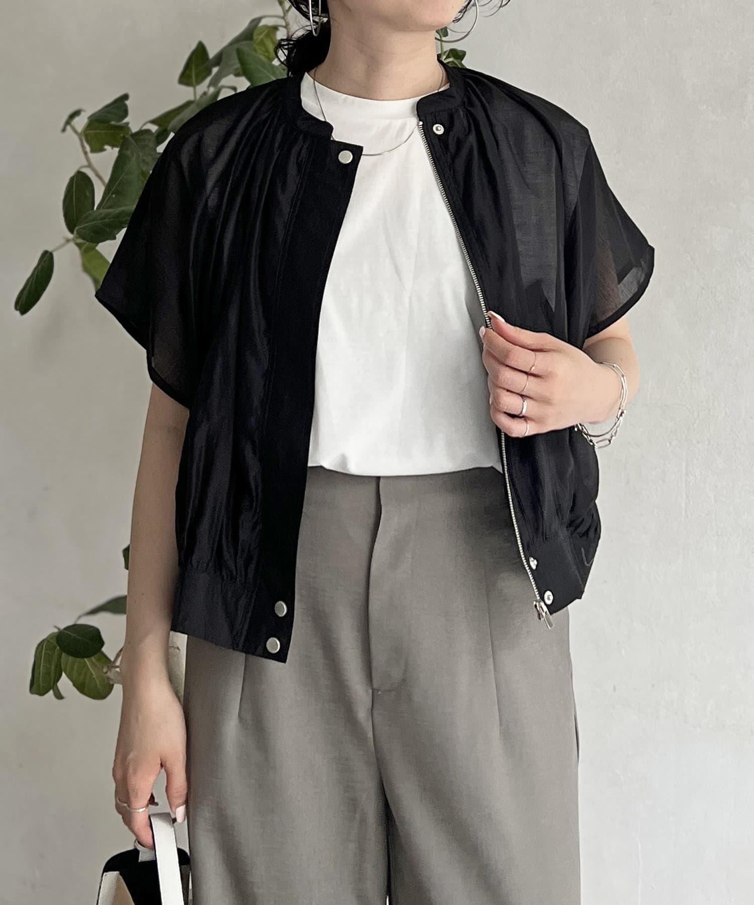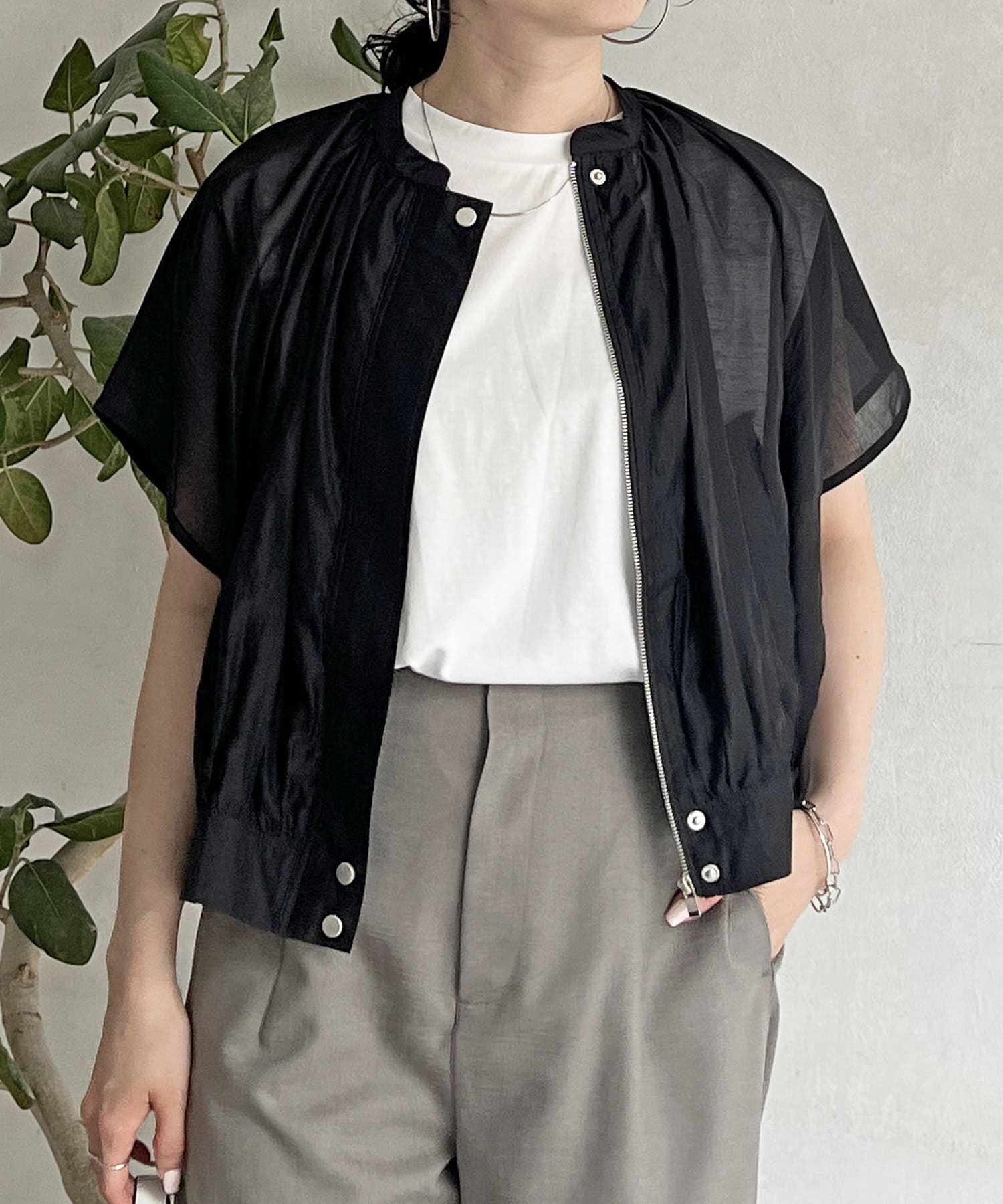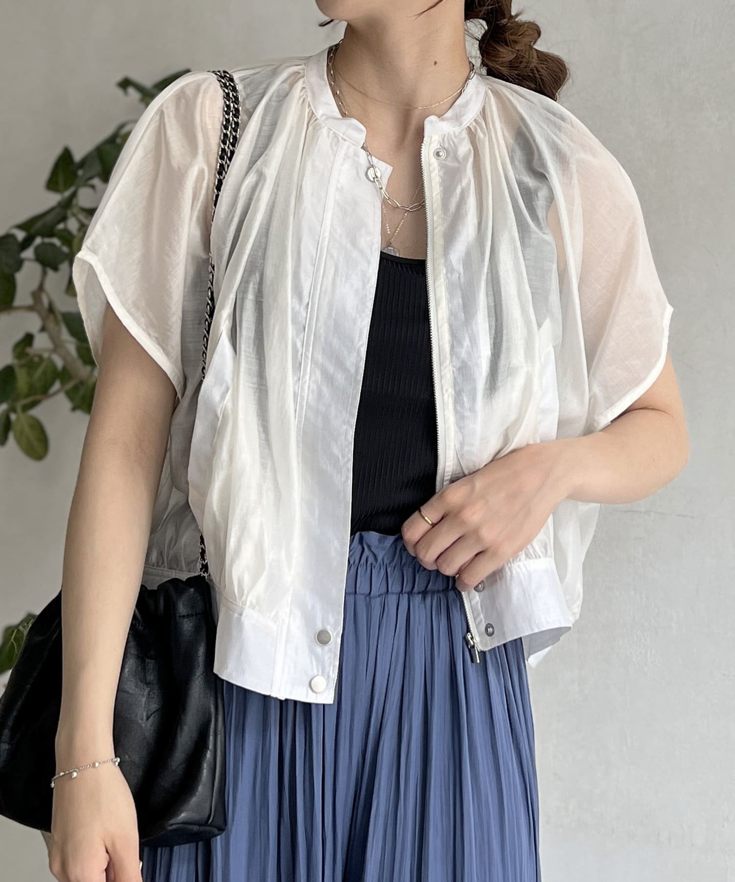 光沢感のあるシアー素材を使ったフレンチスリーブブルゾン