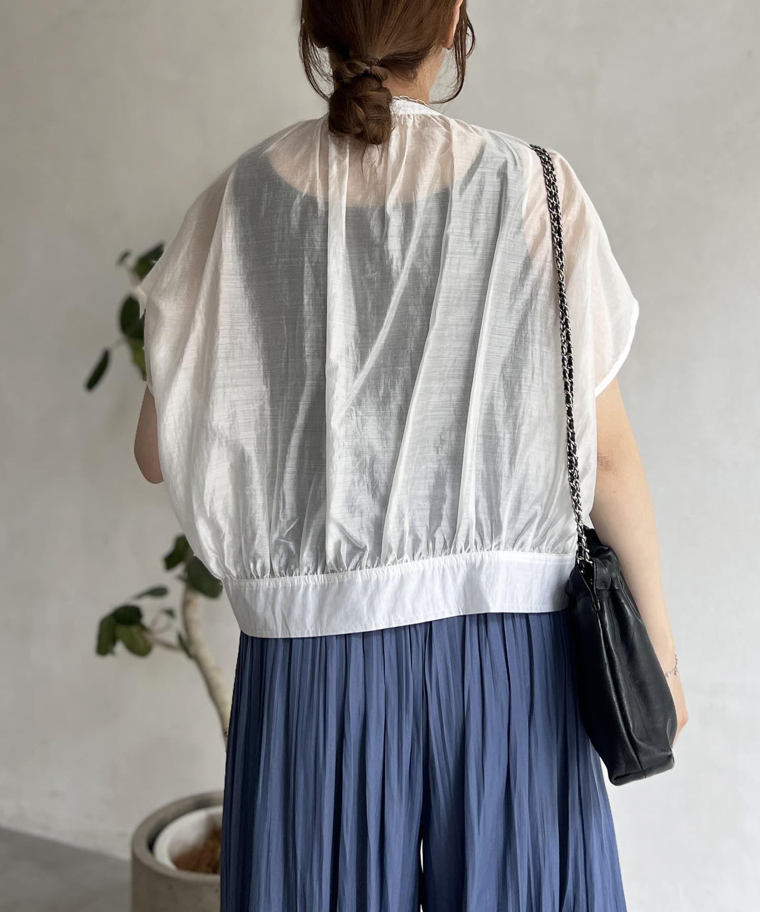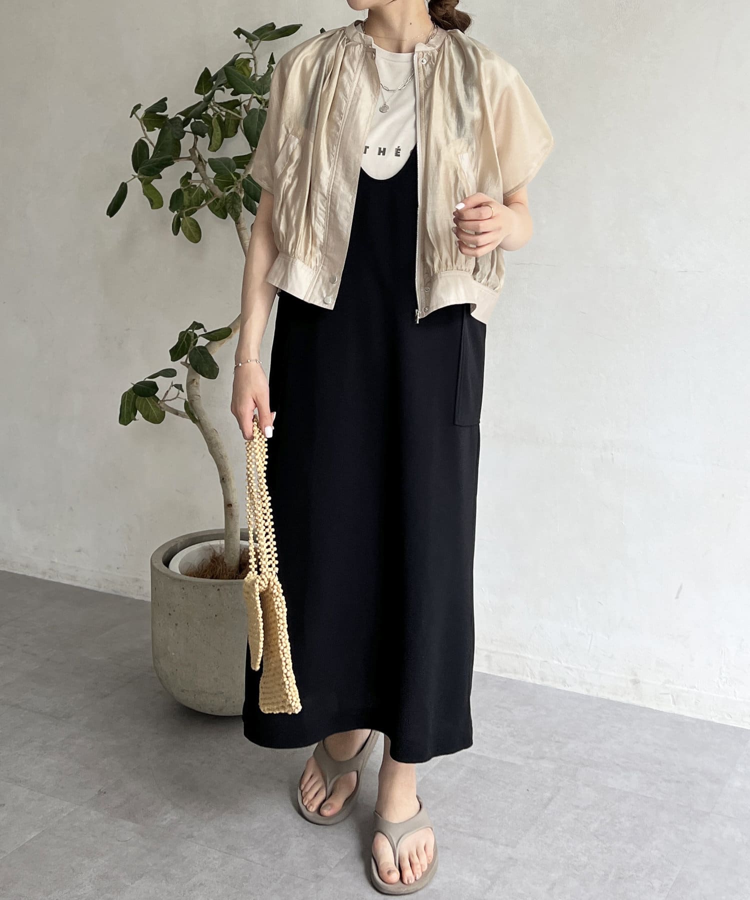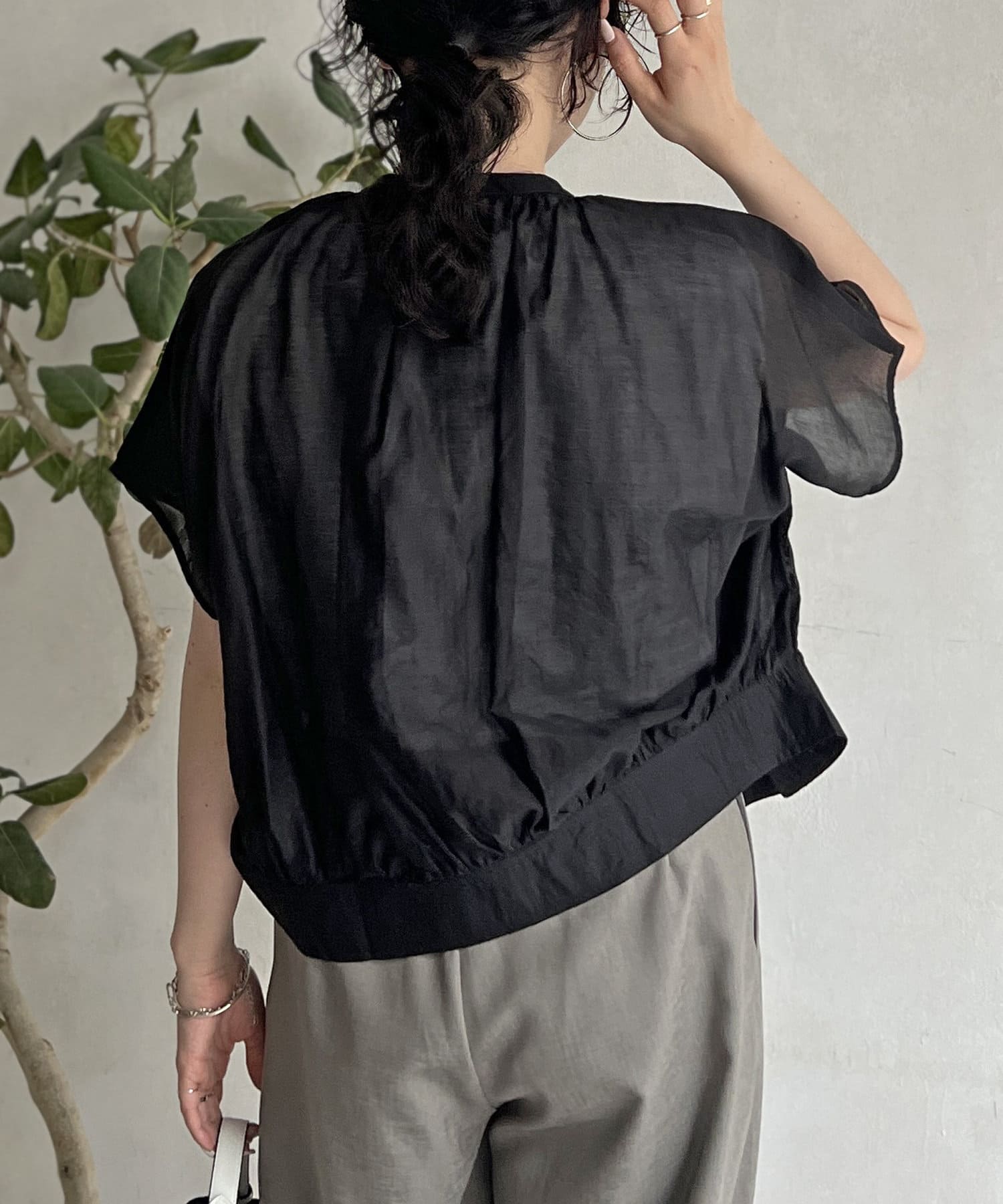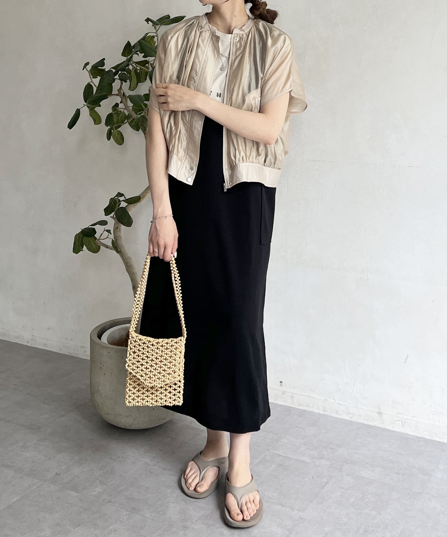 フレンチスリーブで肩回りをカバーしてくれるので、夏のちょっとした羽織にちょうどいい1枚です。
