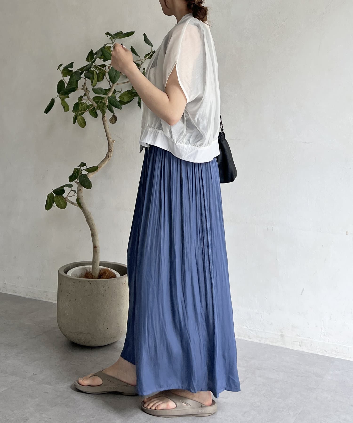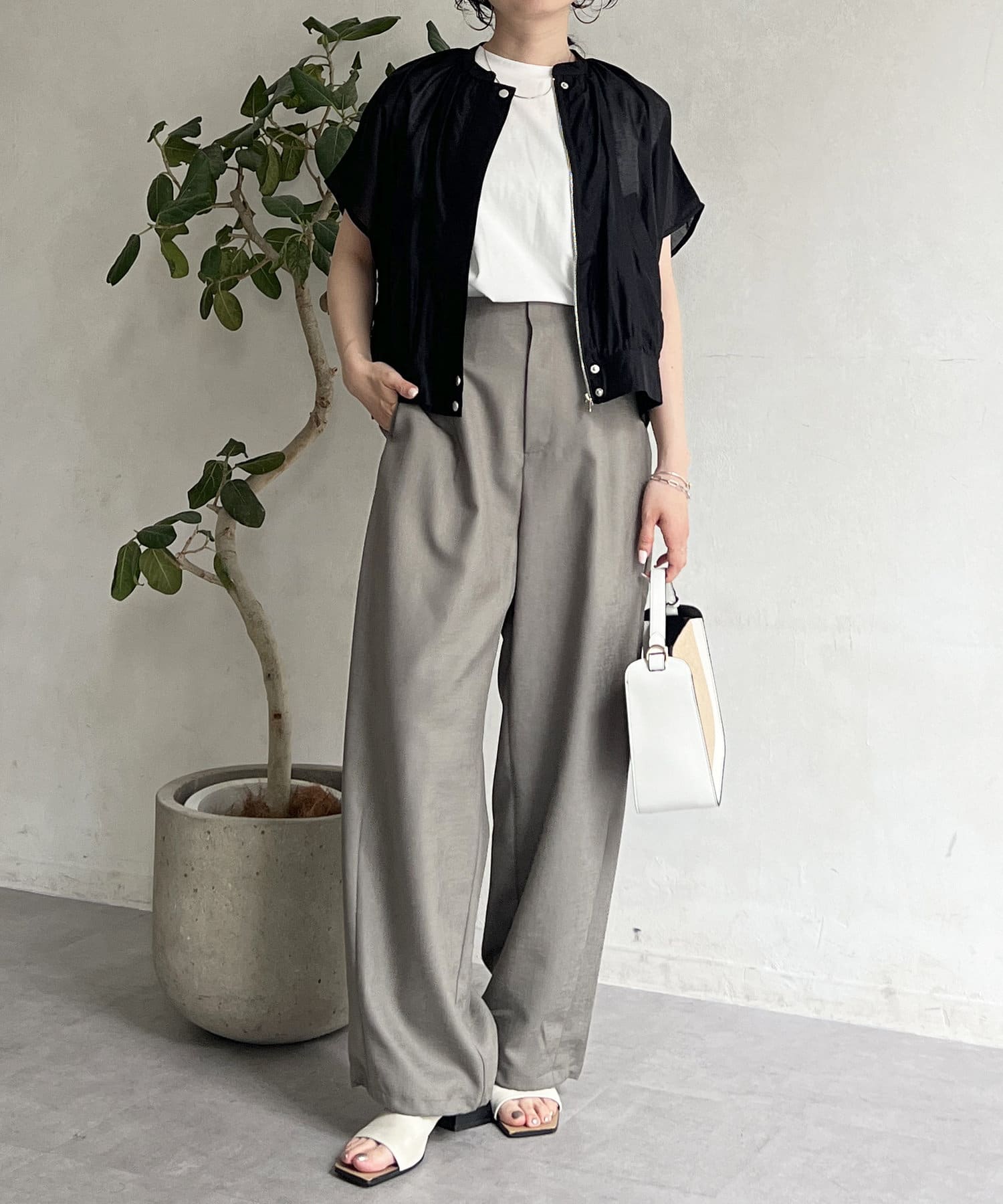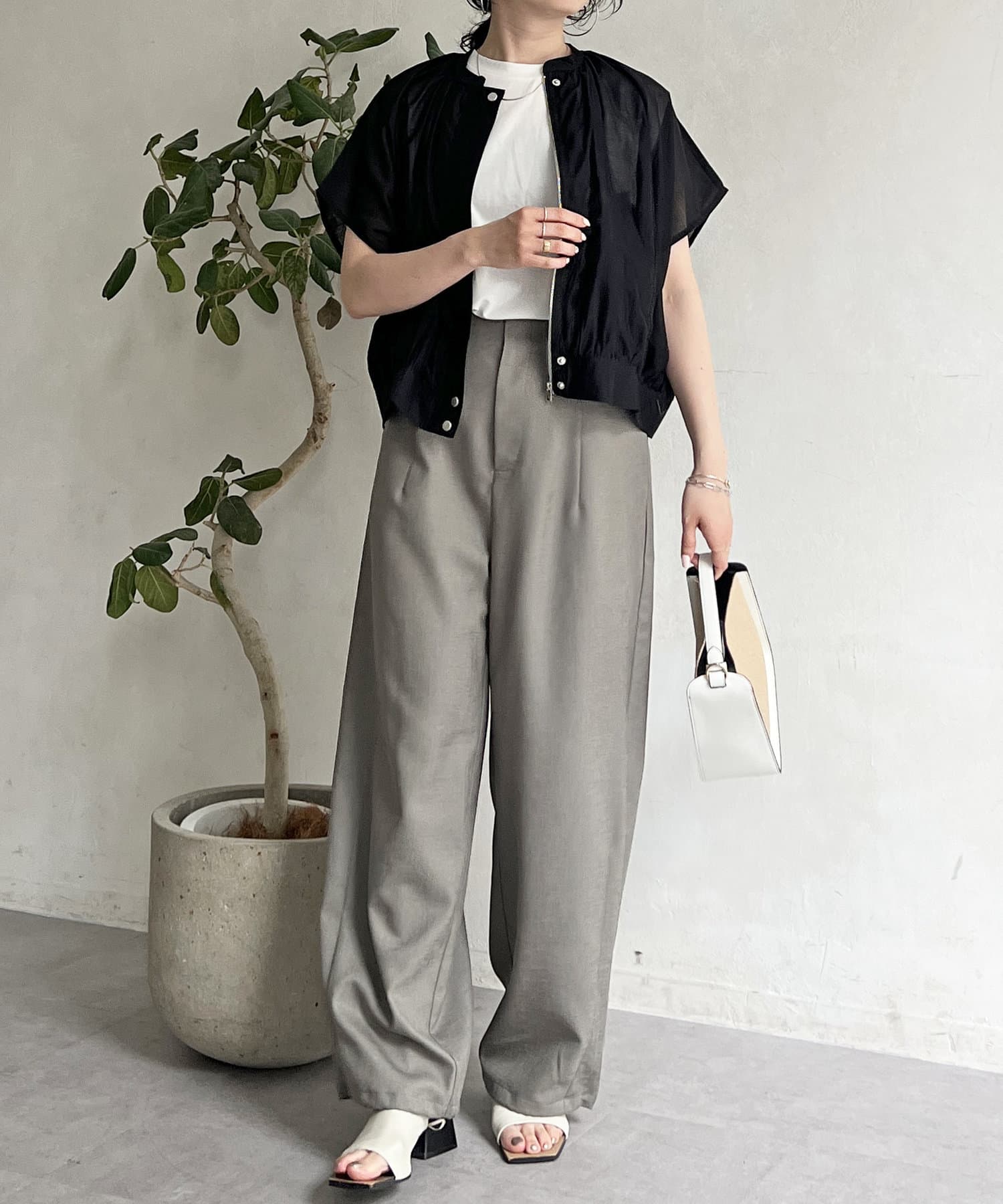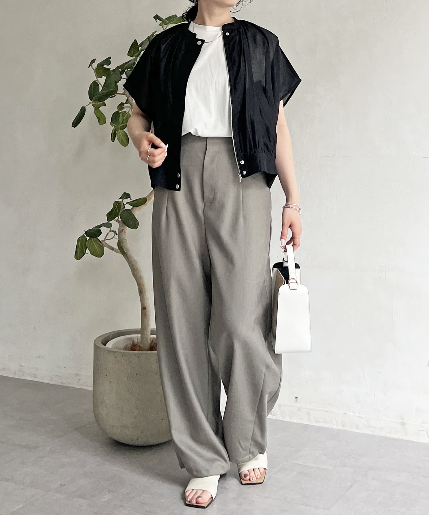 フレンチスリーブで肩回りをカバーしてくれるので、夏のちょっとした羽織にちょうどいい1枚です。