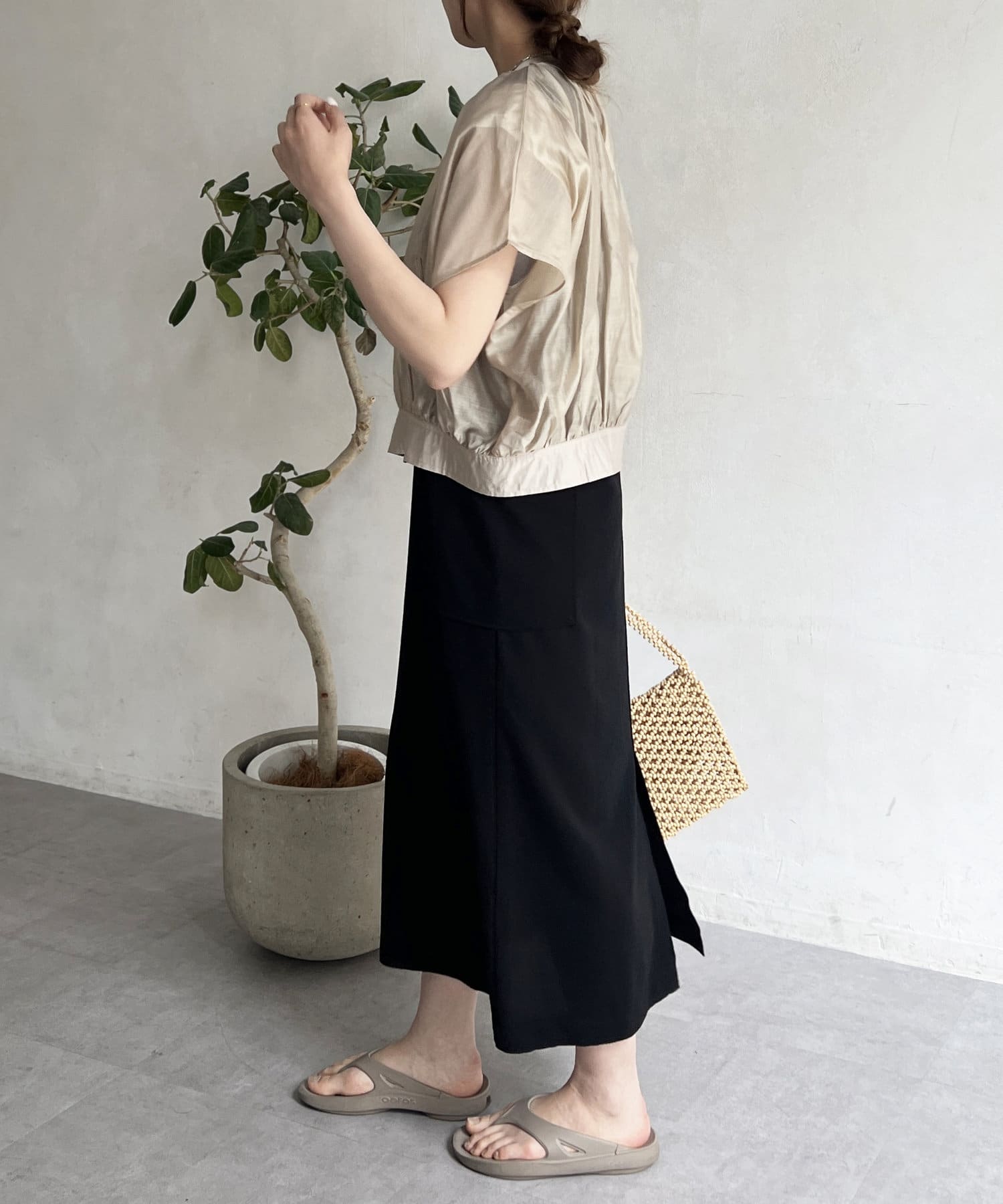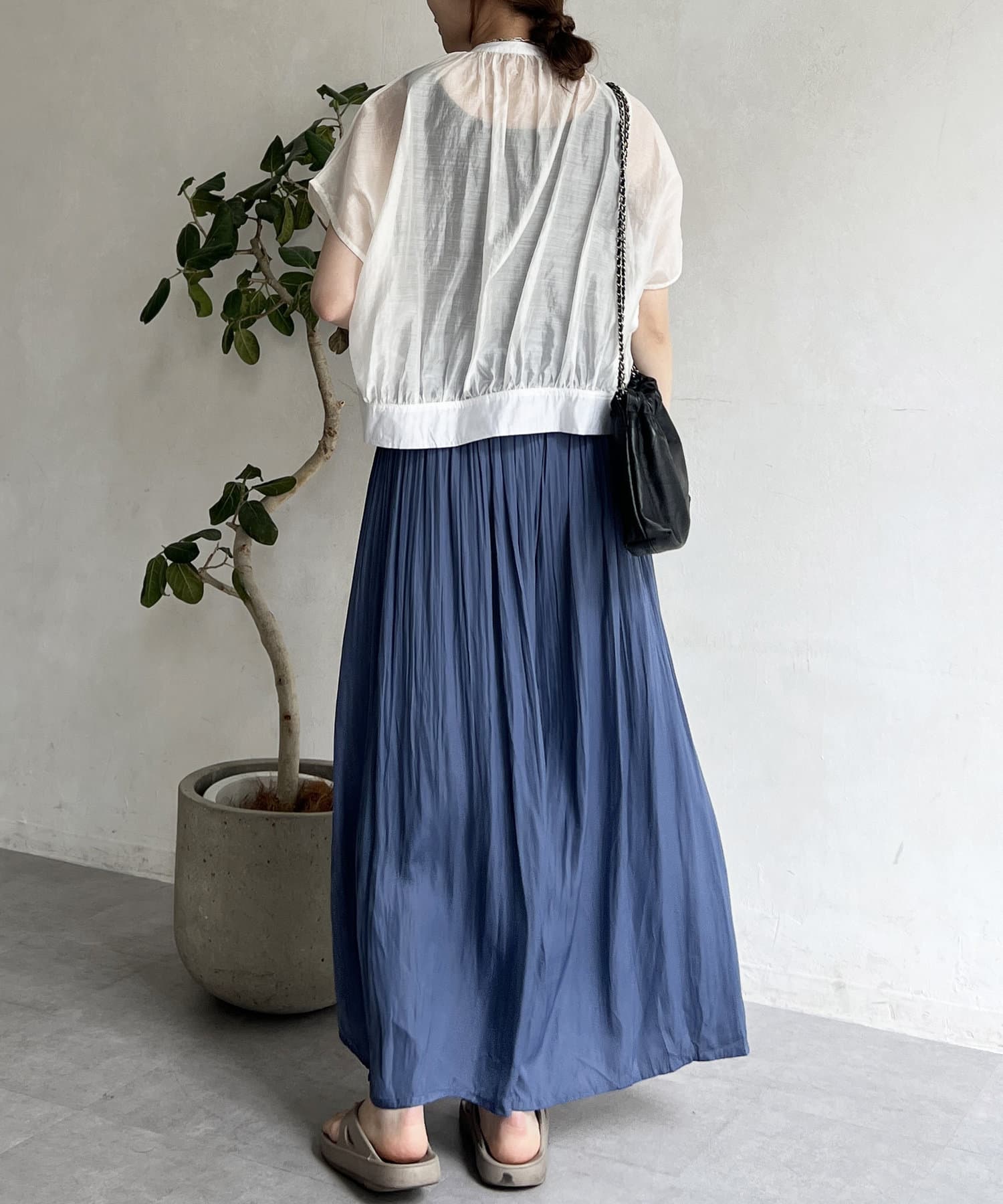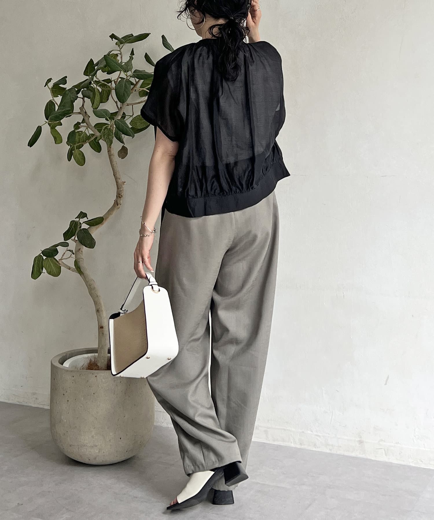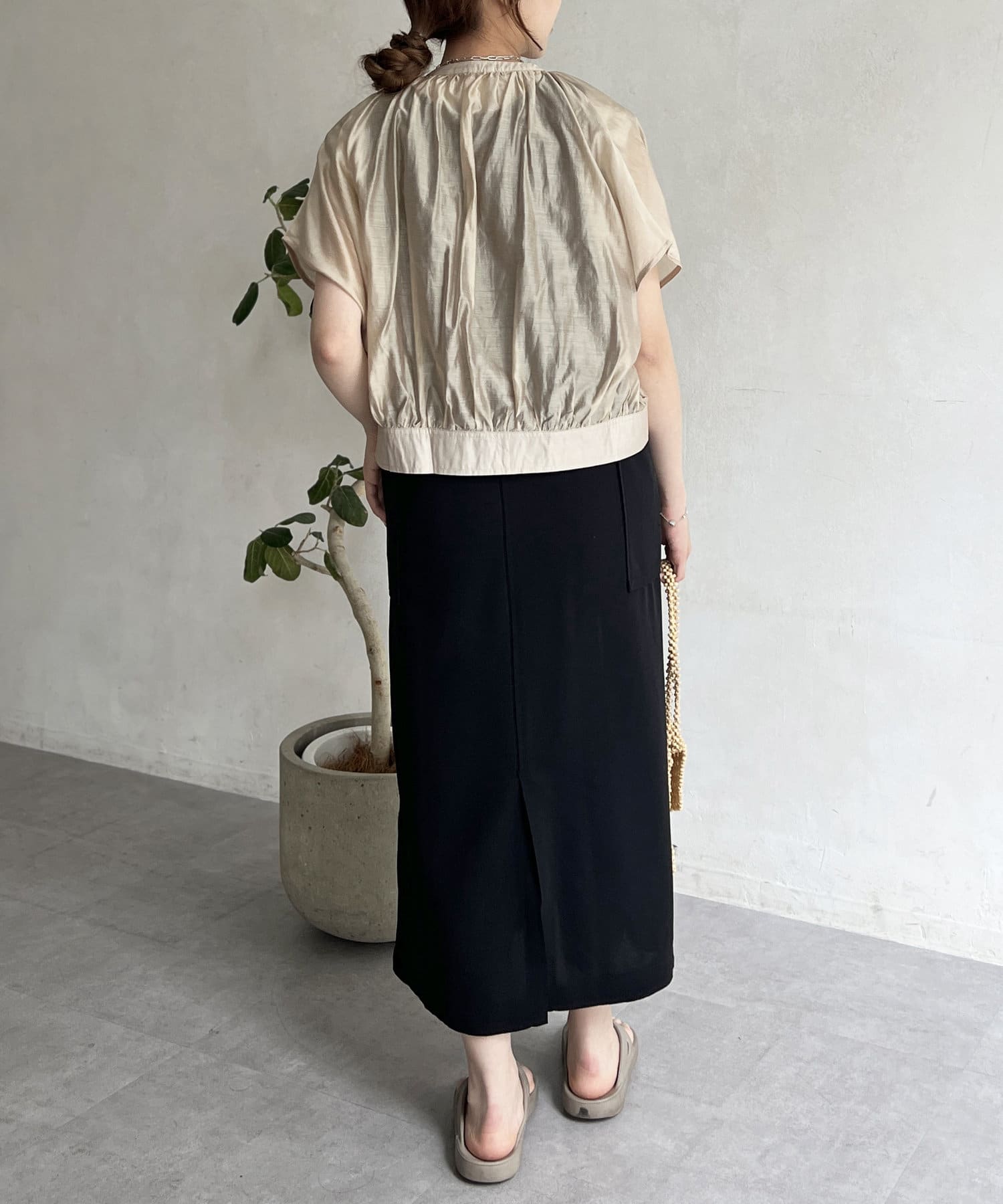 フレンチスリーブで肩回りをカバーしてくれるので、夏のちょっとした羽織にちょうどいい1枚です。