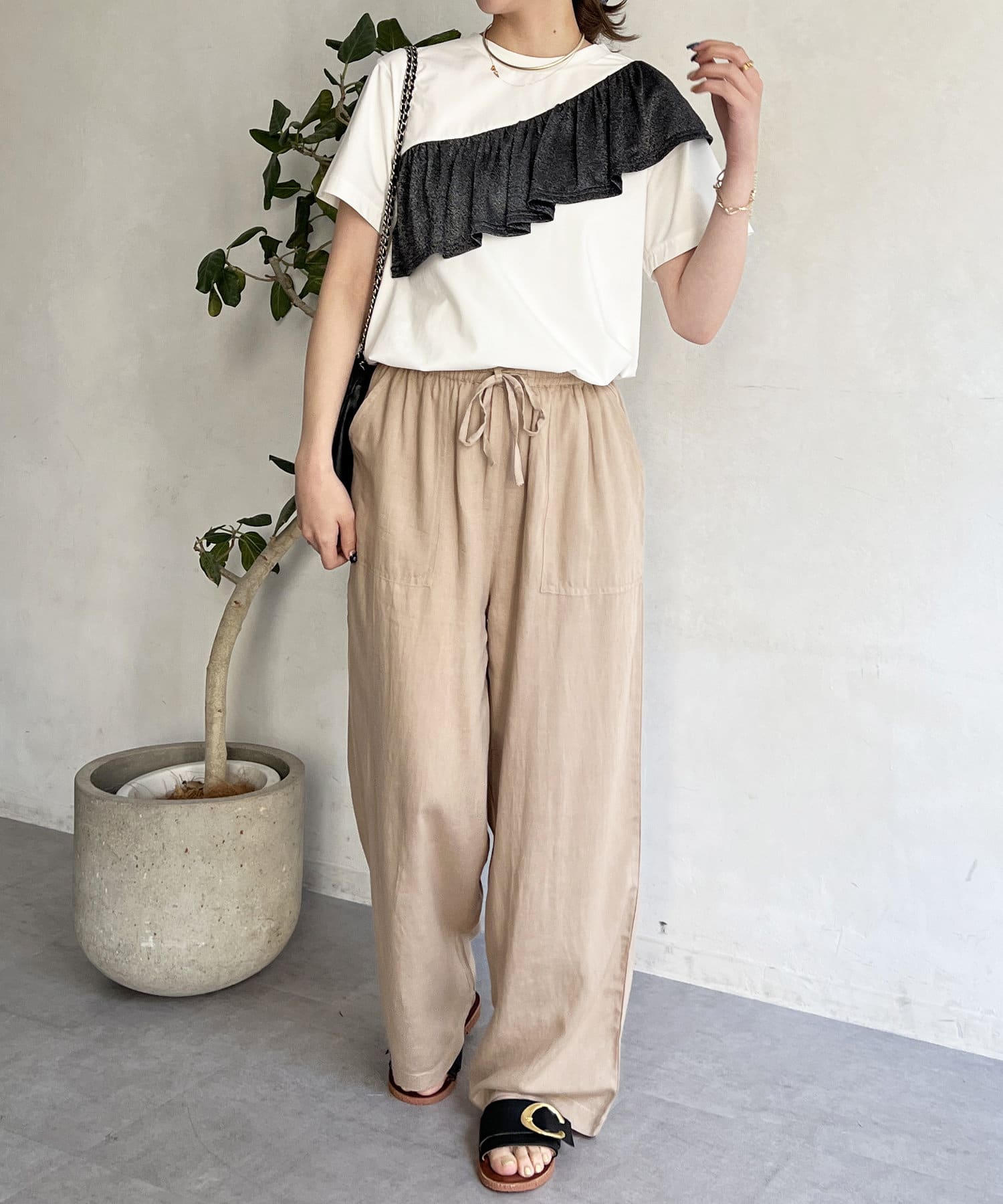 カラーパンツ/リネンパンツ/リラックスパンツ/きれいめシルエット