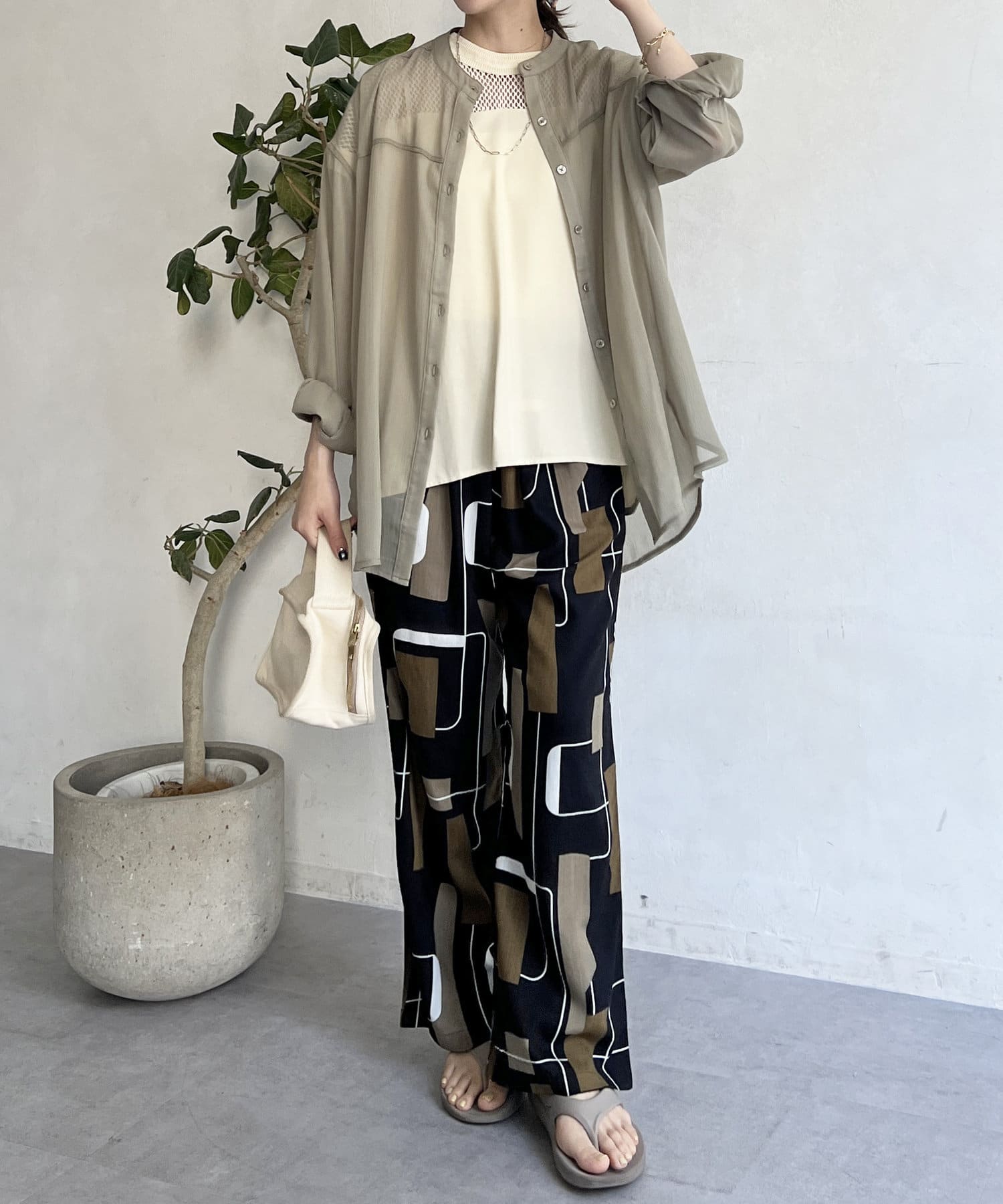 ・リネンレーヨン素材で落ち感のあるシルエット
