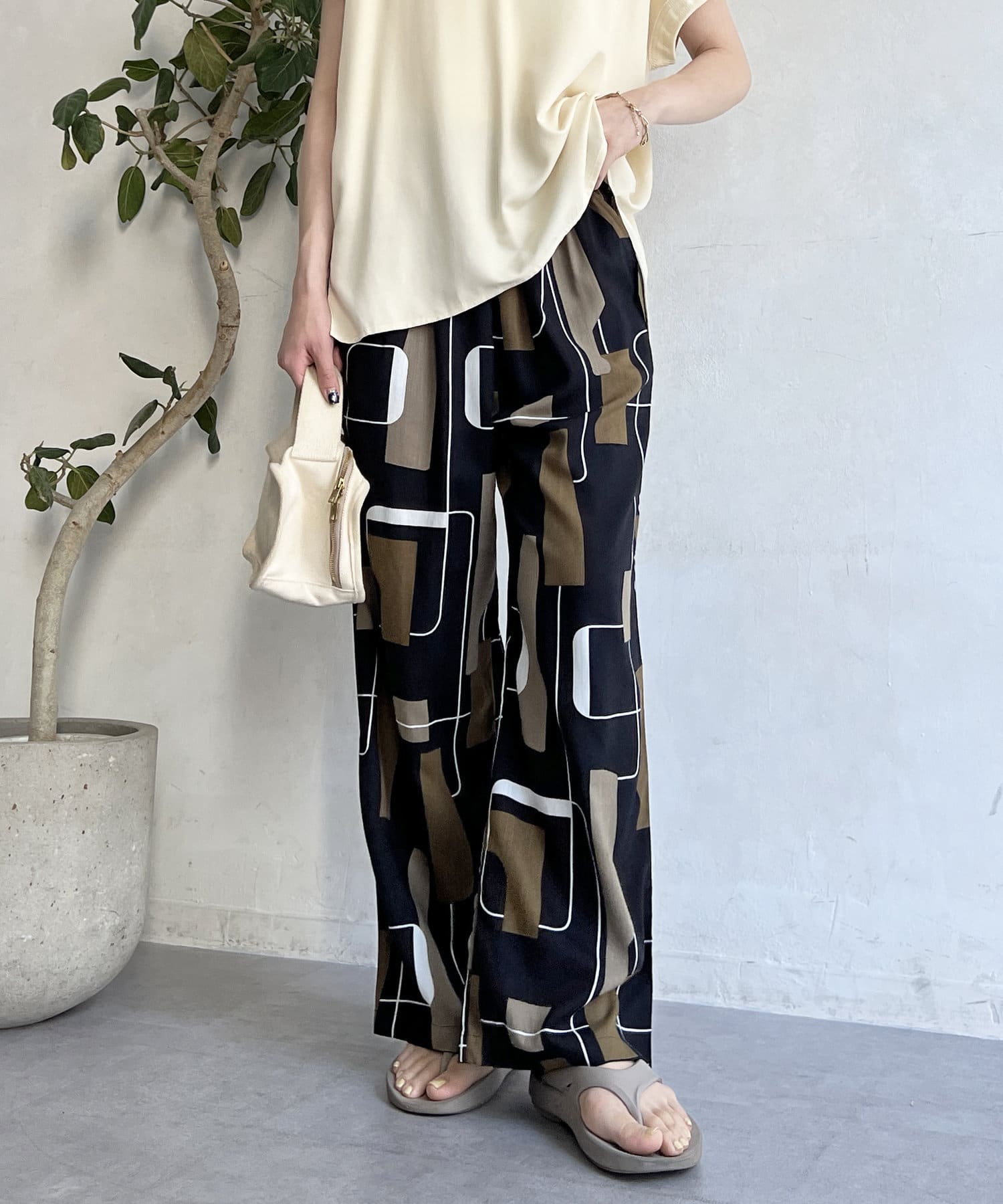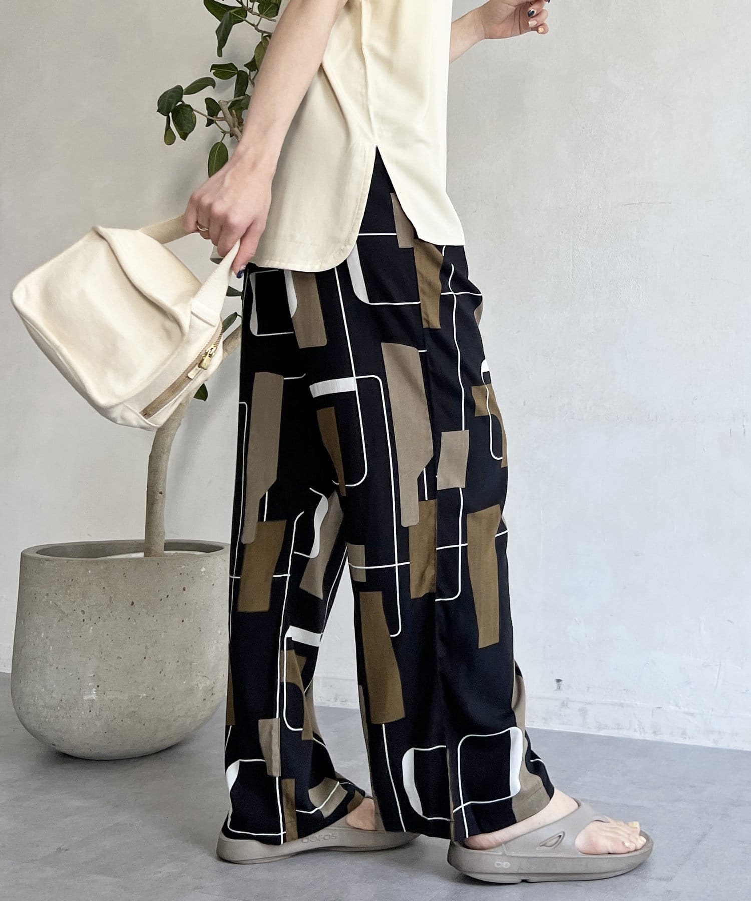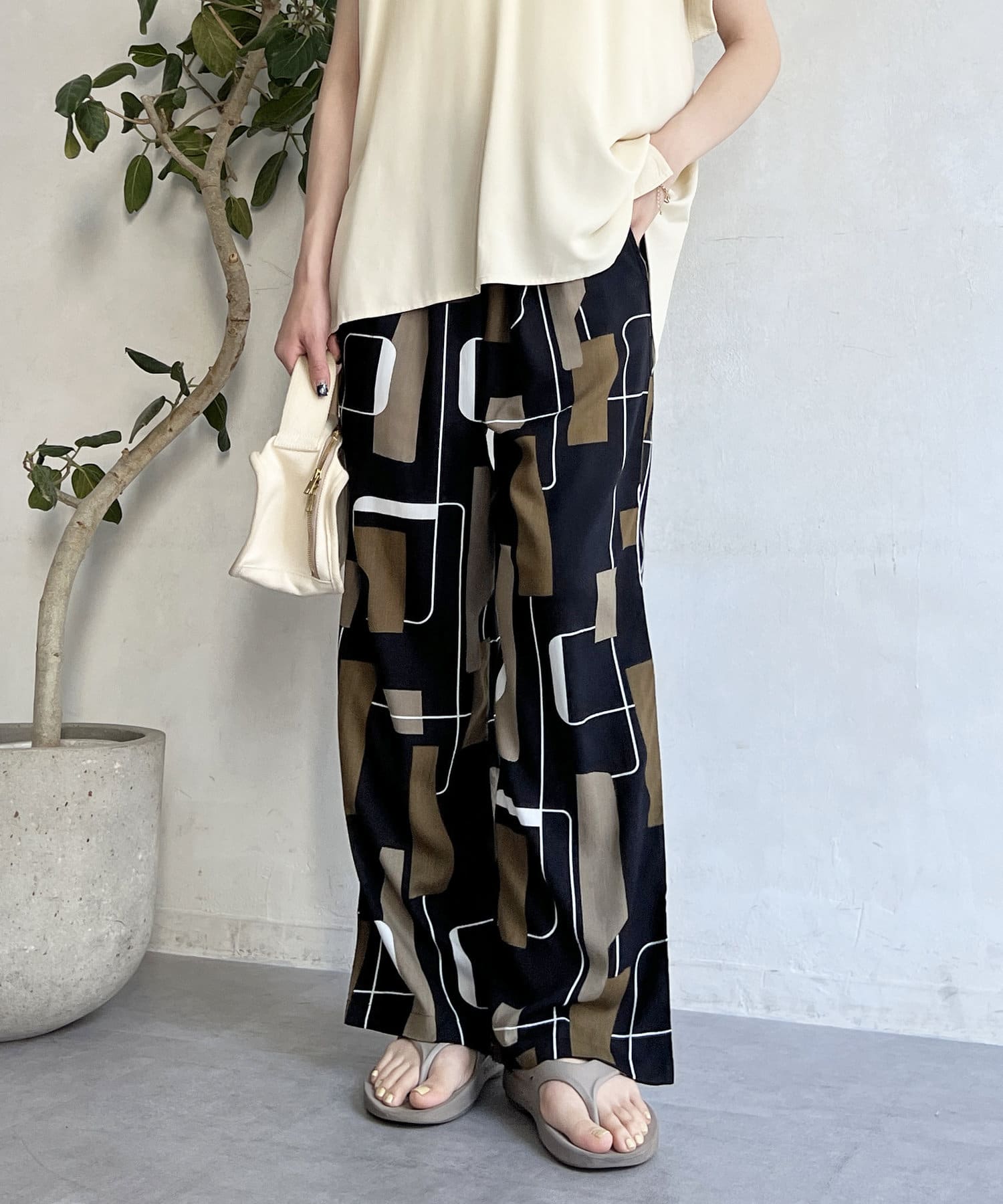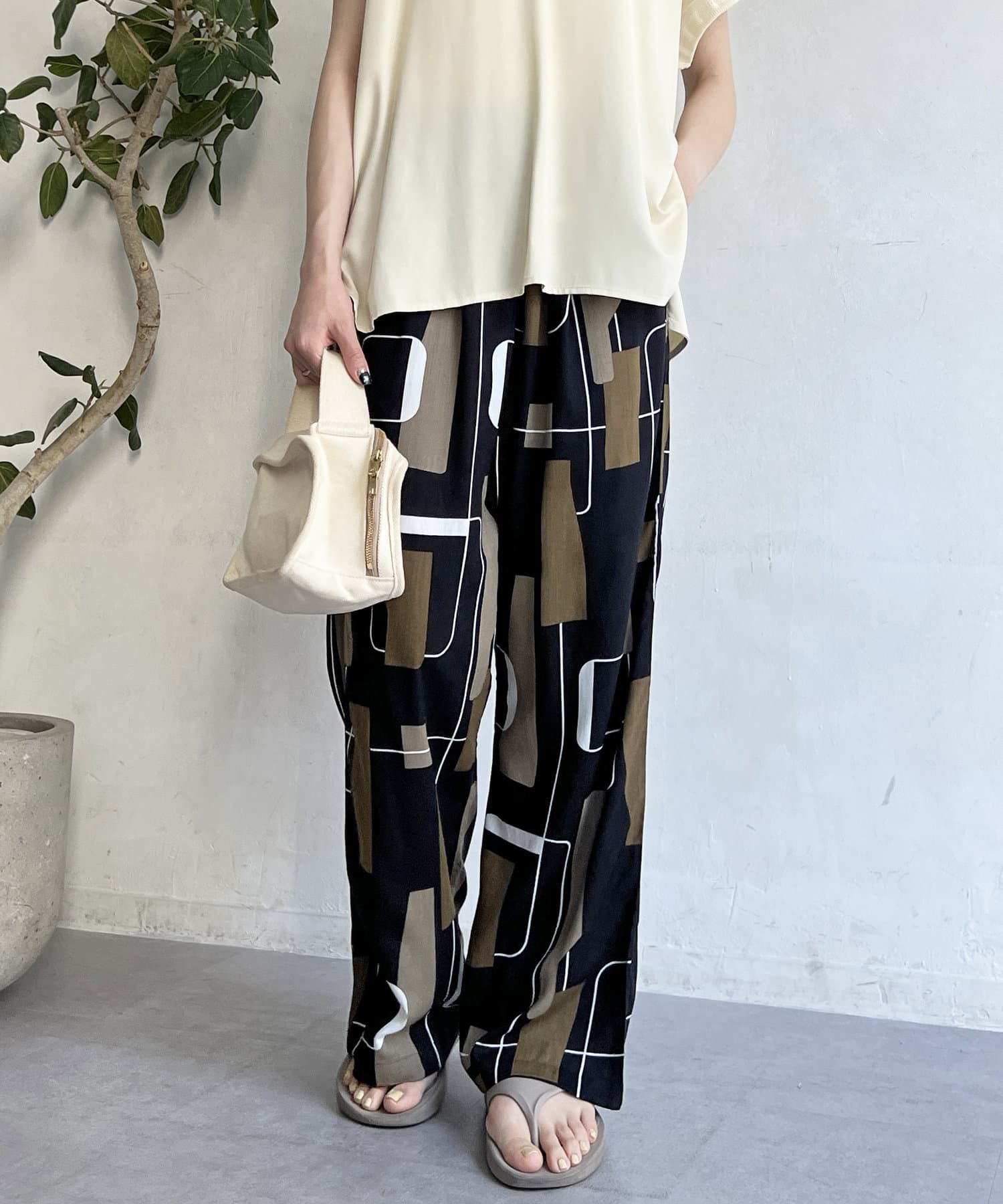 鮮やかなプリントが目を惹くイージーパンツ
