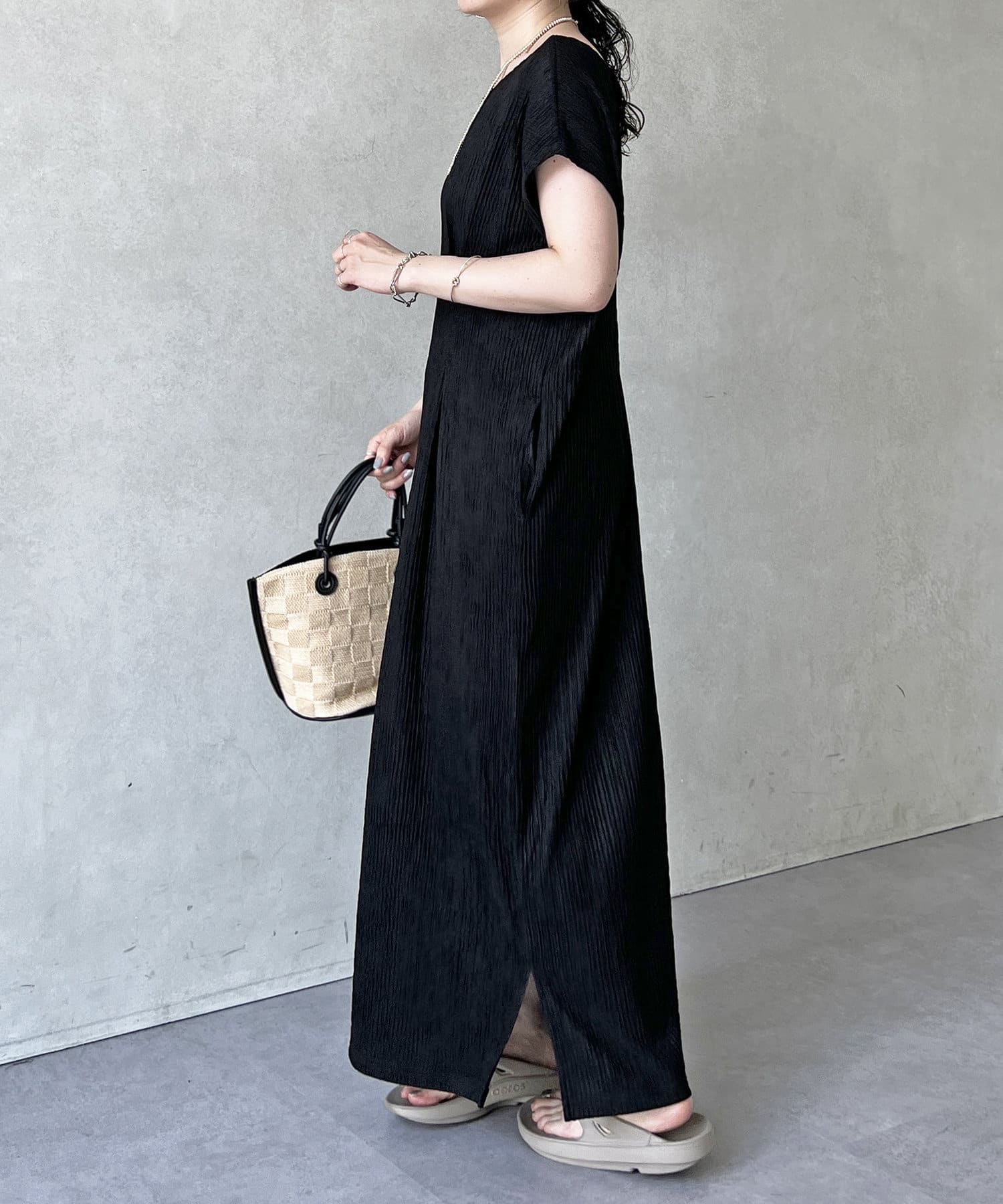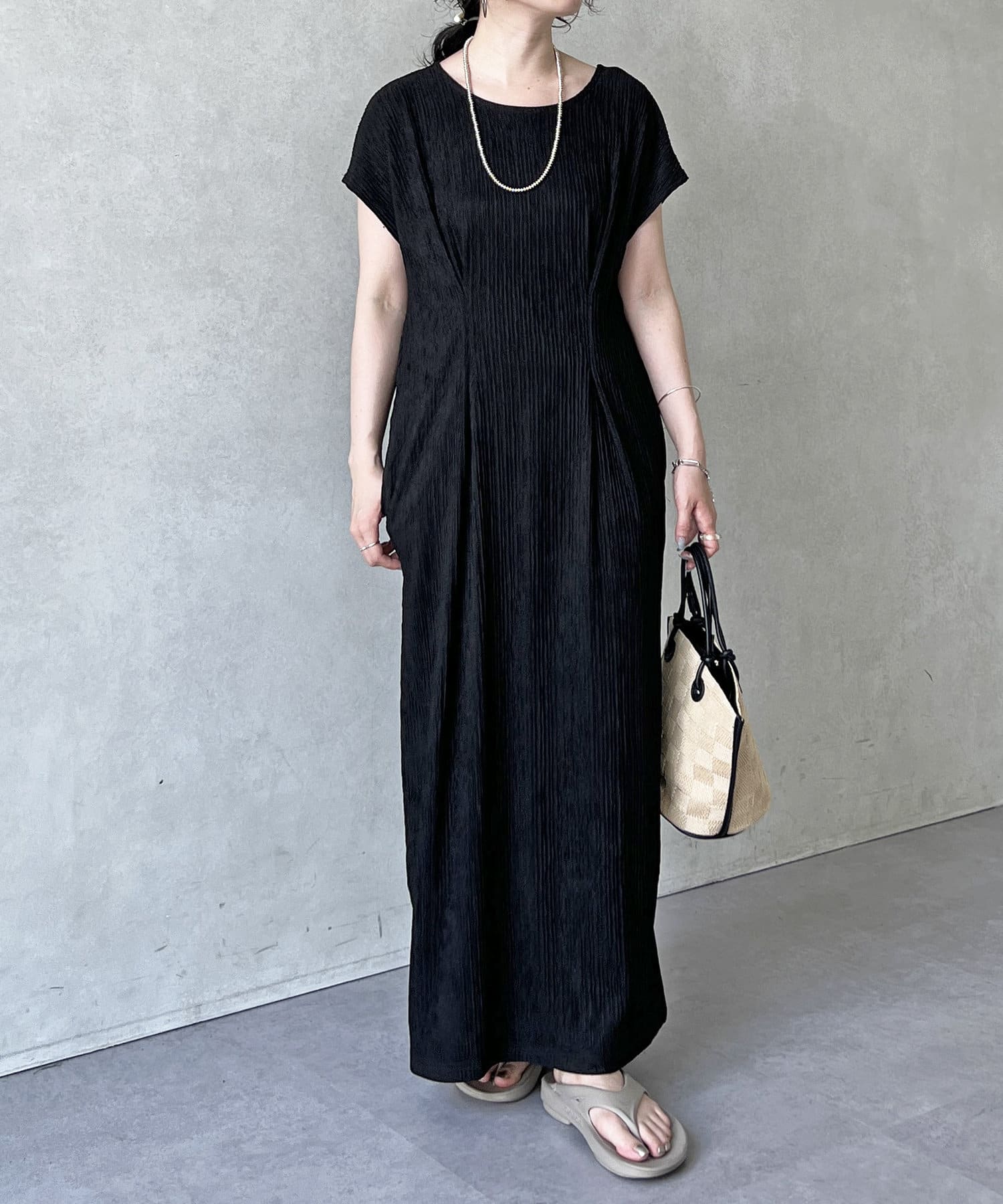 購入する予定ではなかったのに、試着したら、綺麗なラインで痩せ見え!前後2wayって所もよし。一枚でサラッと着れて、夏の暑さもへっちゃらでした。