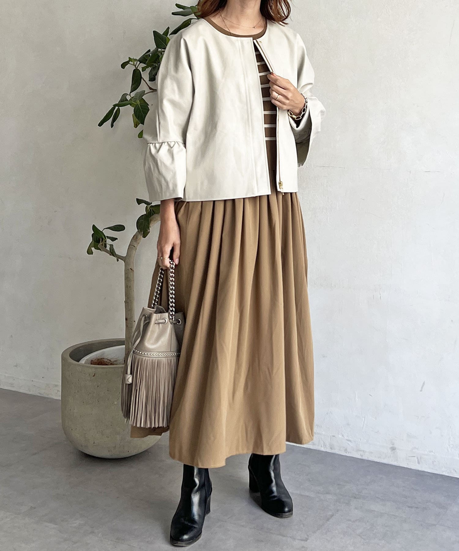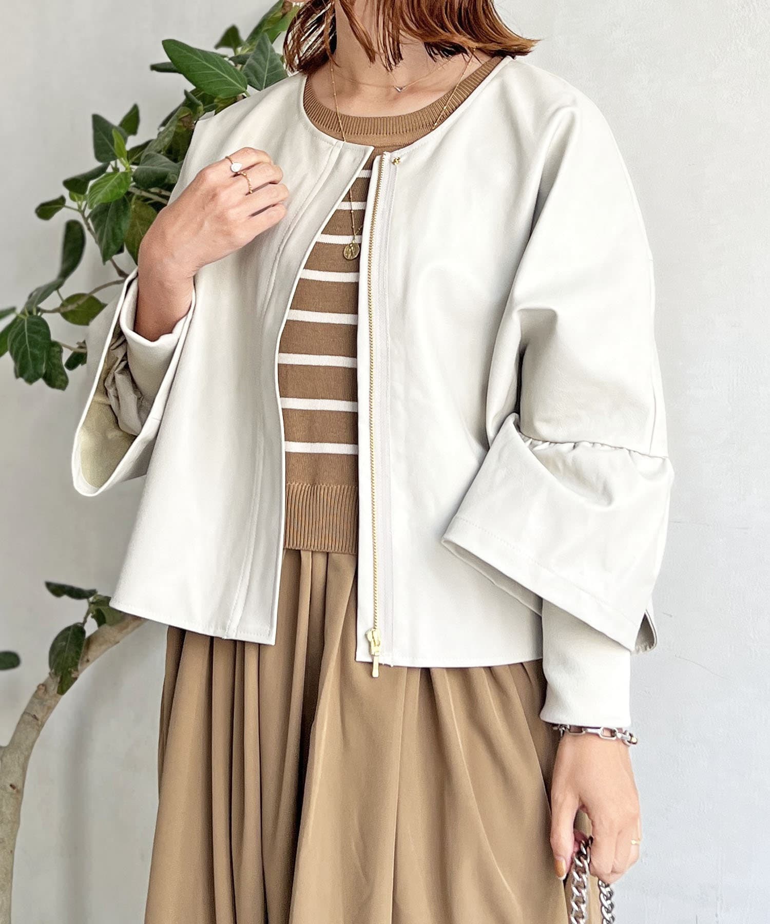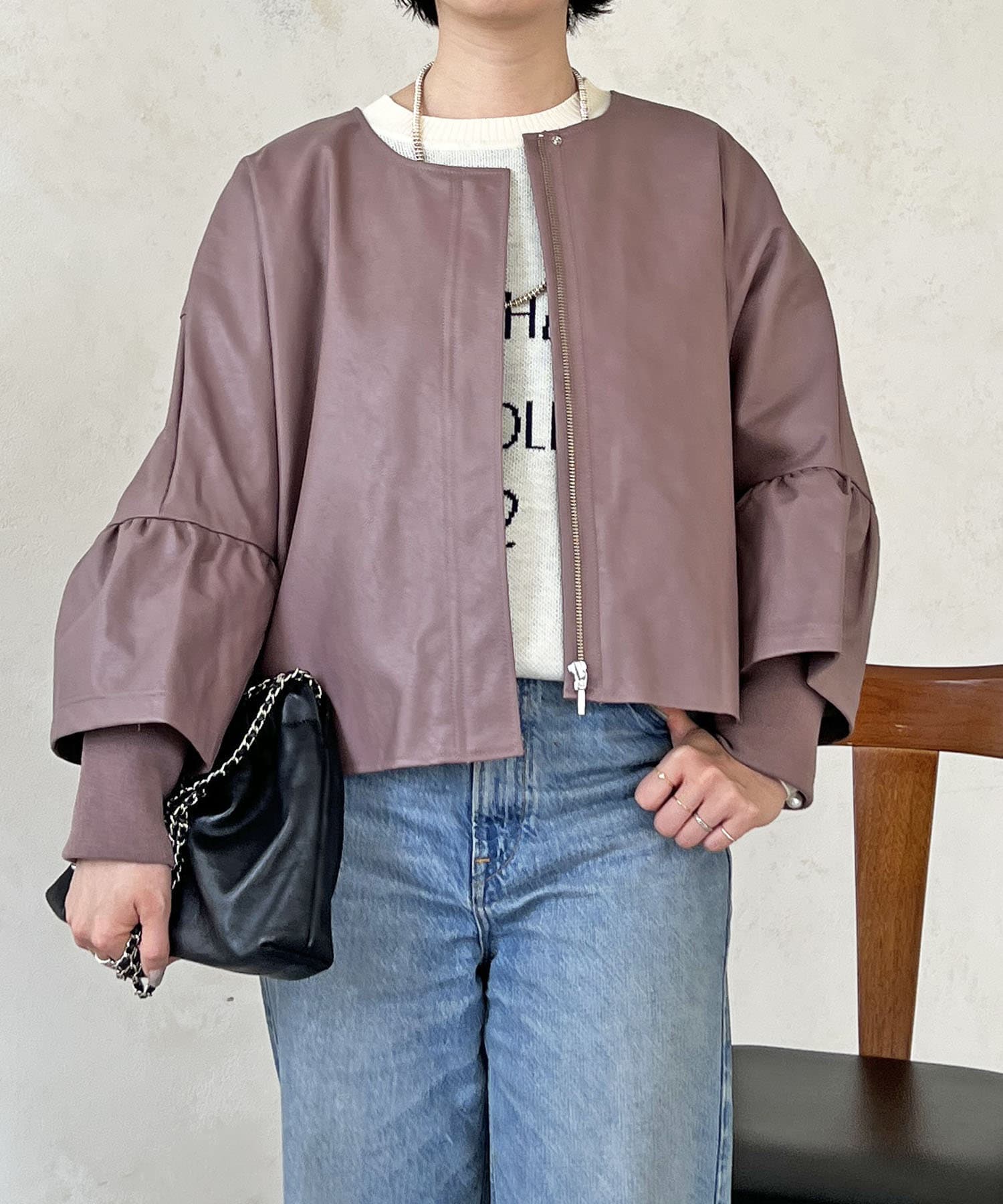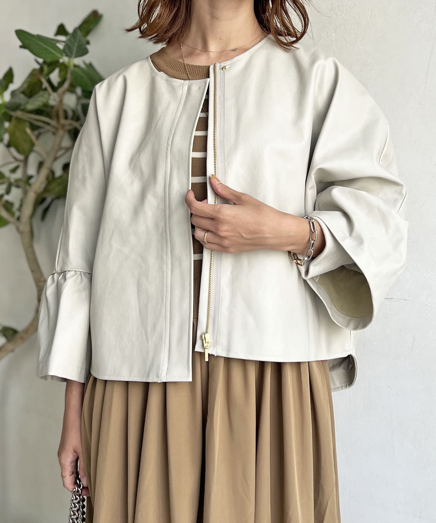 TOP > Croisiere > レディース > ジャケット/アウター > ノーカラージャケット > 袖フリルブルゾン