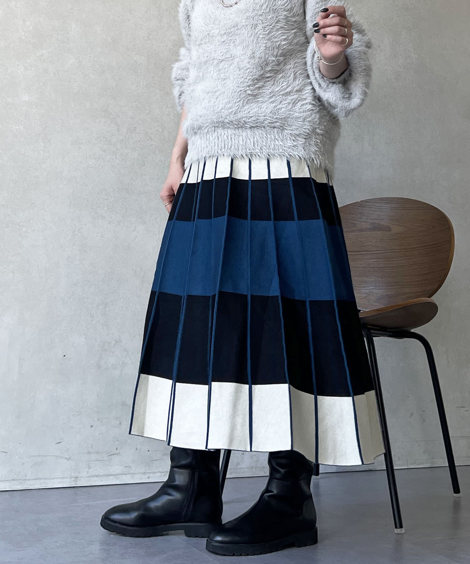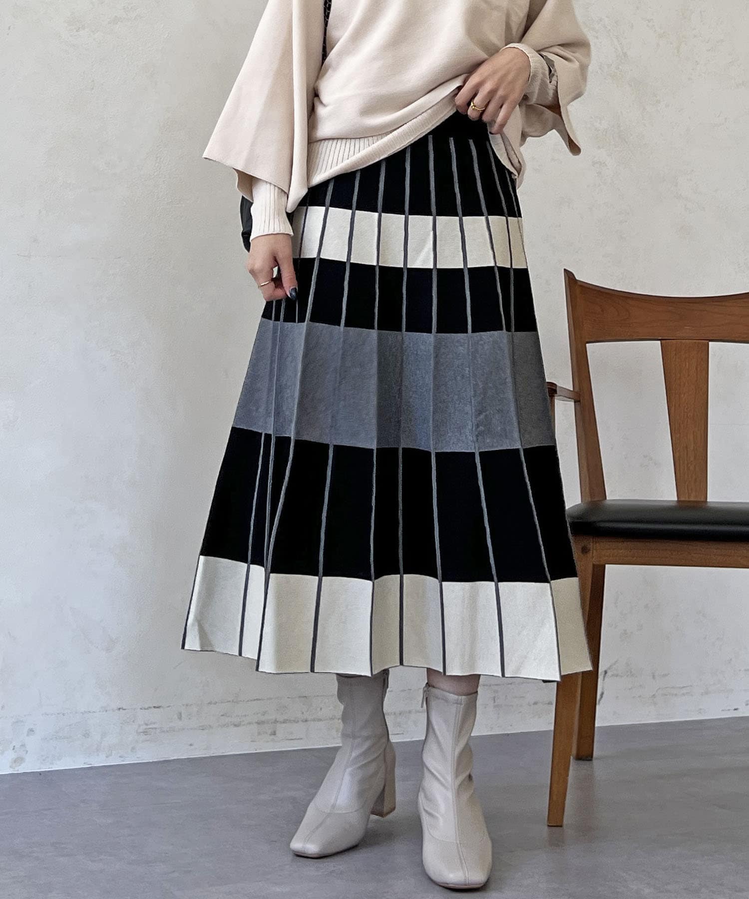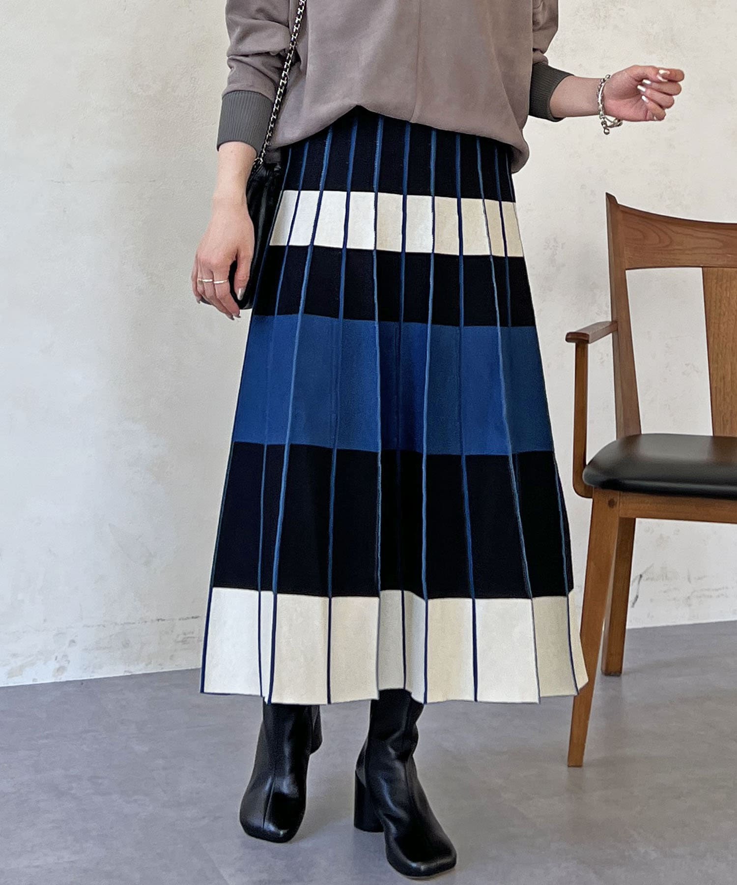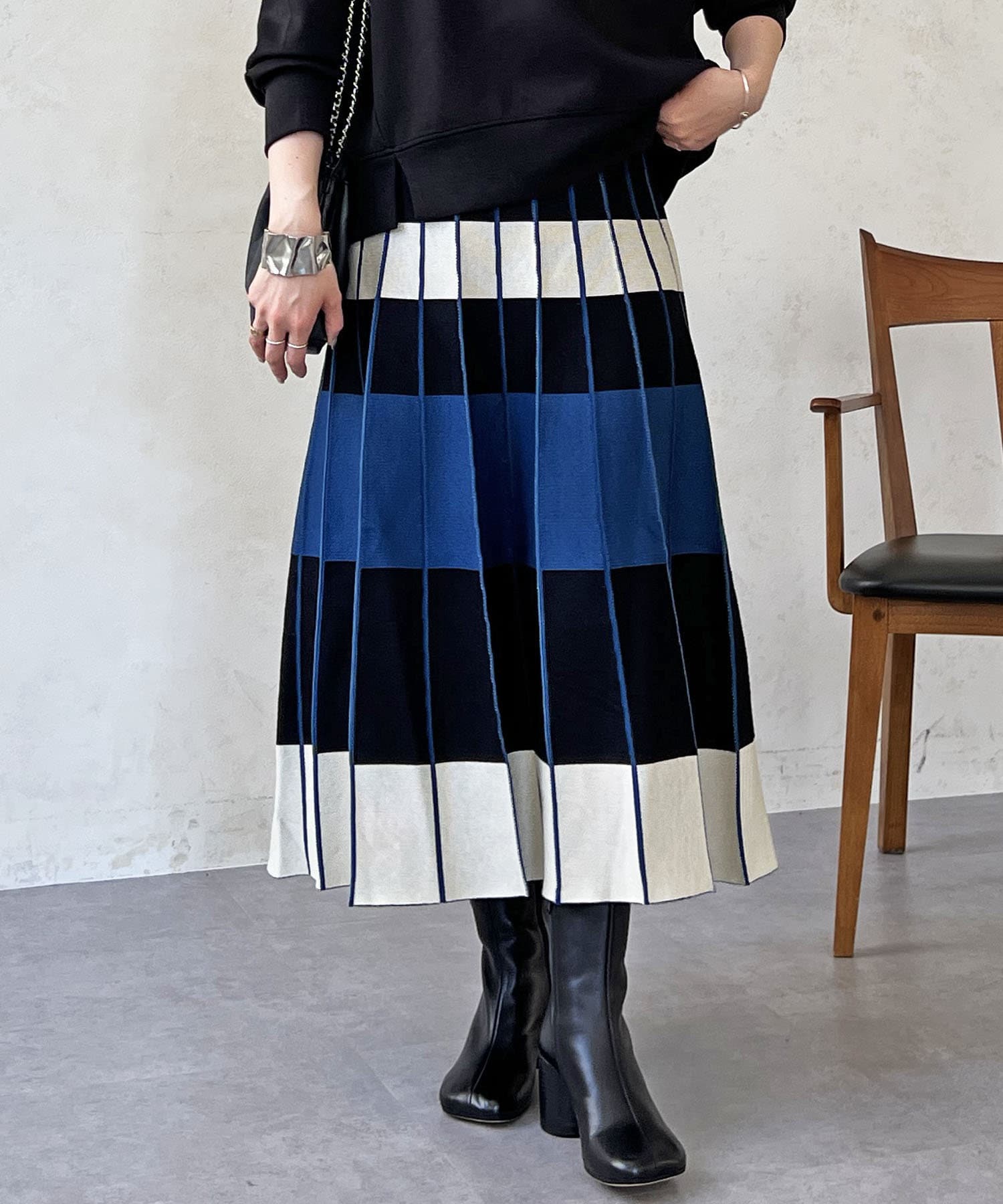 カラーボーダーニットスカート