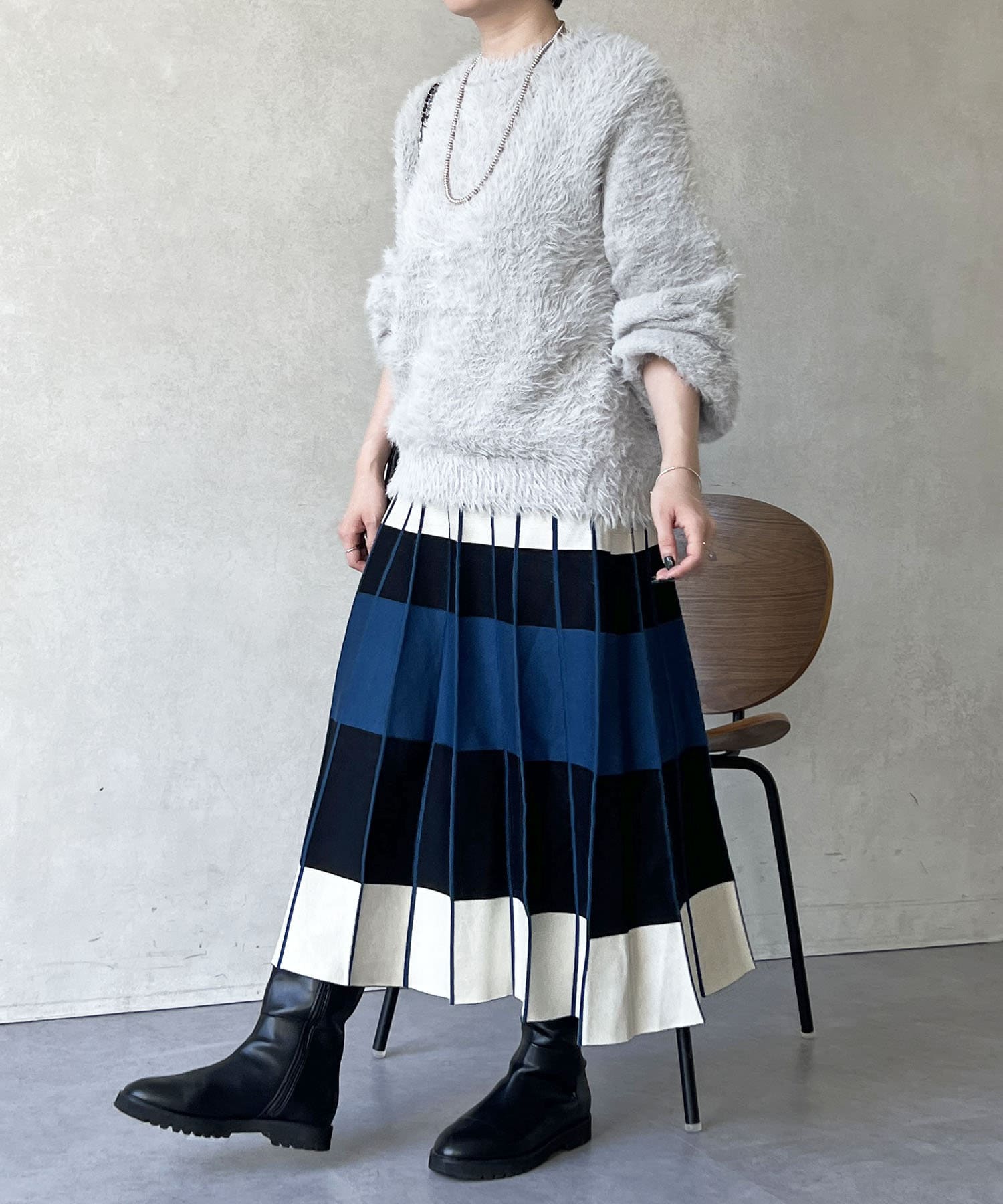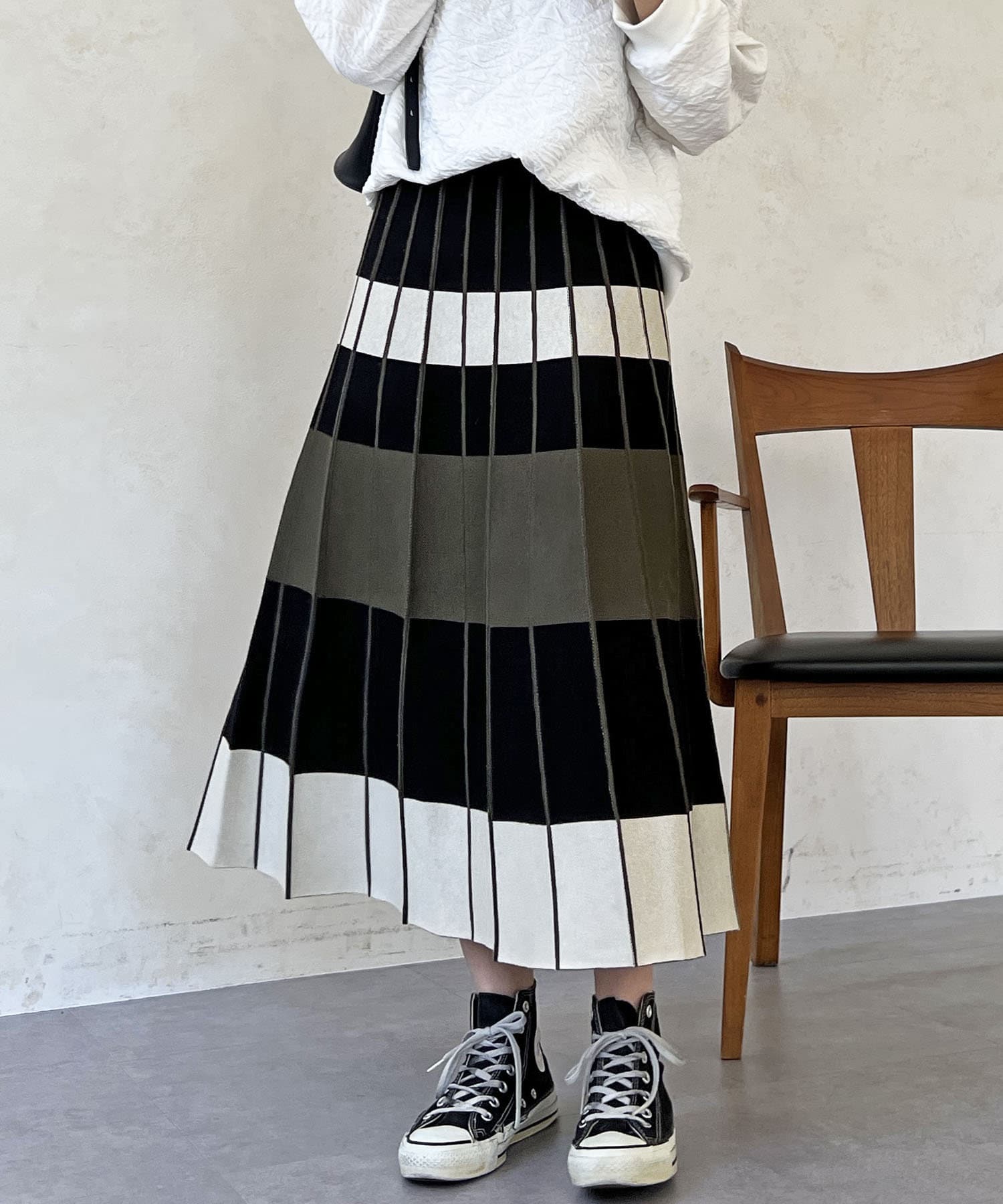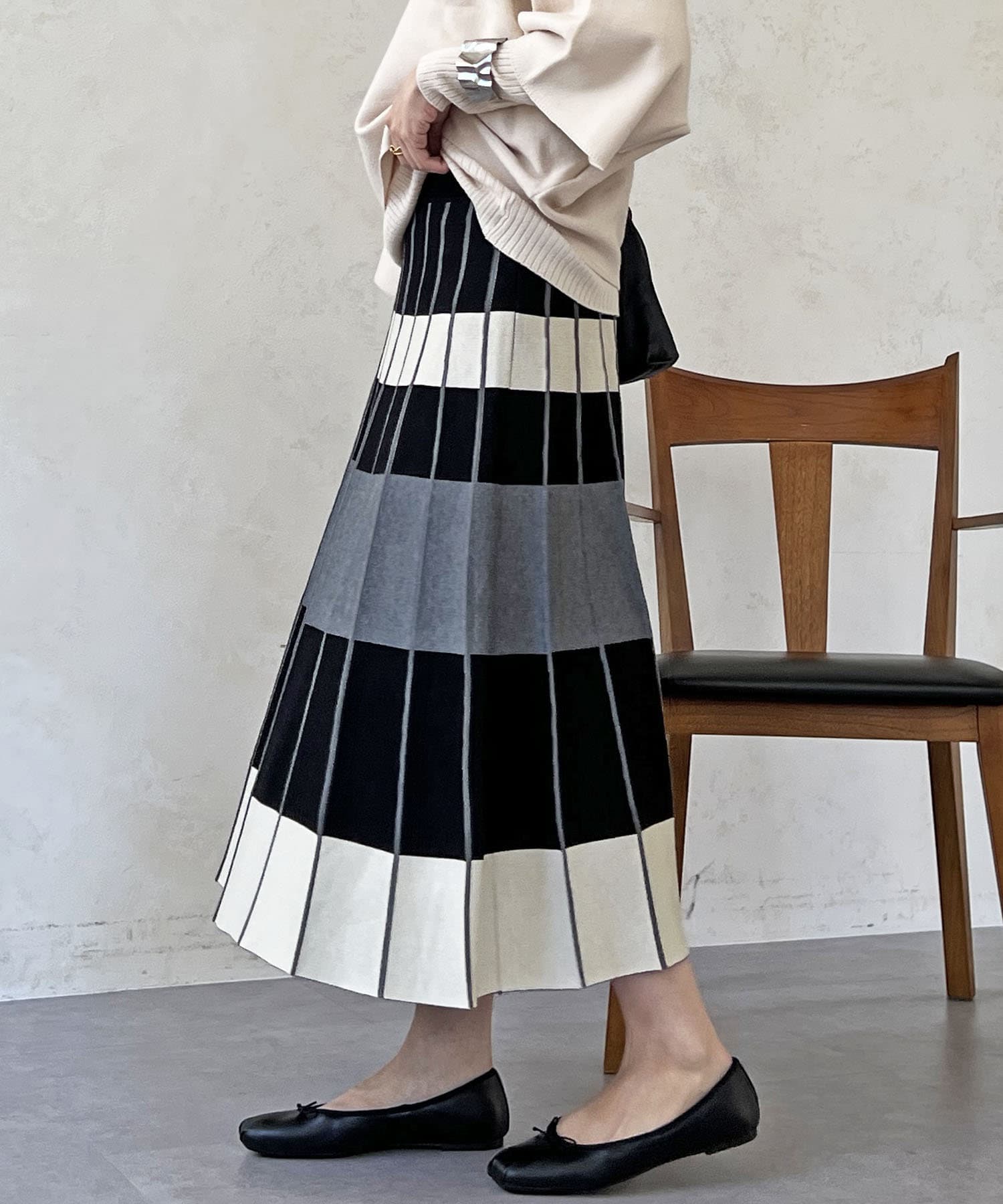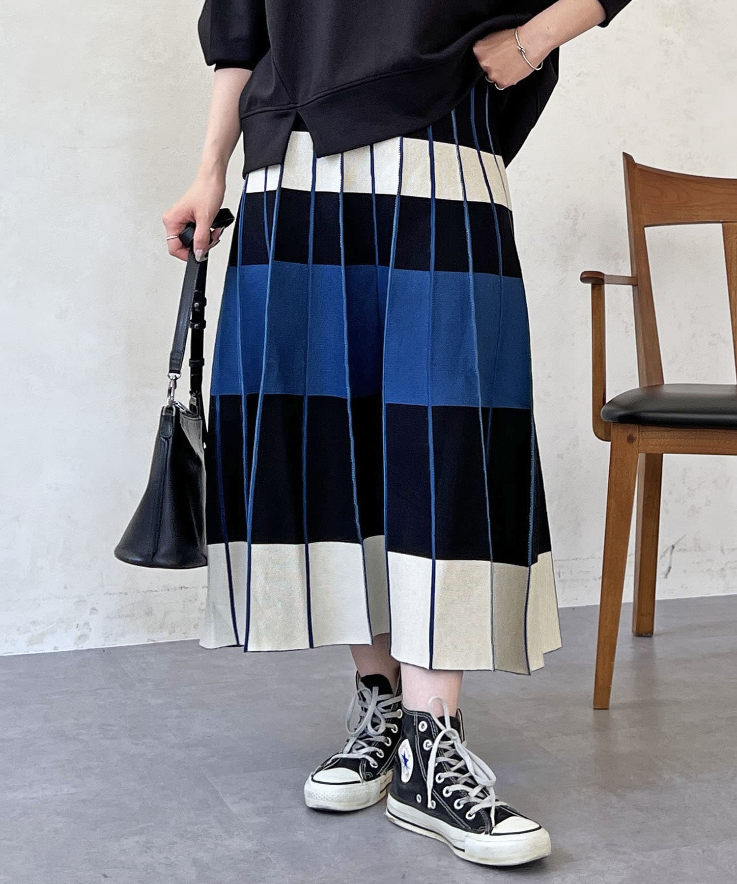 カラーボーダーニットスカート