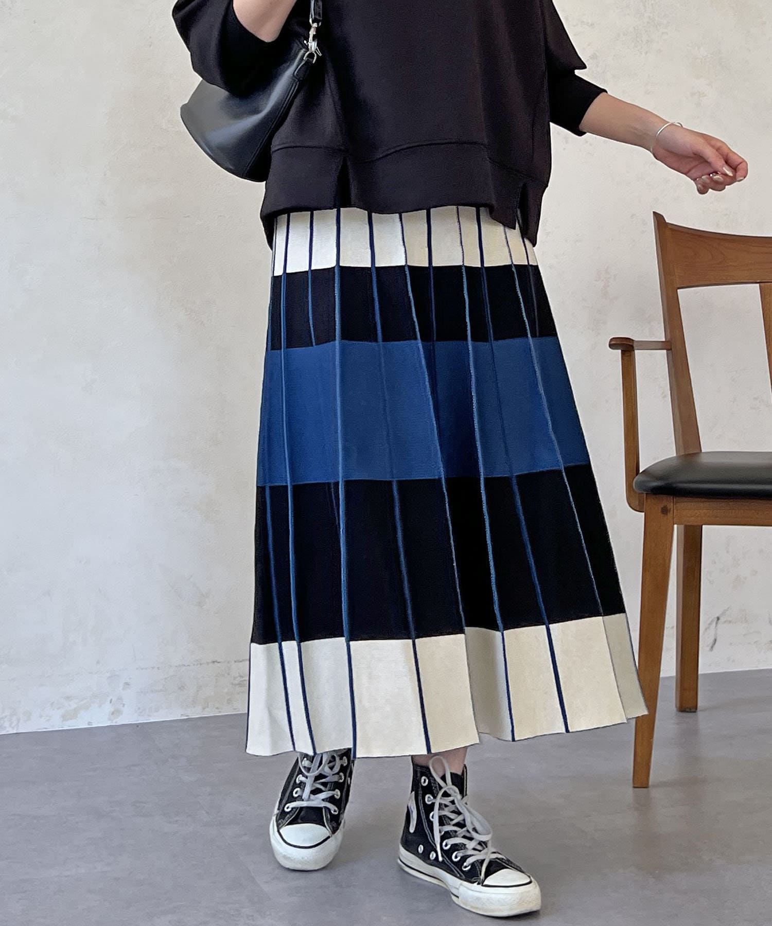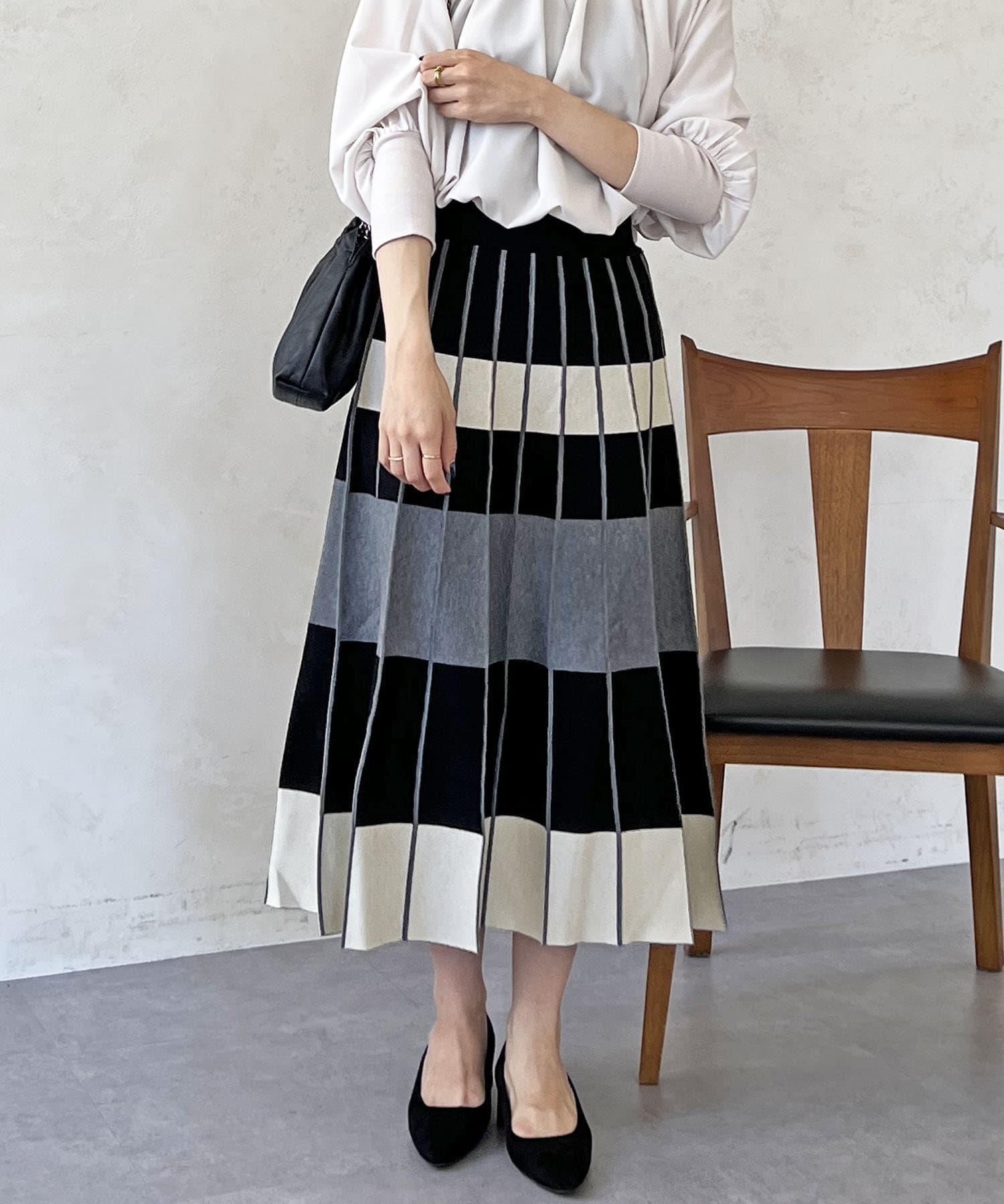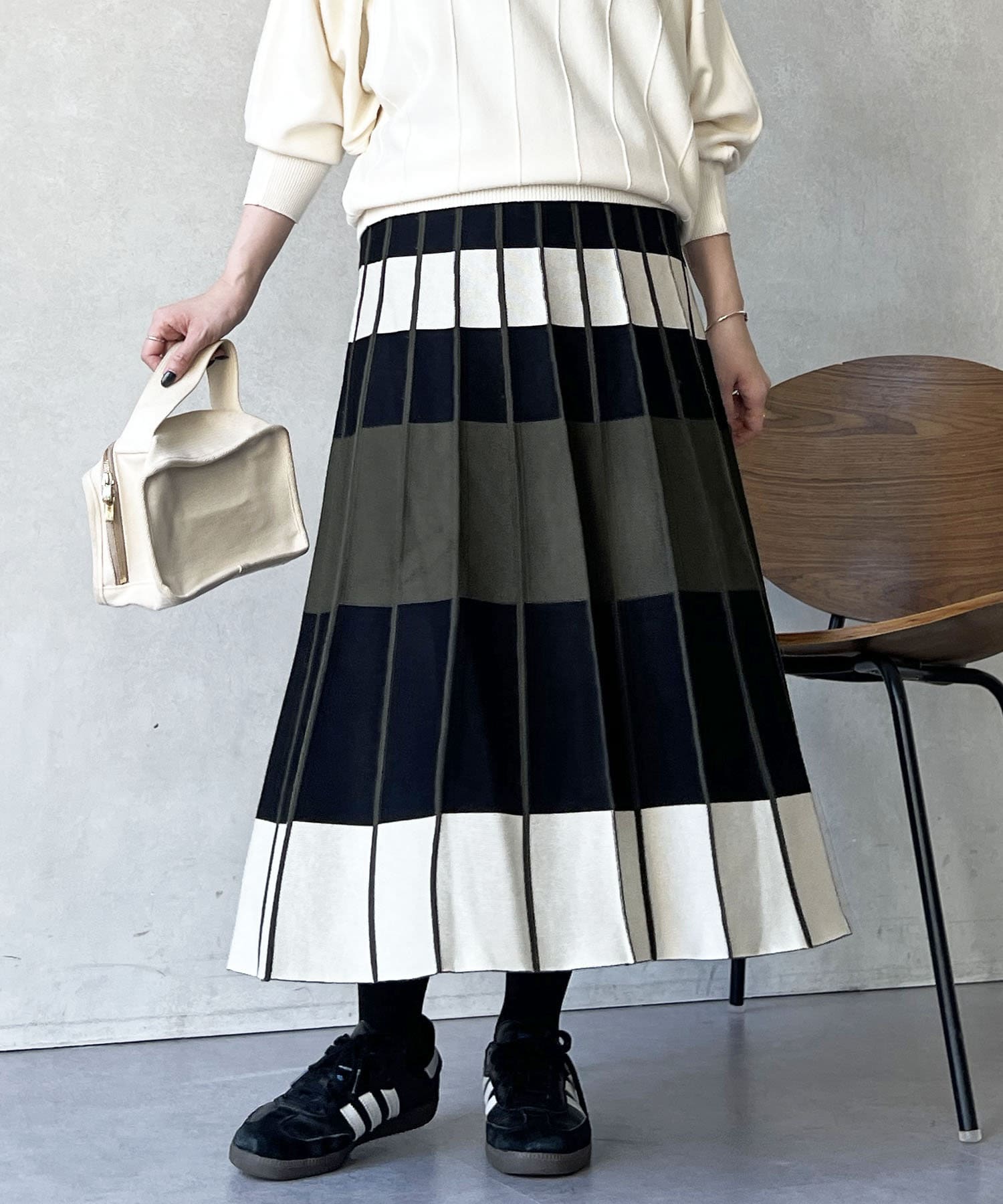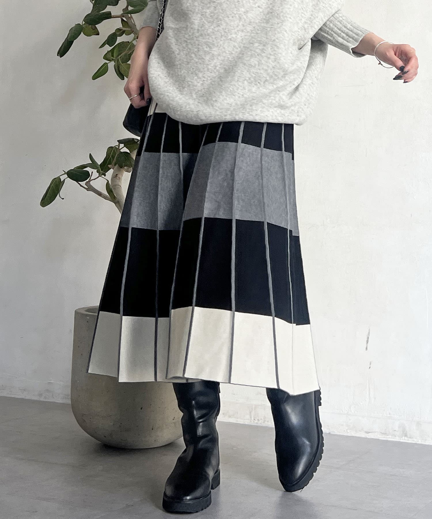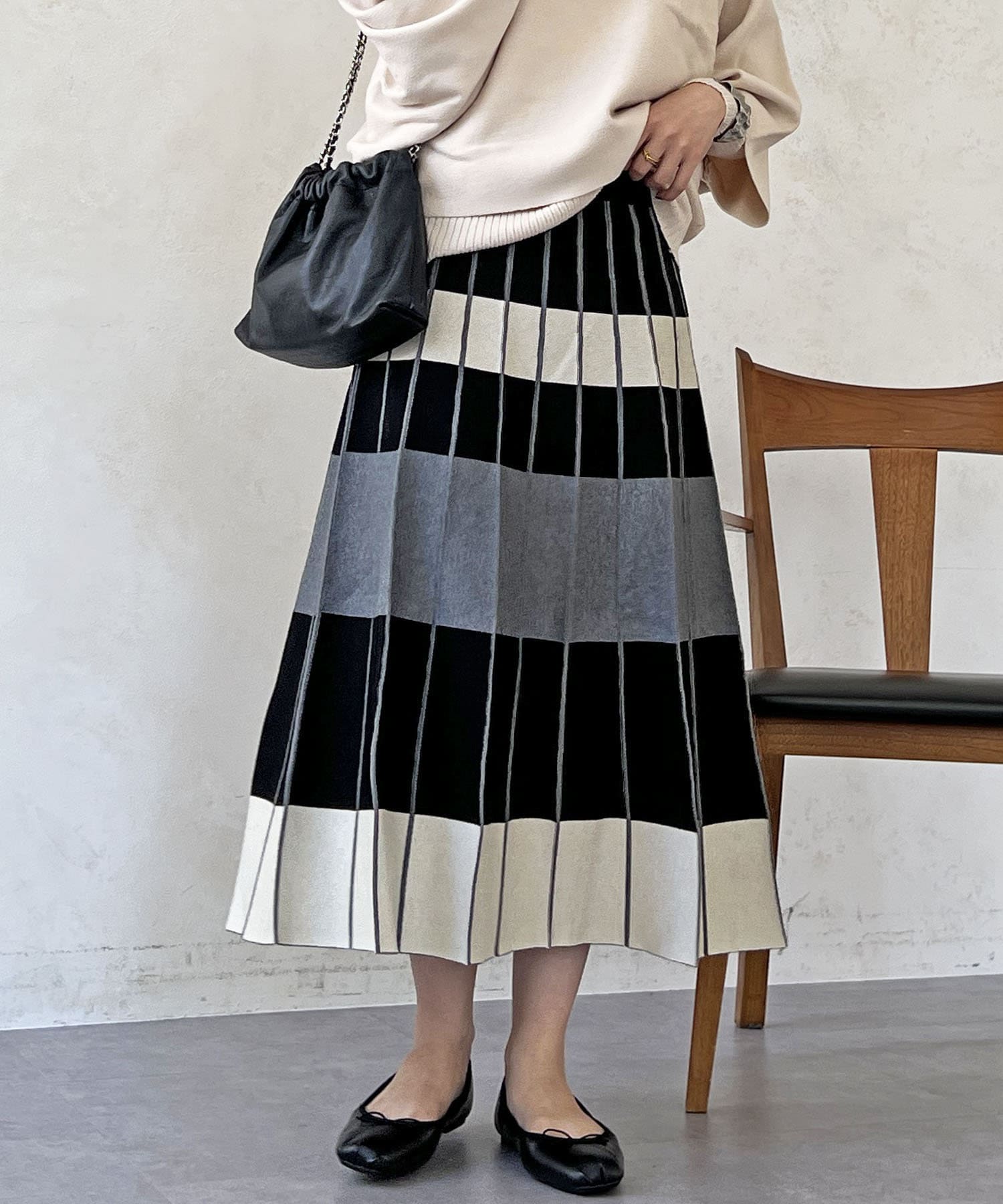 カラーボーダーニットスカート