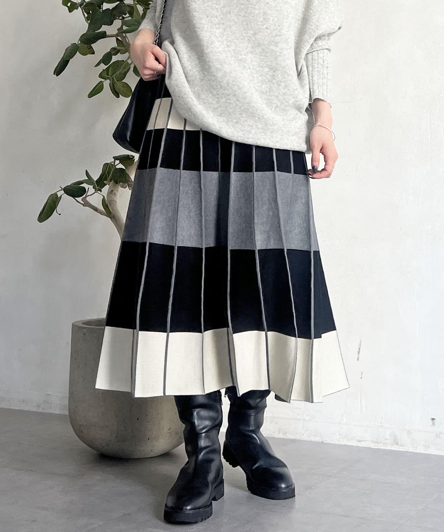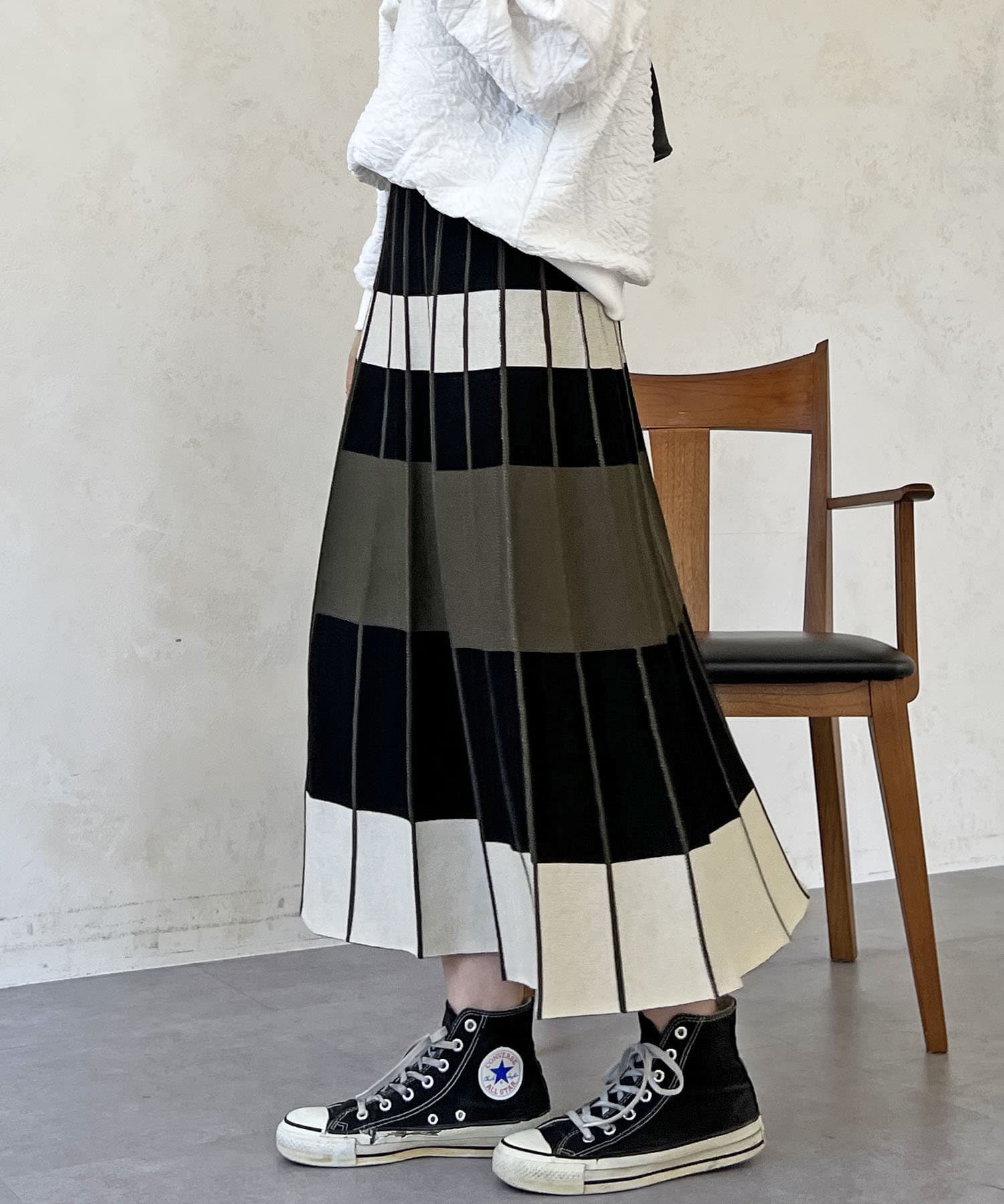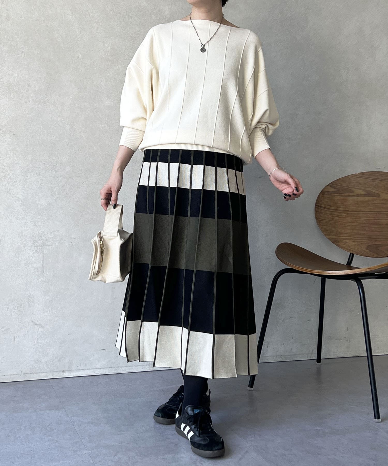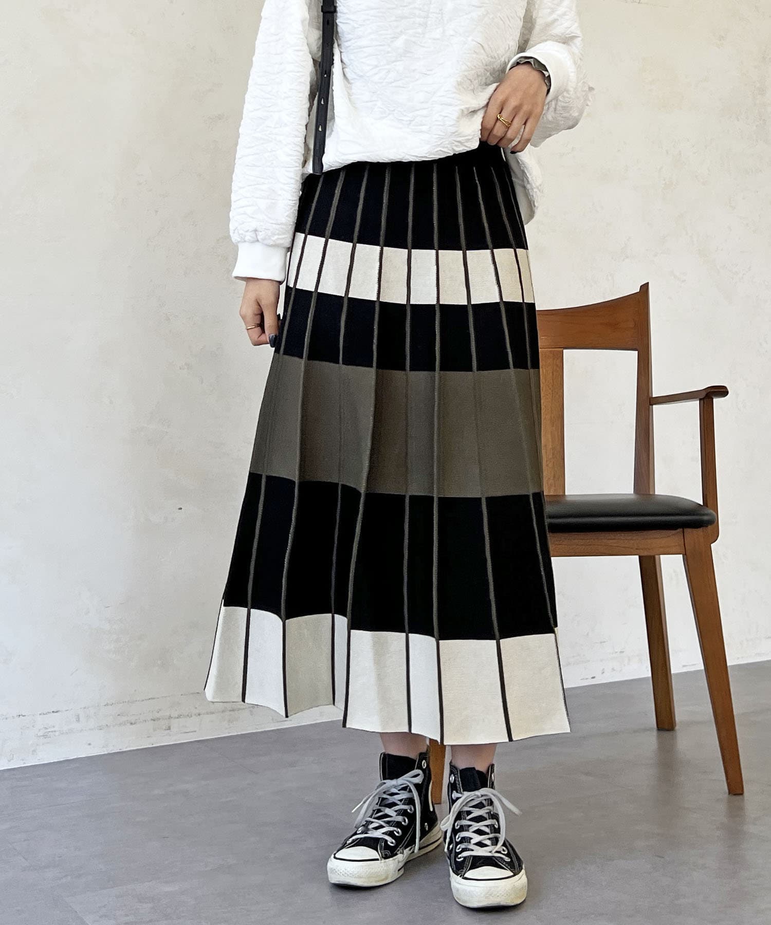 カラーボーダーニットスカート
