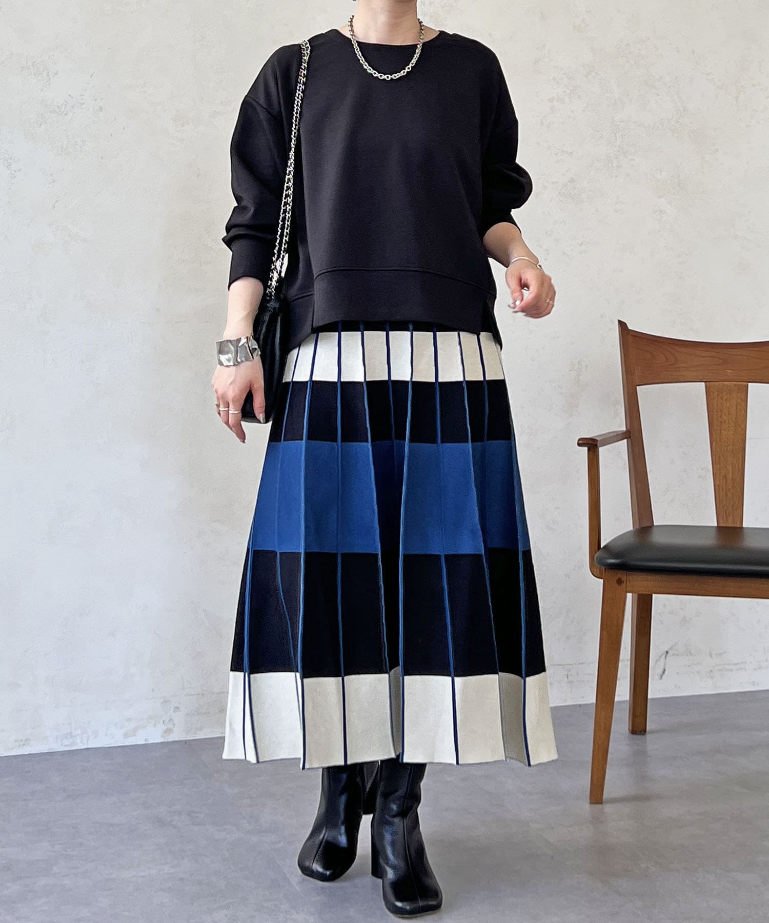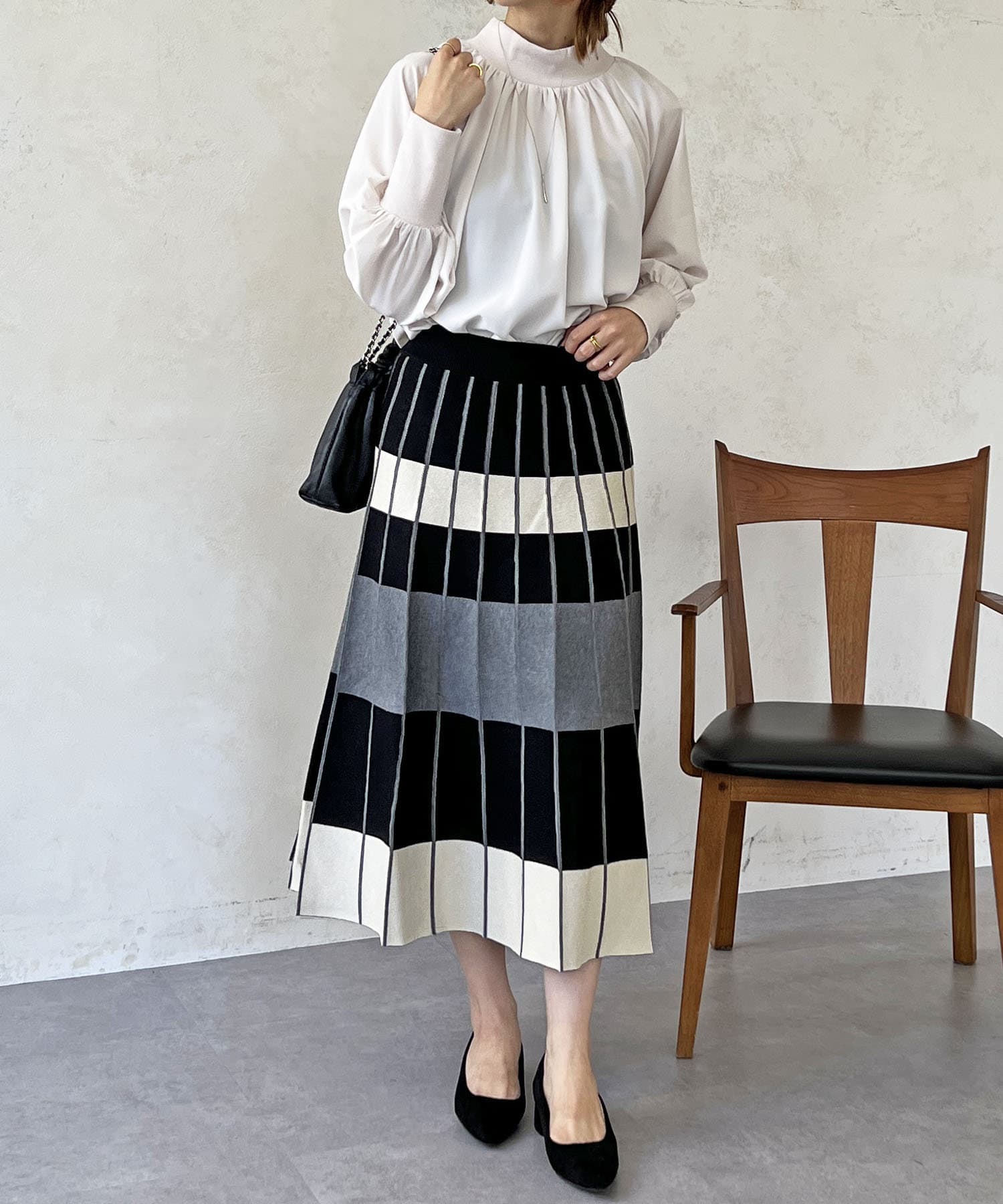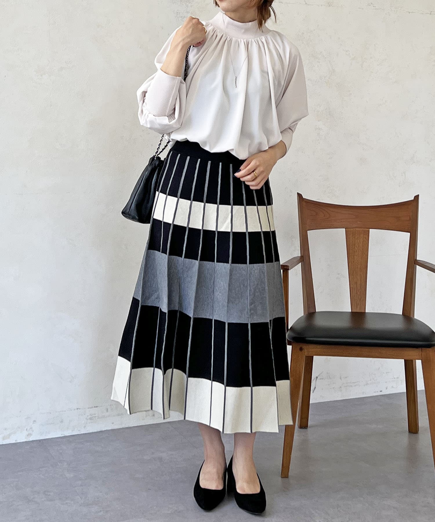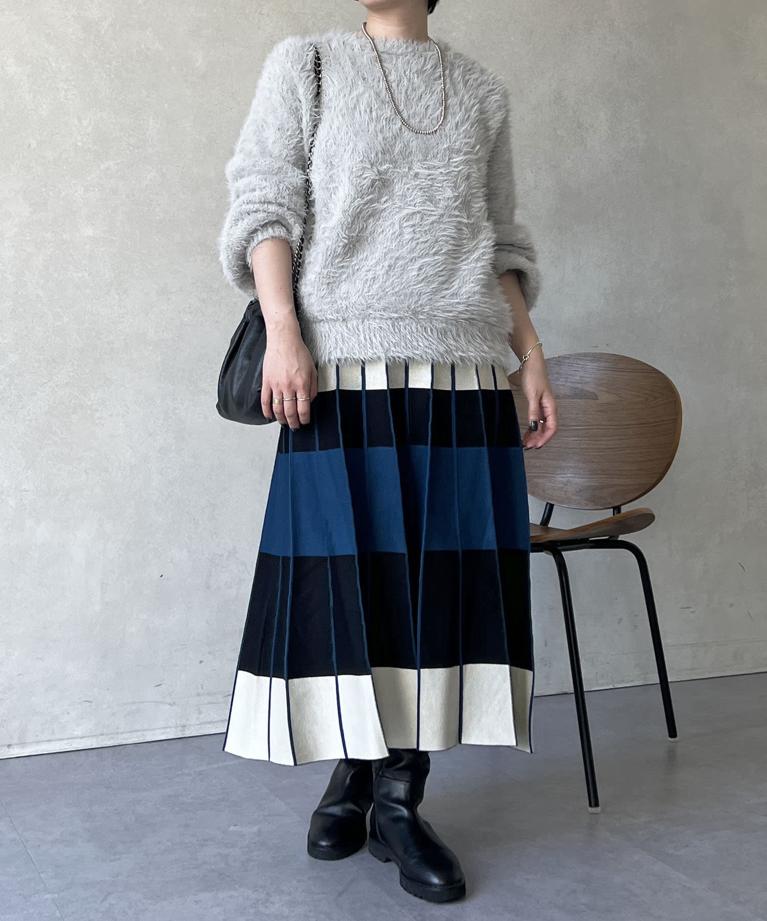 カラーボーダーニットスカート