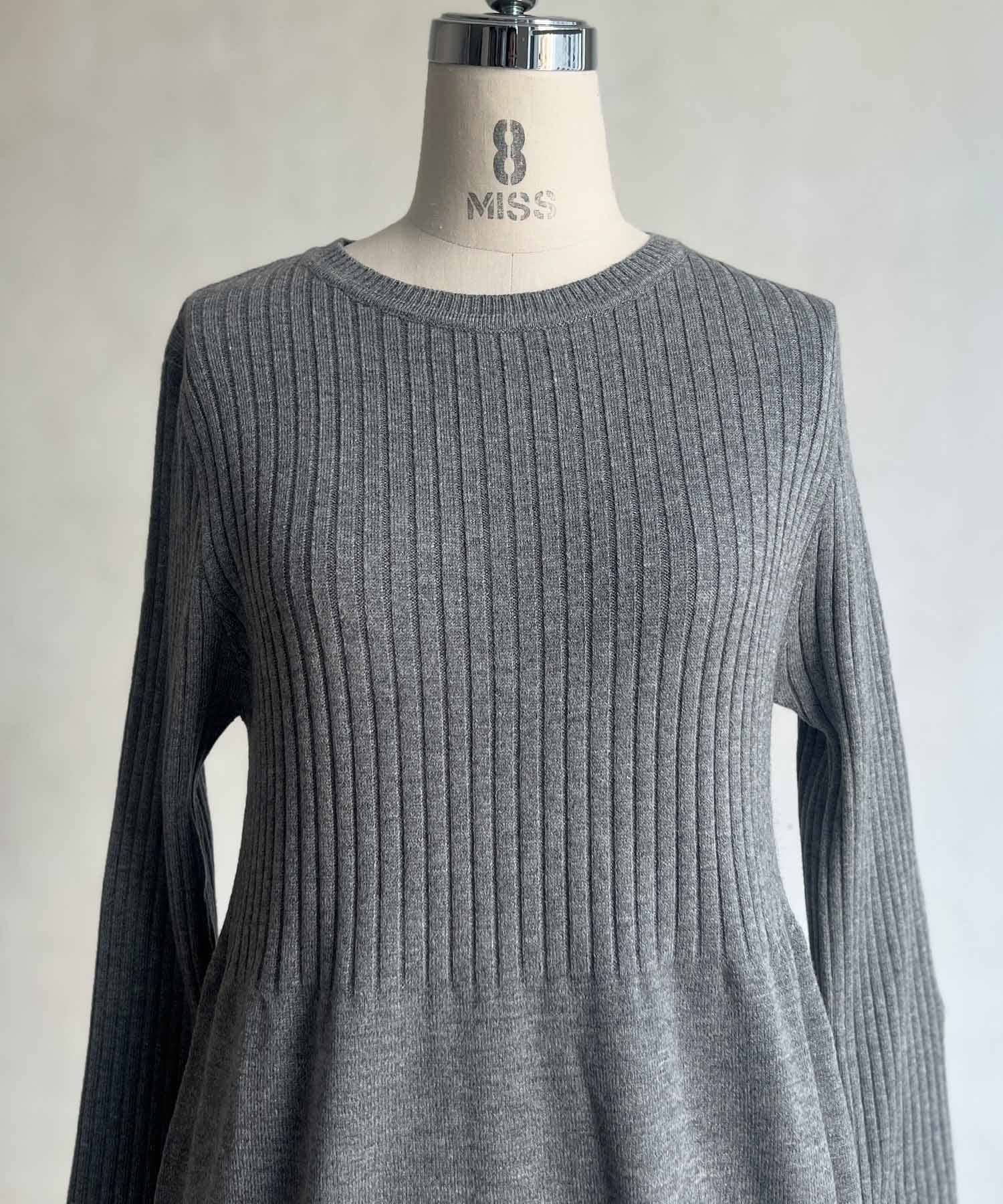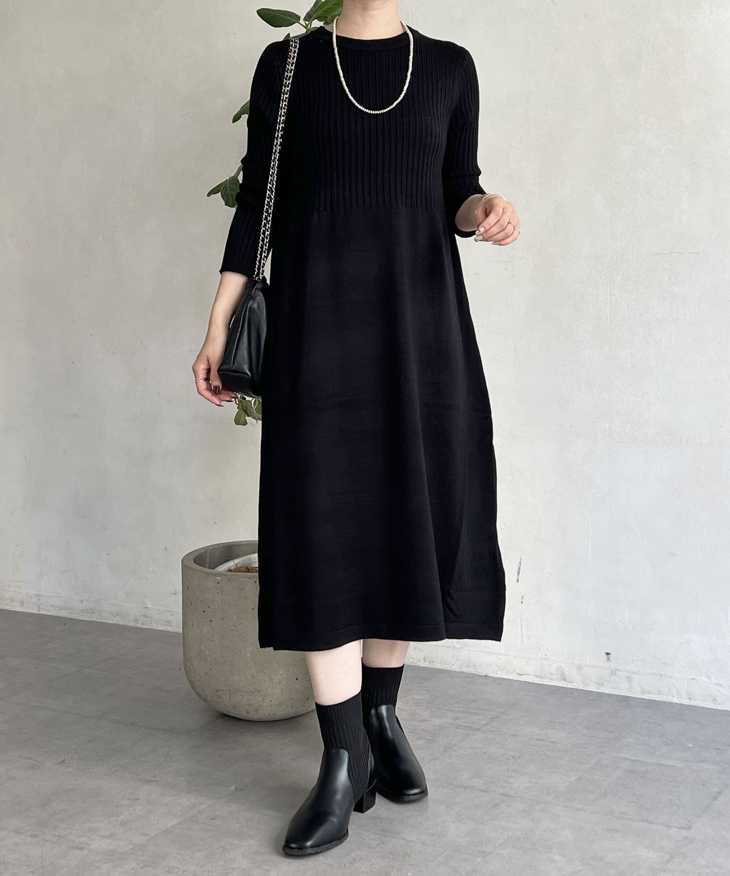 高めのウエスト位置でリブから下はフラットな生地感に。実はこの切替が細見えポイント!