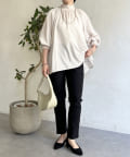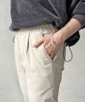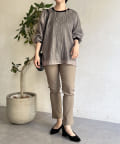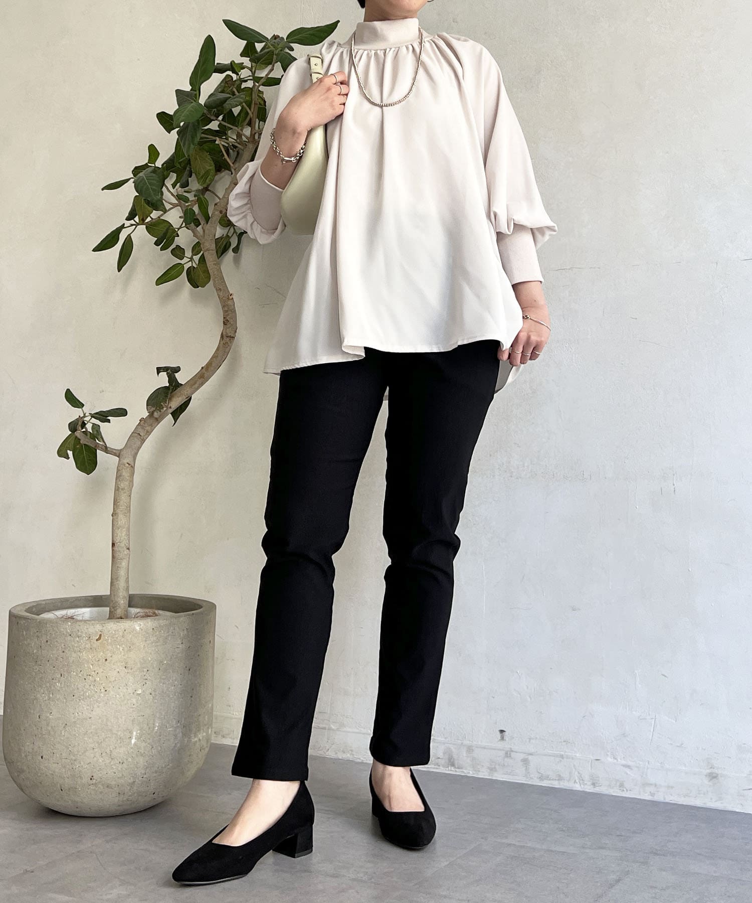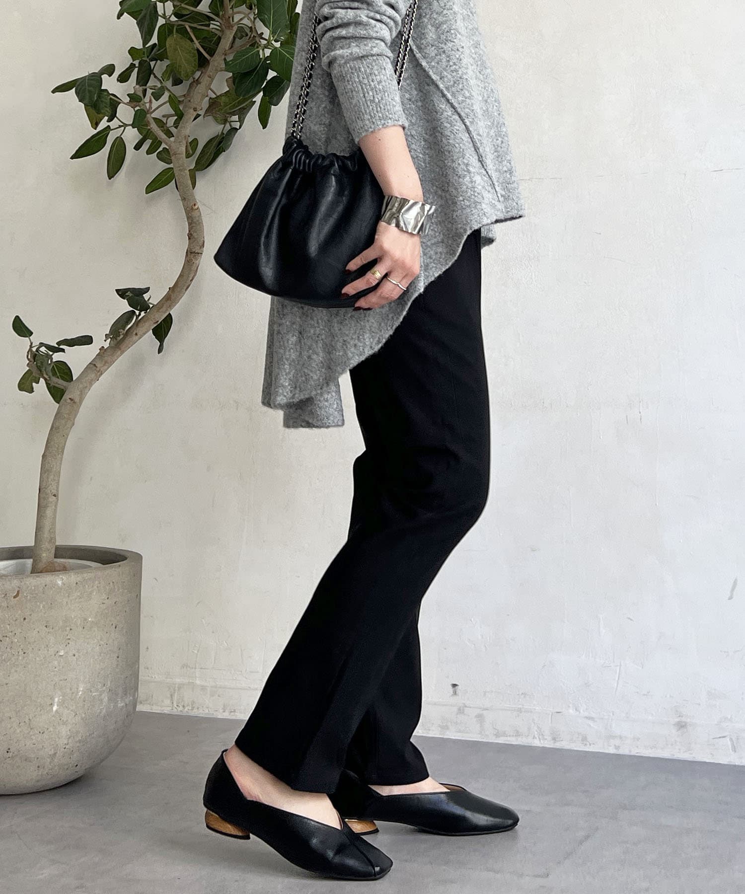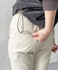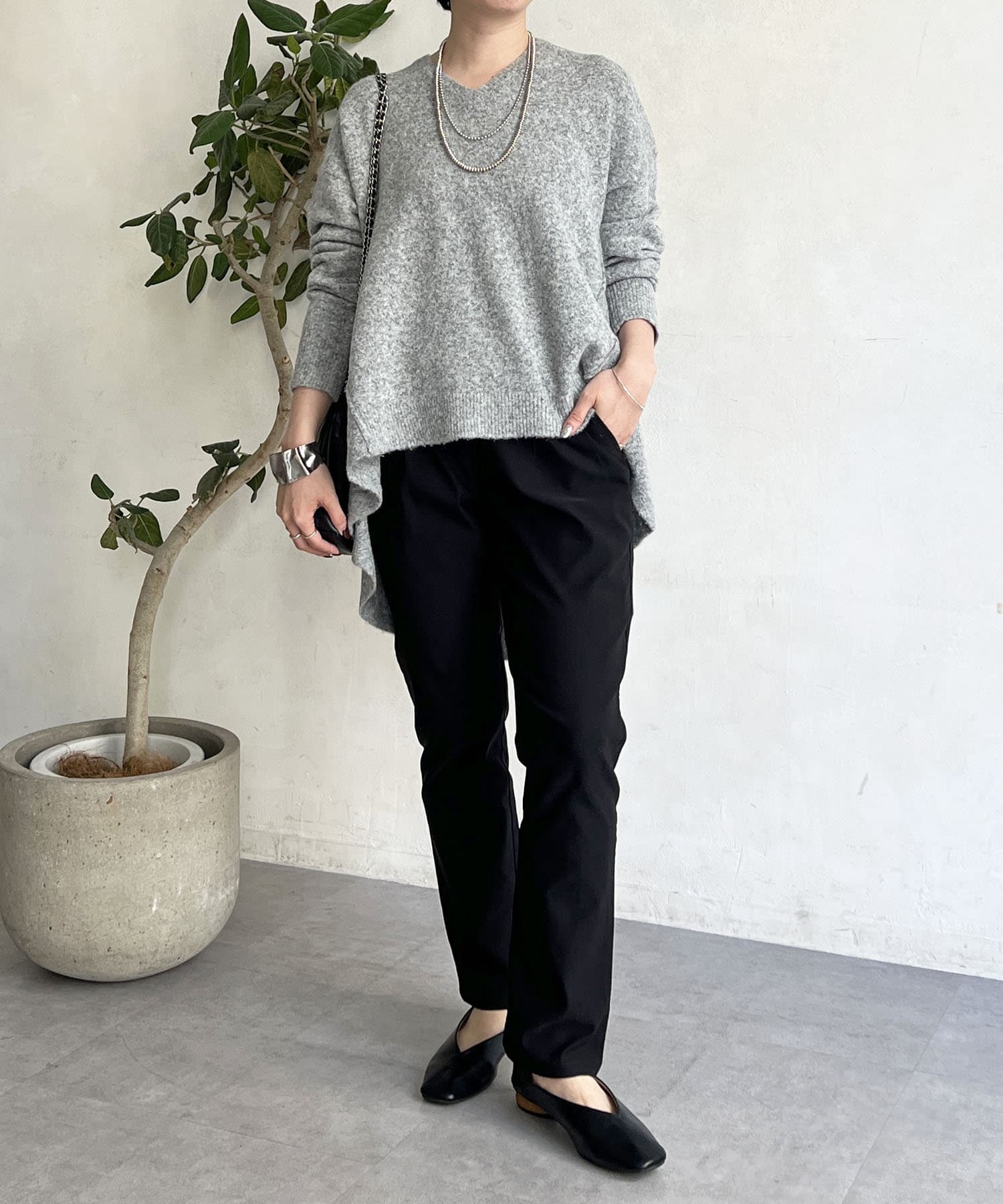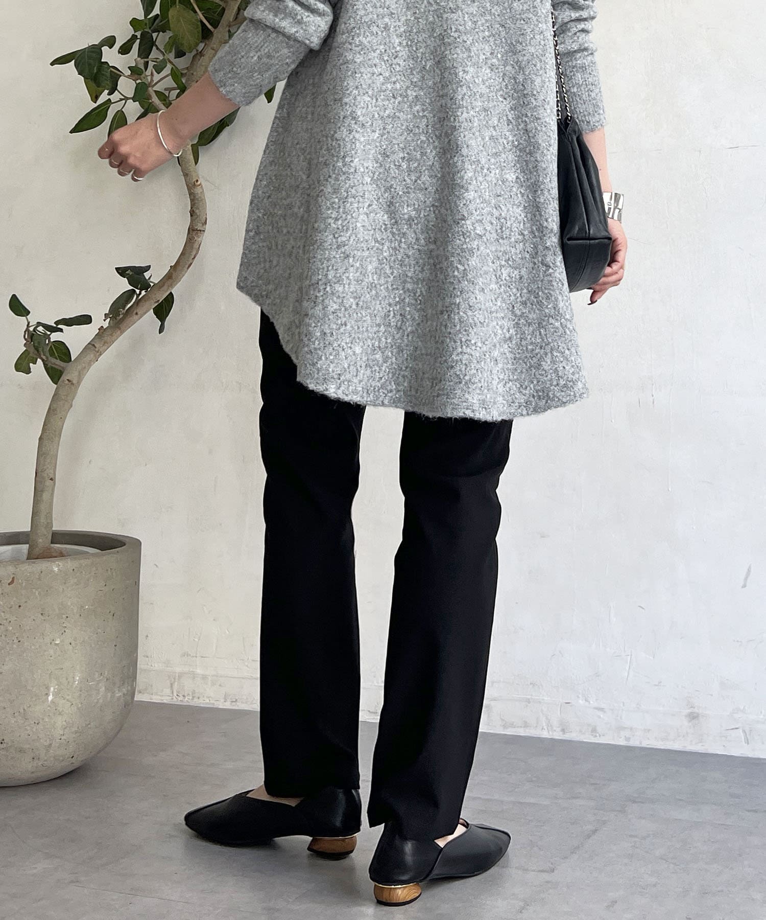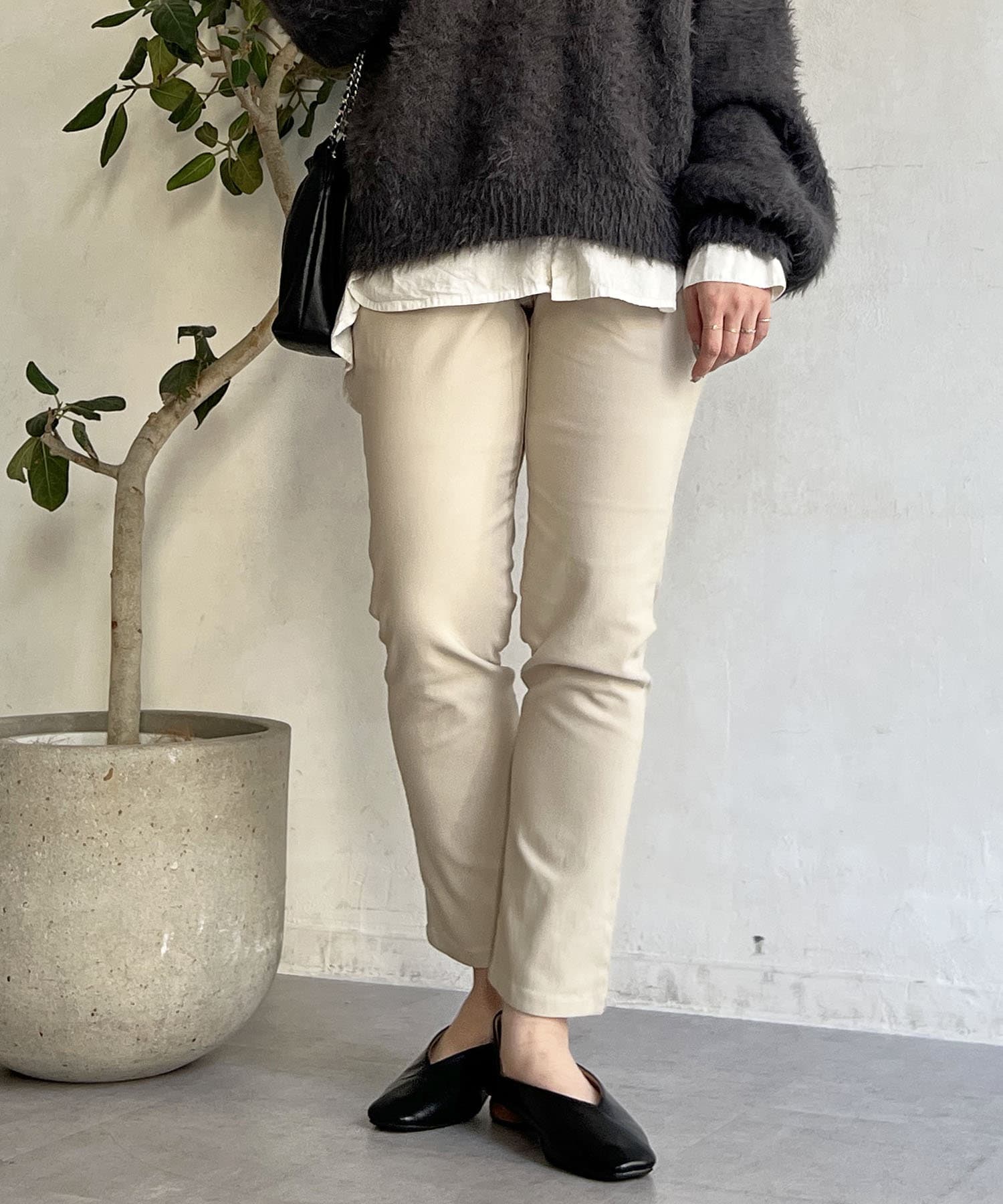 細見のパンツに見えるのに、中肉の生地で脚のラインを拾いにくく美脚見えが叶う嬉しいポイントも!