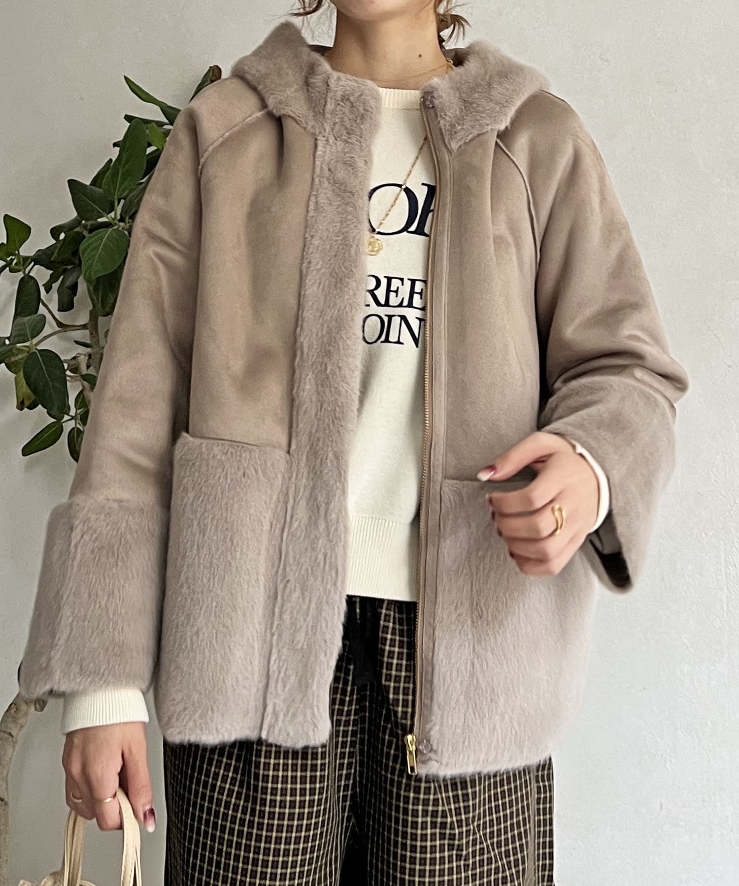 ・フェイクファーとスエード素材のドッキングでオシャレ