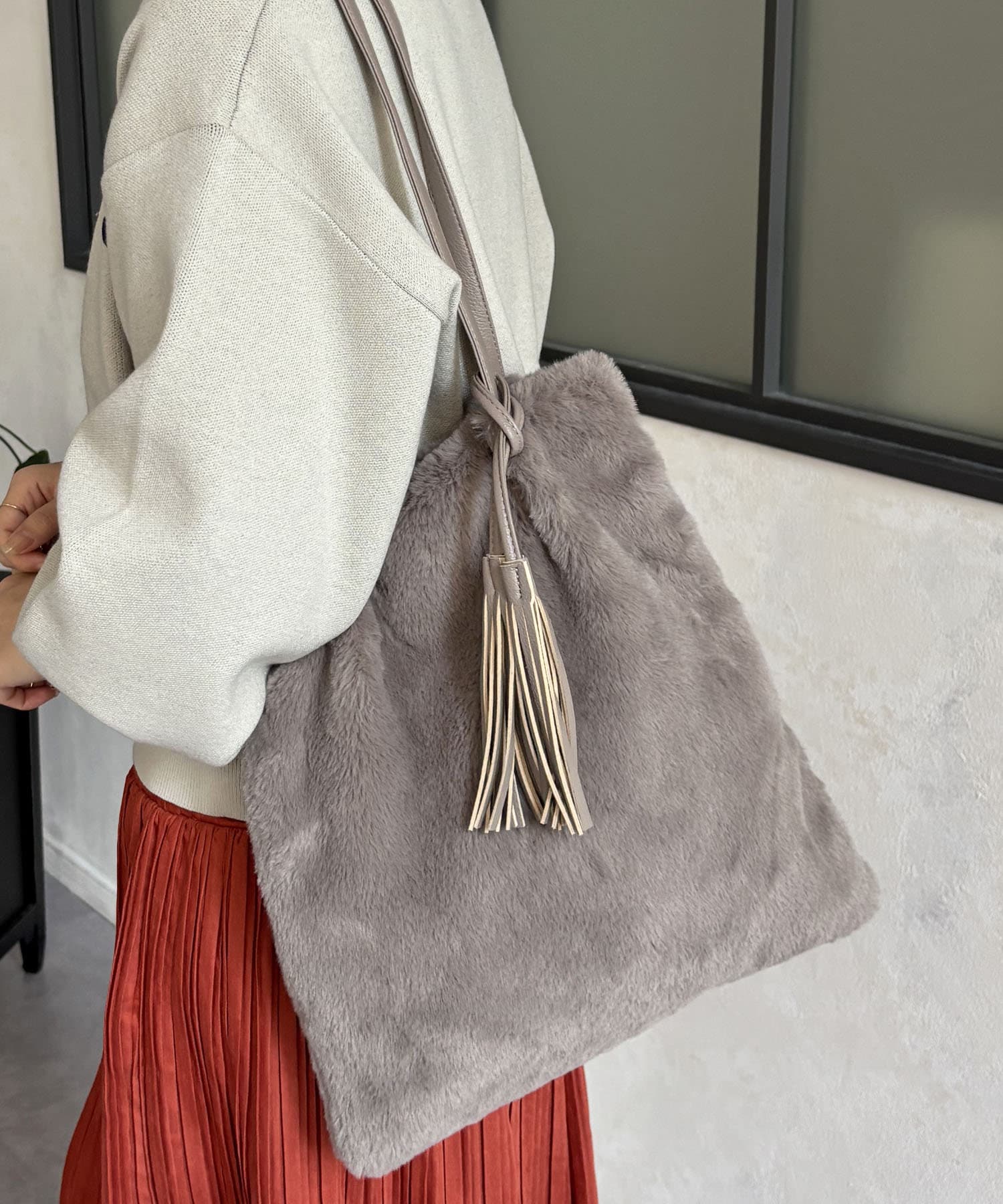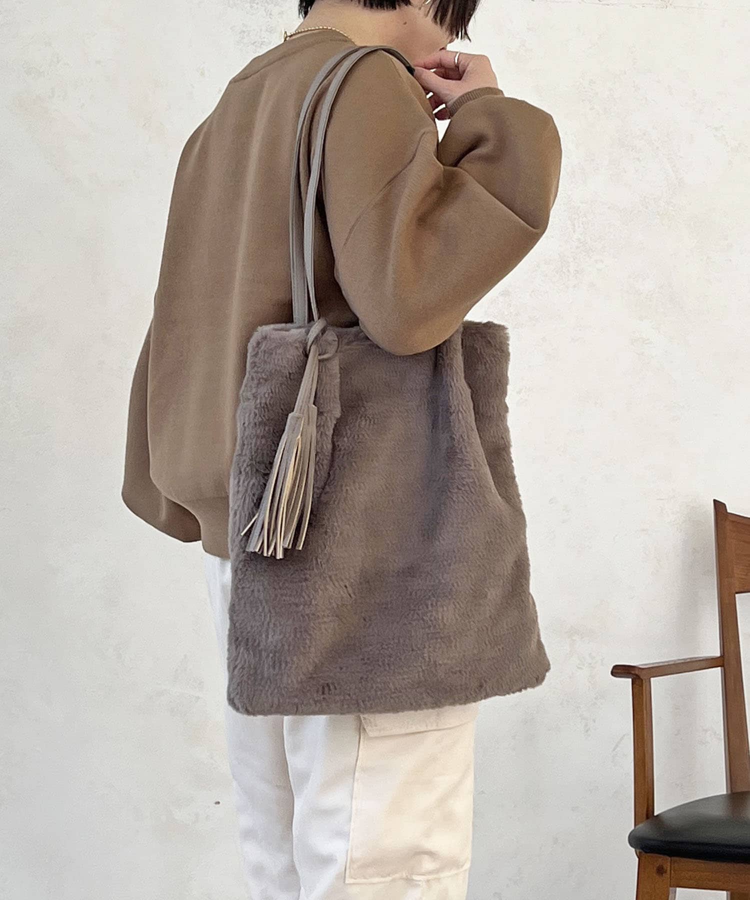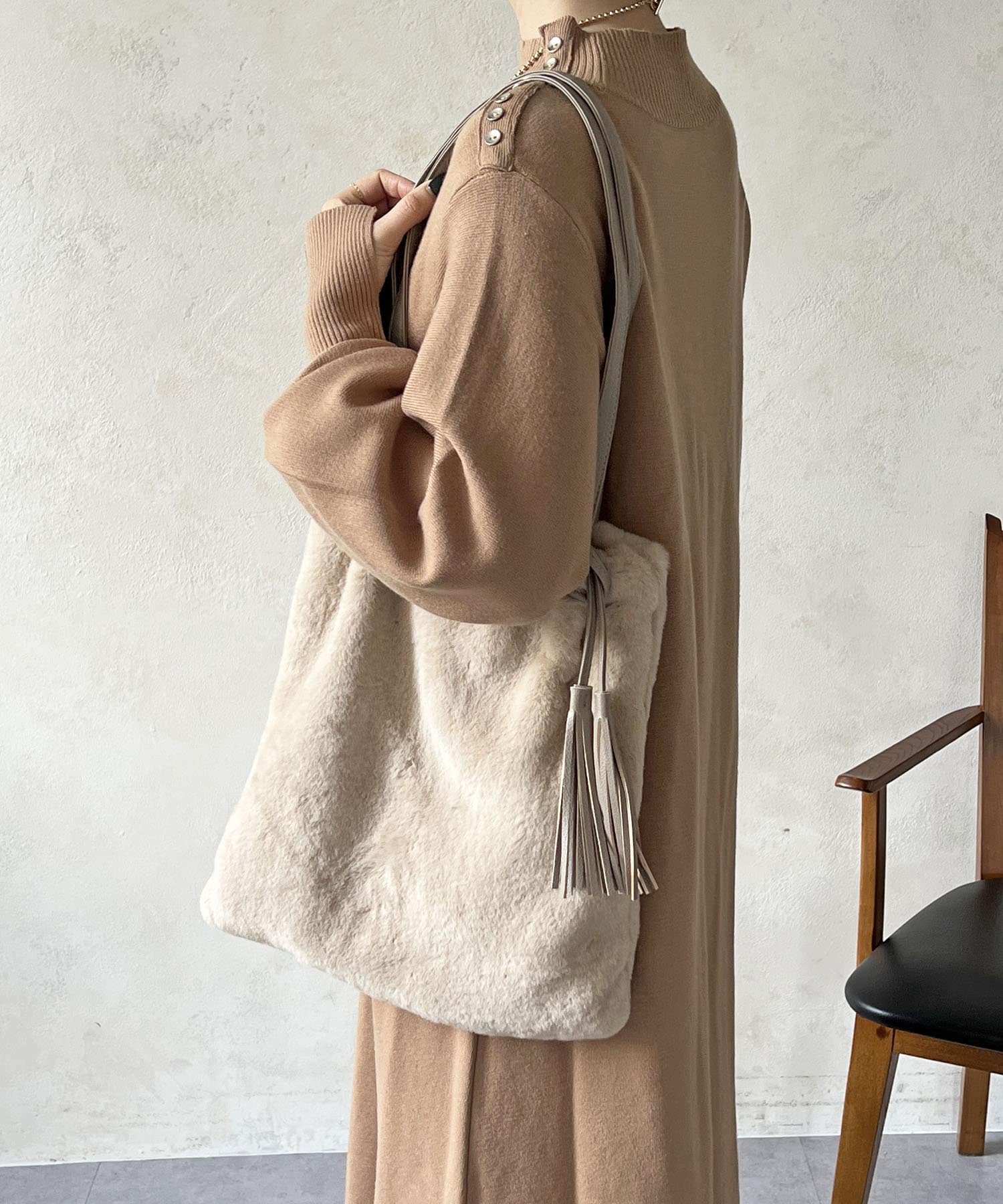 ・毛足長めのファーで上品な印象に