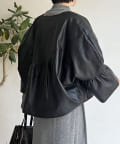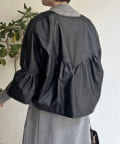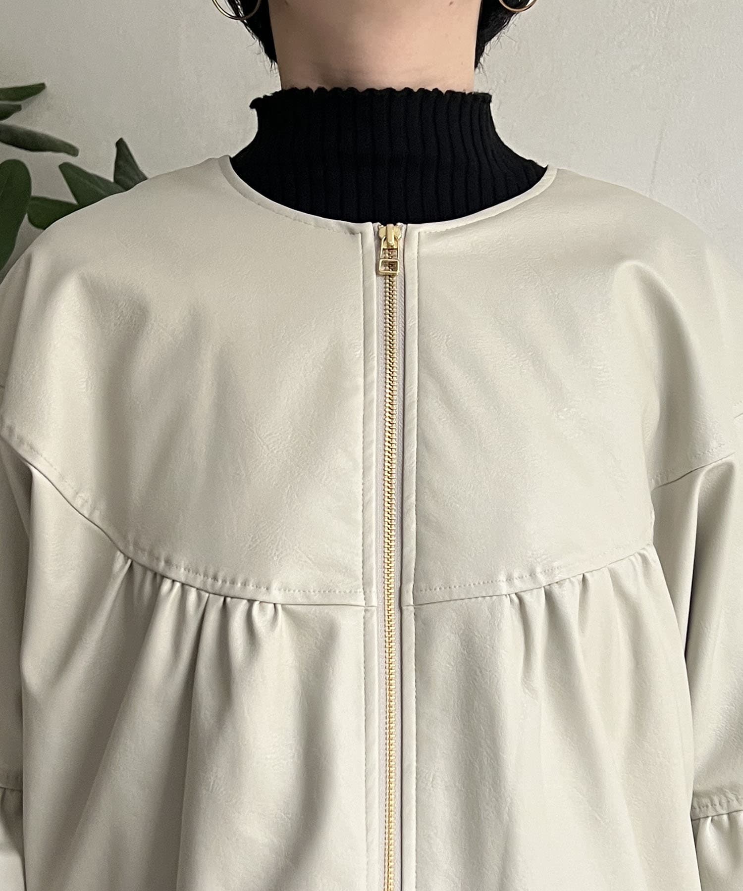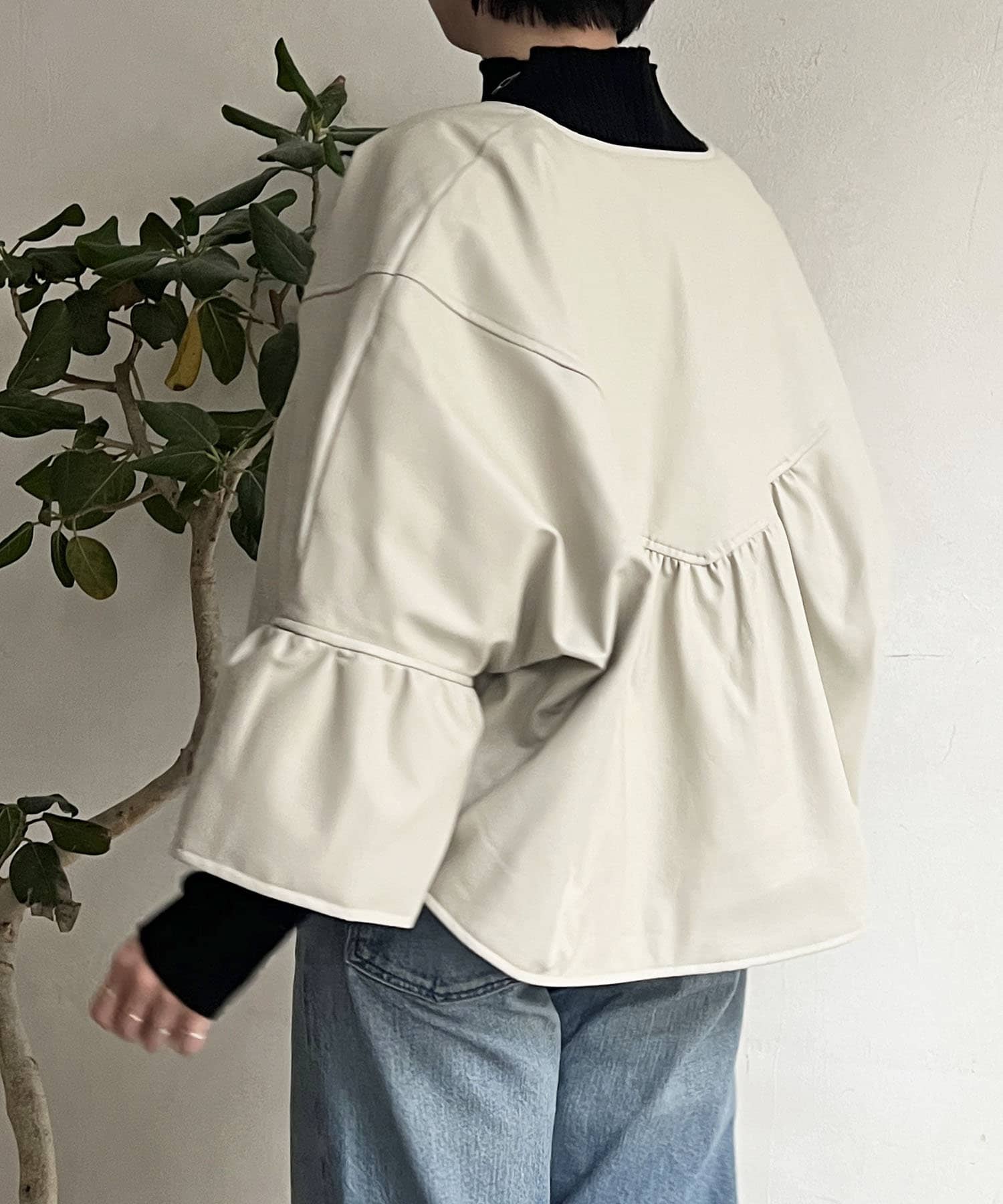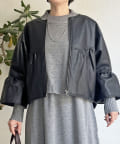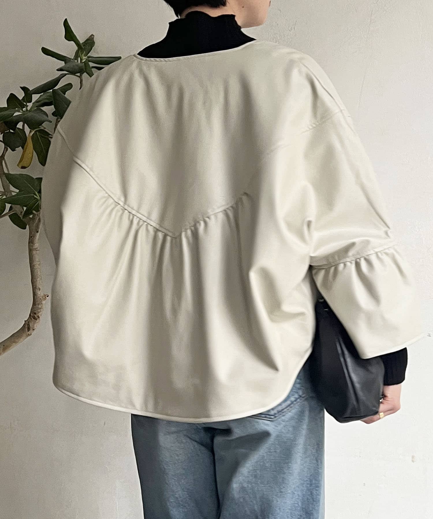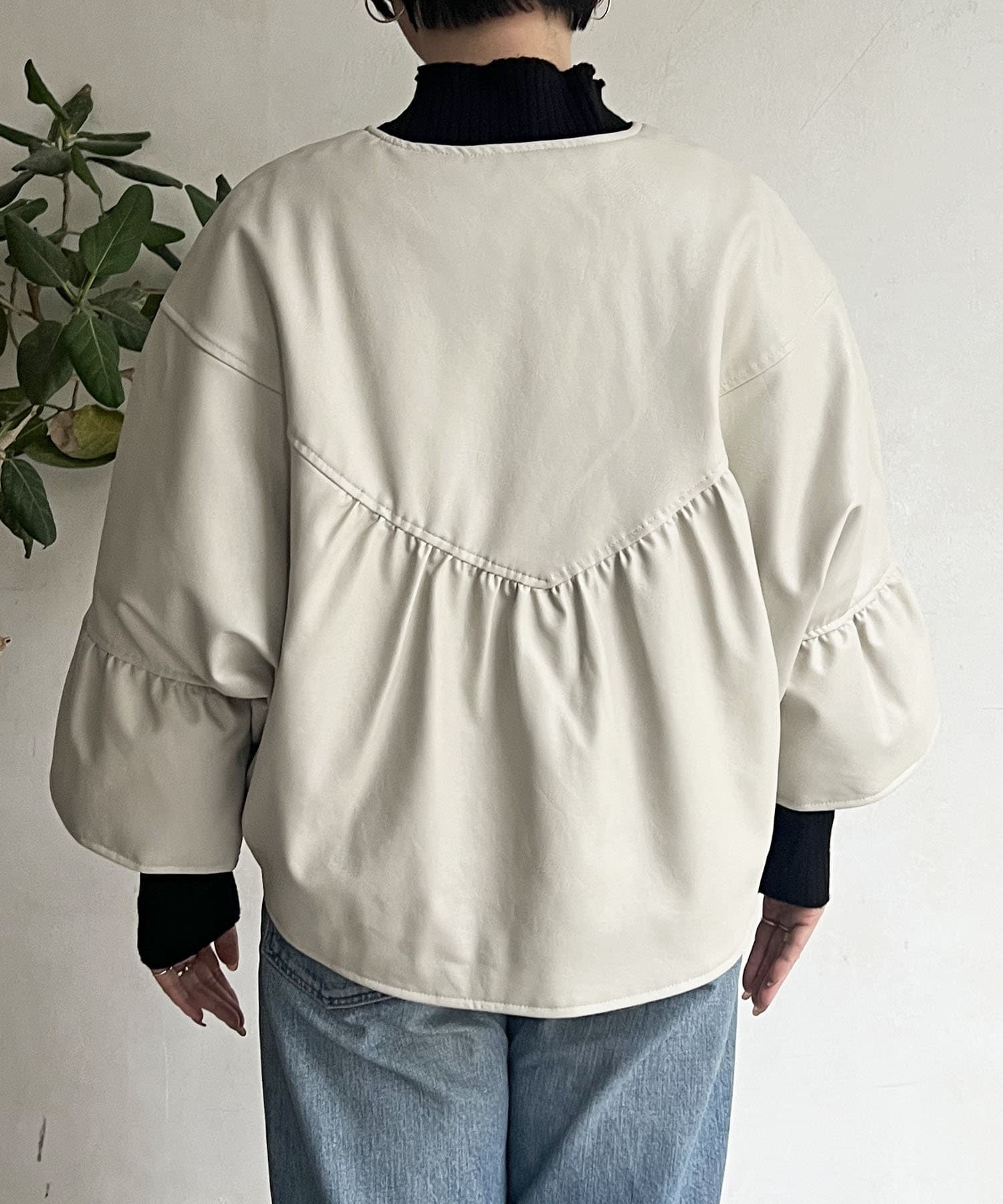 ・袖がフレアシルエットになっているので、レザージャケットでもエレガントな印象に