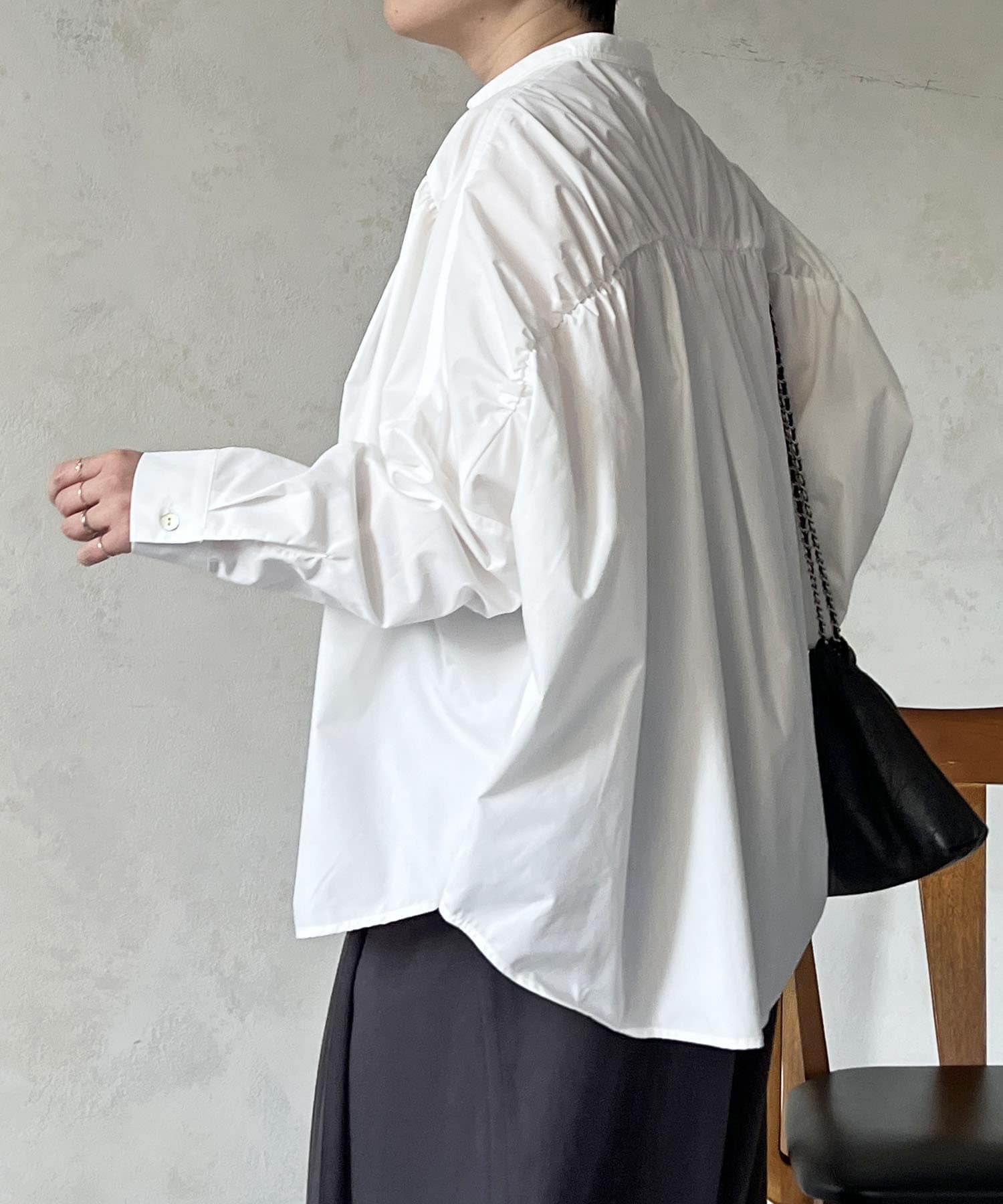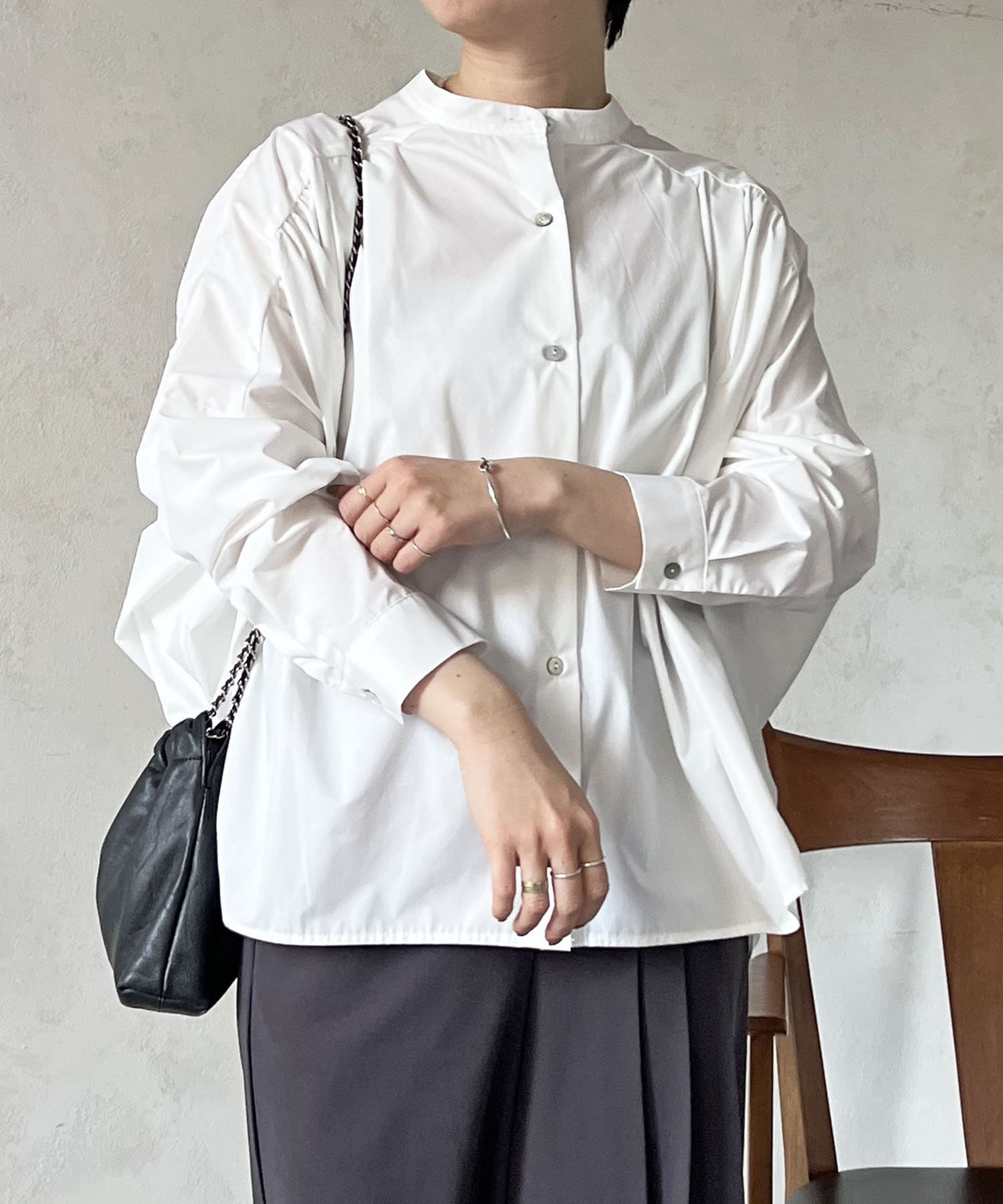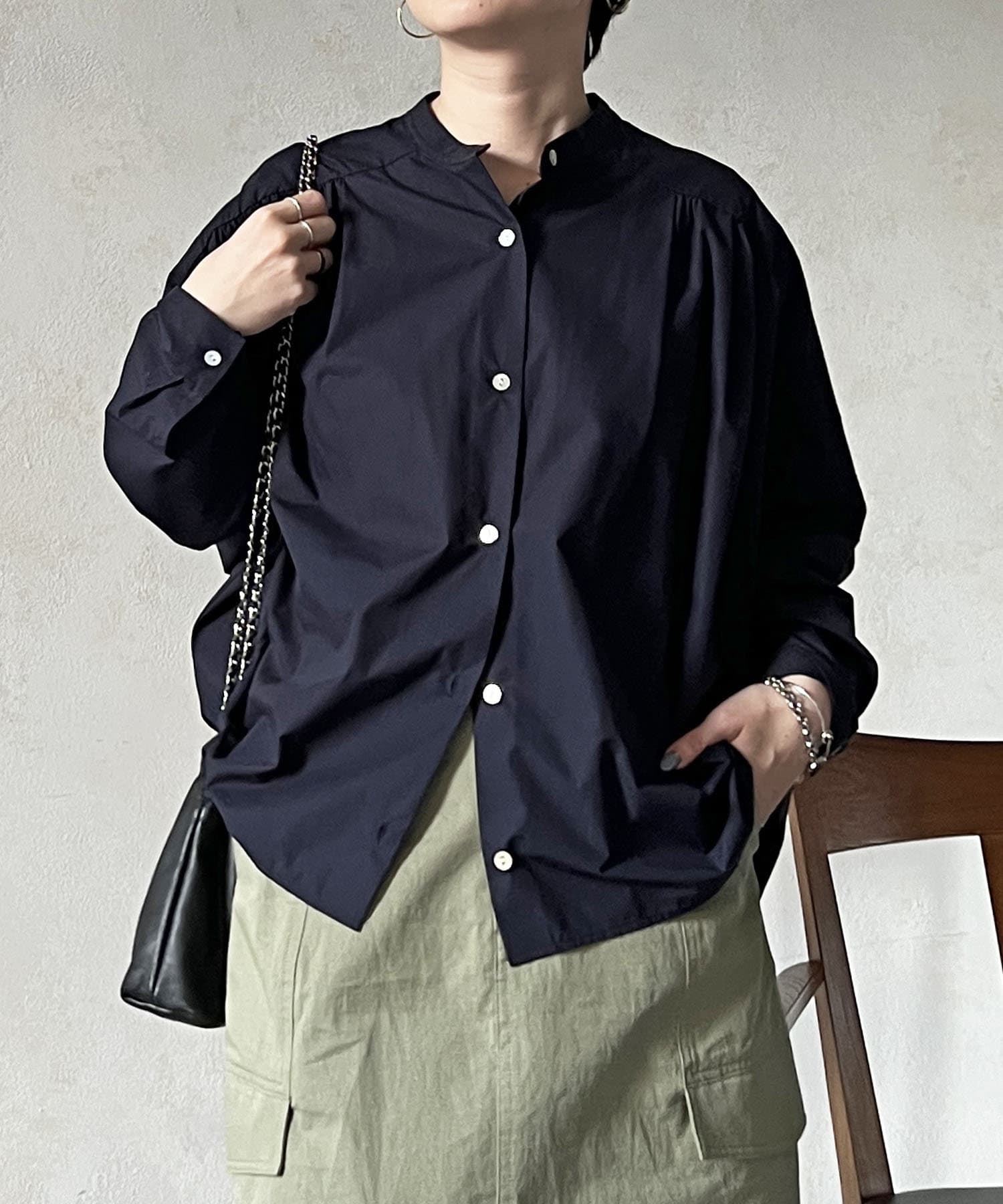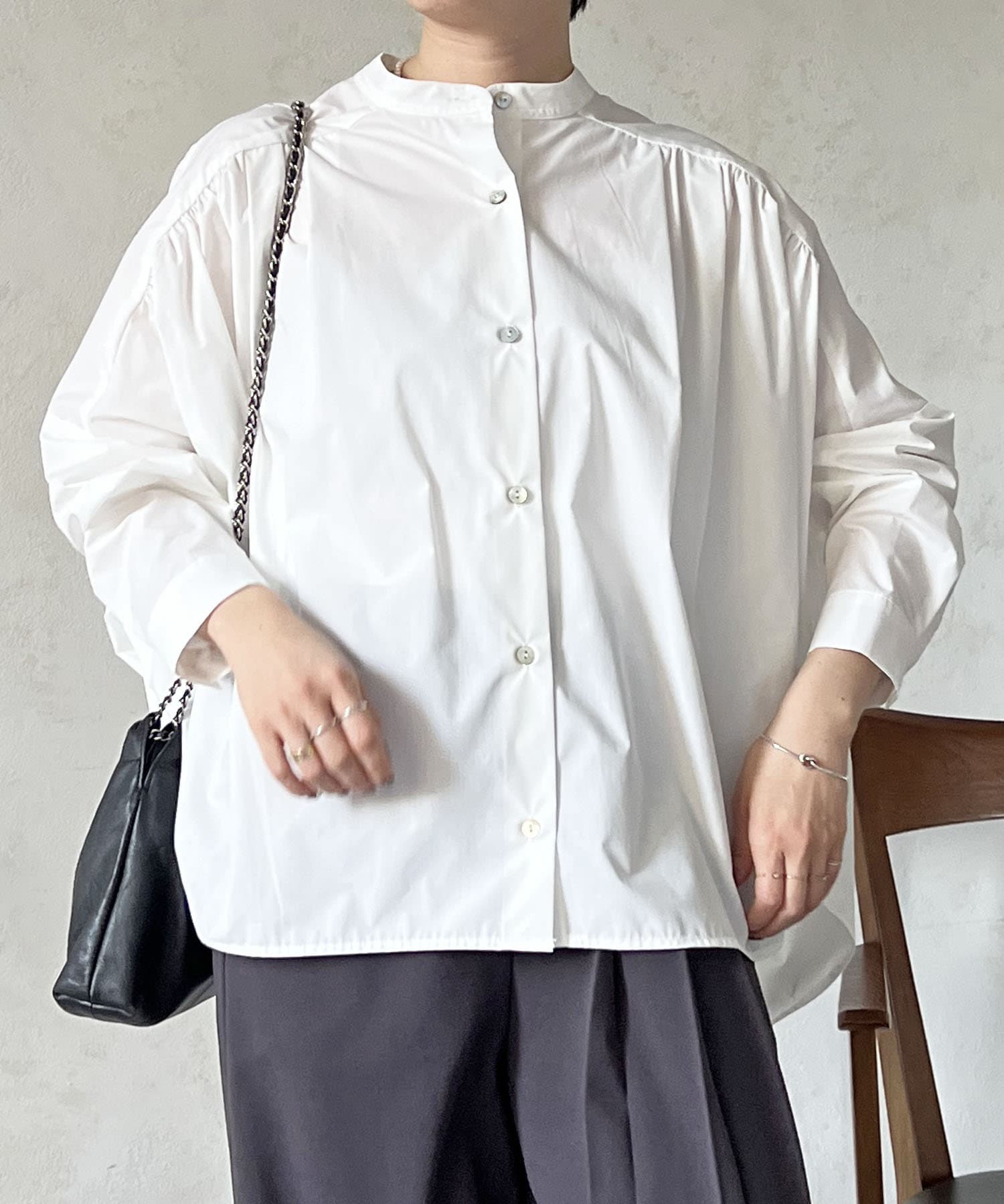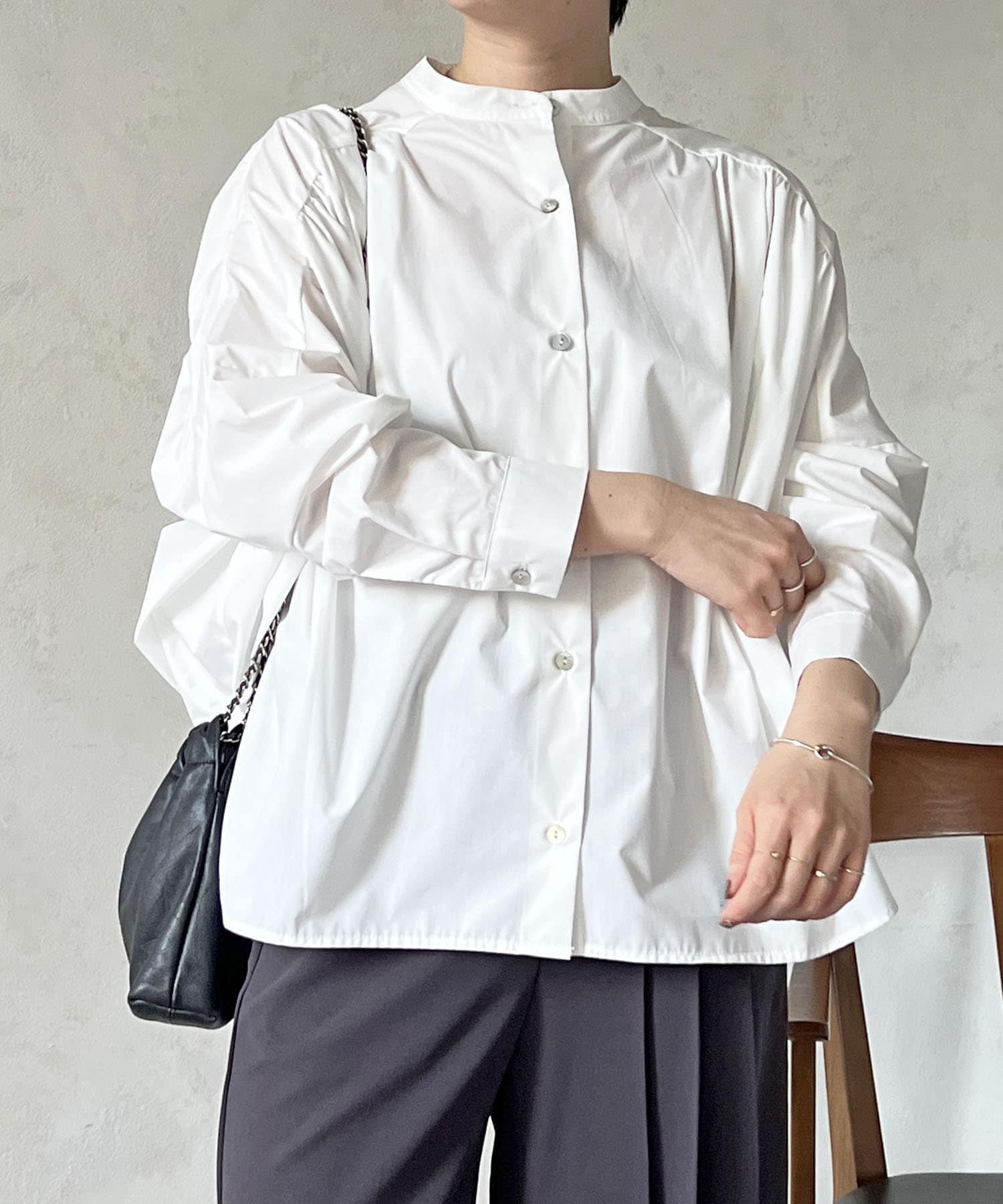 ・首元をすっきりと見せてくれるバンドカラーシャツ