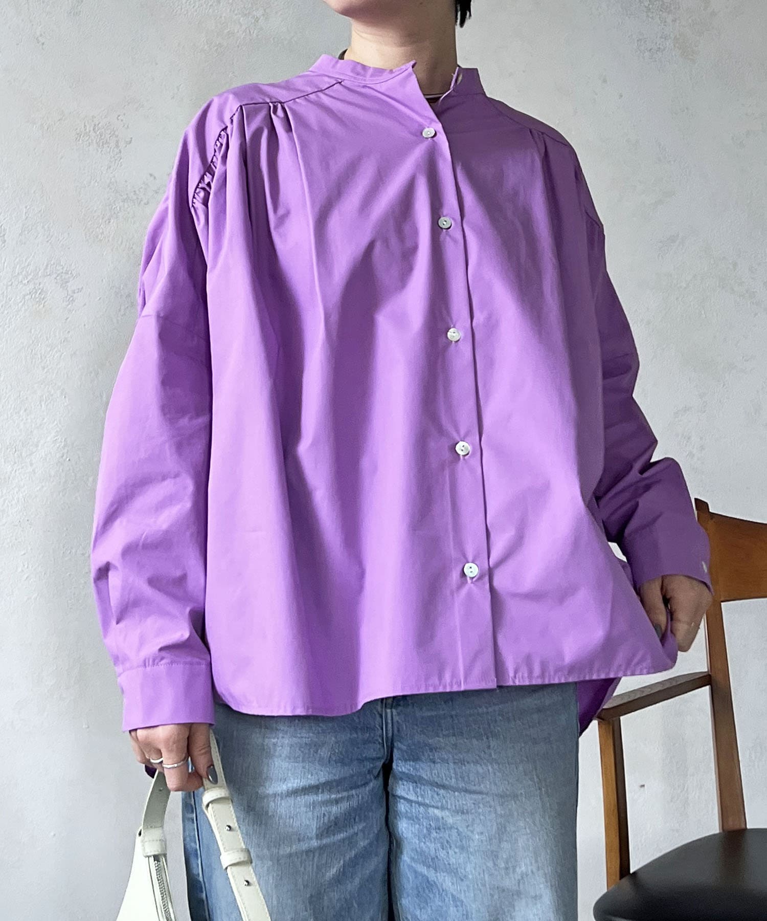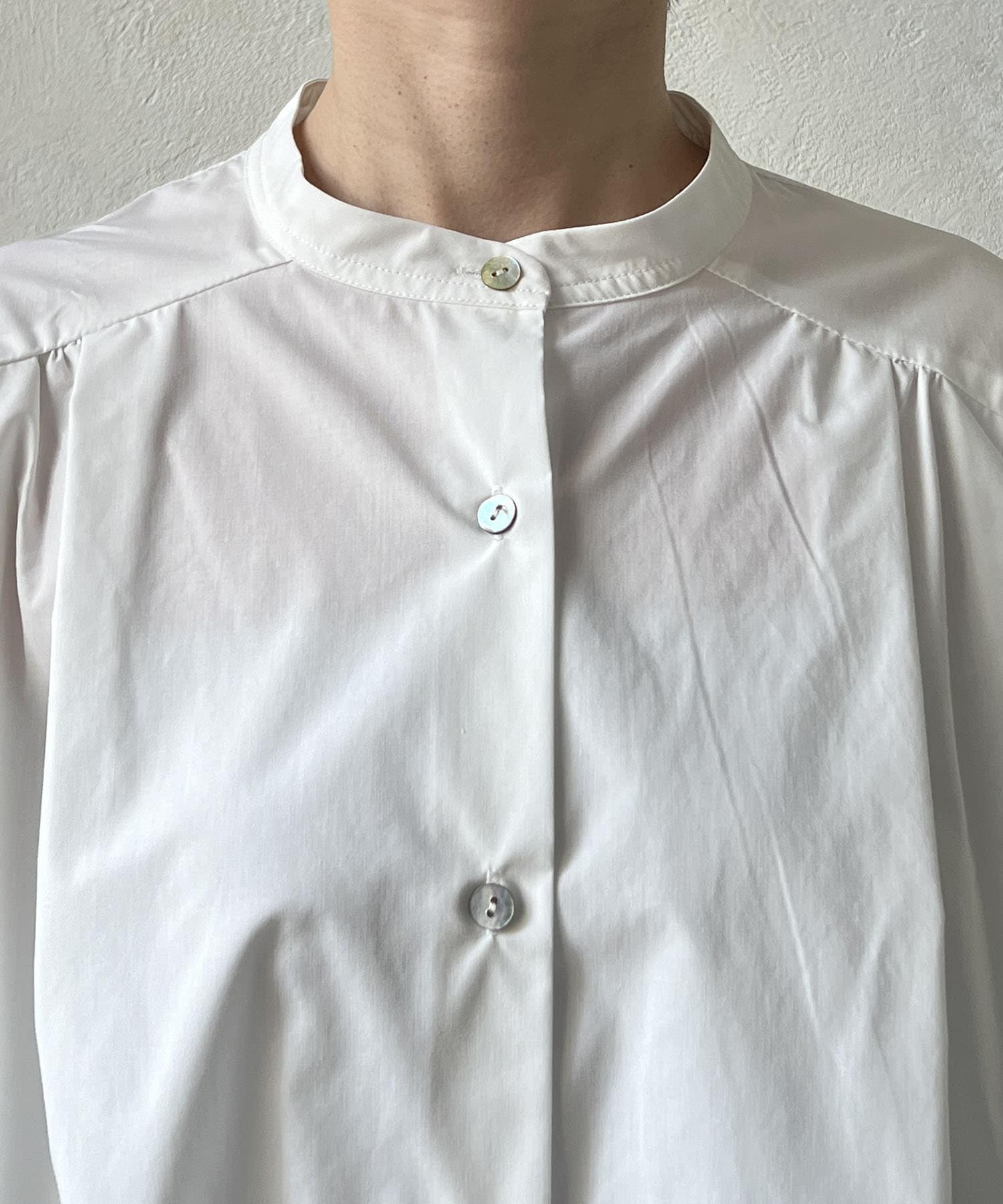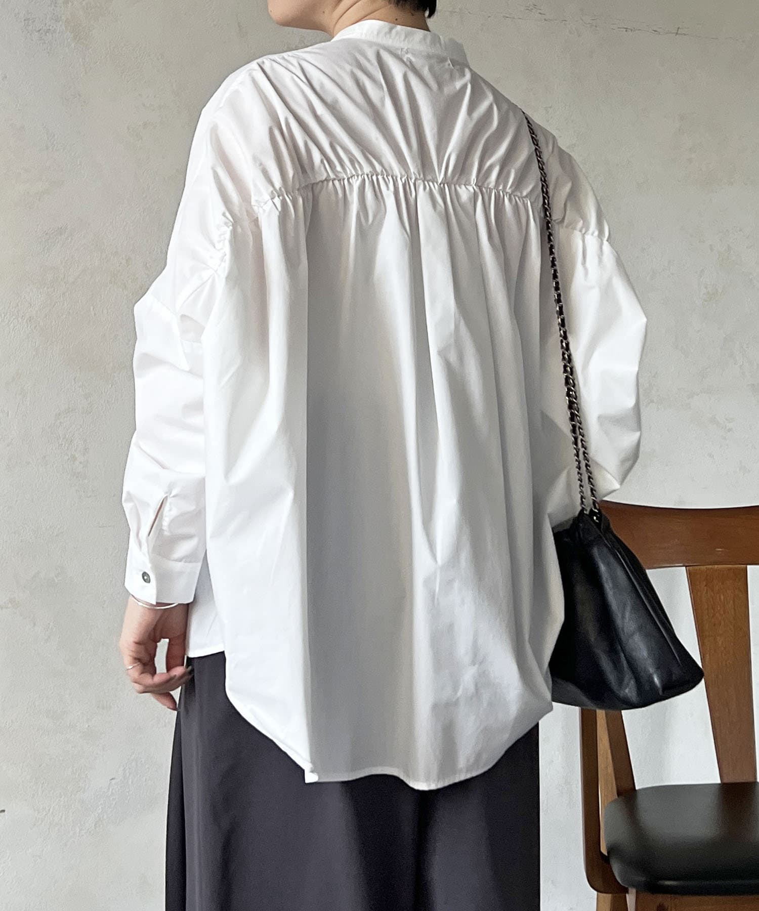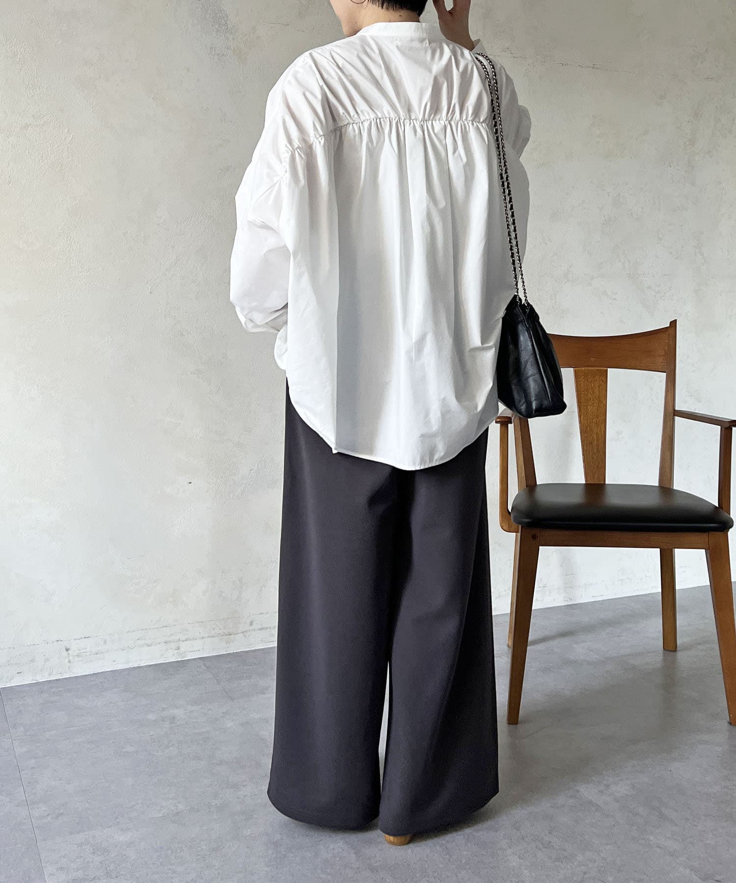 ・首元をすっきりと見せてくれるバンドカラーシャツ