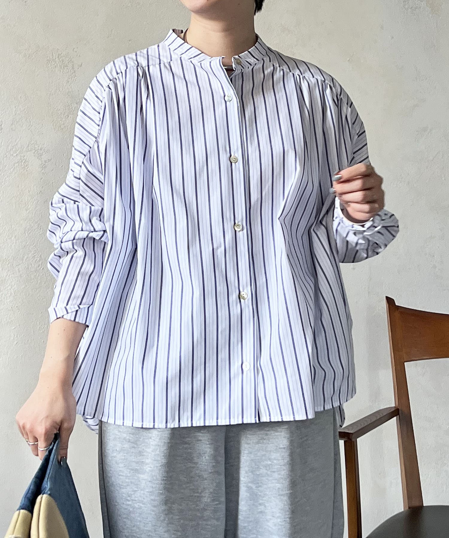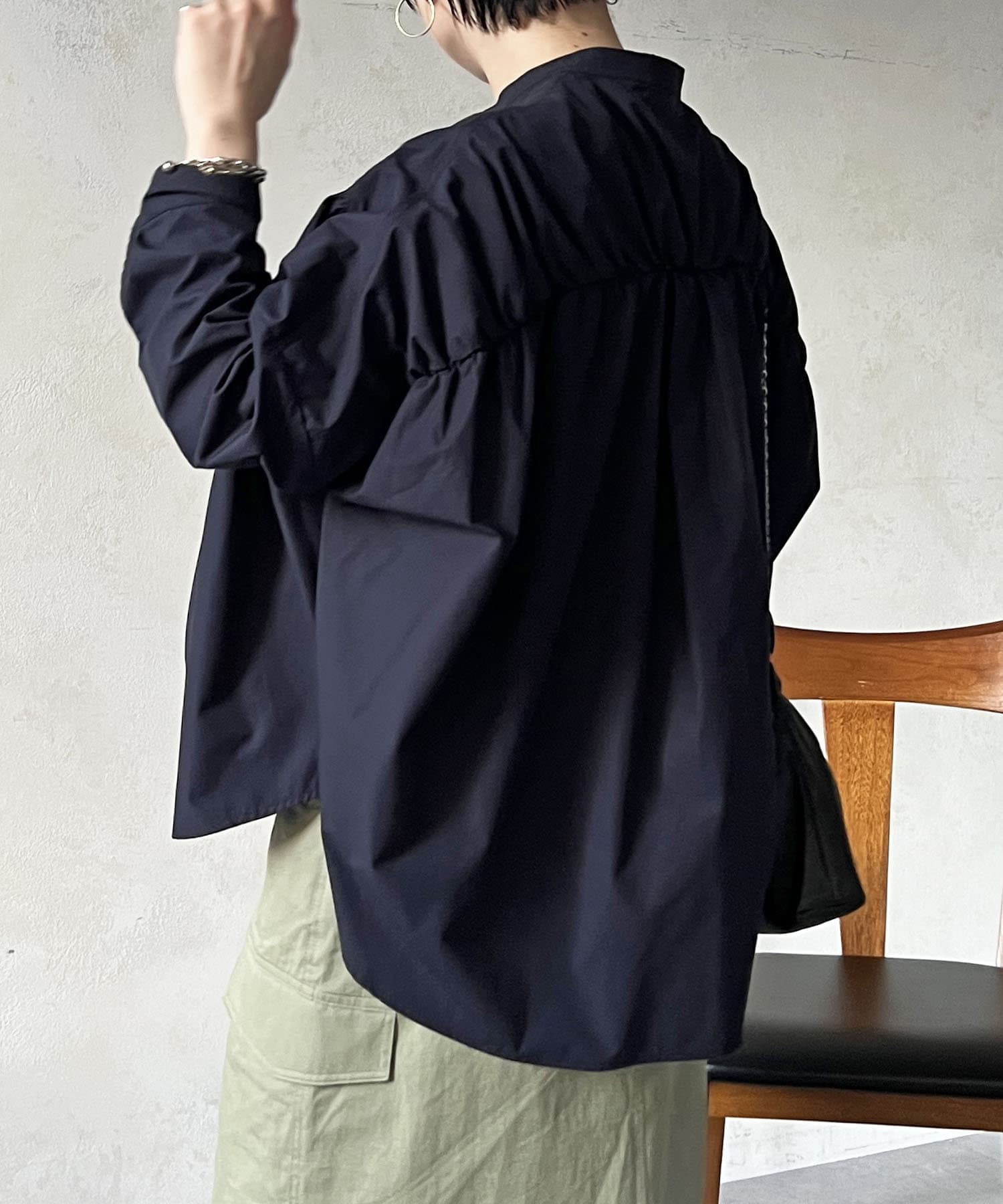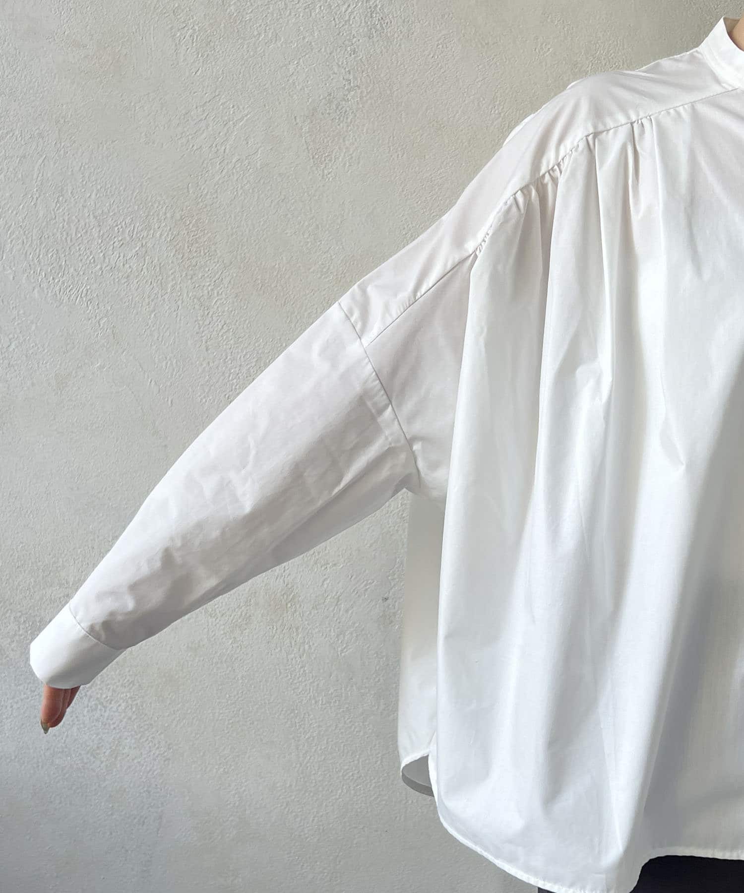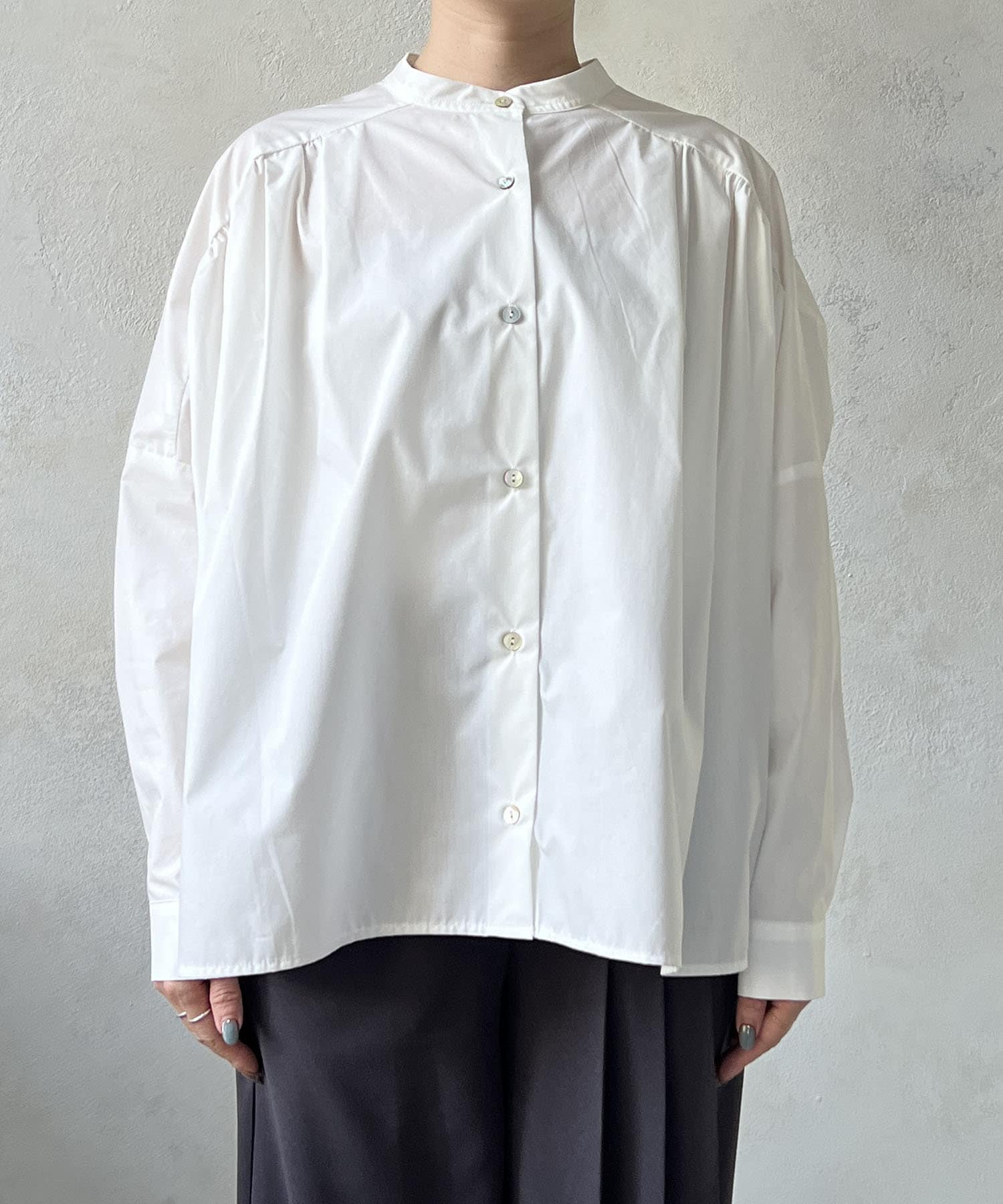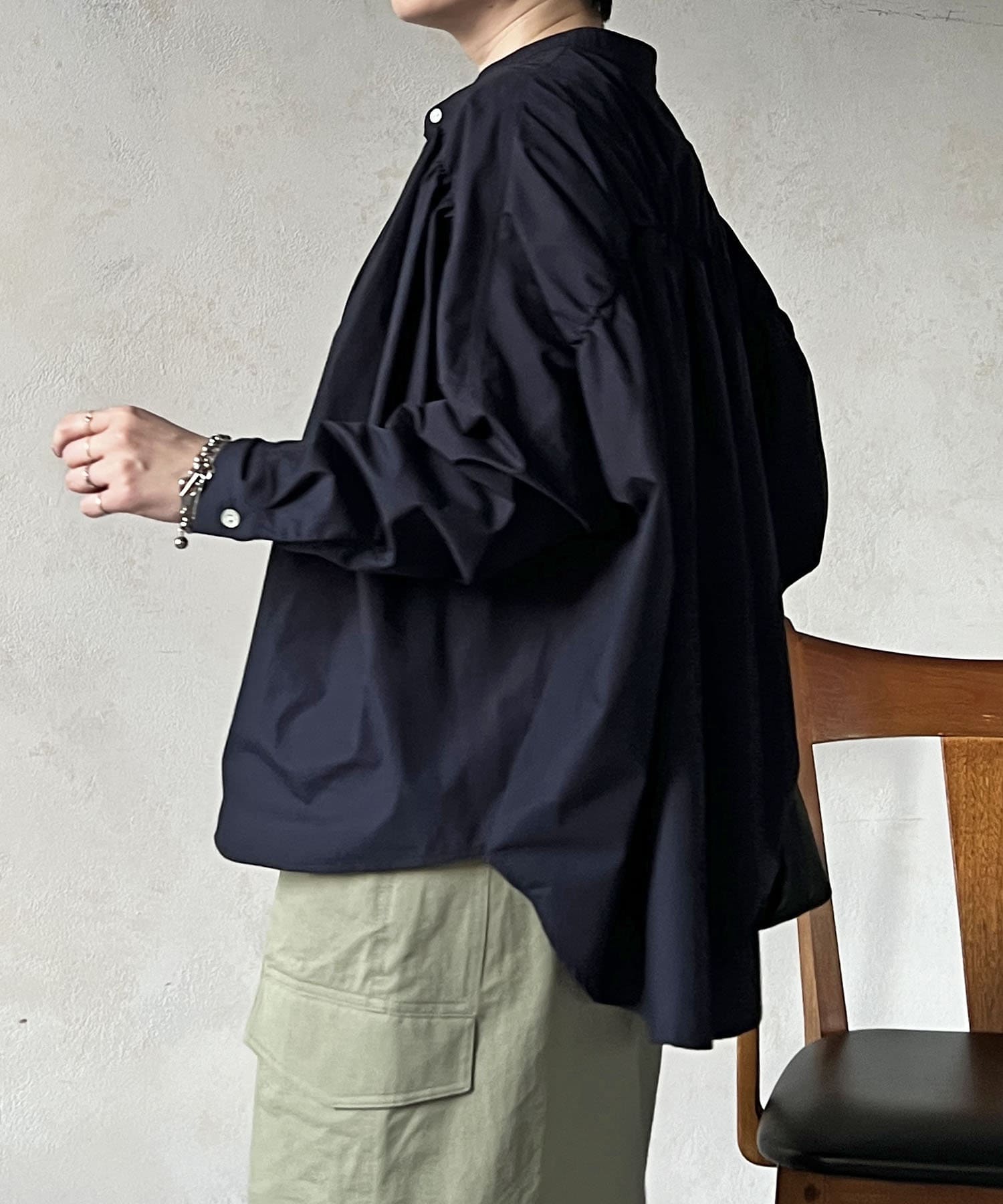 ・首元をすっきりと見せてくれるバンドカラーシャツ